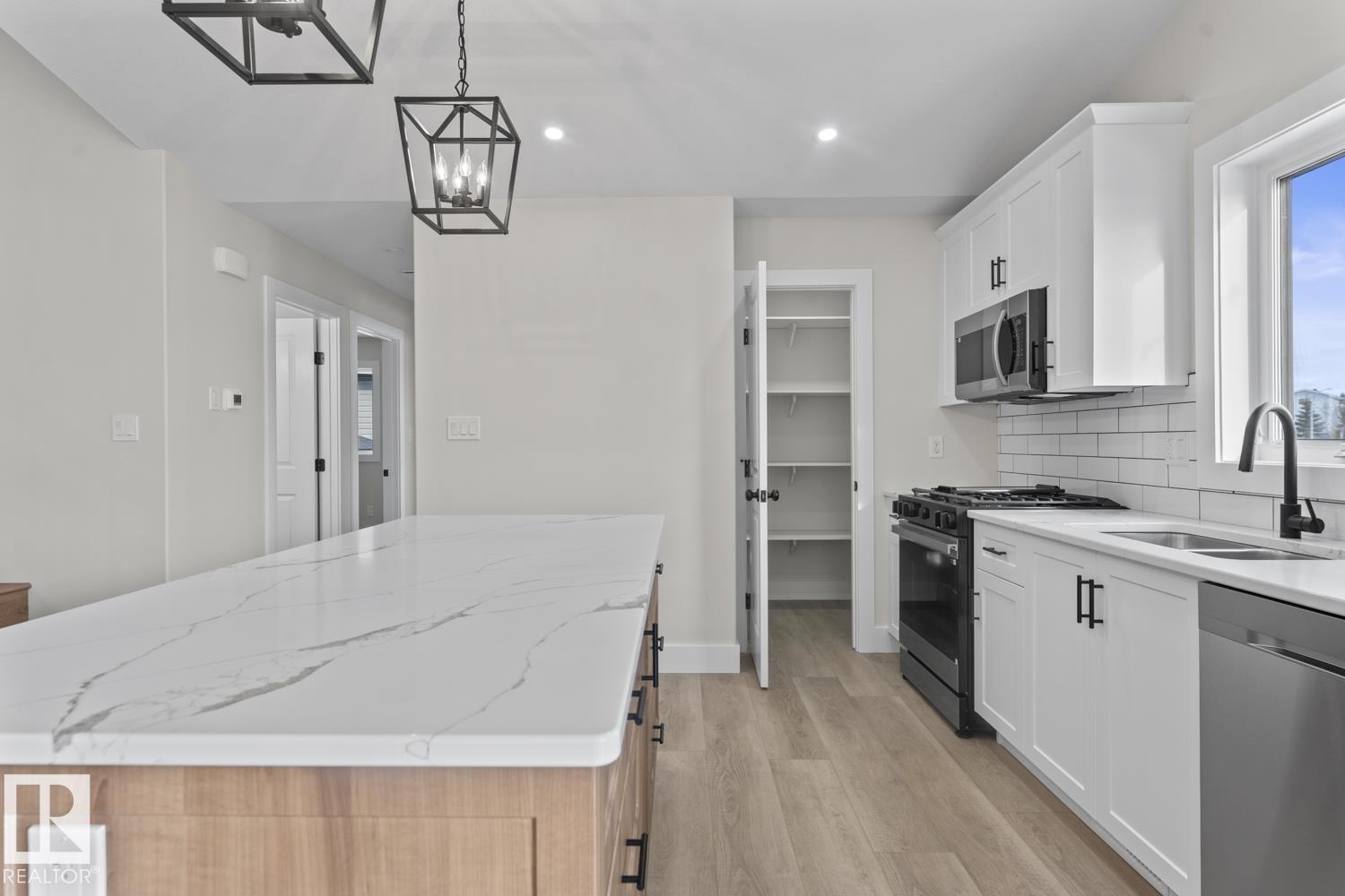 Fantastic opportunity to own a fully finished 5 bedroom/3 bathroom house with a TRIPLE HEATED/EPOXY ATTACHED GARAGE that backs onto nothing. Excellent location close to schools, walking trails and provincial park. This Hiscock Homes is move in ready in Cold lake North. Fully developed 1560 sqt+ home with stainless steel kitchen appliances installed and a completed fenced and landscaped yard. The primary suite boasts in-floor heat, his and hers sink, a tiled shower & dual closets. Included in the list price is a fully developed heated basement with 2 more bedrooms, bright family room and 4 piece bathroom. Open concept living/dining area with vaulted ceilings, a kitchen with custom cabinets, stone countertops and electric fireplace. Vinyl exterior with front rock face decor. Nothing left to do but move in and enjoy the smell of a NEW built home. Photos are an example only.