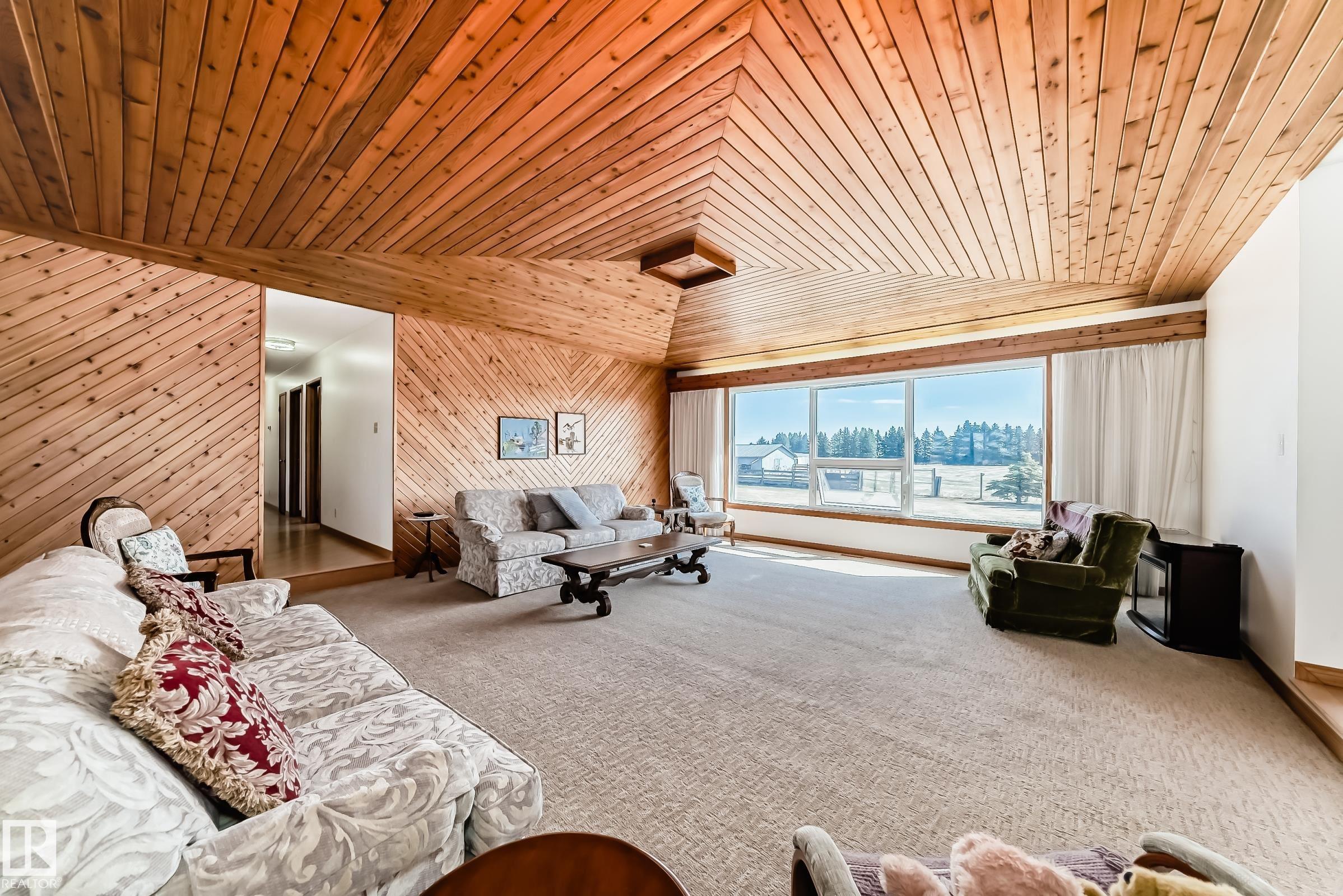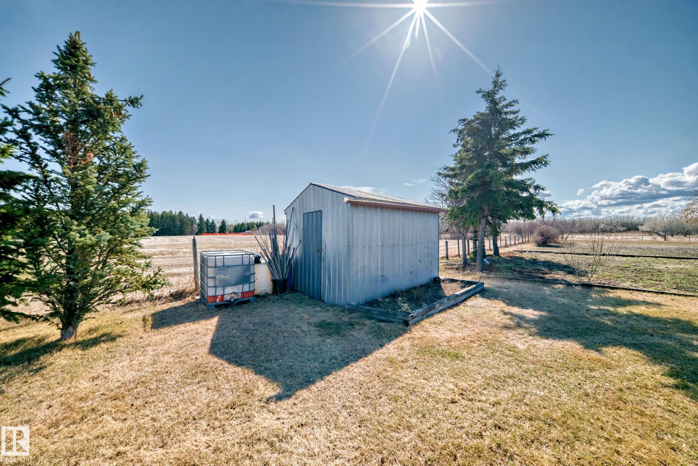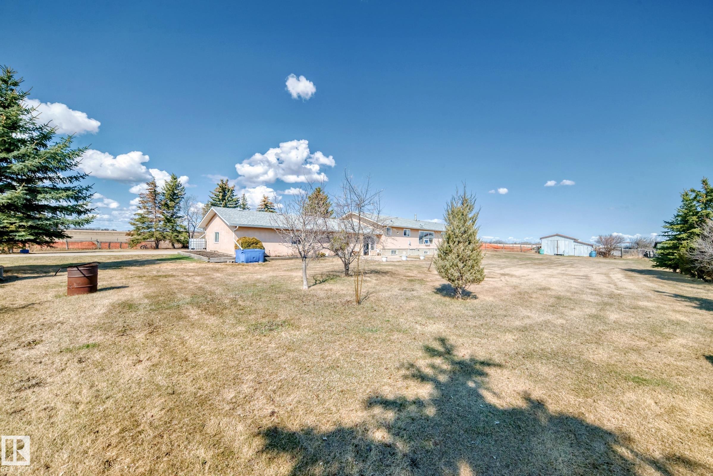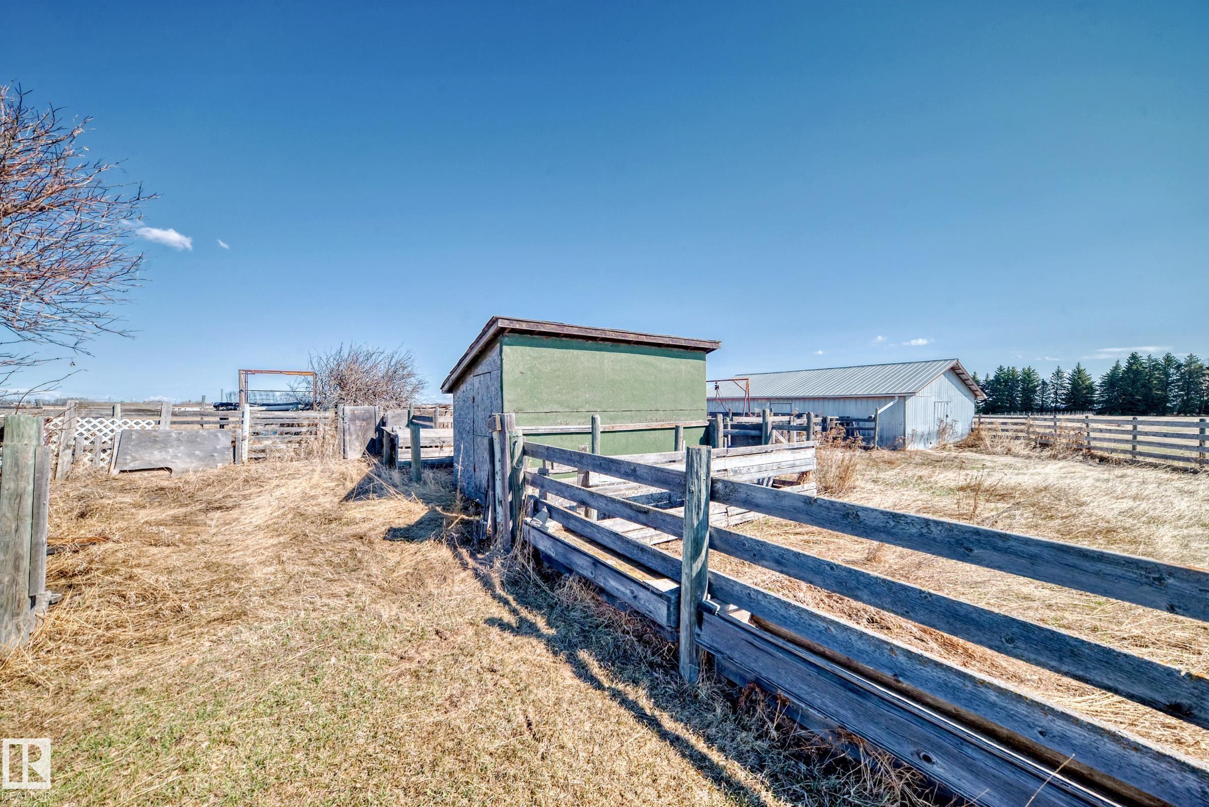 Looking for HAPPINESS? 19.5 acres of prime country living and future developable land in the Edmonton Energy and Technology Park. This hobby farm is fenced with several outbuildings and animal corrals that have accommodated chickens, sheep, cattle, and even a donkey and llama. The best part of this country living is you are still in Edmonton with agricultural zoning and lower taxes. The custom built 2643 square foot bungalow has 5 bedrooms and 3 bathrooms on the main floor with direct access from breezeway to triple garage. A partially finished wide open basement has a separate entrance with an extra room and full bathroom. All this surrounded by mature trees with a large garden, flower beds, and a paved driveway. This is a one of a kind gorgeous property.