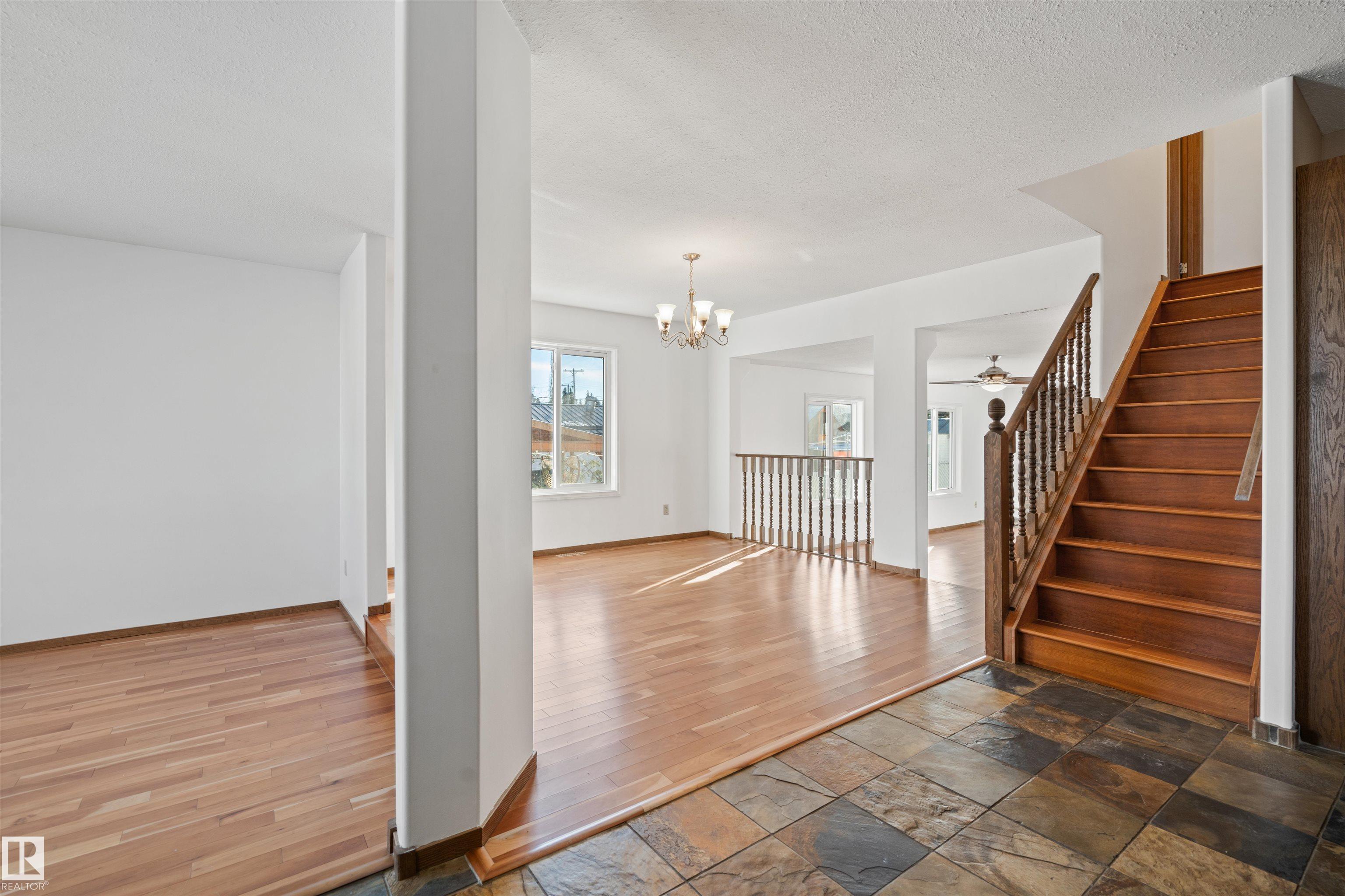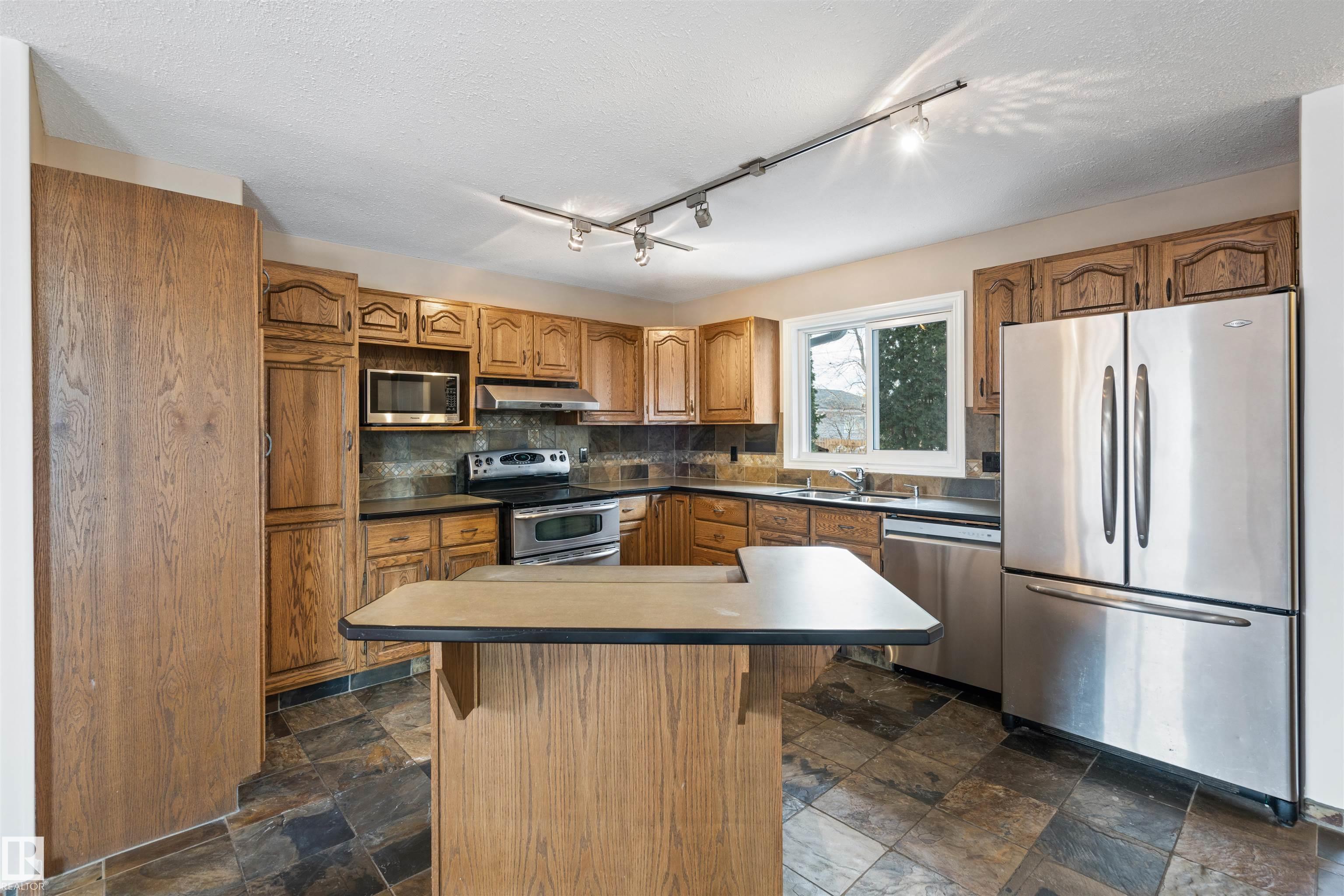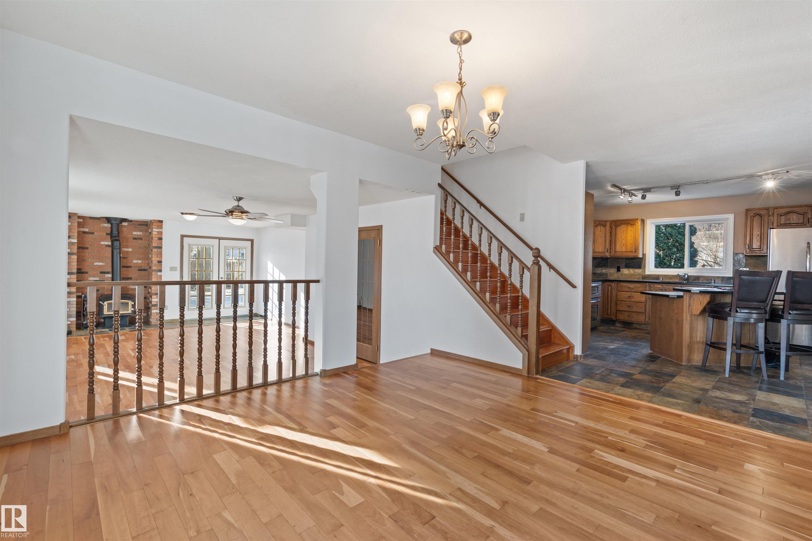 This well-laid-out home offers plenty of space for the whole family, with beautiful lake views from multiple rooms. Situated on a large lot with back alley access, this property is within walking distance to parks, the Cold Lake Marina, and Kinosoo Beach. Step inside to an open-concept layout with expansive living spaces.Engineered cherry hardwood flows throughout the main floor, connecting the sitting room, dining area, and sunken family room. A wood-burning stove anchors the space. The kitchen is designed for gathering, featuring a central island and a seamless flow into the surrounding spaces. Just off the kitchen, a side deck provides the perfect spot for BBQing. Rounding off this level is access to the double attached garage and a convenient 2pc bath. Upstairs, the Jack and Jill bedrooms each have their own sinks while sharing a toilet and shower. The primary bedroom boasts a walk-in closet and 4pc ensuite.The versatile basement offers endless possibilities!