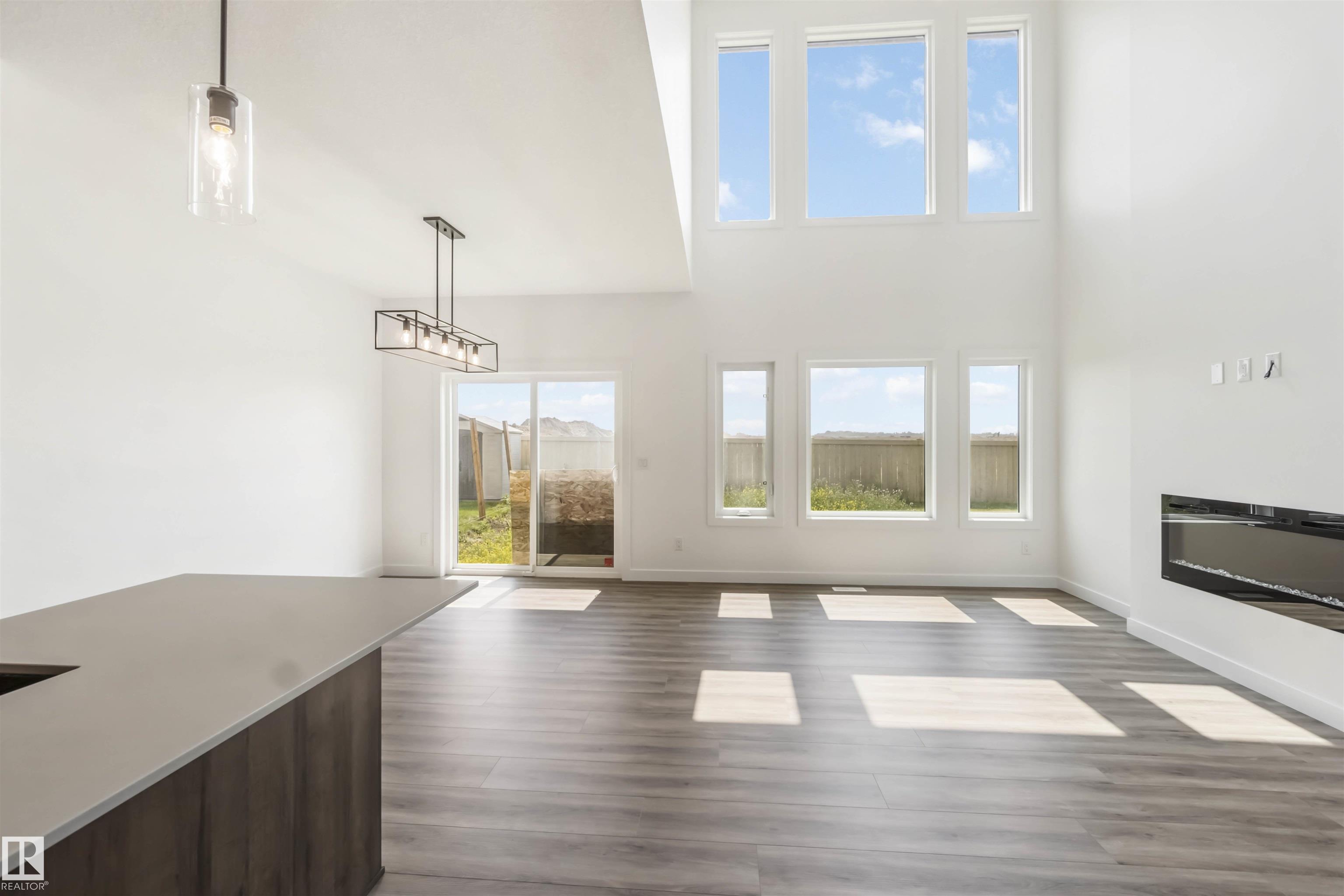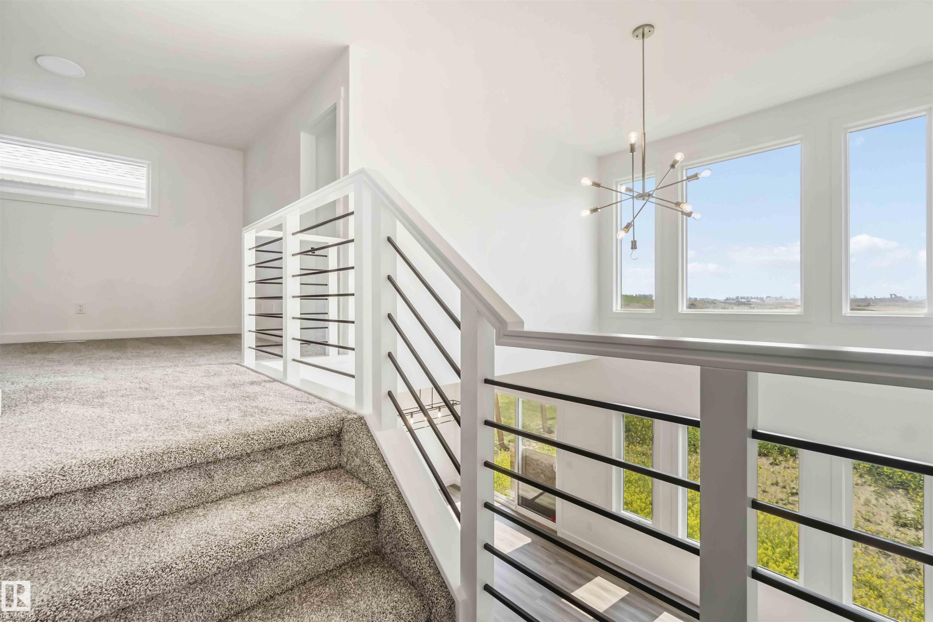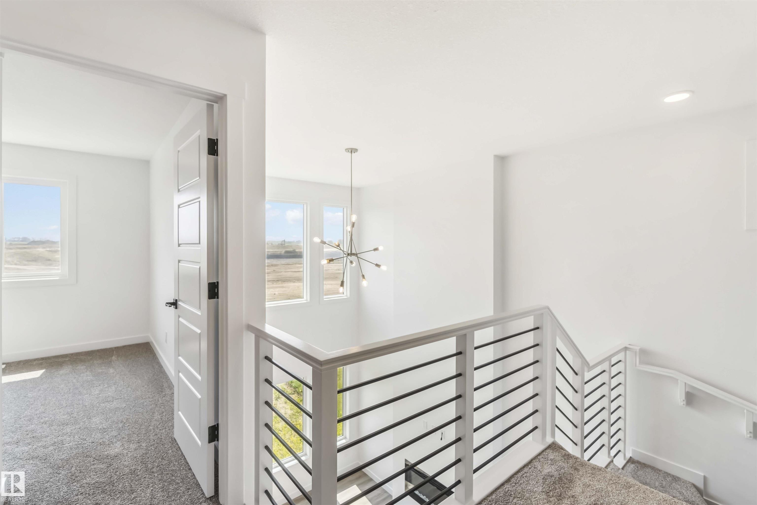 The Allure blends meticulous design, elegance, and practical living. It offers 9' ceilings on the main and basement levels, a double attached garage with 2' added width (not shown on plan), separate entrance, and Luxury Vinyl Plank flooring. The inviting foyer leads to a bright kitchen with quartz counters, island with flush eating ledge, full-height tiled backsplash, over-the-range microwave, undermount sink, soft-close cabinetry, and a large walk-through pantry connecting to the mudroom and garage. The great room soars 17' with an electric fireplace, while large windows and sliding patio doors fill the great room and nook with light. A half bath completes the main floor. Upstairs, the primary suite features a spacious walk-in closet and 3-piece ensuite with tub/shower. A bonus room overlooks the open-to-below area, alongside a main bath, laundry, and two bedrooms with ample closets. Upgraded railings and basement rough-ins are included. This home showcases our enhanced Sterling Signature Specification.