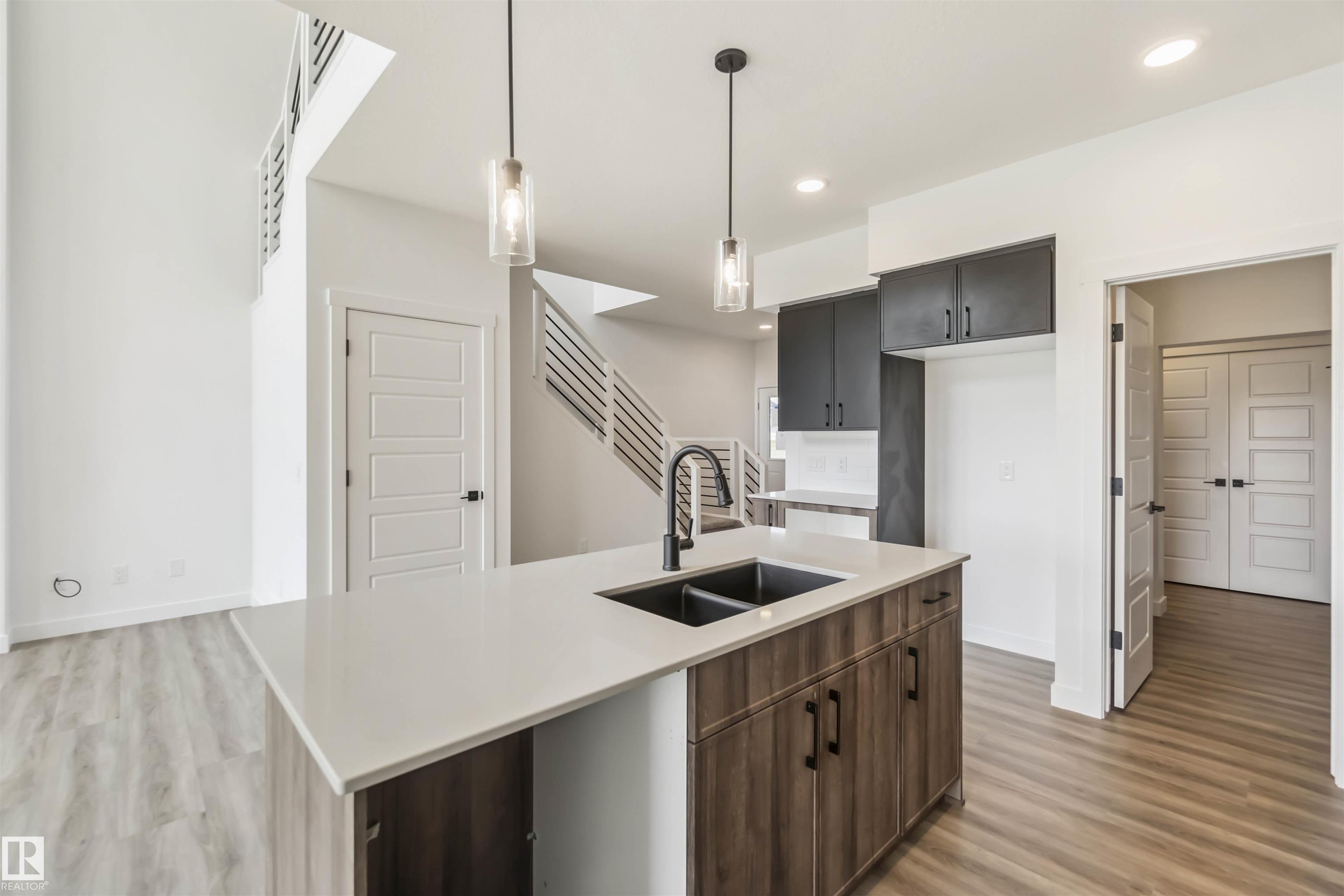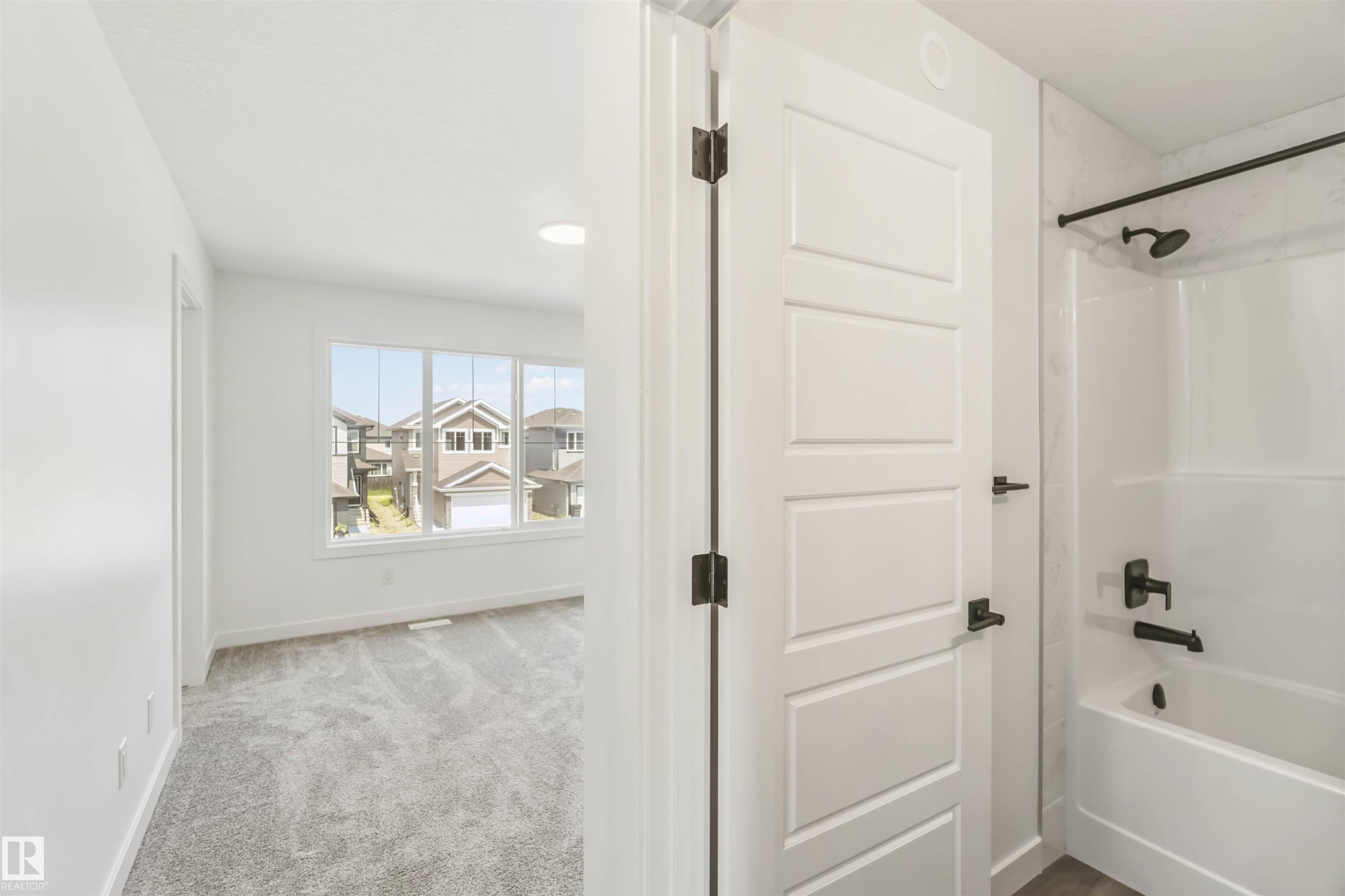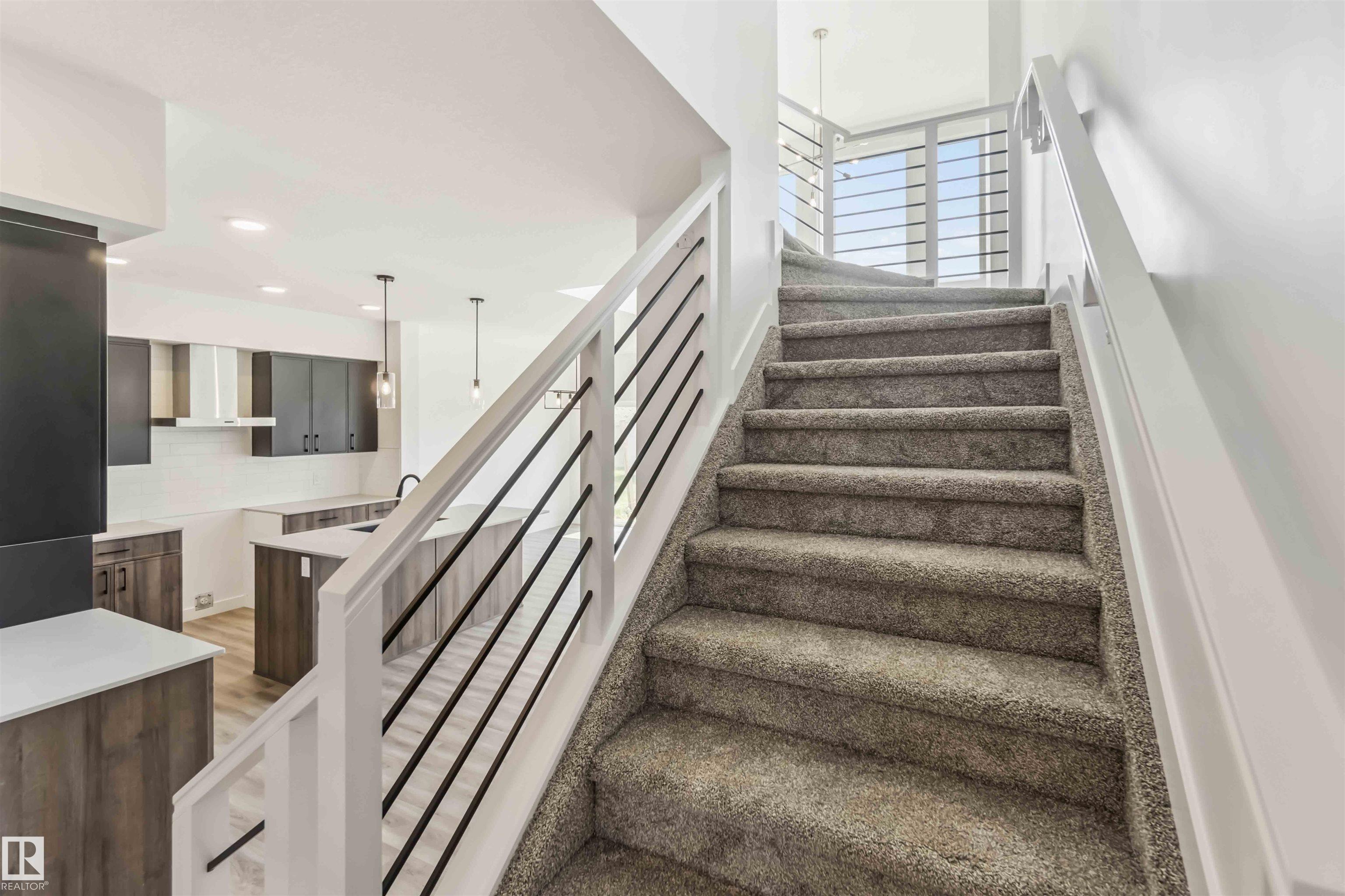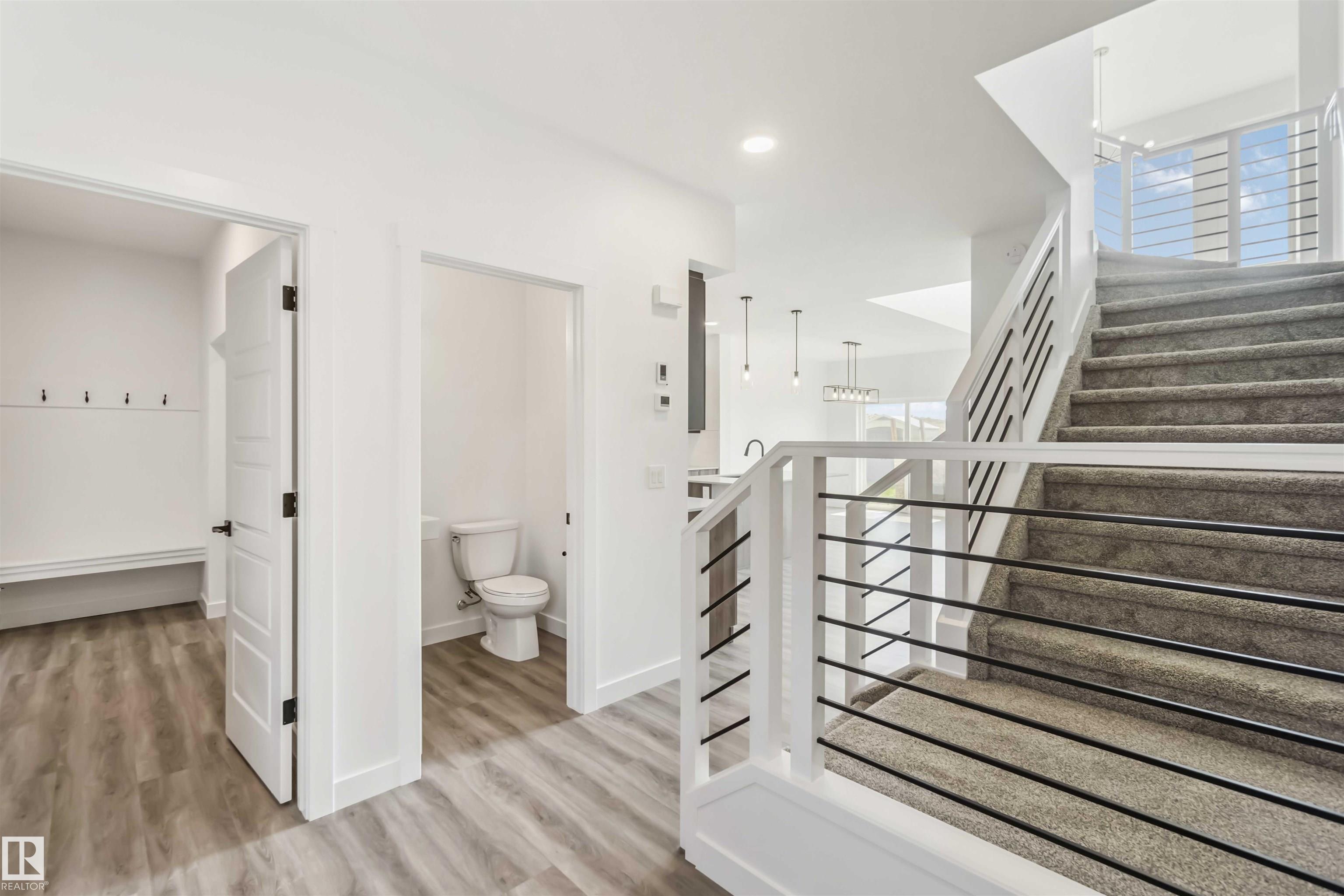 The Allure blends meticulous design, elegance, and practical living. It offers 9' ceilings on the main and basement levels, a double attached garage with 2' added width (not shown on plan), separate entrance, and Luxury Vinyl Plank flooring. The inviting foyer leads to a bright kitchen with quartz counters, island with flush eating ledge, full-height tiled backsplash, over-the-range microwave, undermount sink, soft-close cabinetry, and a large walk-through pantry connecting to the mudroom and garage. The great room soars 17' with an electric fireplace, while large windows and sliding patio doors fill the great room and nook with light. A half bath completes the main floor. Upstairs, the primary suite features a spacious walk-in closet and 3-piece ensuite with tub/shower. A bonus room overlooks the open-to-below area, alongside a main bath, laundry, and two bedrooms with ample closets. Upgraded railings and basement rough-ins are included. This home showcases our enhanced Sterling Signature Specification.