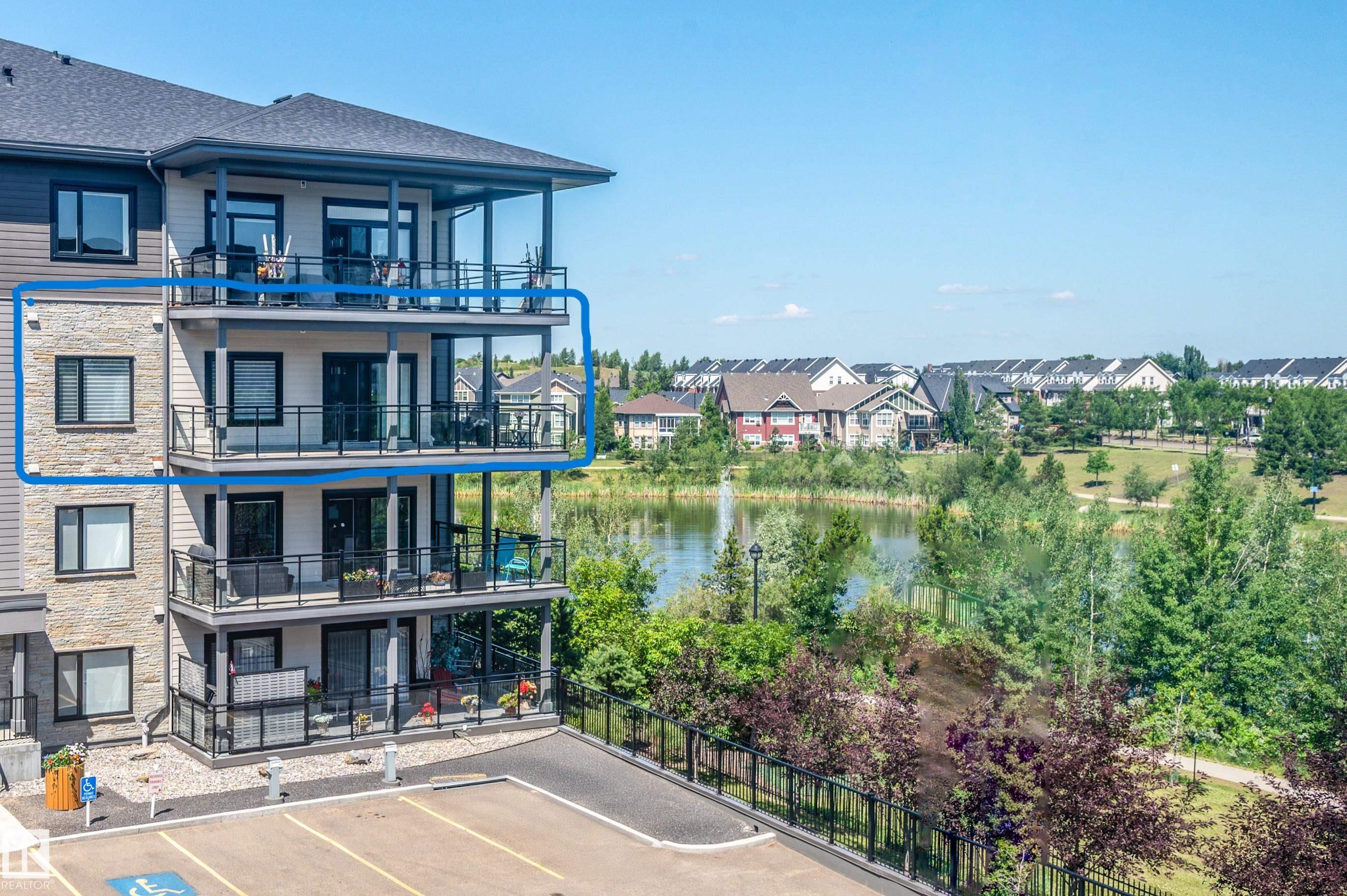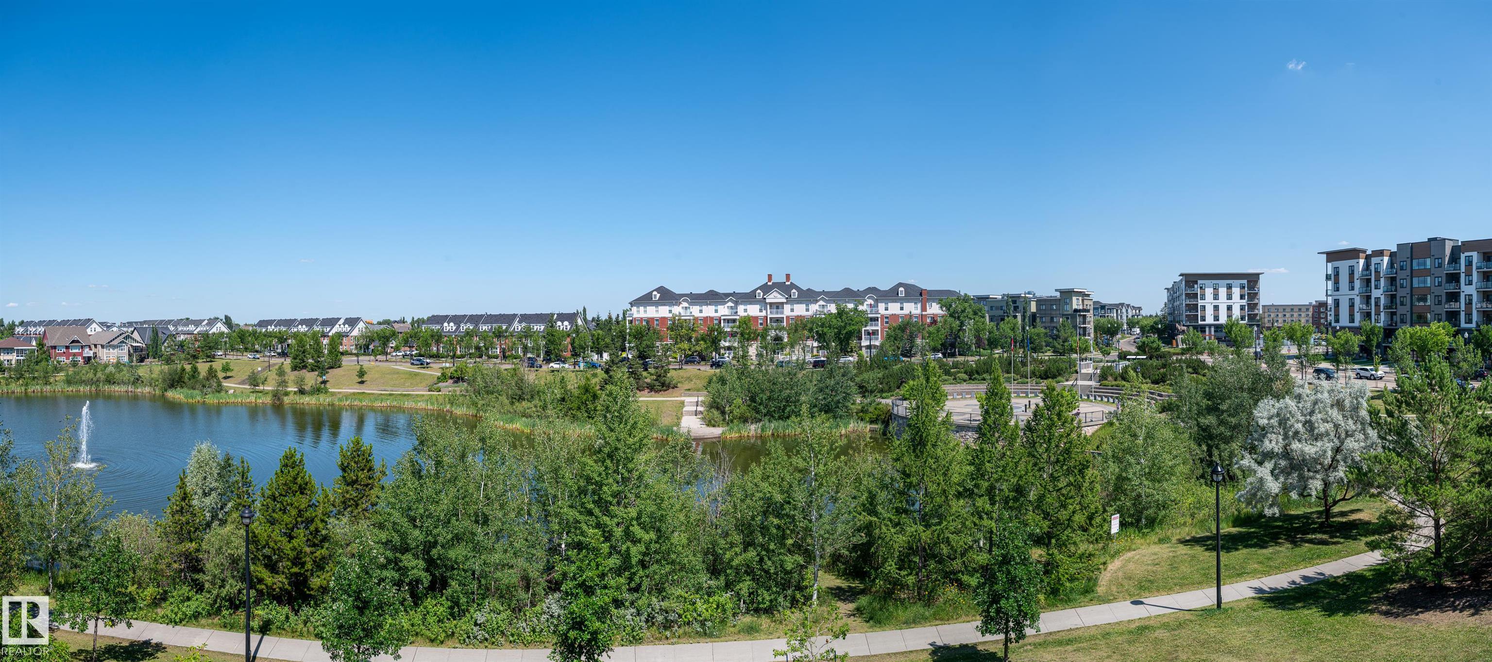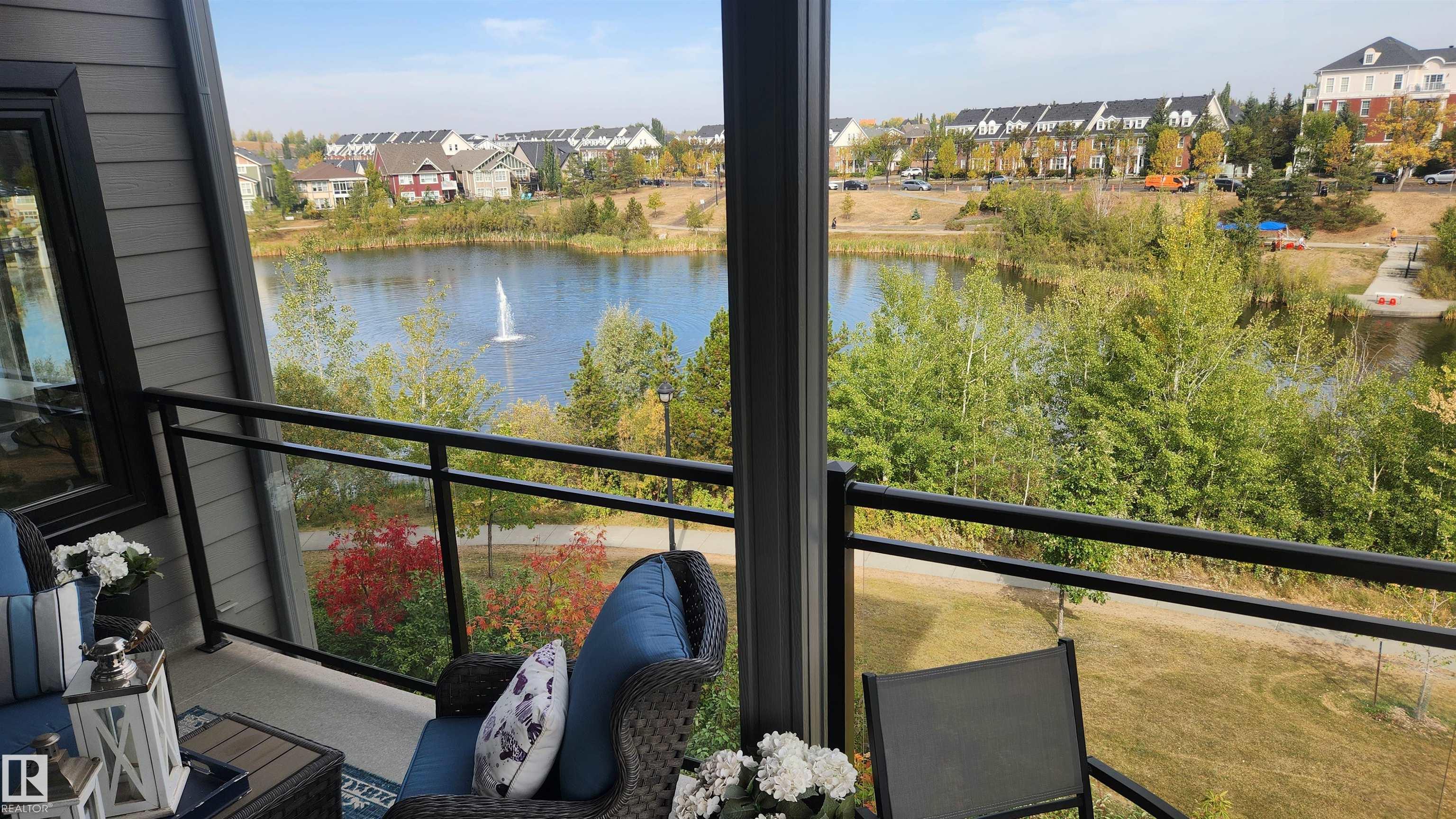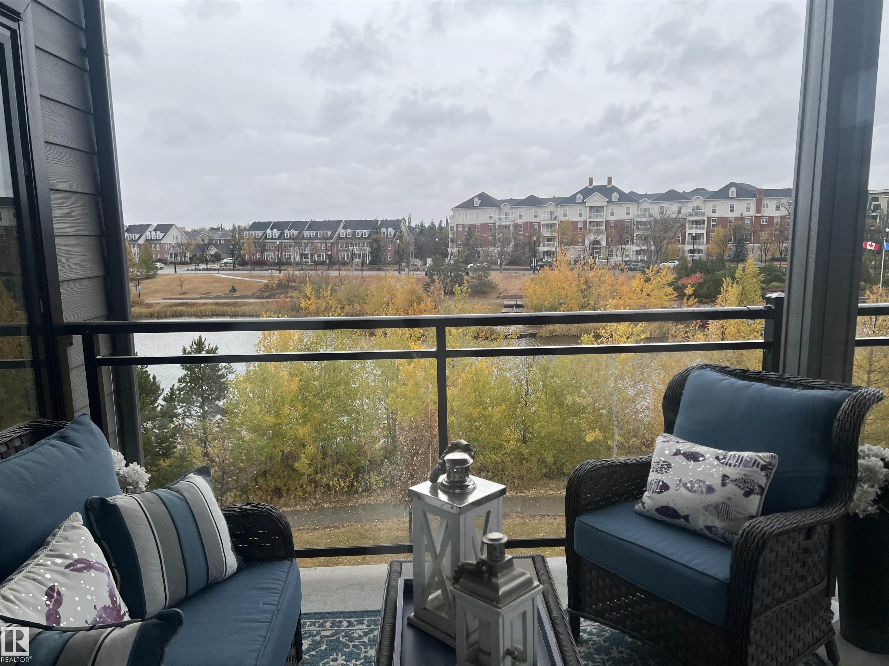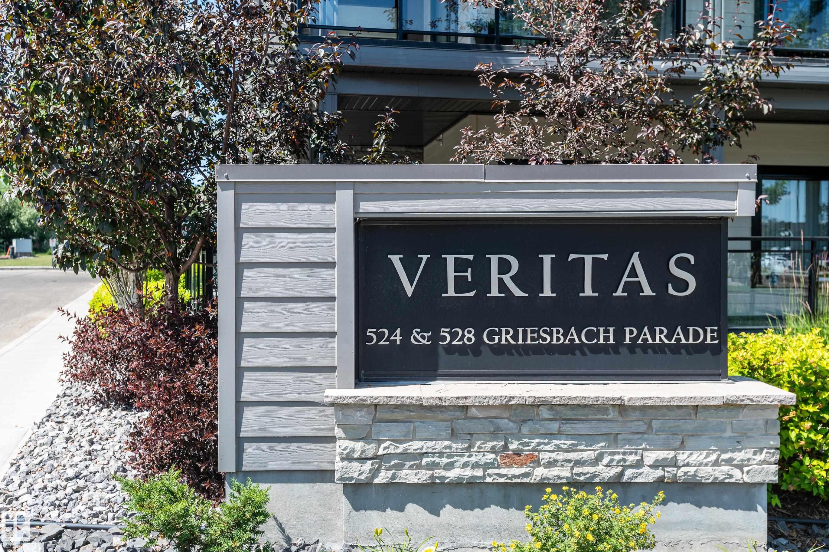 Extensively upgraded lake-facing corner unit in sought-after Veritas, offering awe-inspiring views from every angle. This immaculate one-owner home features 2 spacious bdrms, 2 baths, & a bright den. Enjoy sunny mornings & shady evenings on wrap-around deck. The two-tone kitchen is a standout with upgraded appliances, a tile backsplash, & a 6? extended island with added cabinetry on both sides. Designer lighting, magazine-worthy layout & décor, & a spa-inspired ensuite. A/C. Over $25,000 in thoughtful upgrades also include barn doors, premium flooring, custom shower tile, additional quartz countertops, blinds, hardware, & a second (surface) parking stall that adds everyday convenience, plus a heated stall with secure storage. Pride of ownership shines throughout?clean, cozy, and stylish. Located steps from countless amenities in one of Edmonton?s most desirable communities, this home offers a seamless blend of comfort, elegance, and breathtaking views. Style meets serenity in this Griesbach gem!