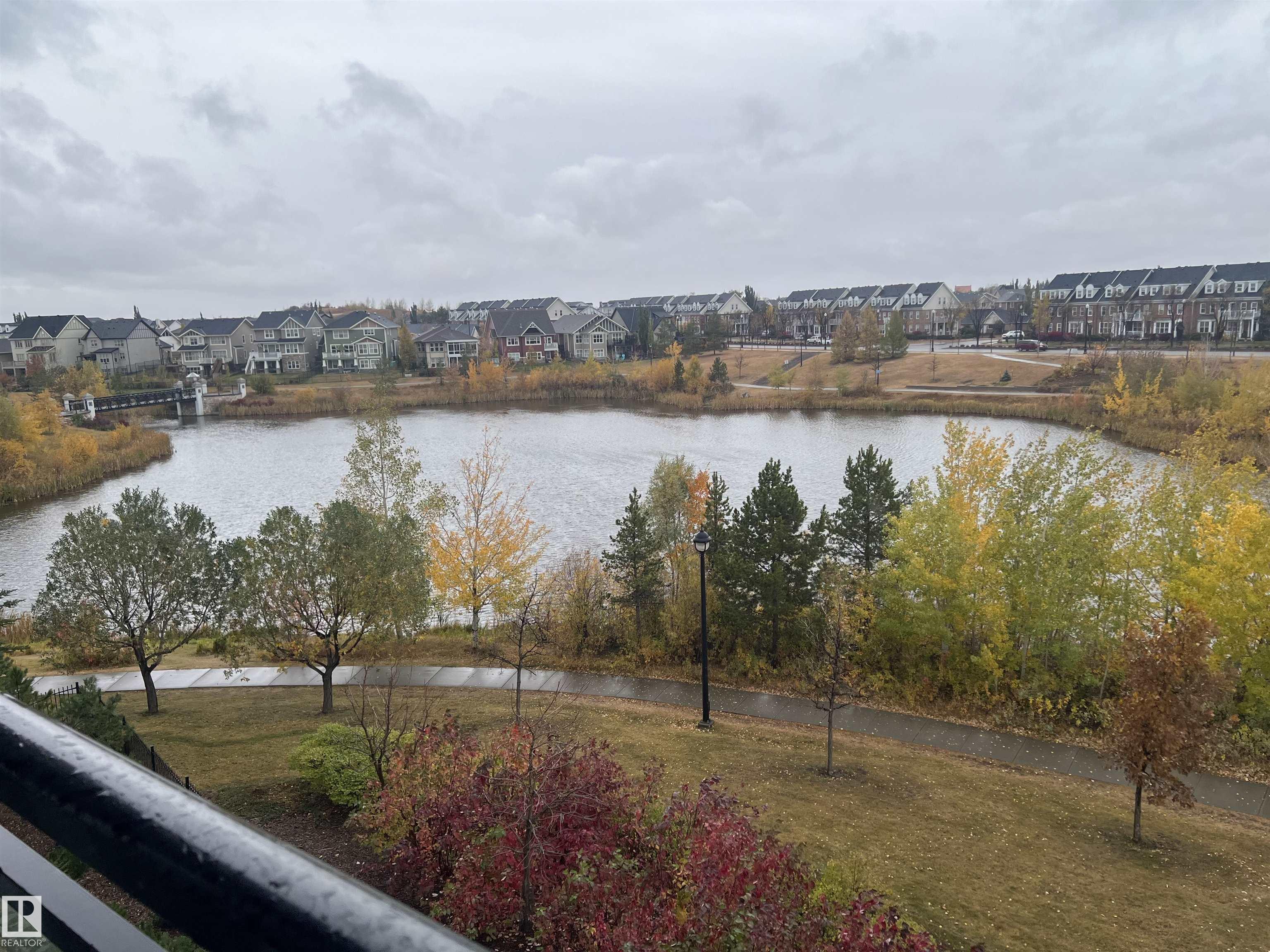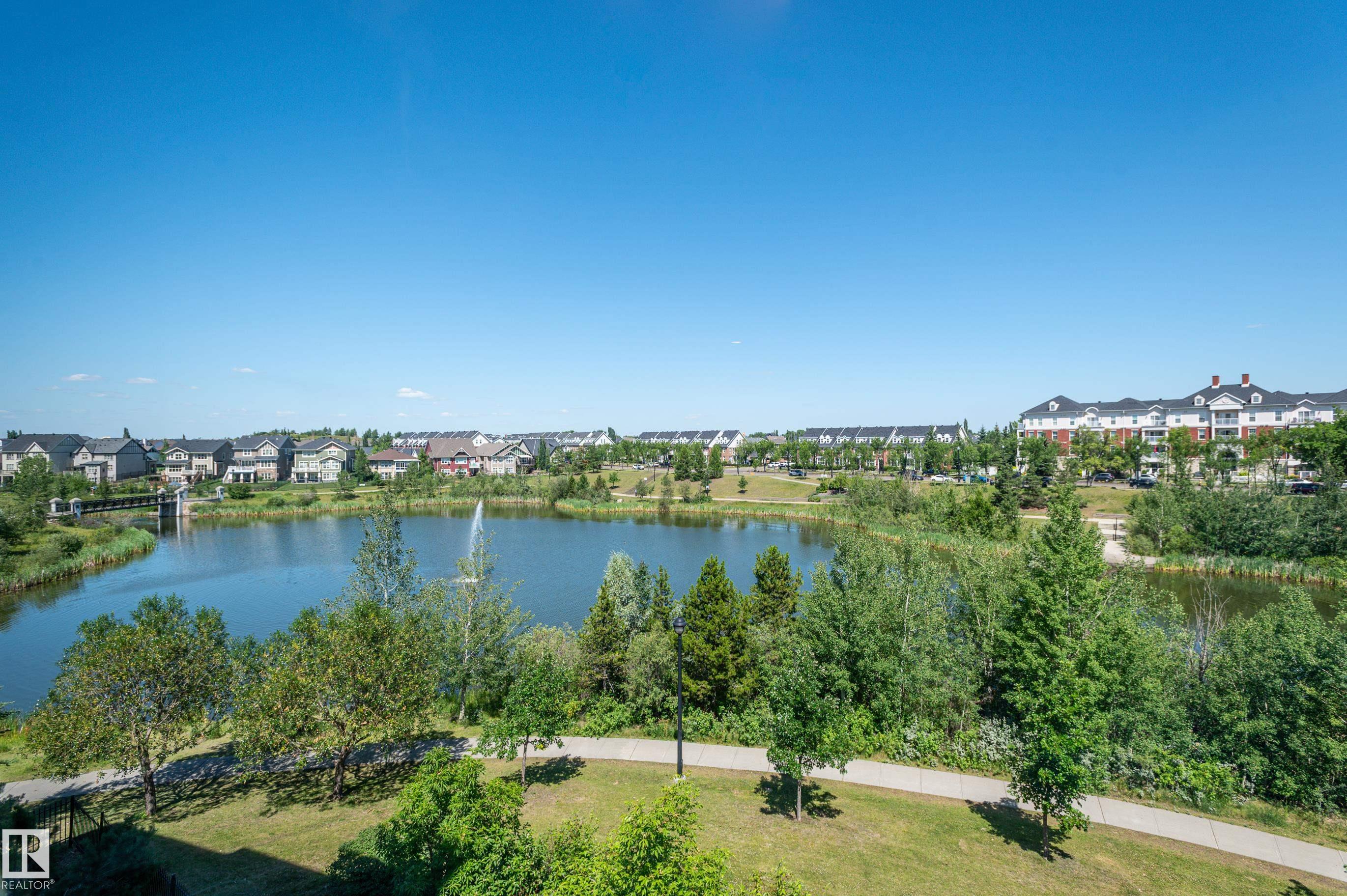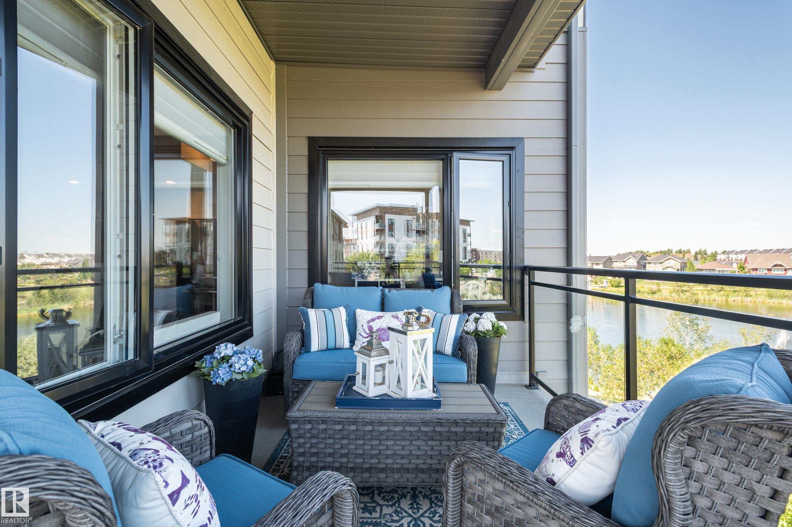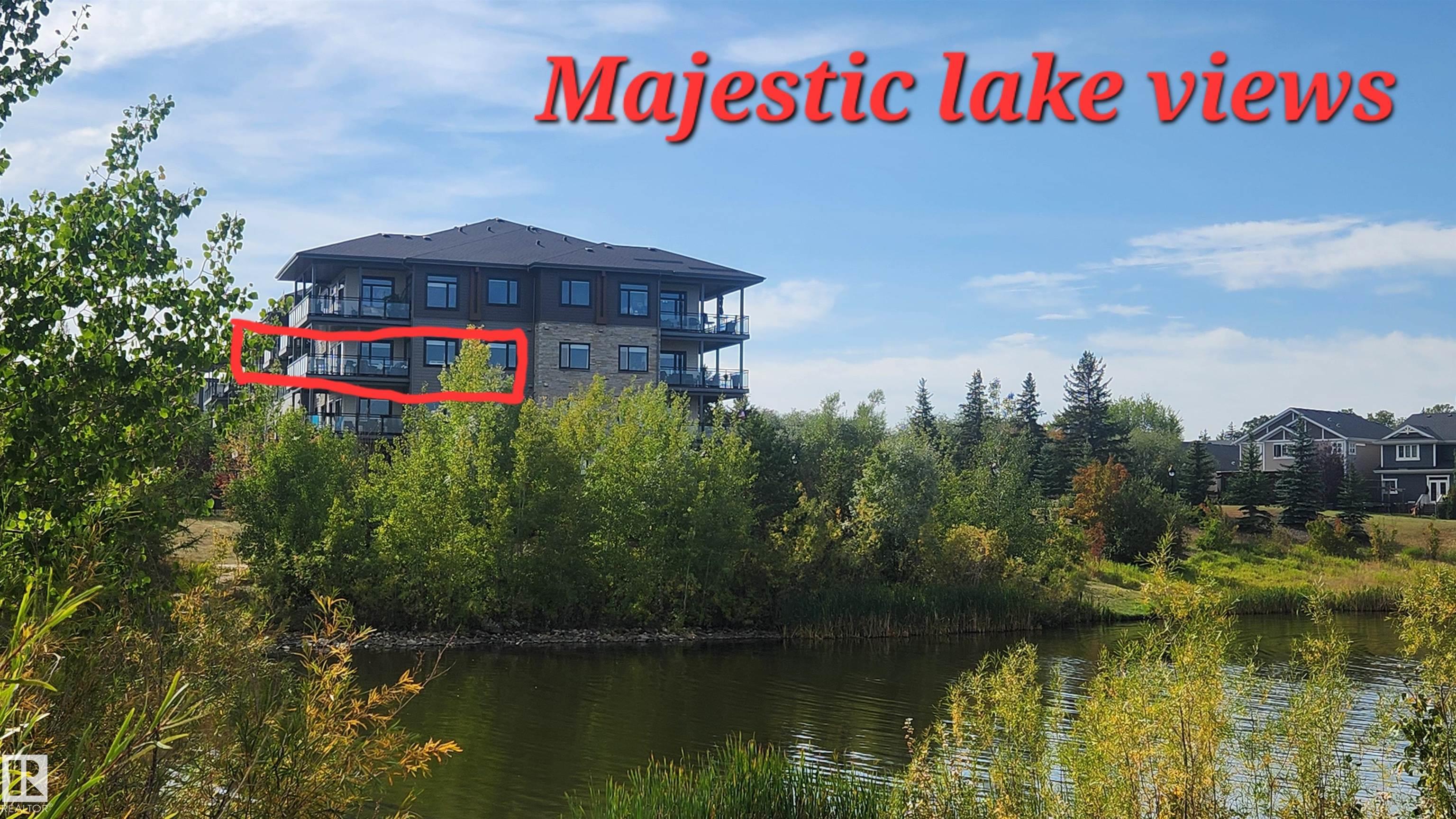 Extensively upgraded lake-facing corner unit in sought-after Veritas, offering awe-inspiring views from every angle. This immaculate one-owner home features 2 spacious bdrms, 2 baths, & a bright den. Enjoy sunny mornings & shady evenings on wrap-around deck. The two-tone kitchen is a standout with upgraded appliances, a tile backsplash, & a 6? extended island with added cabinetry on both sides. Designer lighting, magazine-worthy layout & décor, & a spa-inspired ensuite. A/C. Over $25,000 in thoughtful upgrades also include barn doors, premium flooring, custom shower tile, additional quartz countertops, blinds, hardware, & a second (surface) parking stall that adds everyday convenience, plus a heated stall with secure storage. Pride of ownership shines throughout?clean, cozy, and stylish. Located steps from countless amenities in one of Edmonton?s most desirable communities, this home offers a seamless blend of comfort, elegance, and breathtaking views. Style meets serenity in this Griesbach gem!