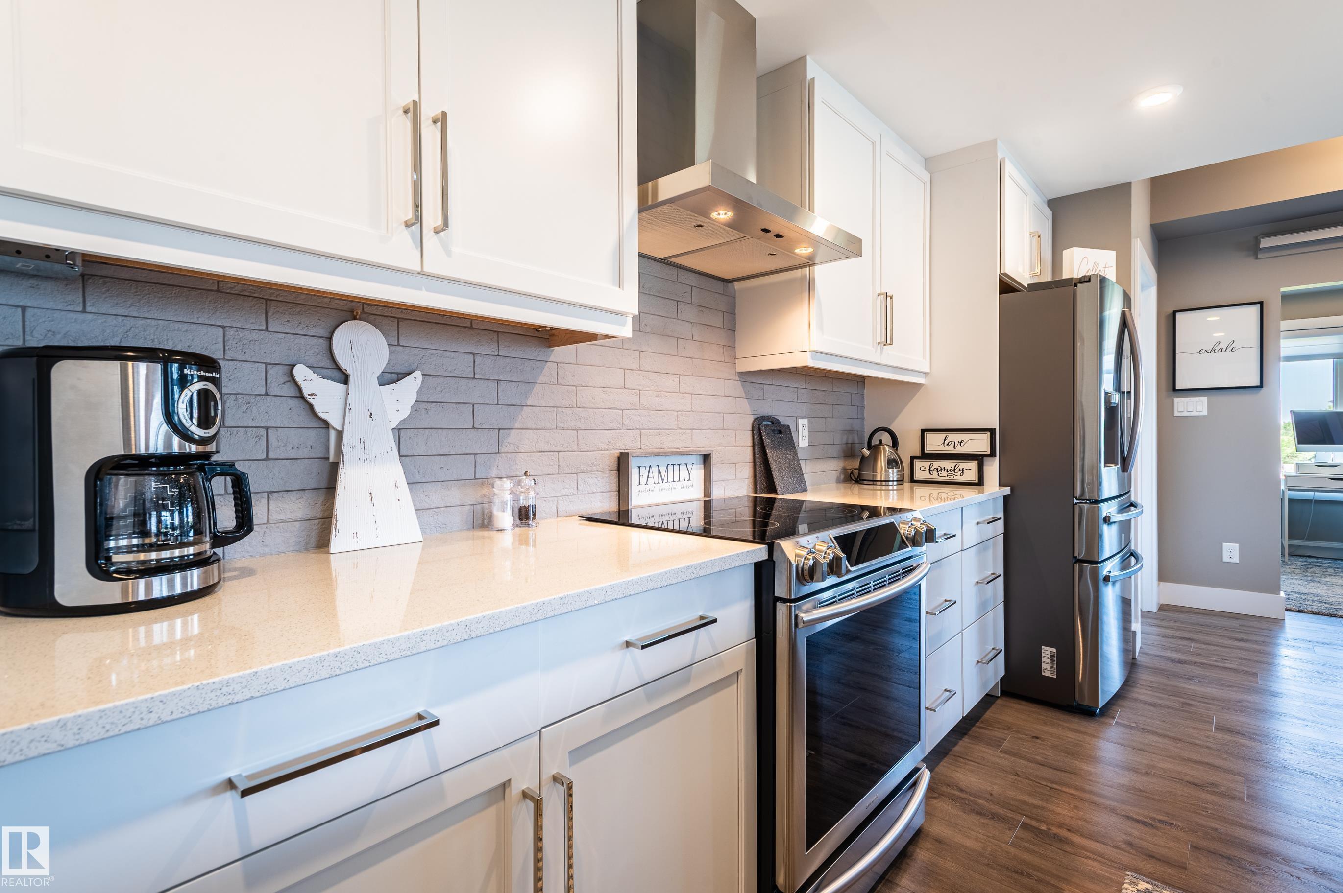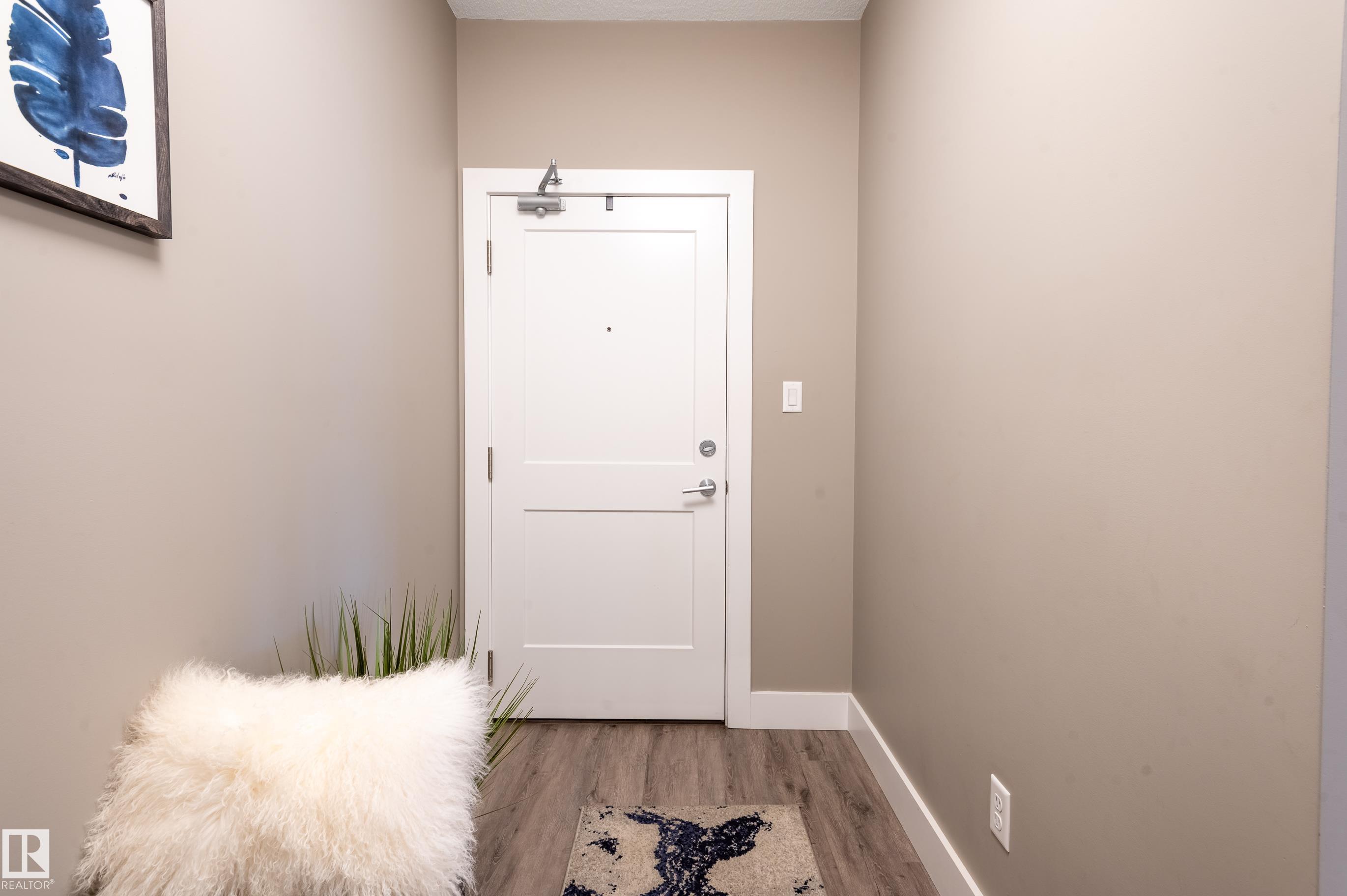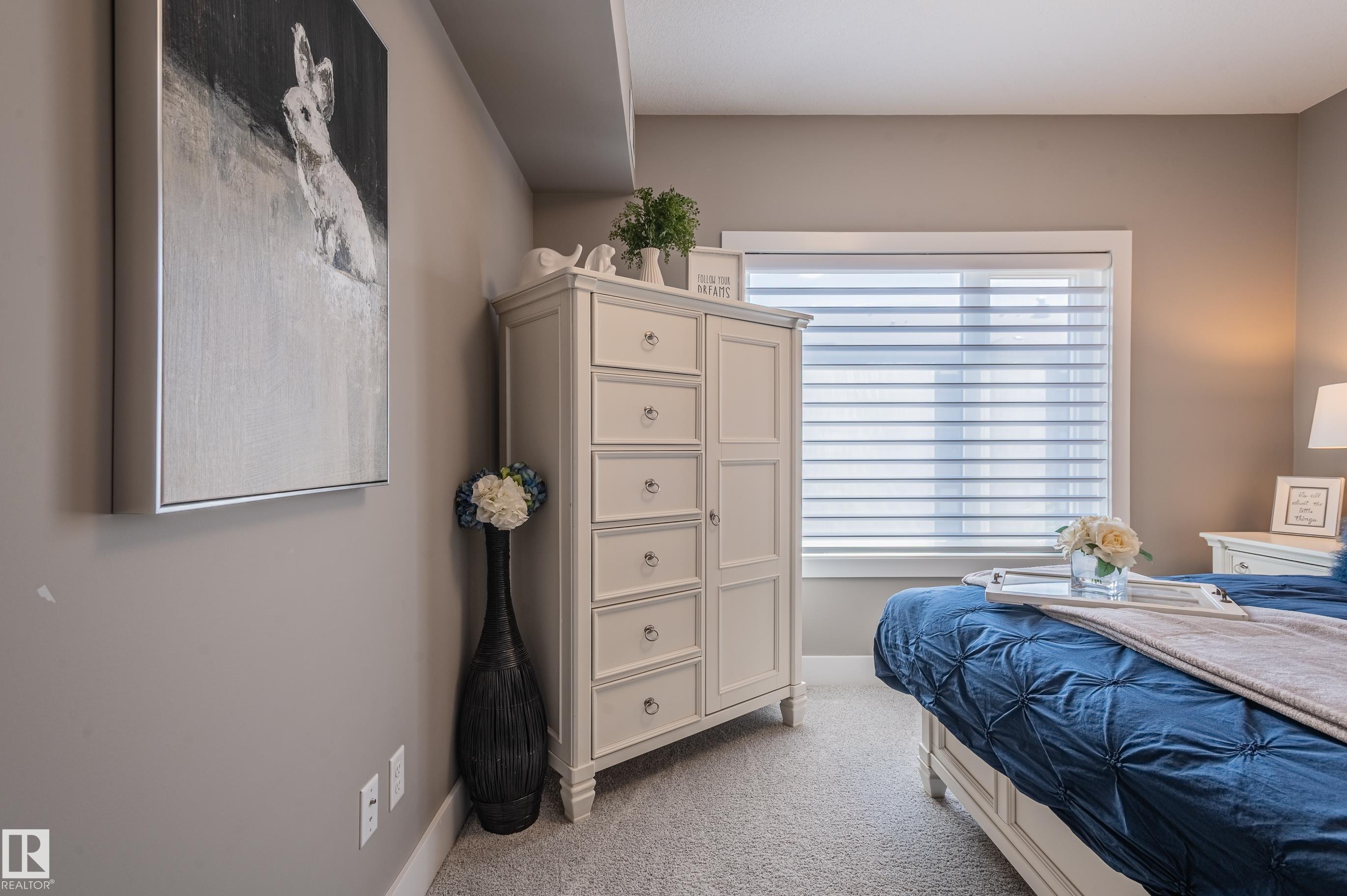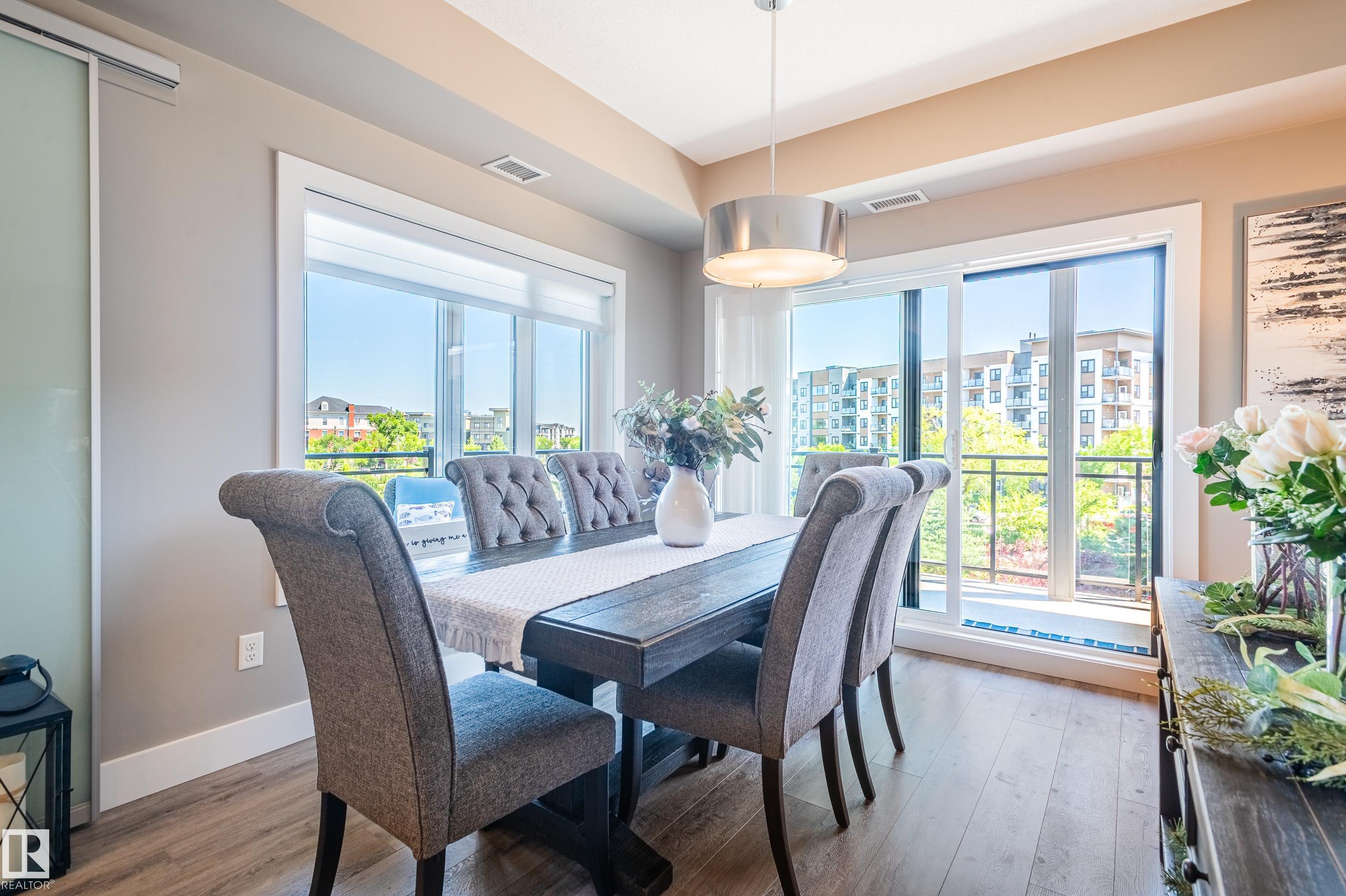 Extensively upgraded lake-facing corner unit in sought-after Veritas, offering awe-inspiring views from every angle. This immaculate one-owner home features 2 spacious bdrms, 2 baths, & a bright den. Enjoy sunny mornings & shady evenings on wrap-around deck. The two-tone kitchen is a standout with upgraded appliances, a tile backsplash, & a 6? extended island with added cabinetry on both sides. Designer lighting, magazine-worthy layout & décor, & a spa-inspired ensuite. A/C. Over $25,000 in thoughtful upgrades also include barn doors, premium flooring, custom shower tile, additional quartz countertops, blinds, hardware, & a second (surface) parking stall that adds everyday convenience, plus a heated stall with secure storage. Pride of ownership shines throughout?clean, cozy, and stylish. Located steps from countless amenities in one of Edmonton?s most desirable communities, this home offers a seamless blend of comfort, elegance, and breathtaking views. Style meets serenity in this Griesbach gem!