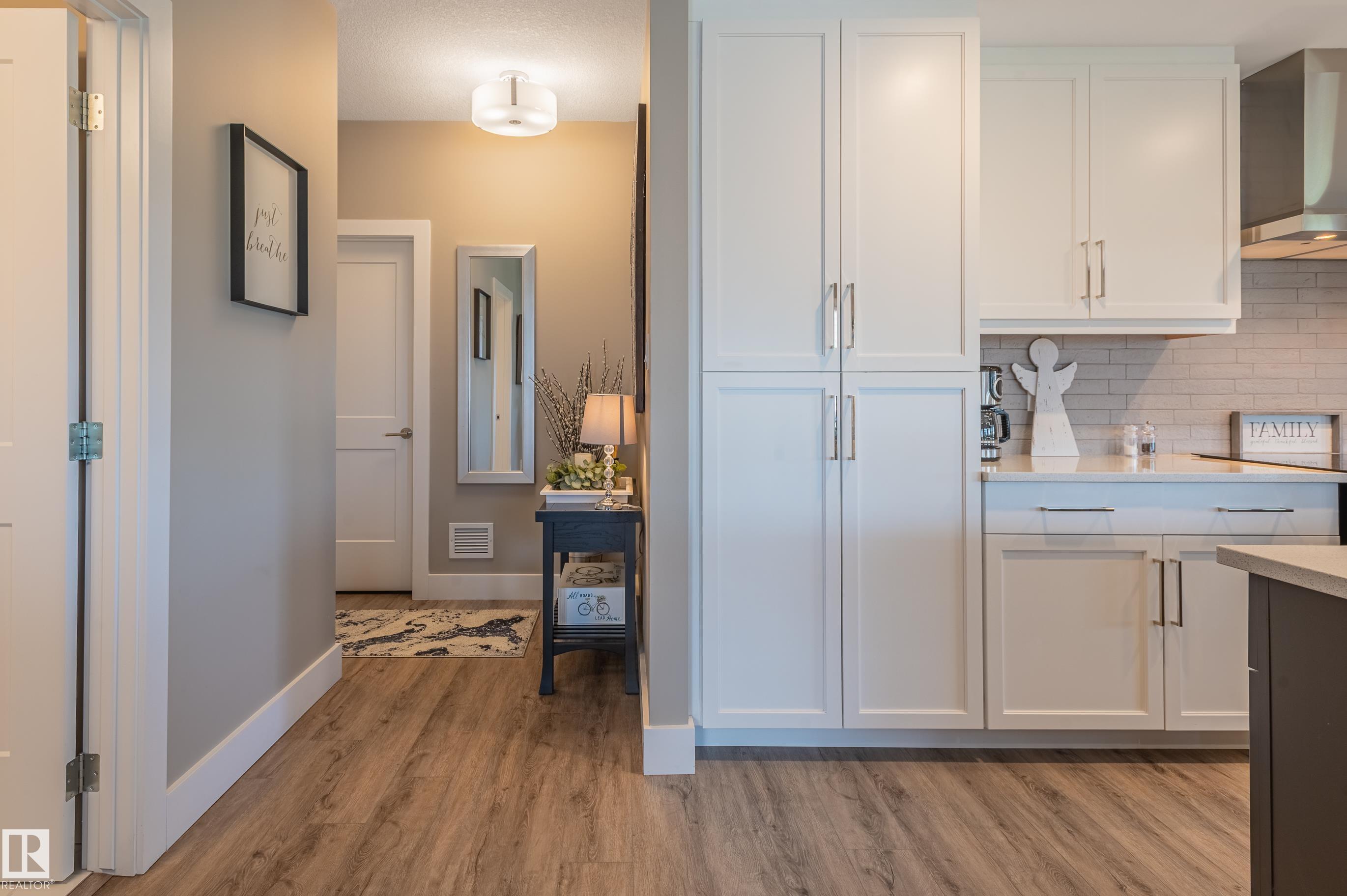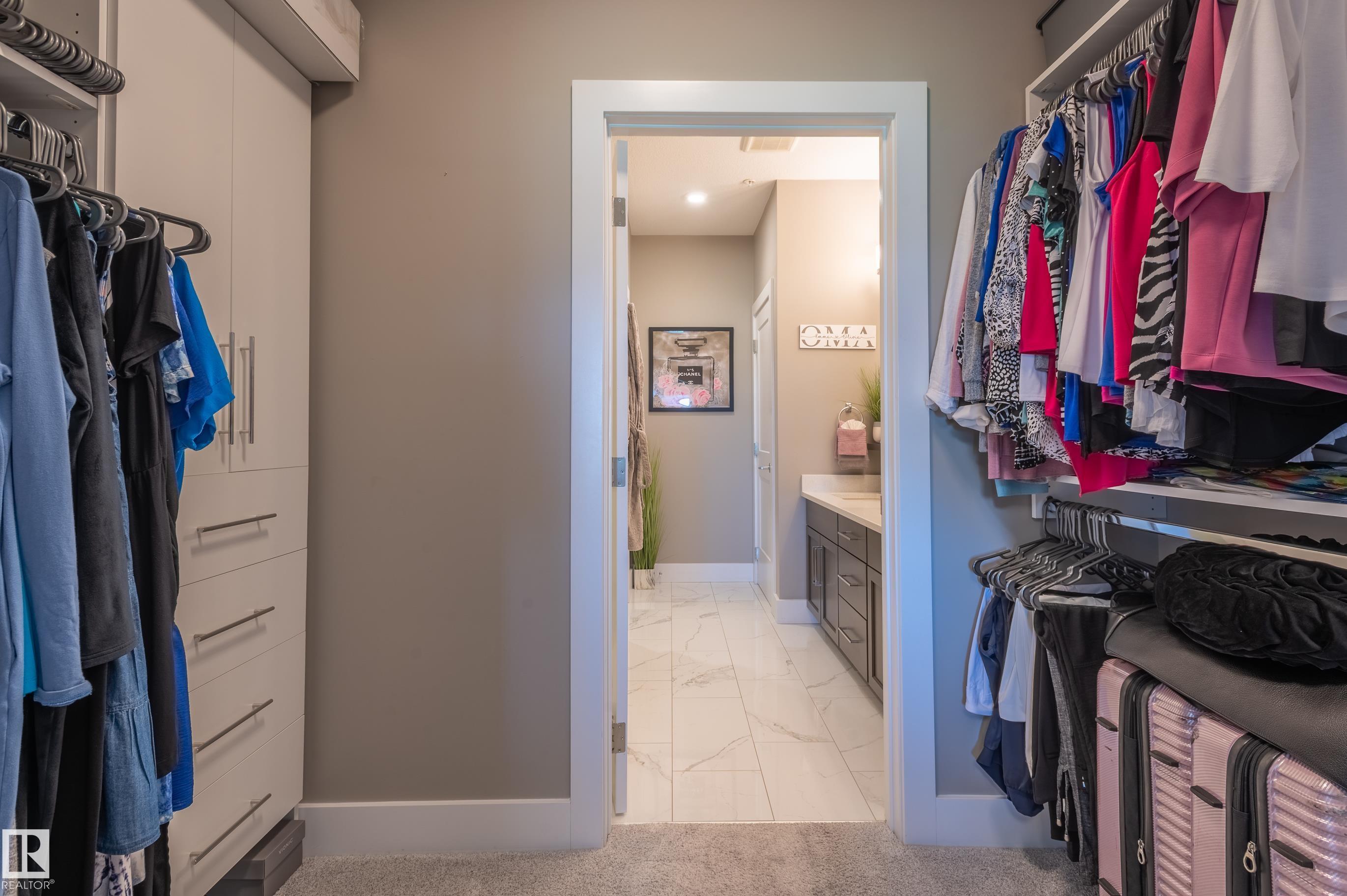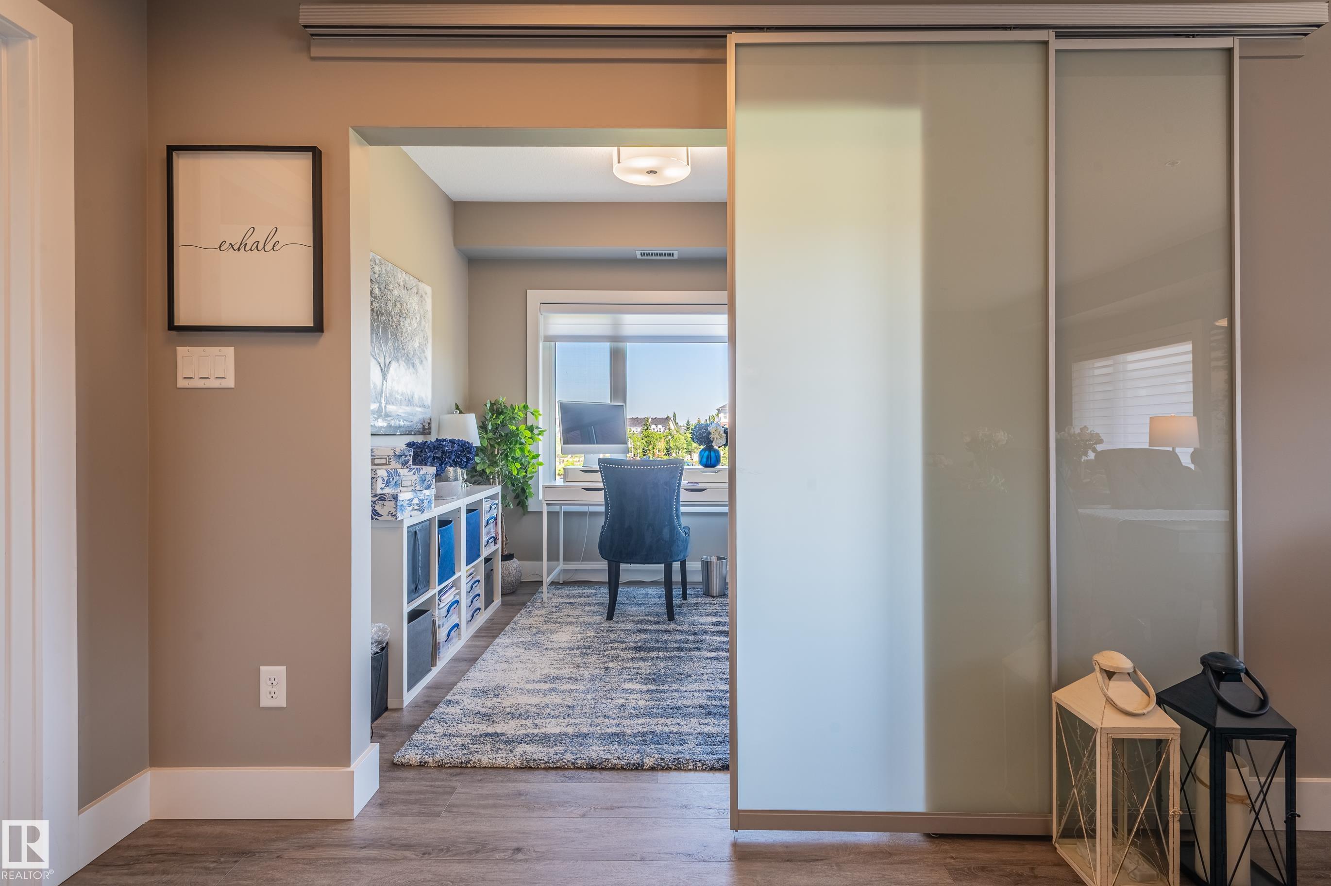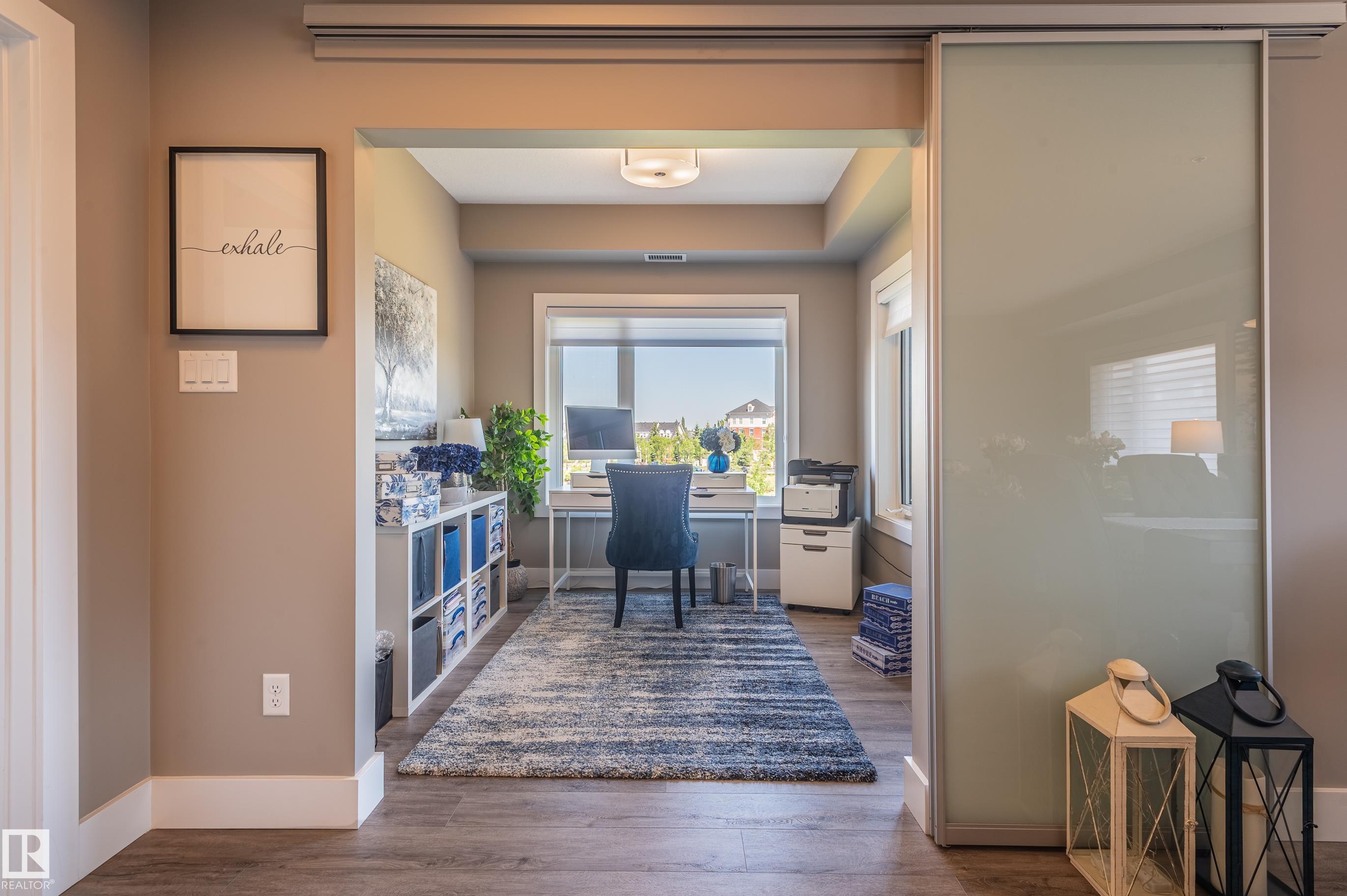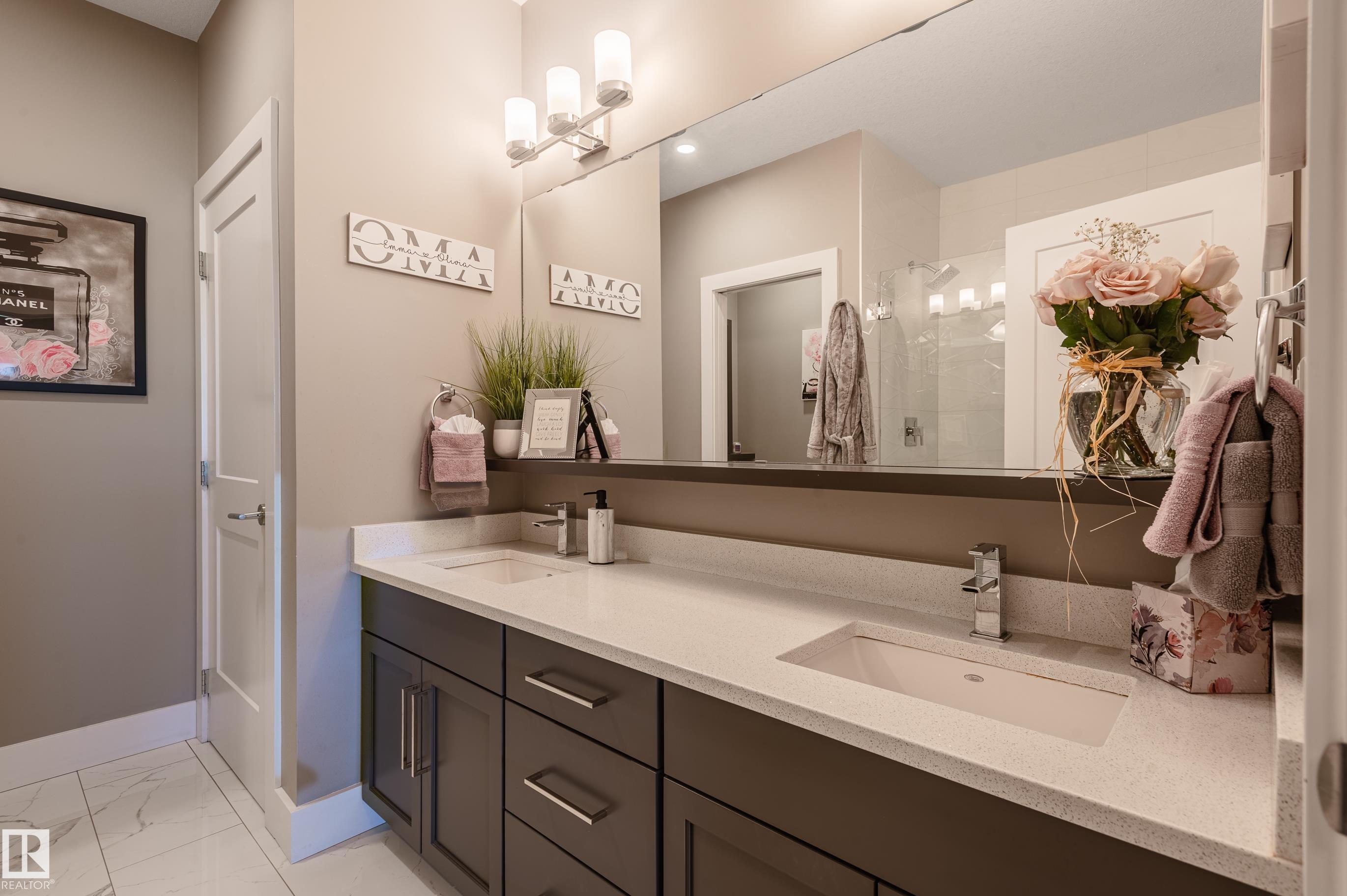 Extensively upgraded lake-facing corner unit in sought-after Veritas, offering awe-inspiring views from every angle. This immaculate one-owner home features 2 spacious bdrms, 2 baths, & a bright den. Enjoy sunny mornings & shady evenings on wrap-around deck. The two-tone kitchen is a standout with upgraded appliances, a tile backsplash, & a 6? extended island with added cabinetry on both sides. Designer lighting, magazine-worthy layout & décor, & a spa-inspired ensuite. A/C. Over $25,000 in thoughtful upgrades also include barn doors, premium flooring, custom shower tile, additional quartz countertops, blinds, hardware, & a second (surface) parking stall that adds everyday convenience, plus a heated stall with secure storage. Pride of ownership shines throughout?clean, cozy, and stylish. Located steps from countless amenities in one of Edmonton?s most desirable communities, this home offers a seamless blend of comfort, elegance, and breathtaking views. Style meets serenity in this Griesbach gem!
