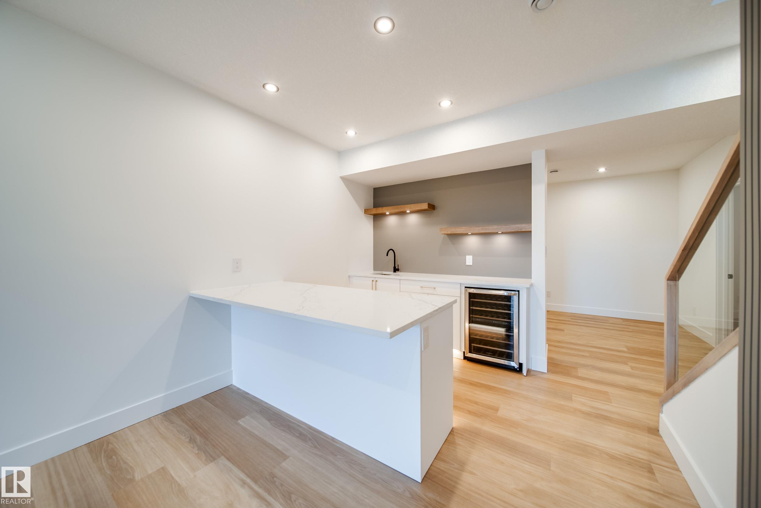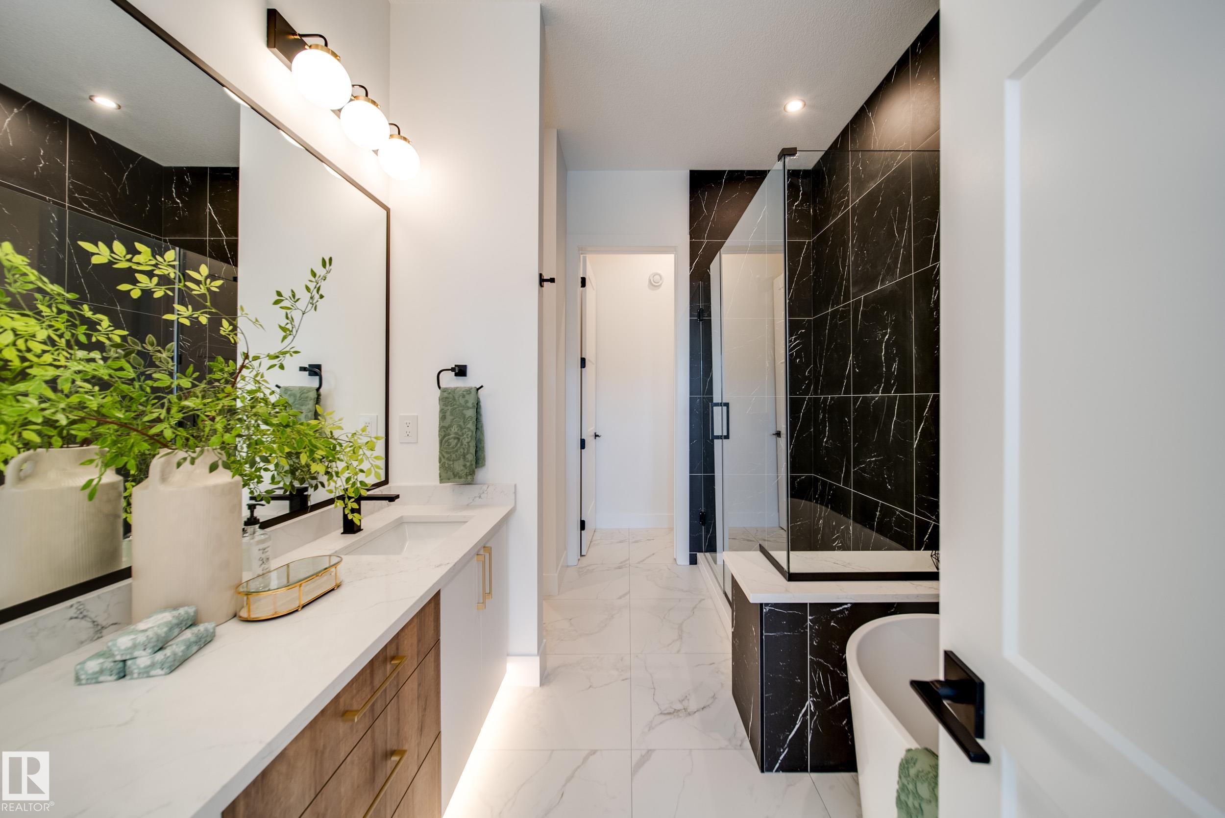 The Wait is Over! Stunning Brand-New Walkout Bungalow built by Spectrum Homes backing the POND! This luxurious home showcases high-end finishes, exceptional craftsmanship, and elegant design throughout. Featuring 10-foot ceilings and 8-foot doors, it offers a grand and open feel. The chef-inspired kitchen boasts a double waterfall island, full matching quartz backsplash, and built-in upgraded stainless steel appliances. The open-concept living area is warm and inviting, with spectacular pond views. The massive primary suite is a true retreat with a spa-like five-piece ensuite and a spacious walk-in closet. An additional bedroom, bathroom, and laundry complete the main floor. Upstairs features a BONUS ROOM with a fireplace and bar! Perfect for entertaining. The fully finished basement offers even more space, with 2 additional bedrooms, a full bath, a wet bar, and a large rec room. Located in a prime area close to shopping, schools, and amenities, this home is a rare opportunity. Don?t miss out!