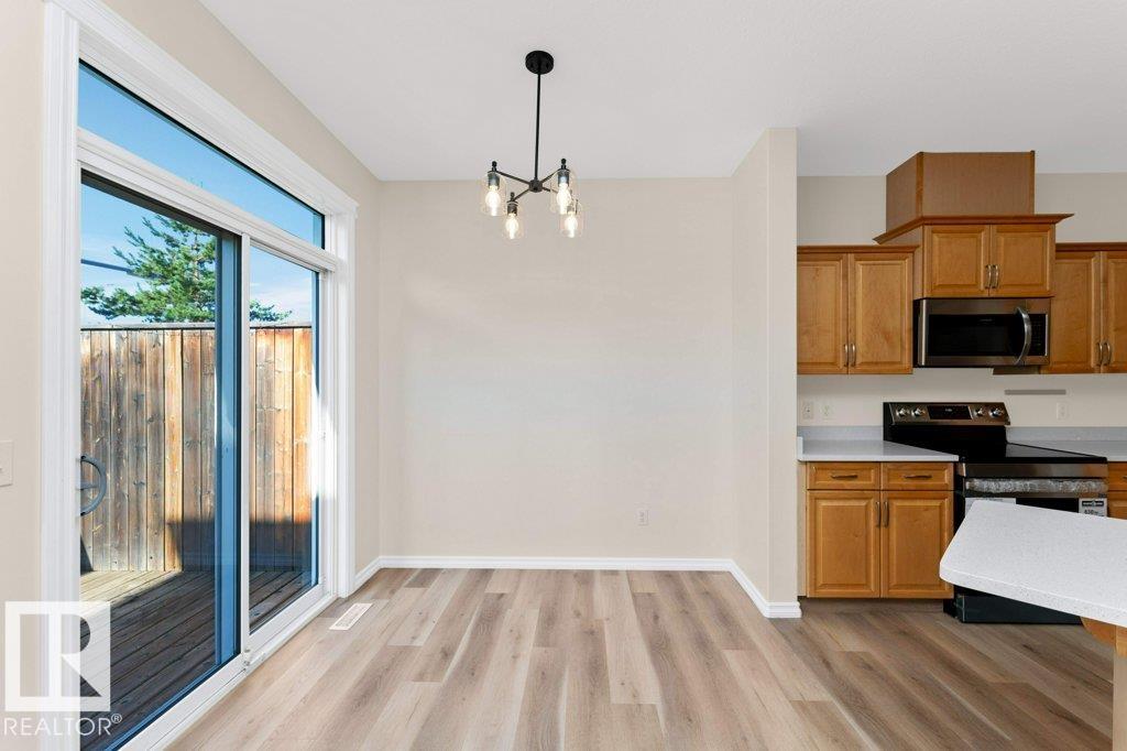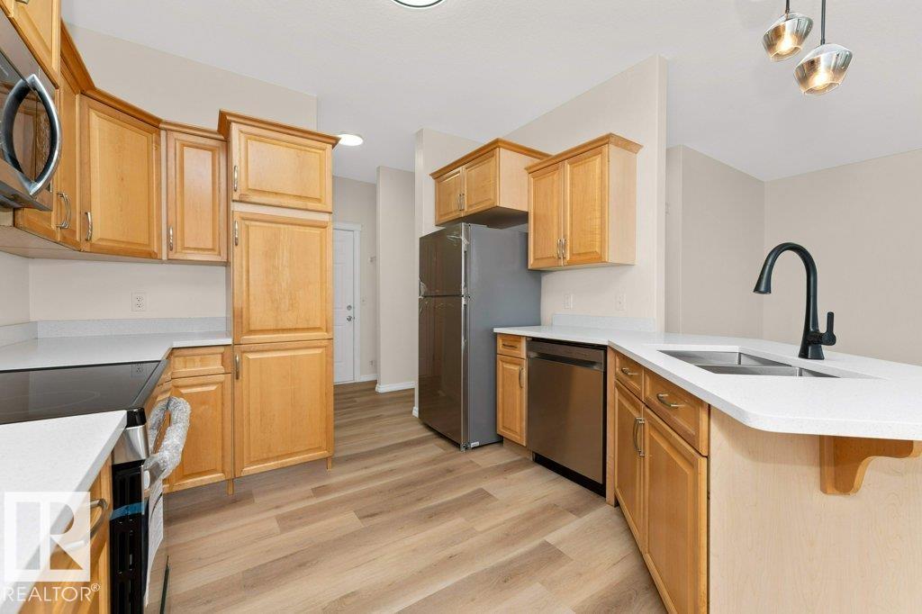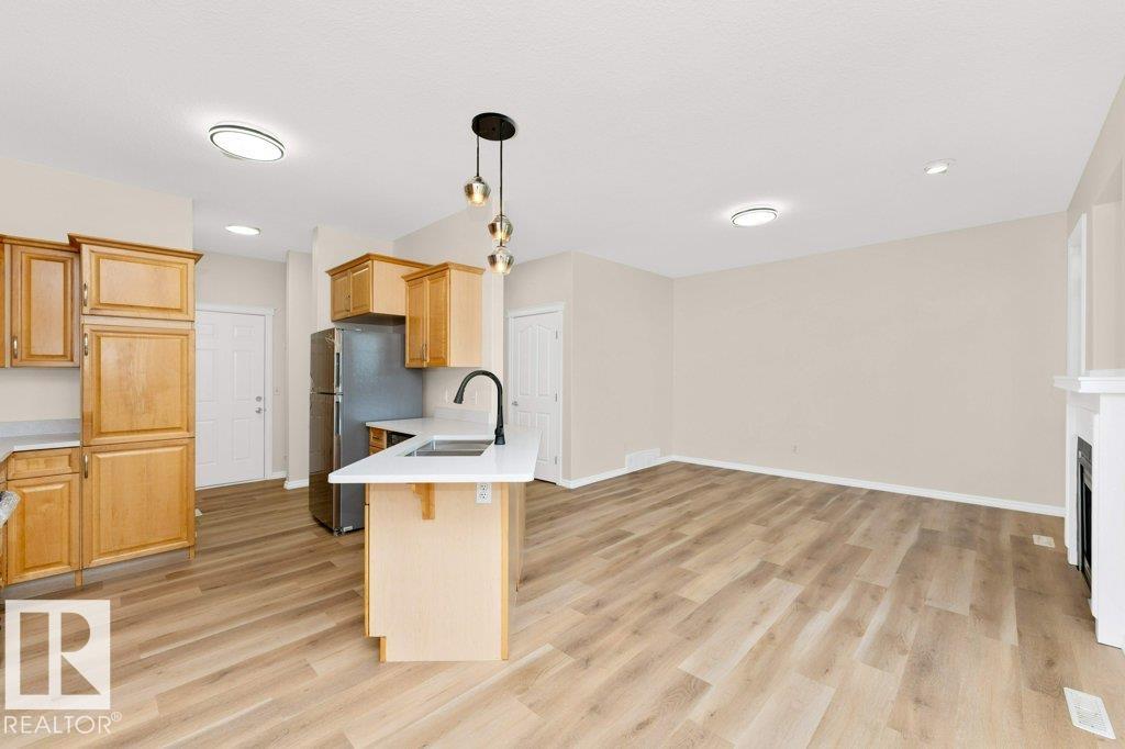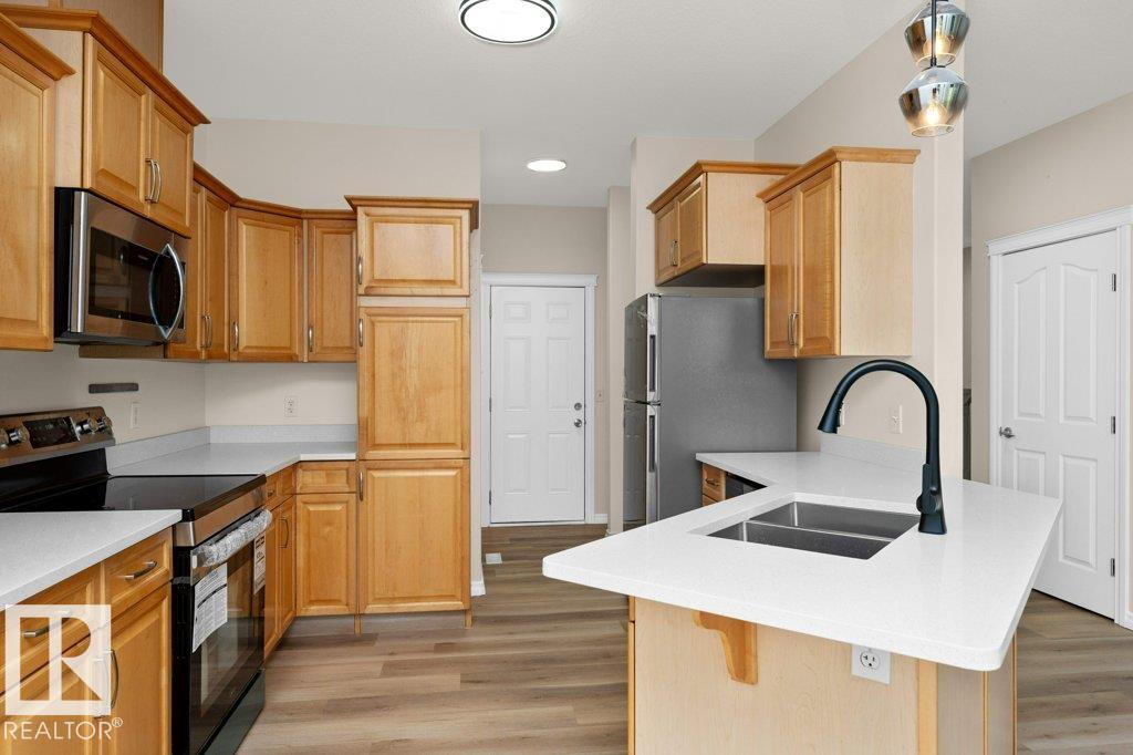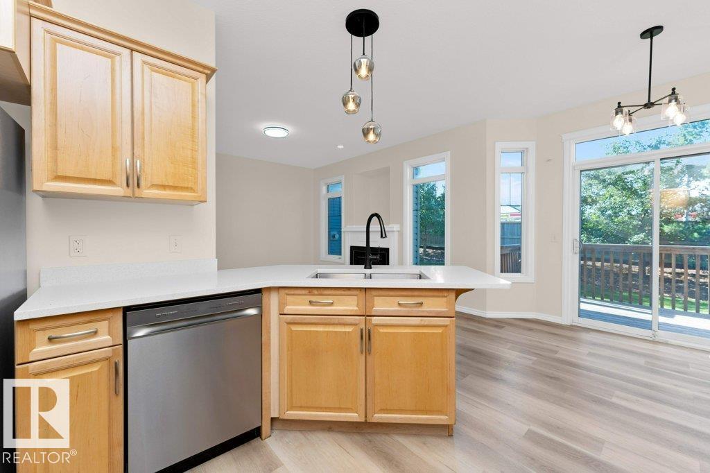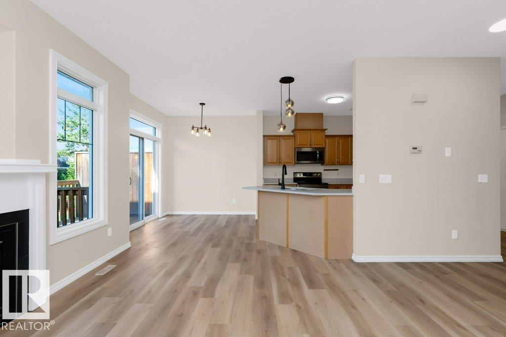 Impeccably upgraded half-duplex in the desirable Ellerslie neighborhood boasting a Double Attached Garage. The main floor offers a seamless open concept living space with a stylish foyer, gourmet kitchen equipped with new Stainless Steel appliances, Quartz Countertops a breakfast bar, a cozy living area with a Gas Fireplace, and a dining area with sliding patio doors leading to the deck. The upper level features a Primary Suite with dual closets and a 4-piece ensuite, along with two additional bedrooms, 4 piece bath, and convenient Upper Floor Laundry. The unfinished basement with Roughed In Double Plumbing presents an opportunity for customization. This meticulously updated home features BRAND NEW FURNACE, fresh paint throughout, new Vinyl Plank and Carpet, modern light fixtures, upgraded kitchen countertops, appliances and MORE! Positioned near schools, shopping, public transportation, and quick access to the Anthony Henday, this home is ready for you to move in and enjoy.