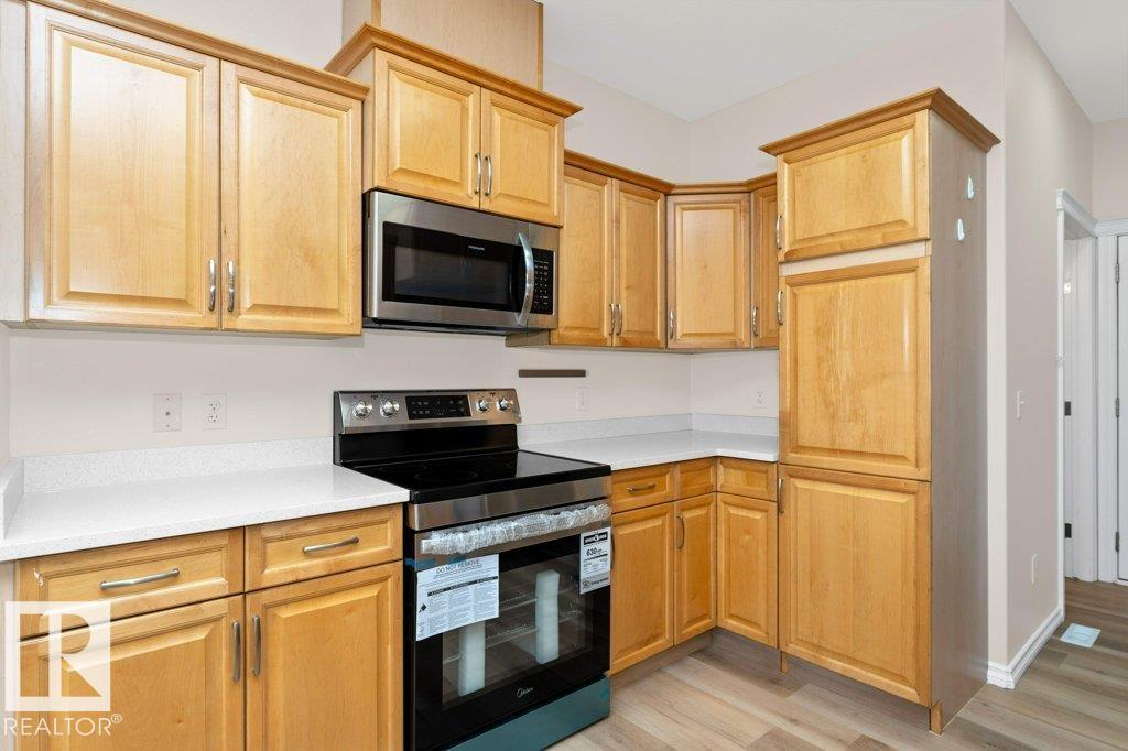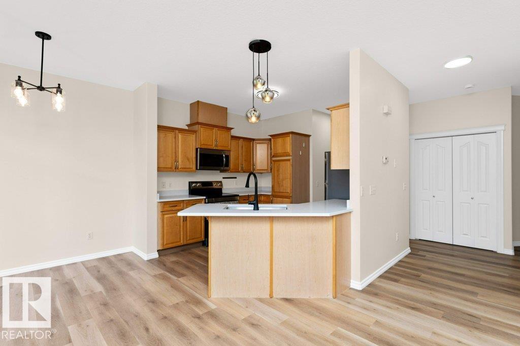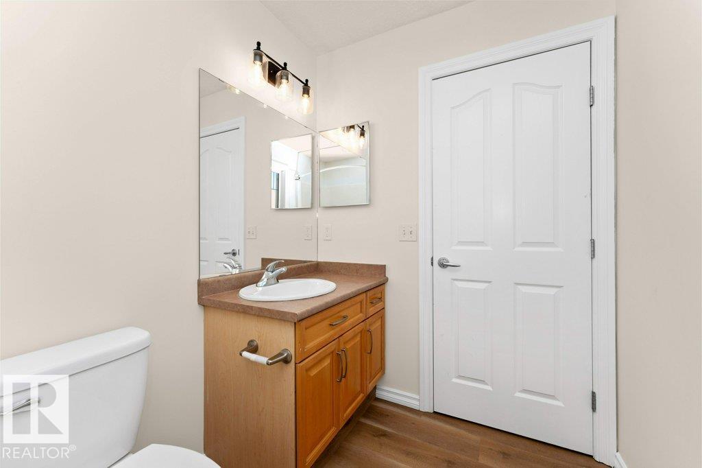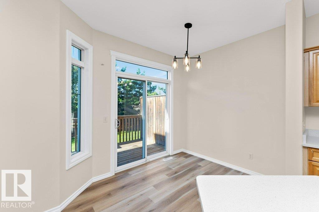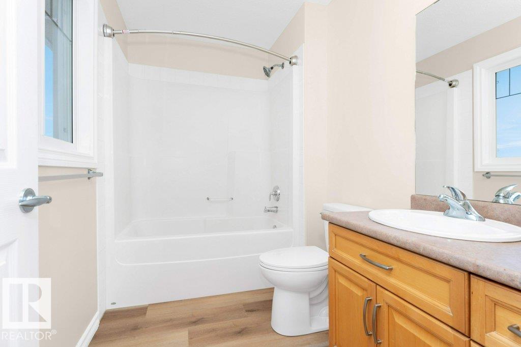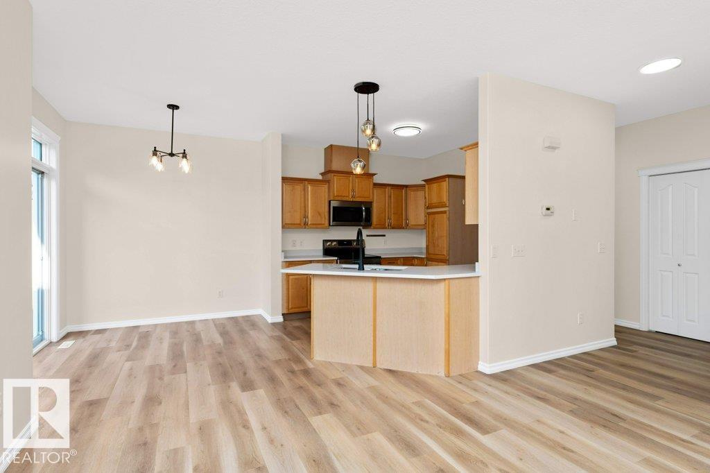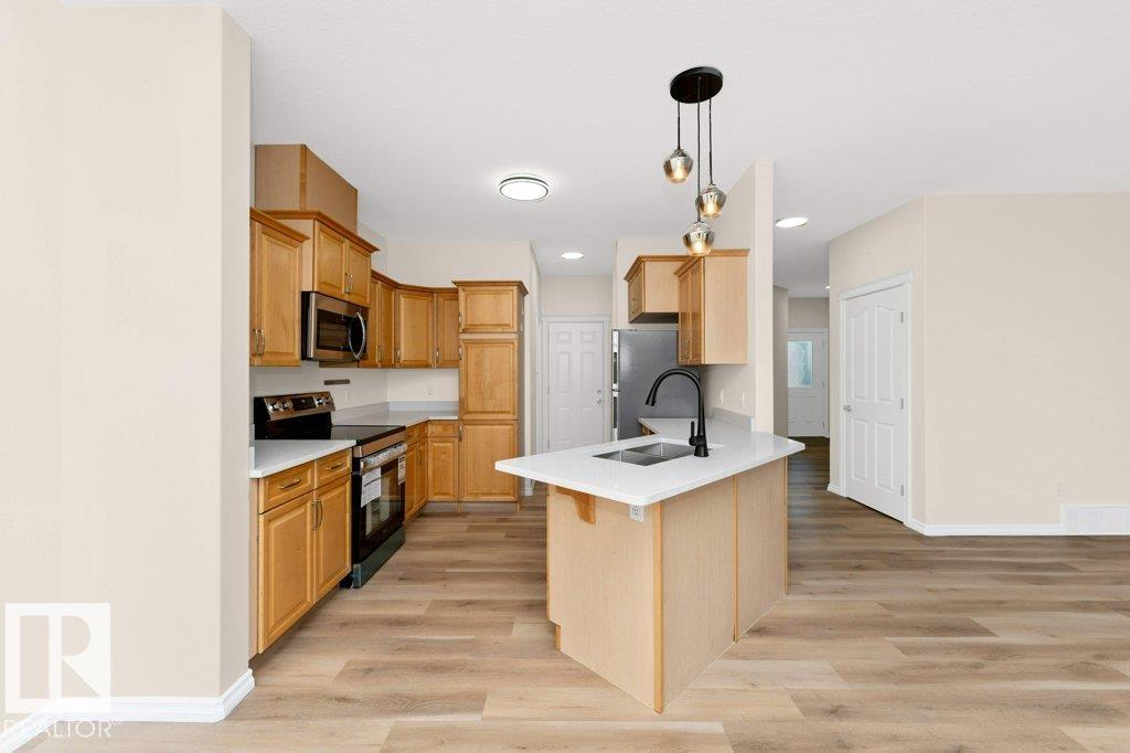 Impeccably upgraded half-duplex in the desirable Ellerslie neighborhood boasting a Double Attached Garage. The main floor offers a seamless open concept living space with a stylish foyer, gourmet kitchen equipped with new Stainless Steel appliances, Quartz Countertops a breakfast bar, a cozy living area with a Gas Fireplace, and a dining area with sliding patio doors leading to the deck. The upper level features a Primary Suite with dual closets and a 4-piece ensuite, along with two additional bedrooms, 4 piece bath, and convenient Upper Floor Laundry. The unfinished basement with Roughed In Double Plumbing presents an opportunity for customization. This meticulously updated home features BRAND NEW FURNACE, fresh paint throughout, new Vinyl Plank and Carpet, modern light fixtures, upgraded kitchen countertops, appliances and MORE! Positioned near schools, shopping, public transportation, and quick access to the Anthony Henday, this home is ready for you to move in and enjoy.