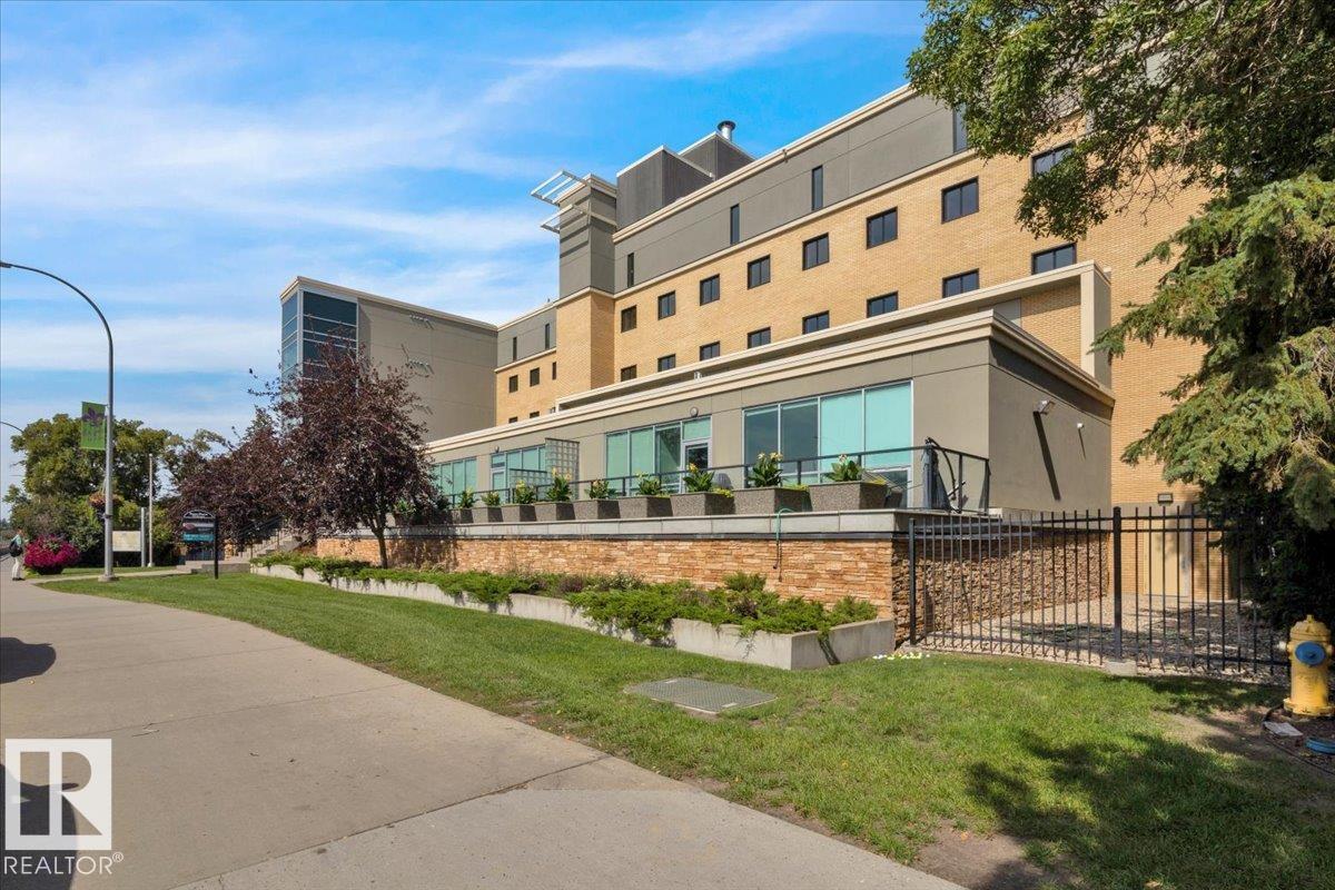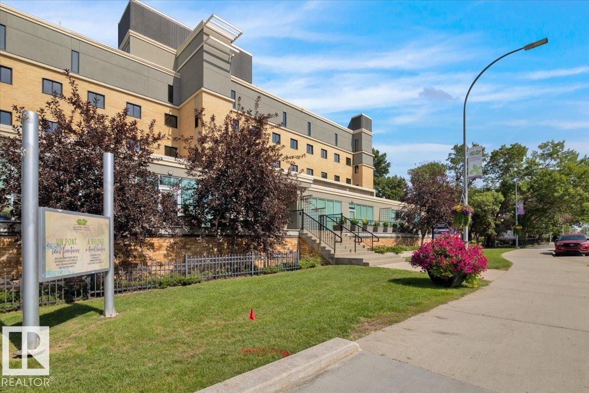 Trinity Pointe is a unique apartment complex nestled on the banks of Mill Creek ravine. This 1140 sq ft, 2 bedroom apartment features a great room style kitchen, dining & living area with floor to ceiling west facing windows showcasing the green space! The living area also features cork flooring, stainless appliances, full height cabinets, granite counters, a gas fireplace and access to the spacious balcony. The south facing primary bedroom has a walkthrough closet to a 4 pc ensuite bath & bedroom 2 has green space views and is located across the hall from a 3pc common bath. Completing this home are 2 underground heated parking stalls (tandem) & a huge private & secure storage cage just steps away from your home. Building amenities include a fitness room on the main level just off the lobby. Transit out the front door connects you to the LRT at Bonnie Doon or Whyte Avenue & U of A. Close proximity to many restaurants & services & easy access to the ravine/river valley trails & Mill Creek pool.