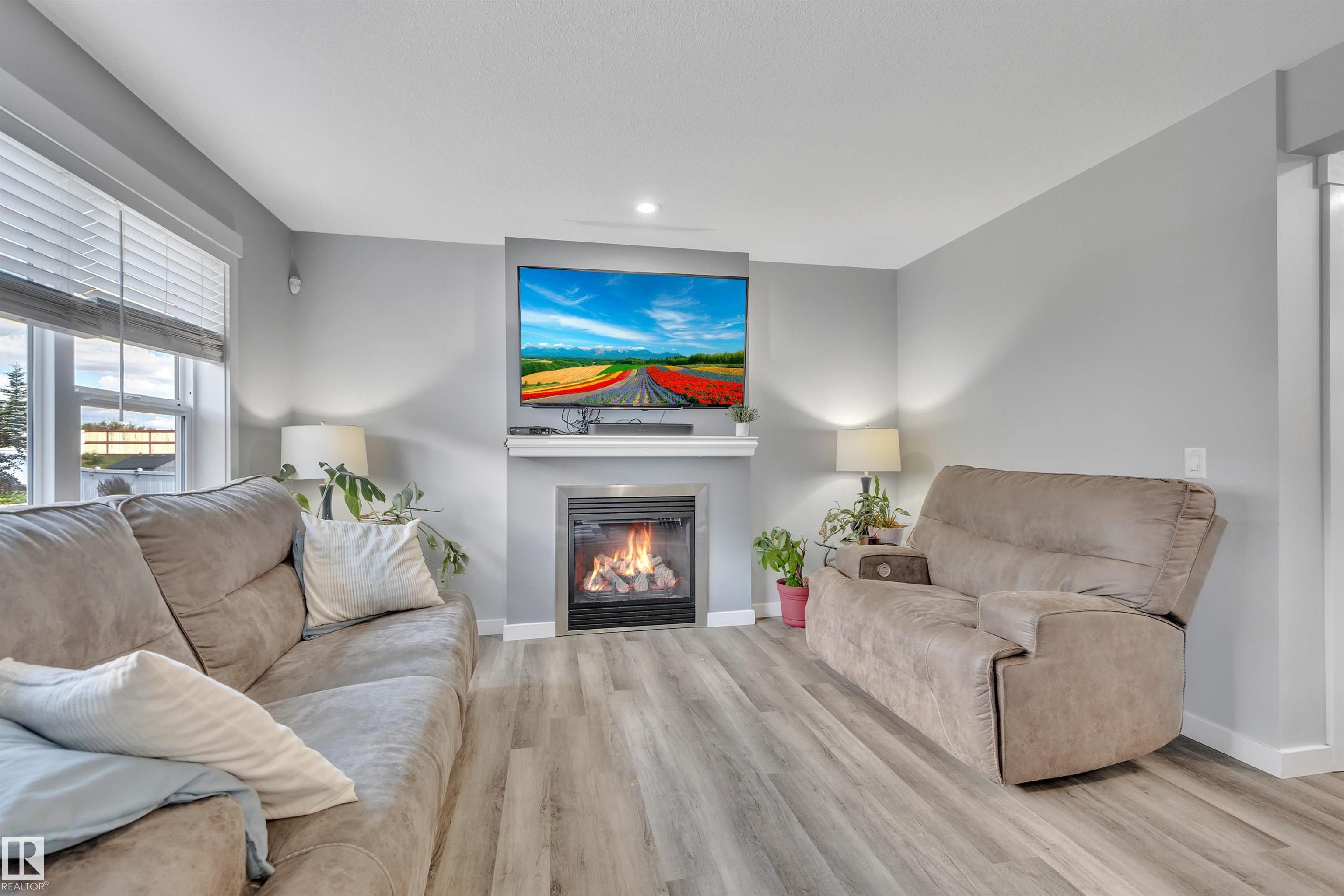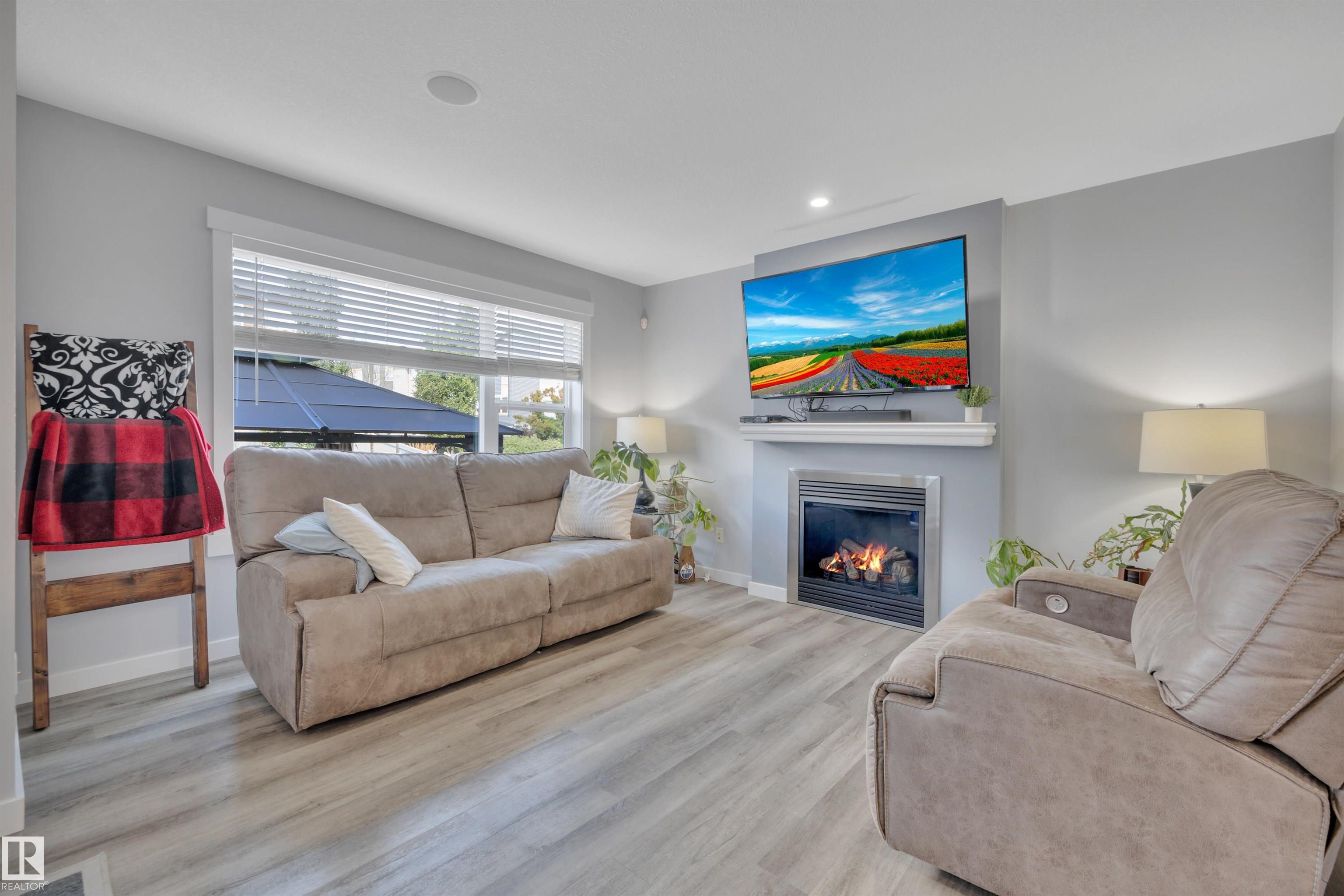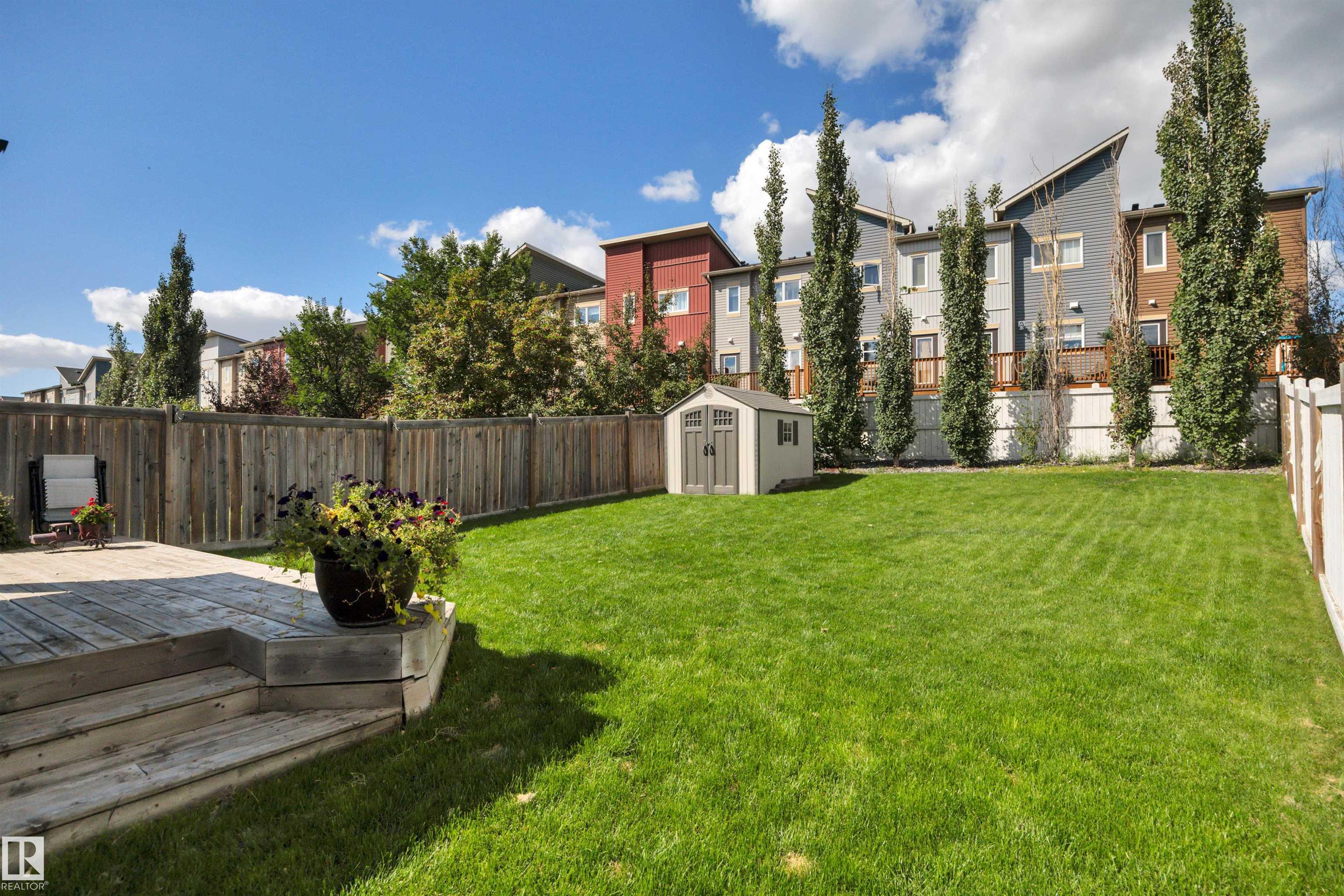 GORGEOUS YARD! FULLY FINISHED BASEMENT! A/C! NEW UPSTAIRS CARPET! MOVE IN READY! This 1476 sq ft 4 bed, 3.5 bath Homes by Avi duplex is a great option for those looking for a nice yard & room to grow! Large entryway leads to a functional galley style kitchen w/ raised barstool granite countertops, 9' ceiling, newer S/S appliances, & pantry / mudroom. Laminate flooring leads into the dining space & living room, w/ gas fireplace & large windows for ample natural light. Upstairs brings new carpets, 3 good sized bedrooms inc the primary bedroom w/ 3 pce ensuite & double walk in closets. Upper laundry & additional 4 pce bath. The basement is fully finished w/ additional living / media room, 4th bedroom, 4 pce bath, & storage room. The backyard is a gem! Beautiful 2 tier deck w/ gazebo, shed, plush grass, & fully fenced for the pups to play or kids to roam! Bring your swingset and enjoy the summer parties in style w/ room to add a firepit. Close to parks & quick access to QE2; location is ideal! Welcome home!