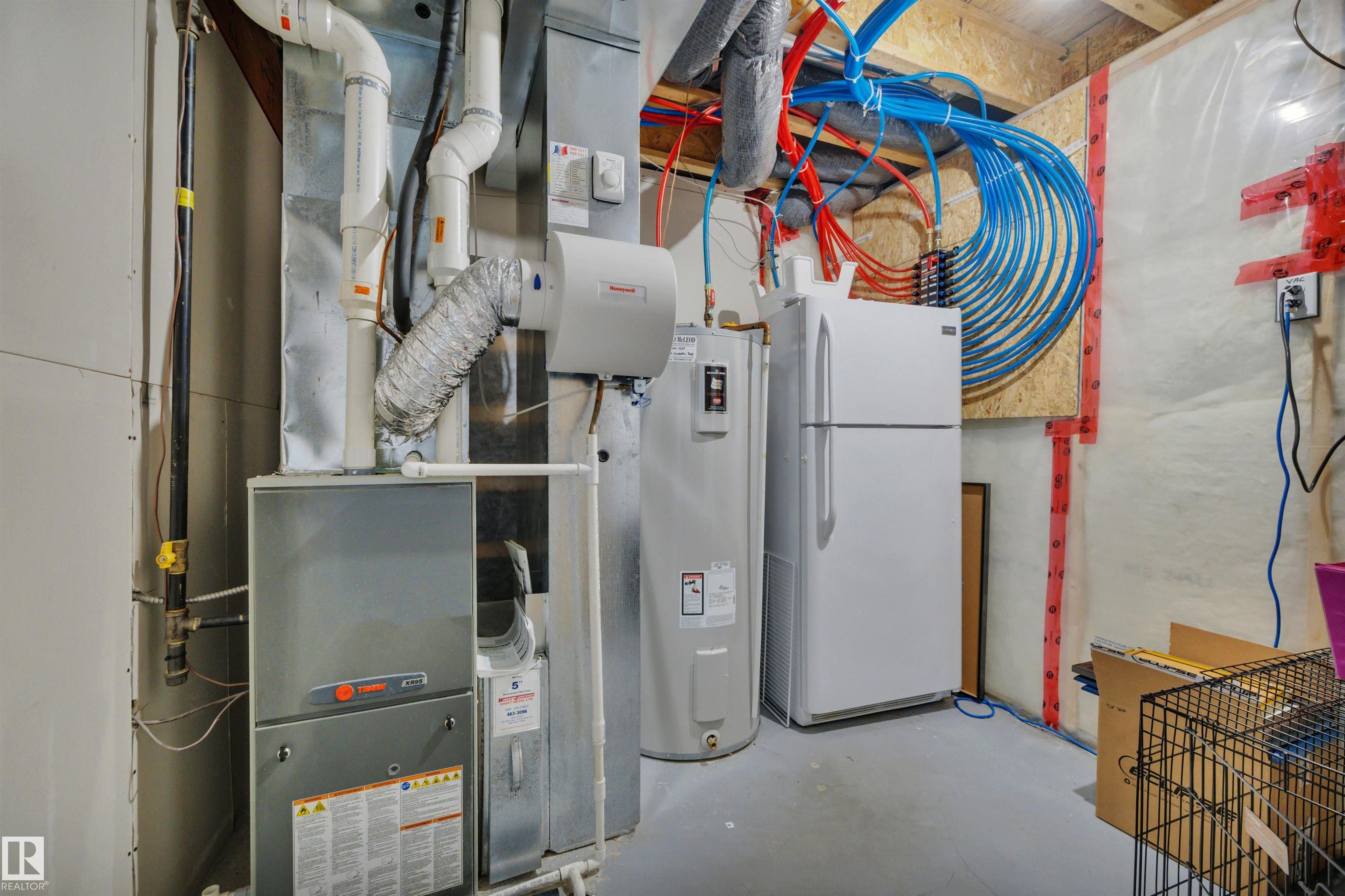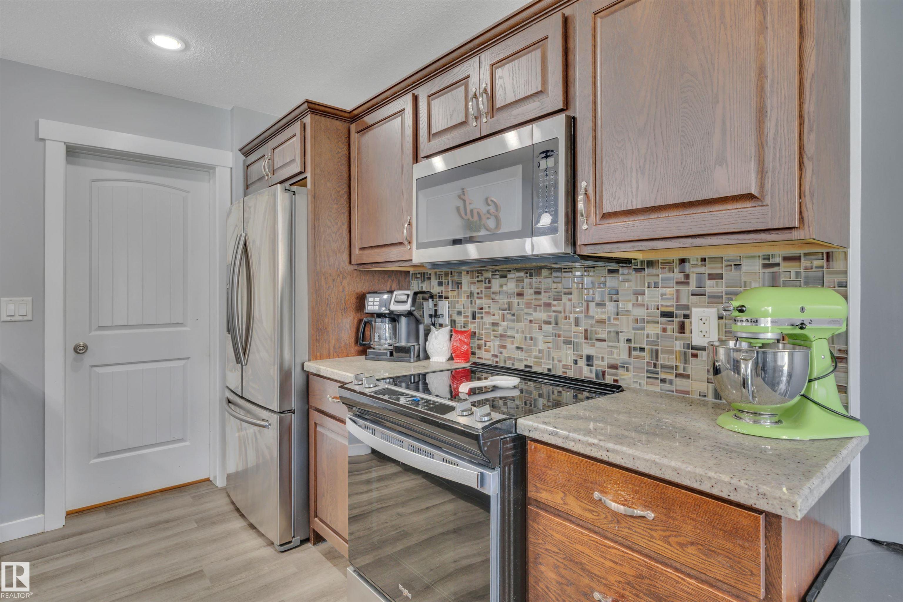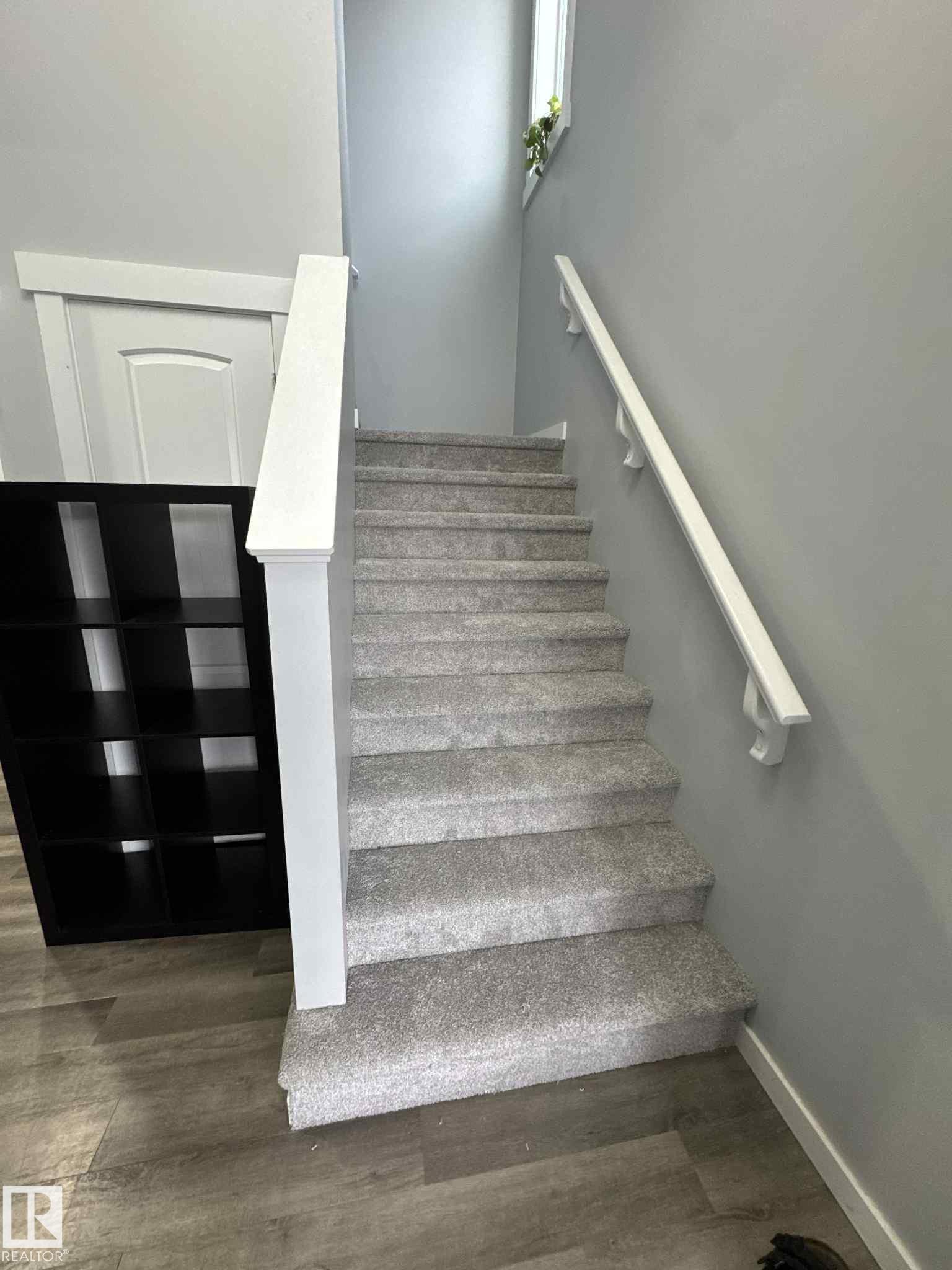 GORGEOUS YARD! FULLY FINISHED BASEMENT! A/C! NEW UPSTAIRS CARPET! MOVE IN READY! This 1476 sq ft 4 bed, 3.5 bath Homes by Avi duplex is a great option for those looking for a nice yard & room to grow! Large entryway leads to a functional galley style kitchen w/ raised barstool granite countertops, 9' ceiling, newer S/S appliances, & pantry / mudroom. Laminate flooring leads into the dining space & living room, w/ gas fireplace & large windows for ample natural light. Upstairs brings new carpets, 3 good sized bedrooms inc the primary bedroom w/ 3 pce ensuite & double walk in closets. Upper laundry & additional 4 pce bath. The basement is fully finished w/ additional living / media room, 4th bedroom, 4 pce bath, & storage room. The backyard is a gem! Beautiful 2 tier deck w/ gazebo, shed, plush grass, & fully fenced for the pups to play or kids to roam! Bring your swingset and enjoy the summer parties in style w/ room to add a firepit. Close to parks & quick access to QE2; location is ideal! Welcome home!