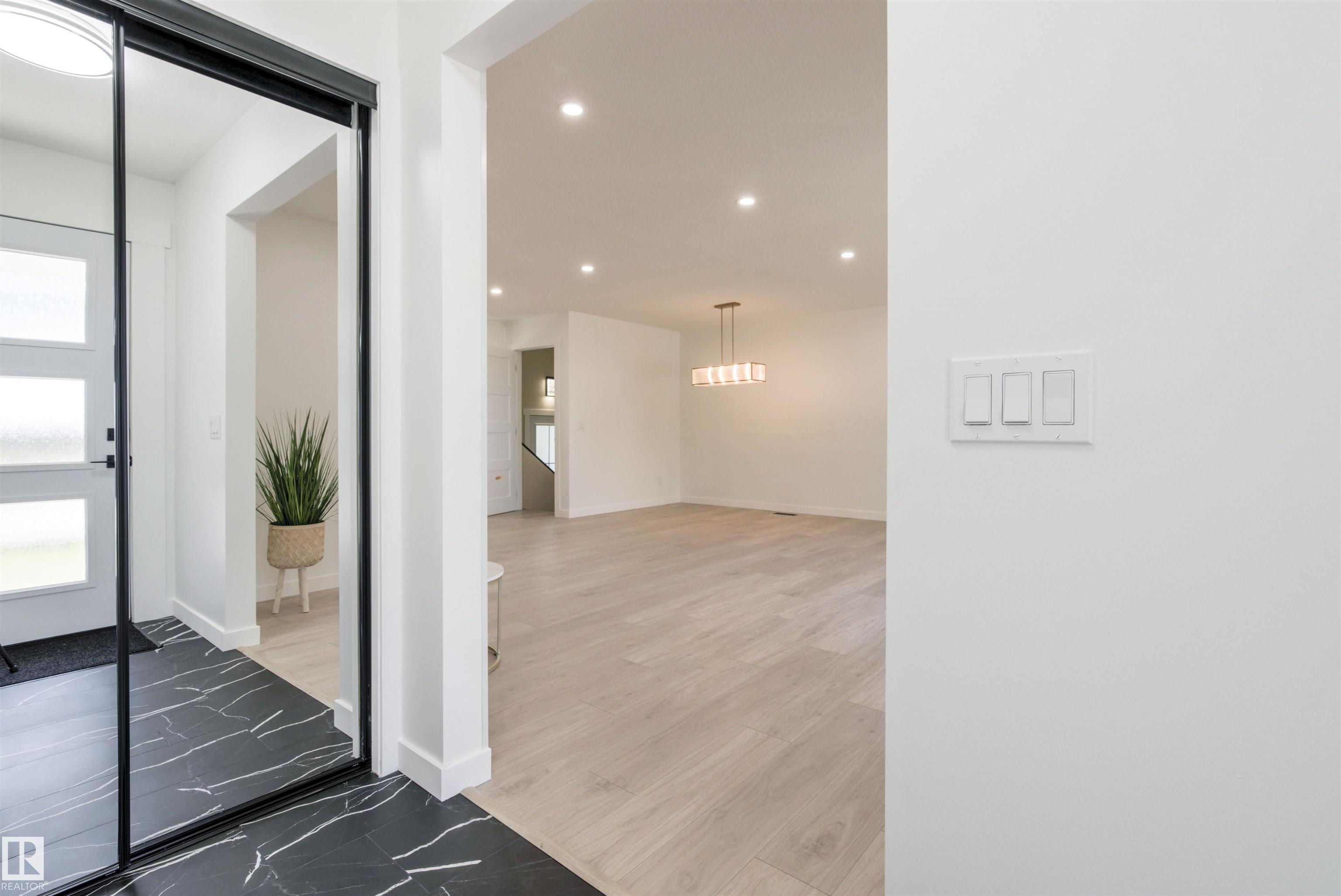 Step into this beautiful, fully finished and completely renovated over 2,000 sq ft house located in the highly desirable neighborhood of Grandin (St. Albert). The open floor plan is perfect for families, boasting a large living and dining room, kitchen with modern cabinets, tile backsplash, stainless steel appliances, gas stove and quartz countertops. A master bedroom is bright and spacious and has its own 3PC ensuite. In addition, you will also find 2 more bedrooms and 4PC main bath. The lower level is fully finished with large family/recreation room, 1 bedroom, laundry room, additional storage. Upgrades: All new windows triple pane low-E glass, all new doors, interior wood doors, main floor high end laminate. New attic insulation, serviced and cleaned furnace, pigtailed wires, new Hardie siding, soffit facia, eavestrough. All old trees and vegetation are removed and ready for your landscaping desires. School, playground, park and walking trails make this property an ideal for any family.