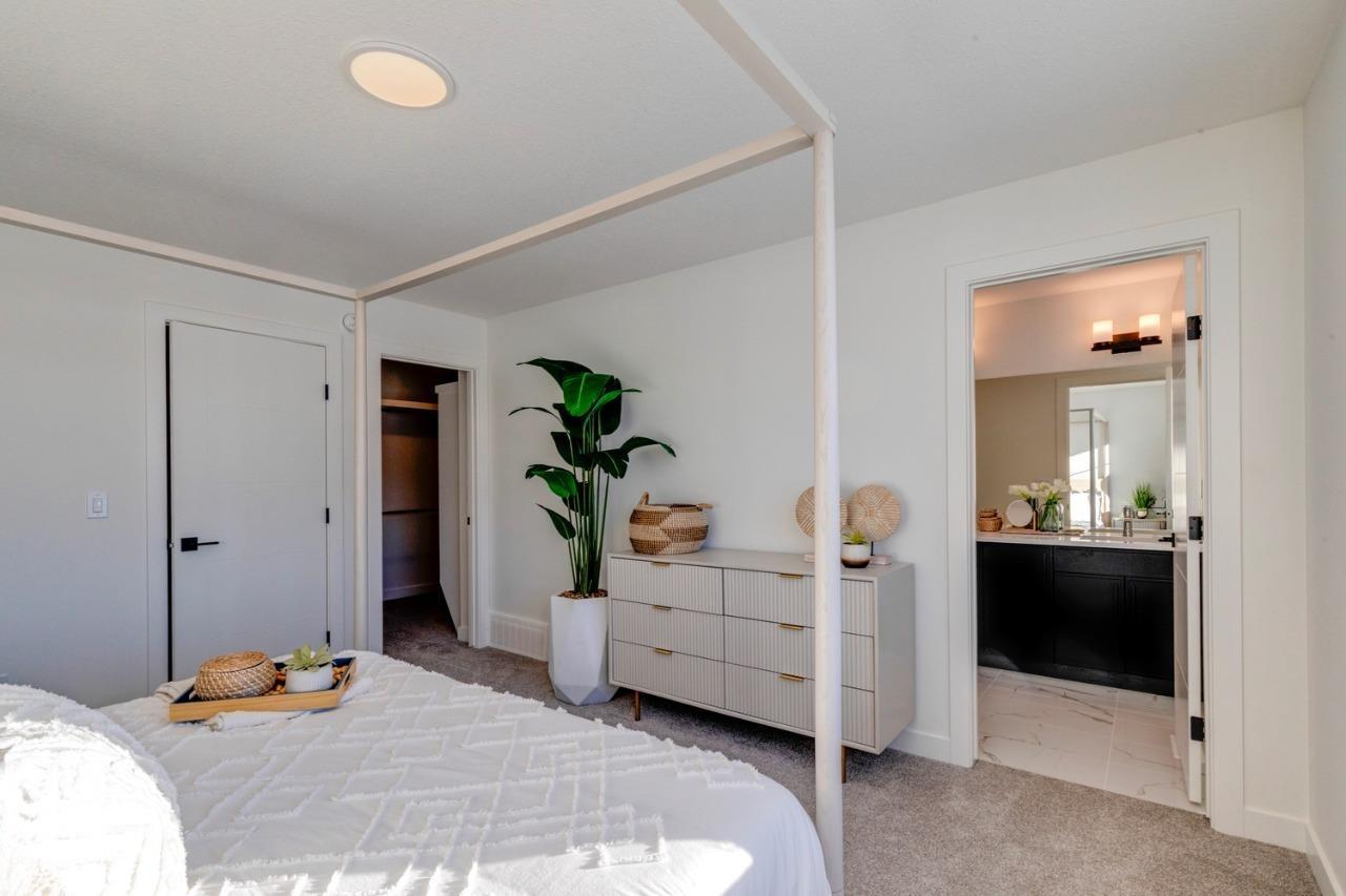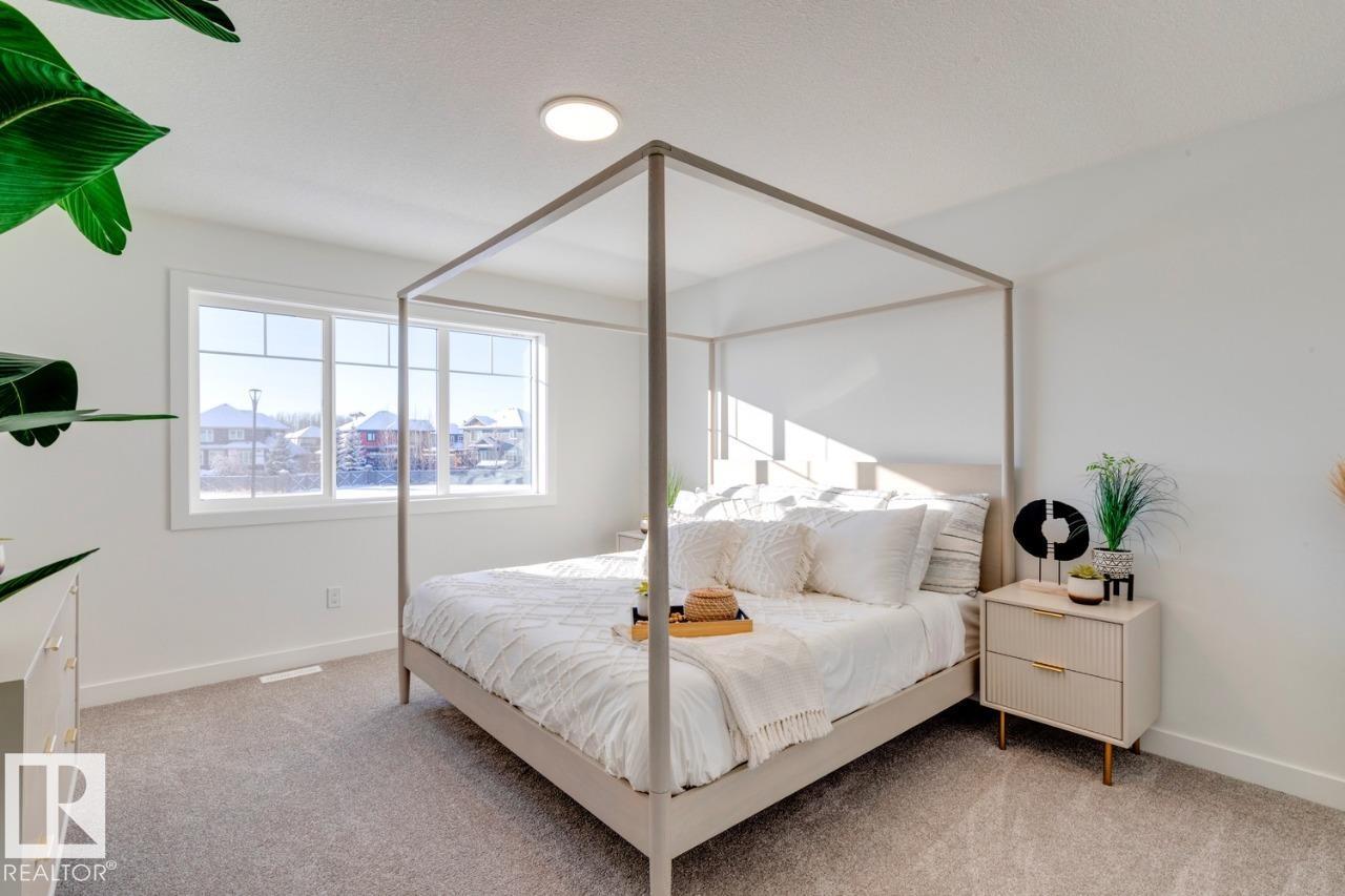 Welcome to this stunning 4-bedroom, 3-bathroom home designed for comfort and functionality. A main floor bedroom and full bath offer convenience for guests. The gourmet kitchen features a substantial island with eating bar, walk-through pantry with built-in MDF shelving, and opens to a spacious mud room. The elegant open-to-above staircase leads to the second floor, where you'll find three additional bedrooms, a generous bonus room, laundry room, and a 4-piece primary ensuite with a large glass shower and a walk-in closet. The separate side entrance provides flexibility for potential future development. The basement impresses with 9' ceilings and plumbing rough-ins, ready for your vision. This home blends thoughtful layout with luxurious touches ? perfect for modern living. Photos representative.