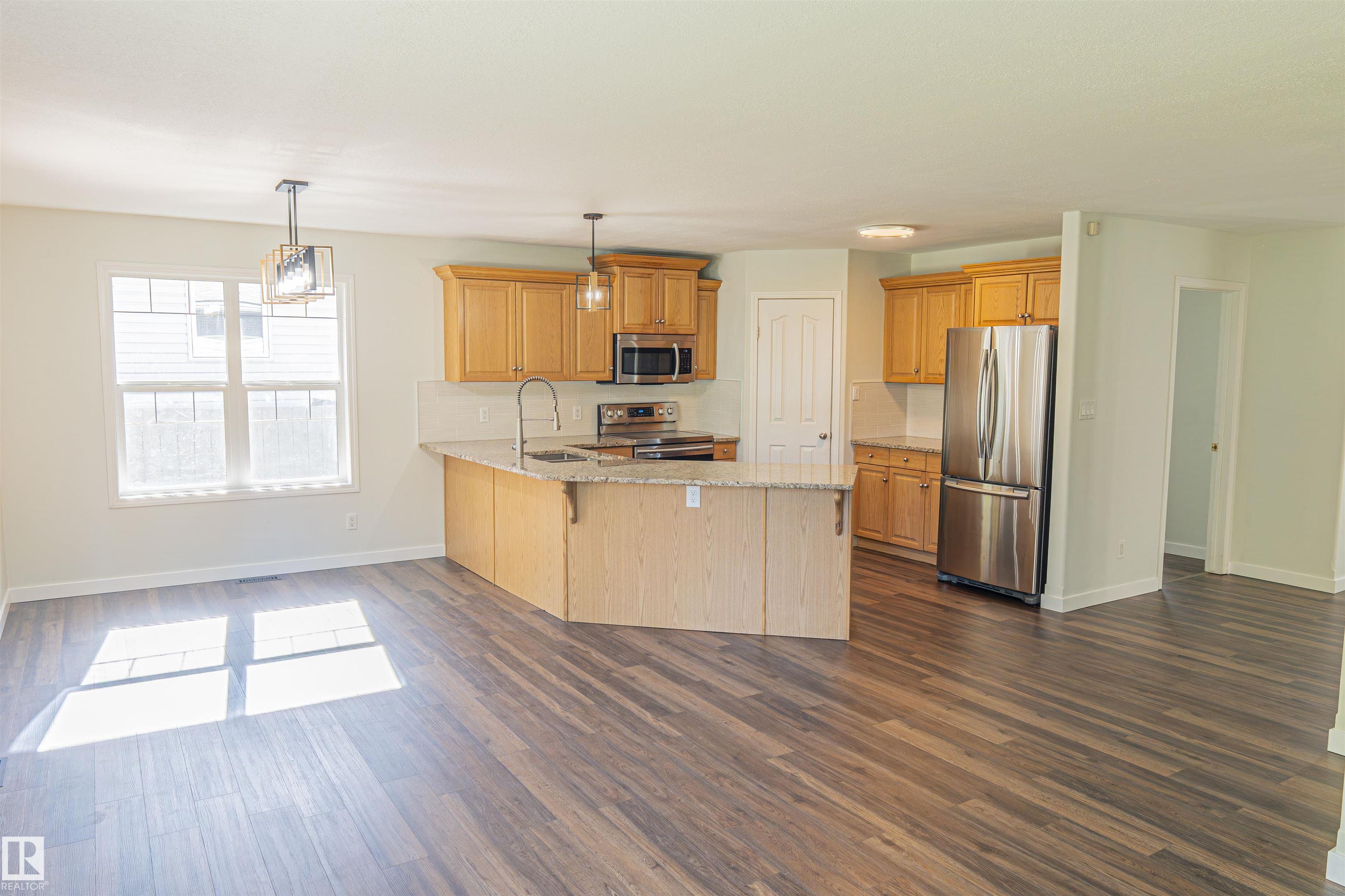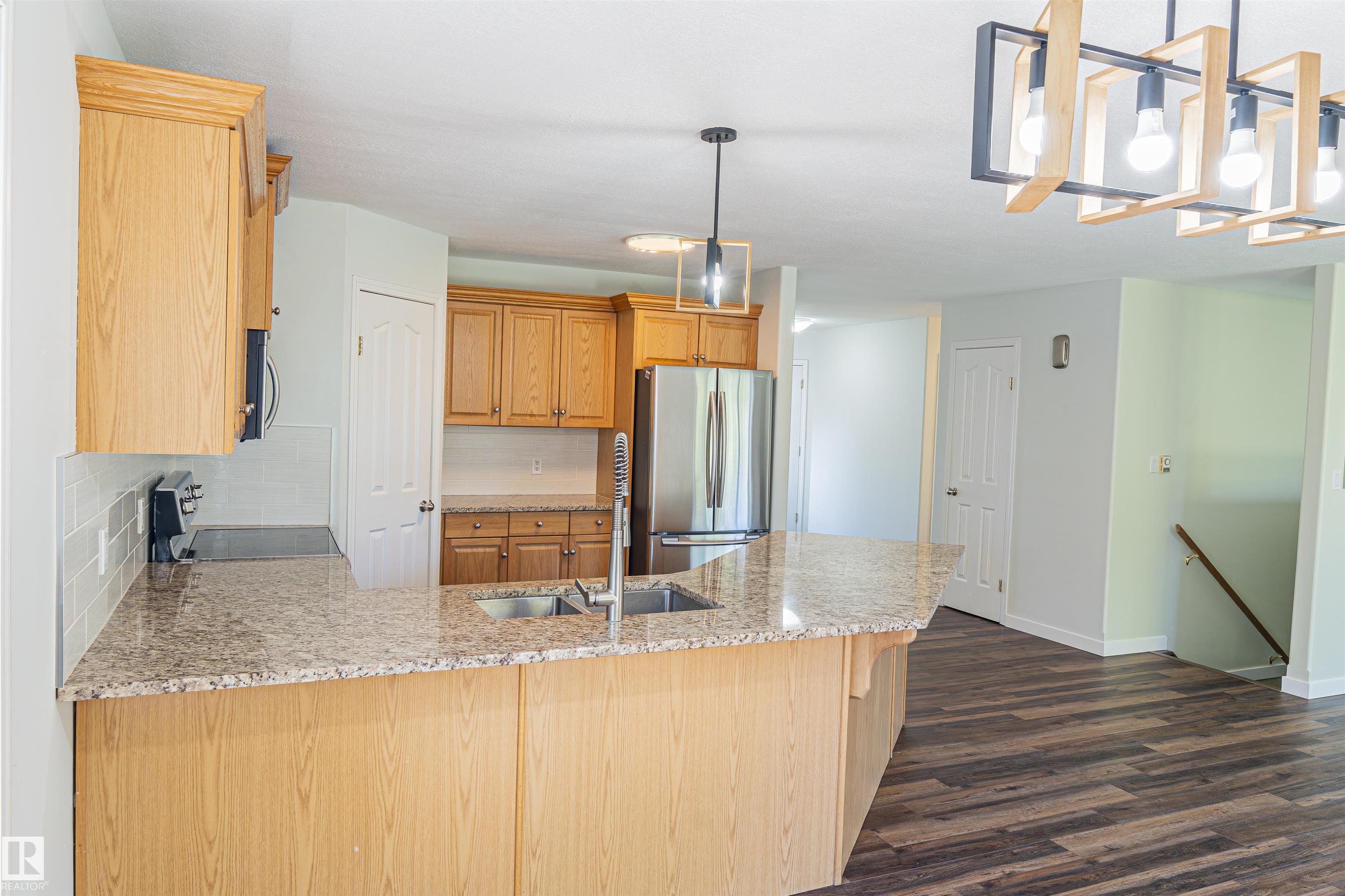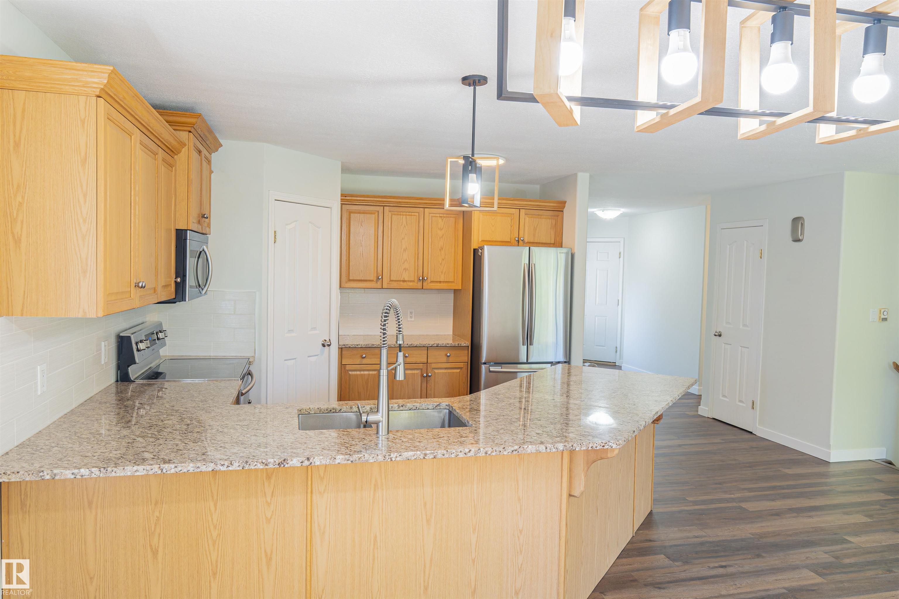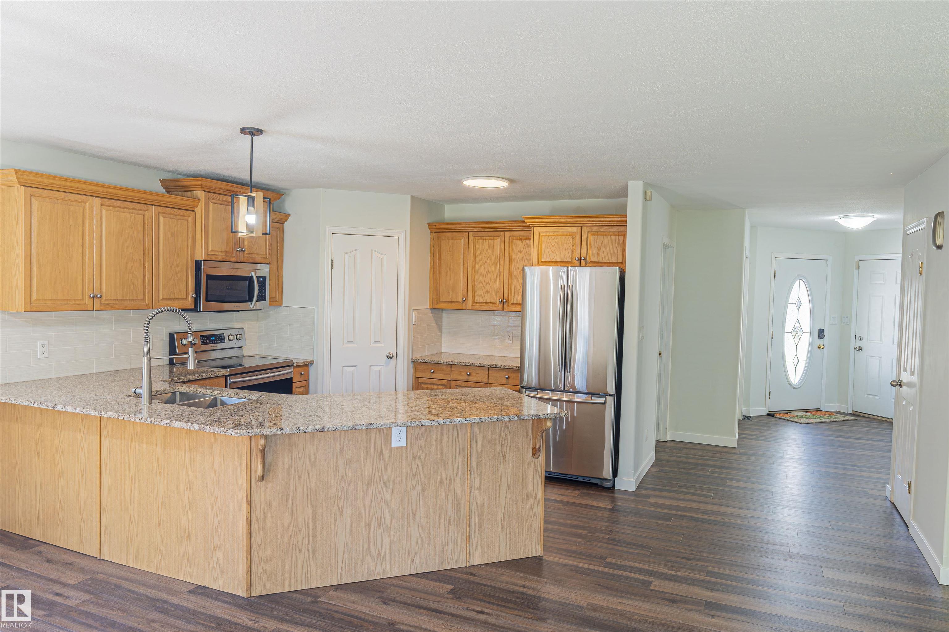 Welcome to this beautifully updated 5-bedroom, 3-bathroom bungalow, perfectly located close to schools, parks, and shopping. This home features a spacious open-concept layout with gleaming granite countertops and modern finishes throughout. Stay comfortable year-round with central air conditioning and enjoy the convenience of a double attached heated garage. The fully finished basement offers extra living space, perfect for a rec room, home gym, or media area. Outside, you'll find a fully fenced and landscaped yard?ideal for families, pets, and entertaining. A perfect blend of comfort, style, and location?this move-in ready home has it all! Calmar is a growing community only 15 mins from the Edmonton international Airport and Leduc. Featuring great schools and local shopping.