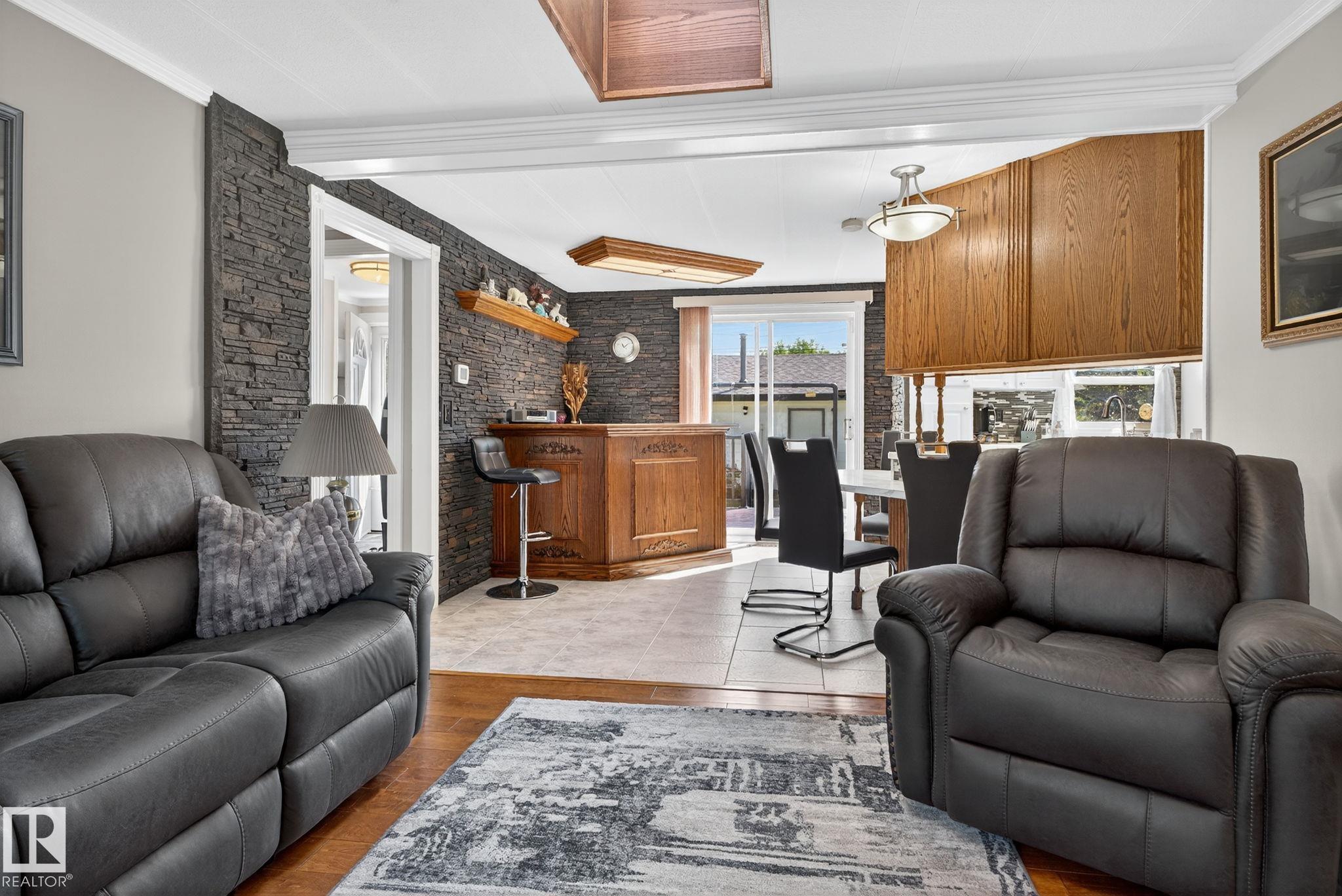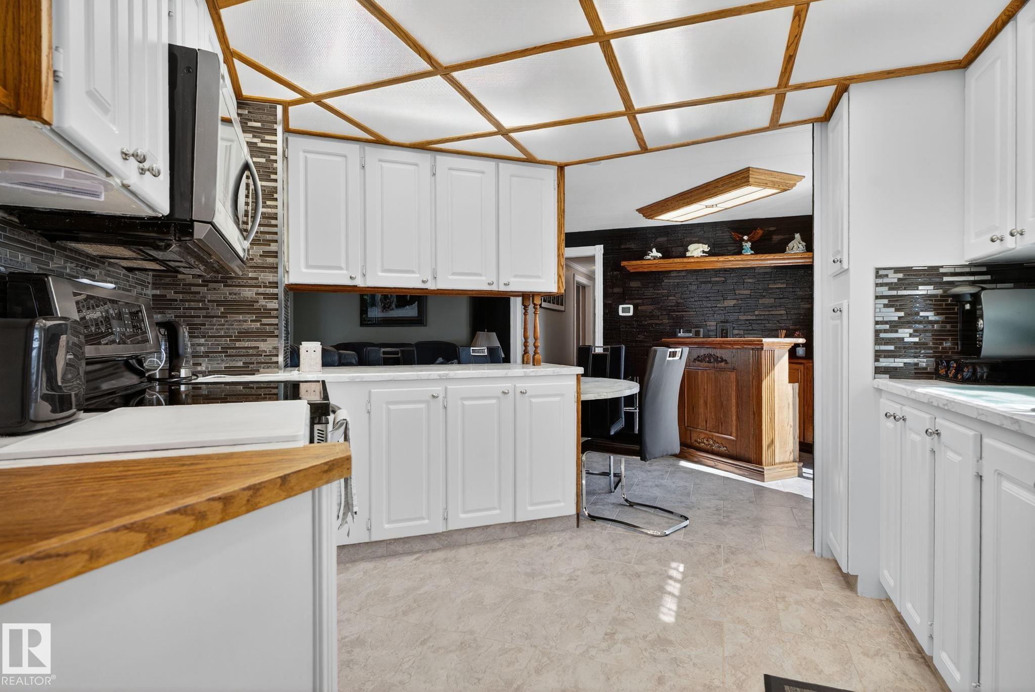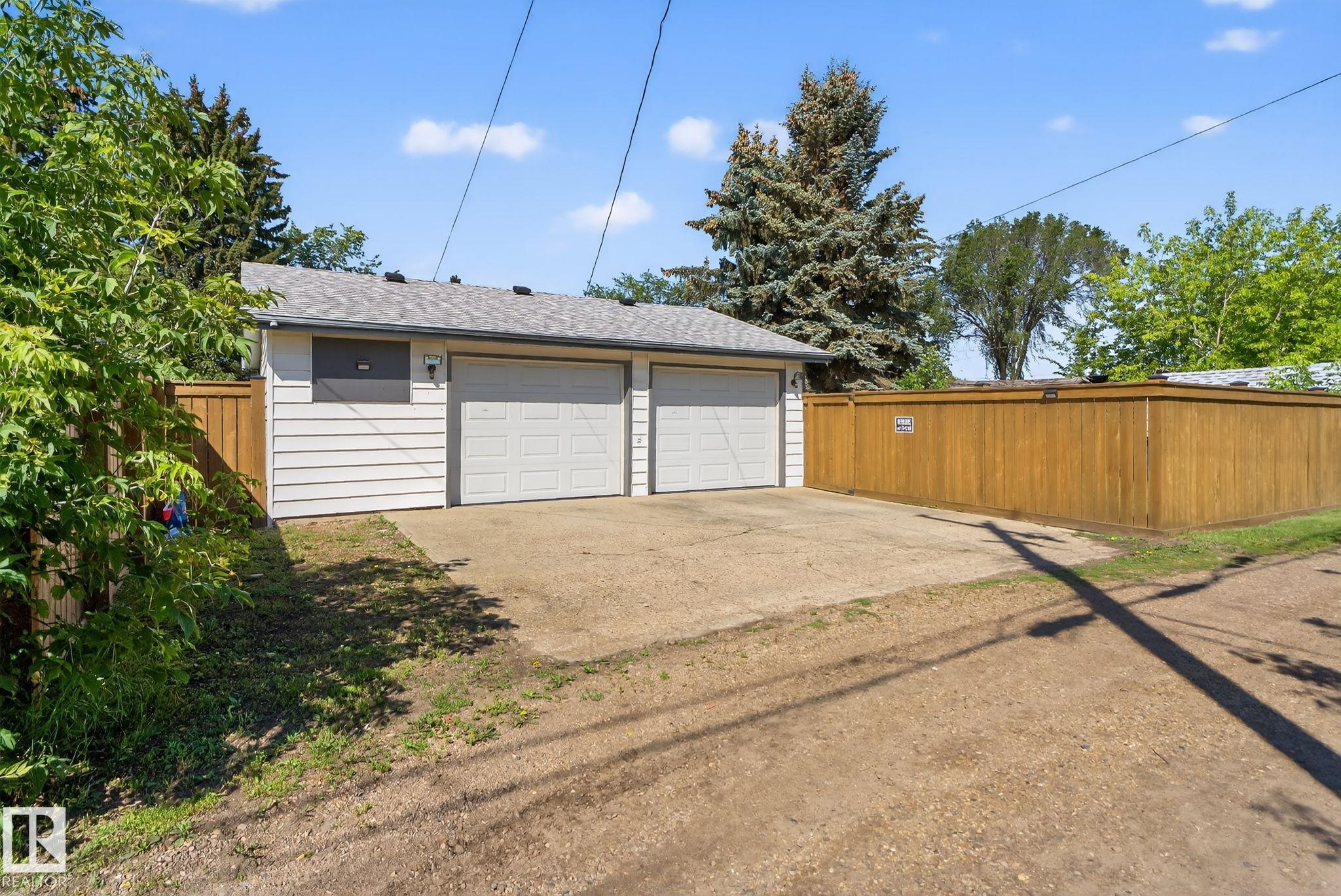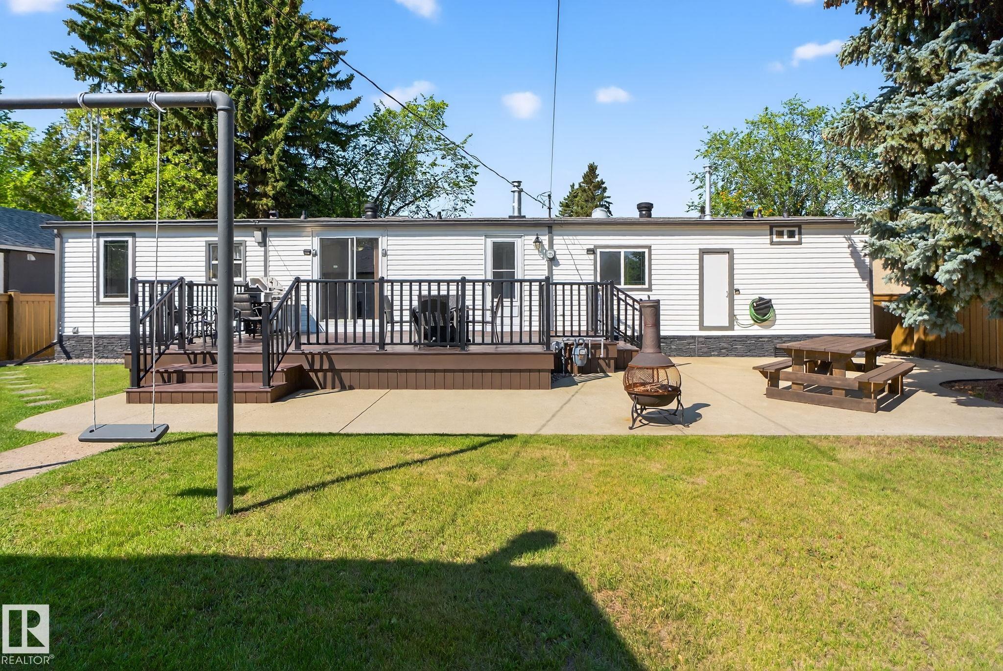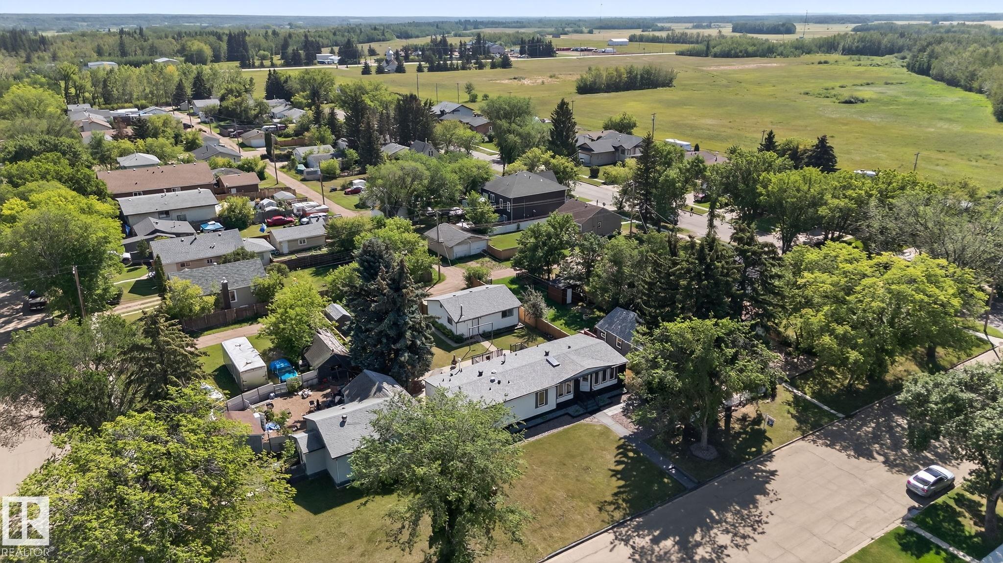 Welcome to this beautifully maintained home in the heart of Redwater. Pride of ownership is evident throughout this extensively updated property, set on an IMPRESSIVE 9,100 sq ft DOUBLE LOT?a rare gem offering space, privacy, and a peaceful, tree-lined backdrop. This spacious home features 3 generous bedrooms, 2 full bathrooms, and a bright open-concept layout with large windows, a stunning skylight, and two roomy living areas with a built-in bar?perfect for entertaining. The modern kitchen boasts stainless steel appliances, a large island, and ample storage. Recent upgrades offer peace of mind, including: upgraded electrical systems- newer: windows, furnace, hot water tank and shingles?fresh paint throughout, new carpet in bedrooms, and central A/C. Double insulated for energy efficiency and professionally leveled. Outside, enjoy a HEATED oversized double garage detached, newer deck and fence, and a fully landscaped yard?ideal for relaxed, indoor-outdoor living.