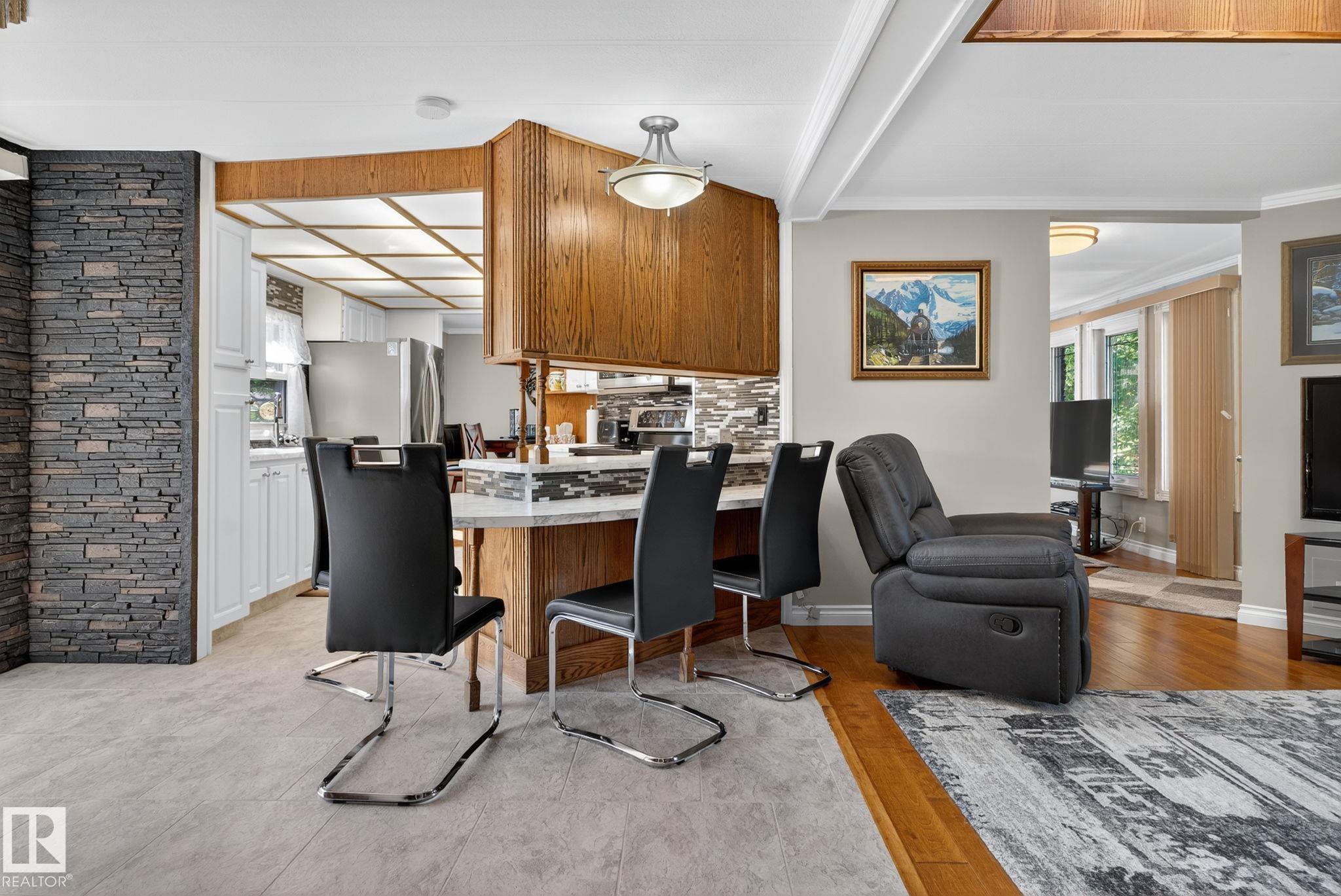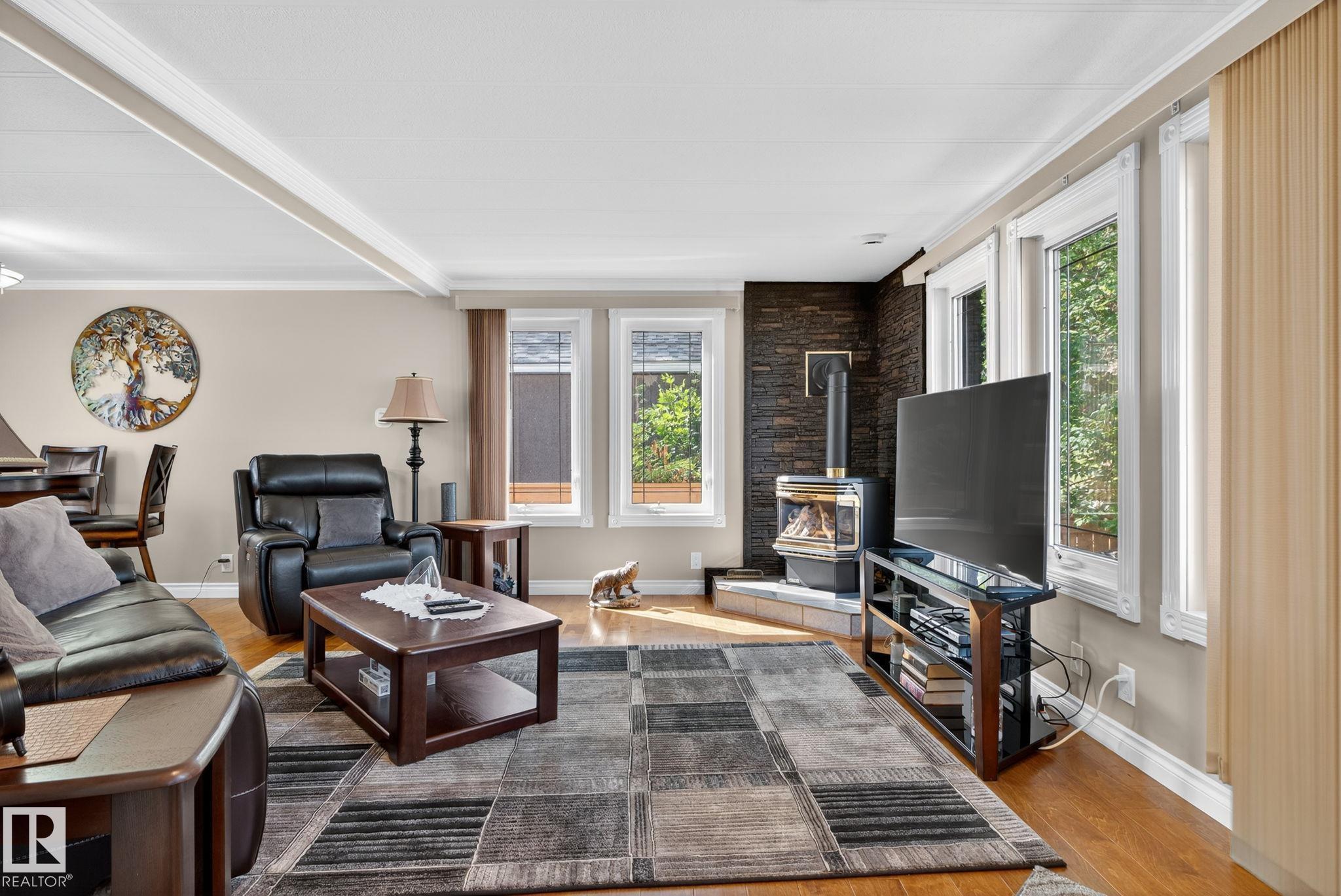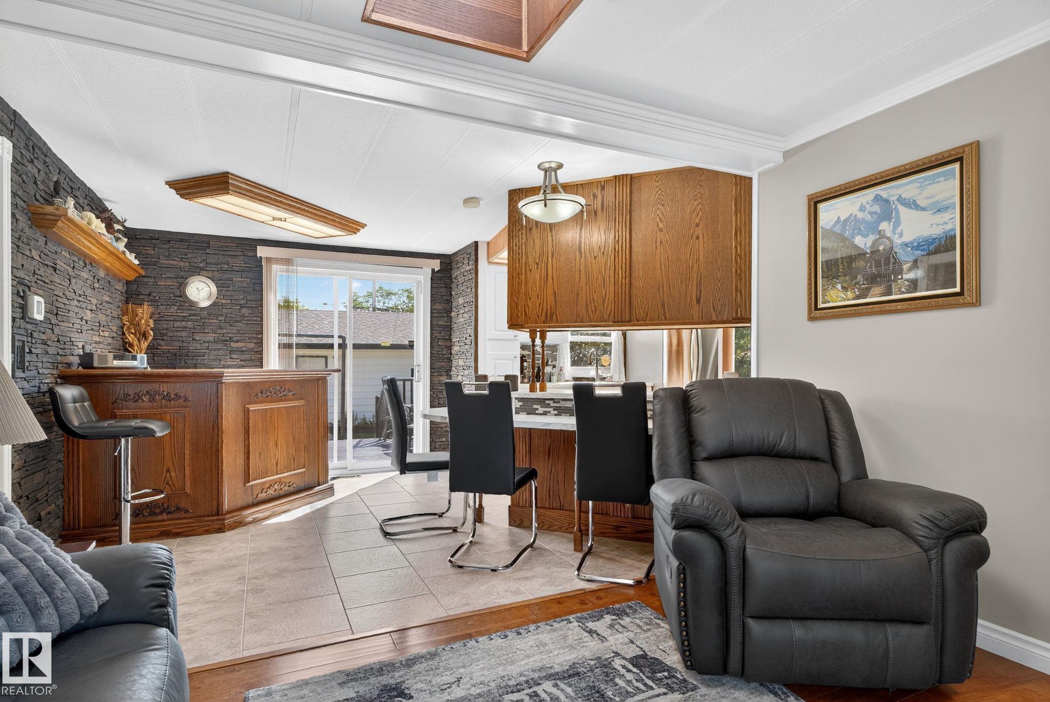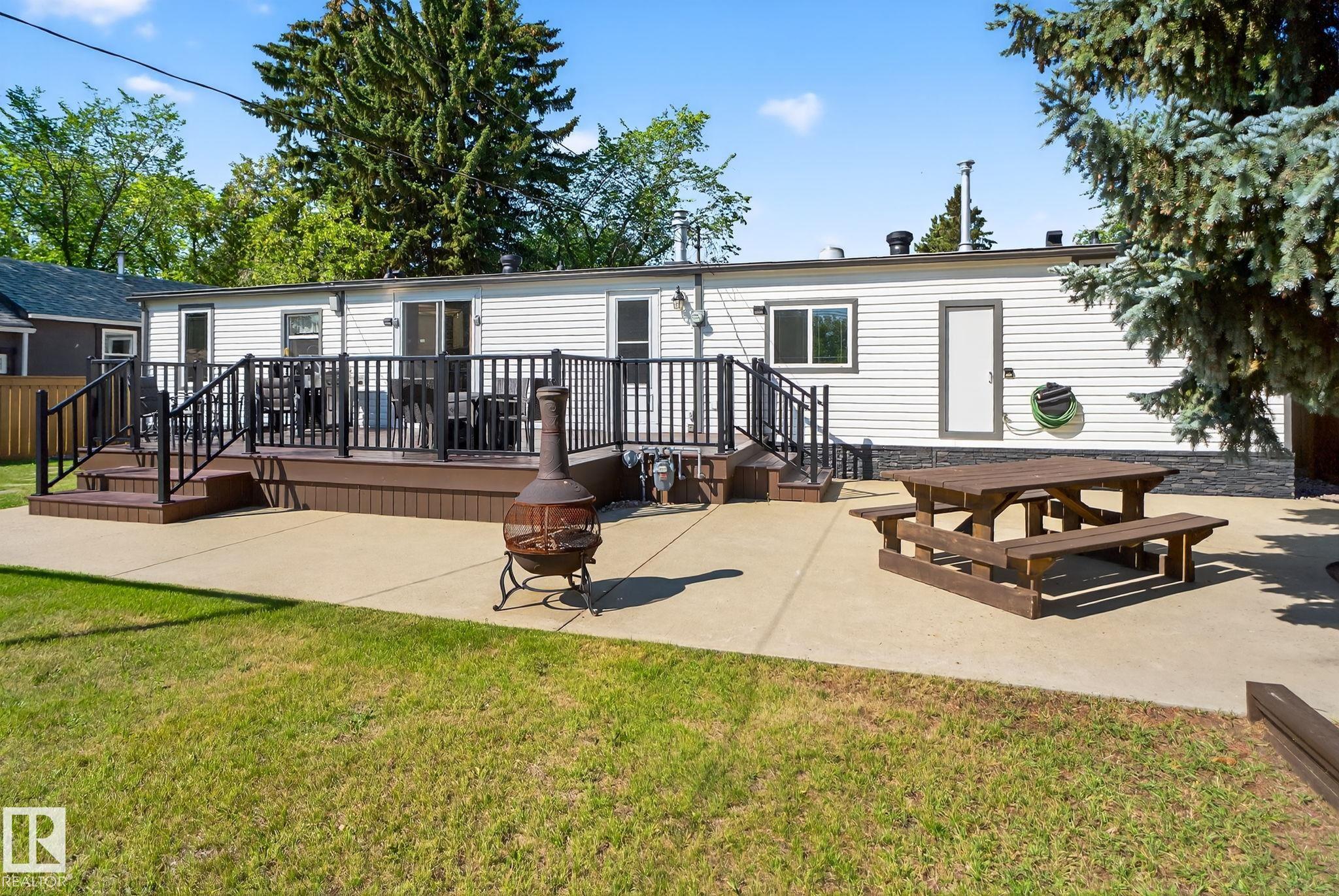 Welcome to this beautifully maintained home in the heart of Redwater. Pride of ownership is evident throughout this extensively updated property, set on an IMPRESSIVE 9,100 sq ft DOUBLE LOT?a rare gem offering space, privacy, and a peaceful, tree-lined backdrop. This spacious home features 3 generous bedrooms, 2 full bathrooms, and a bright open-concept layout with large windows, a stunning skylight, and two roomy living areas with a built-in bar?perfect for entertaining. The modern kitchen boasts stainless steel appliances, a large island, and ample storage. Recent upgrades offer peace of mind, including: upgraded electrical systems- newer: windows, furnace, hot water tank and shingles?fresh paint throughout, new carpet in bedrooms, and central A/C. Double insulated for energy efficiency and professionally leveled. Outside, enjoy a HEATED oversized double garage detached, newer deck and fence, and a fully landscaped yard?ideal for relaxed, indoor-outdoor living.