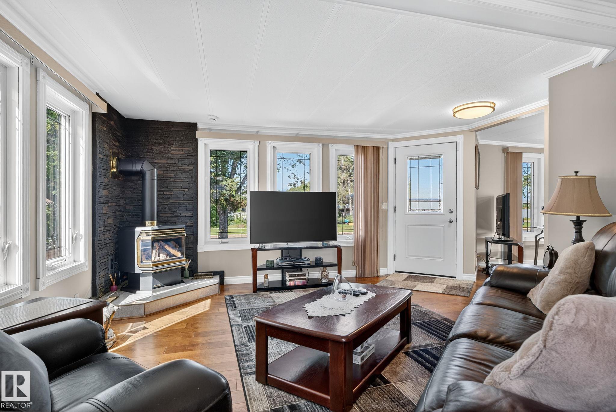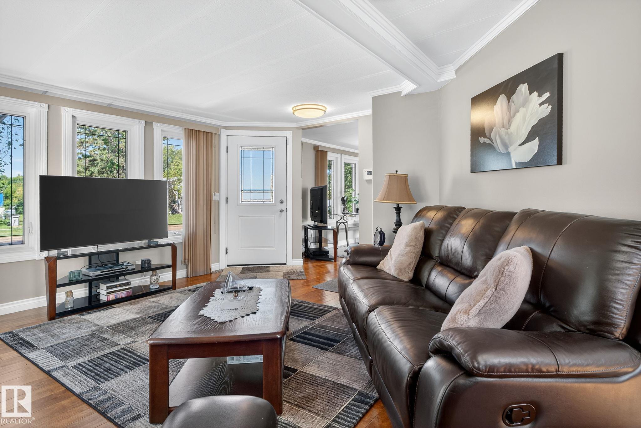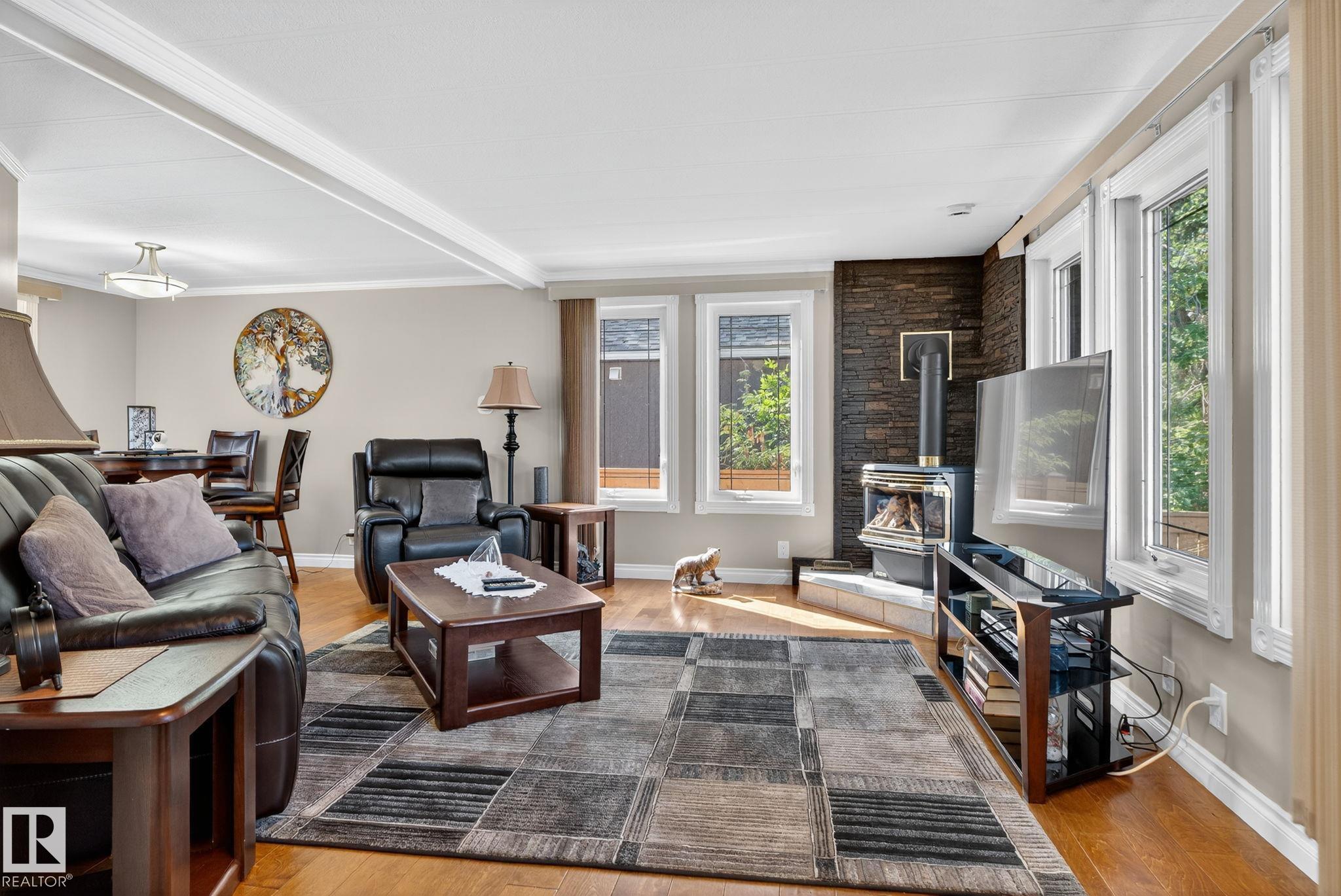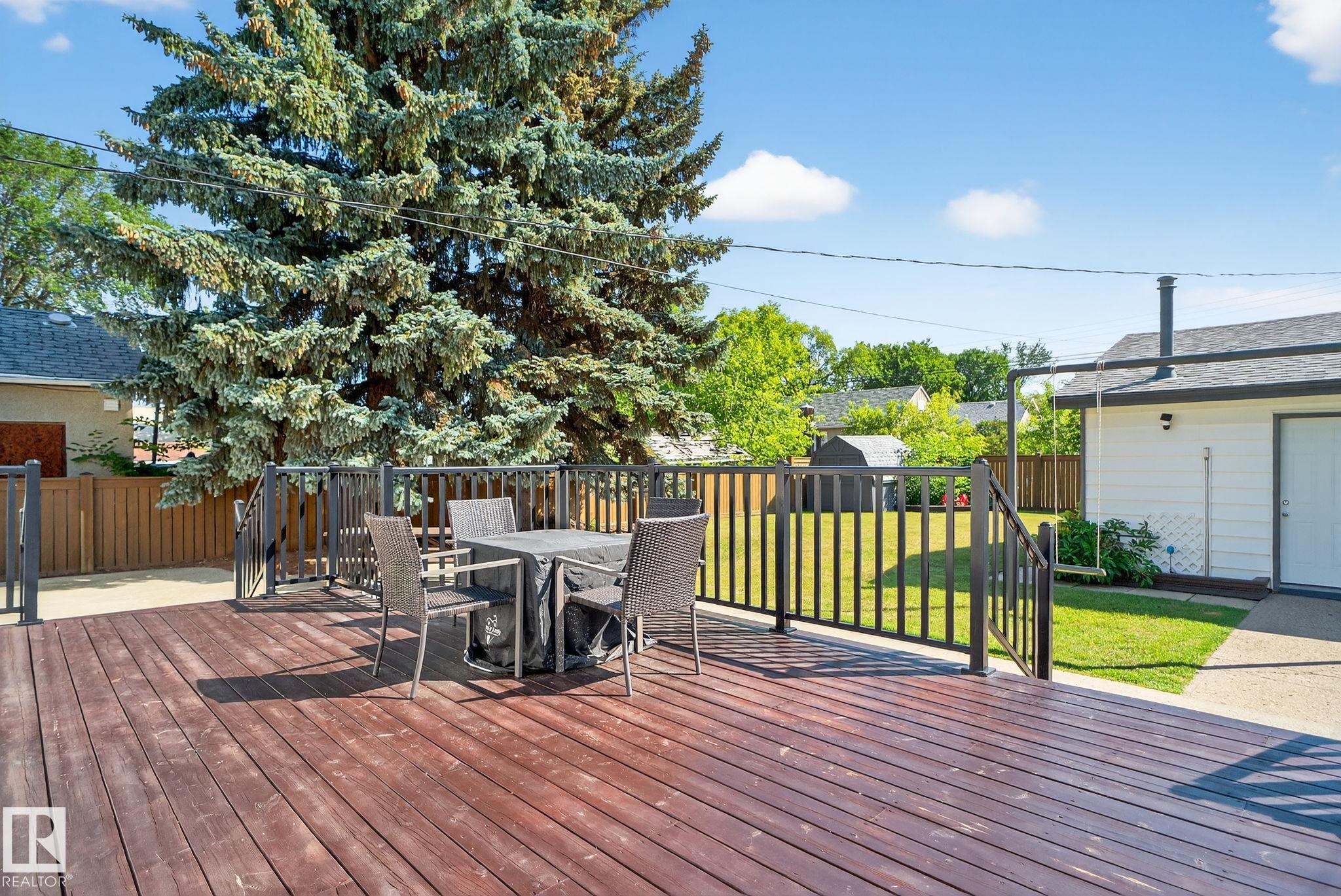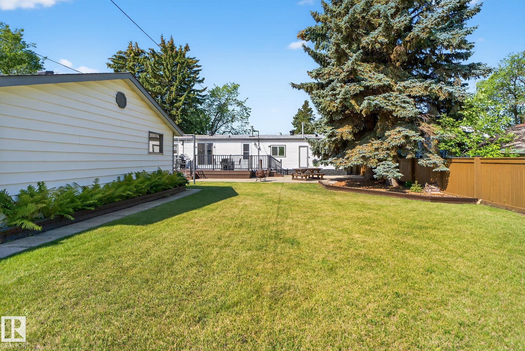 Welcome to this beautifully maintained home in the heart of Redwater. Pride of ownership is evident throughout this extensively updated property, set on an IMPRESSIVE 9,100 sq ft DOUBLE LOT?a rare gem offering space, privacy, and a peaceful, tree-lined backdrop. This spacious home features 3 generous bedrooms, 2 full bathrooms, and a bright open-concept layout with large windows, a stunning skylight, and two roomy living areas with a built-in bar?perfect for entertaining. The modern kitchen boasts stainless steel appliances, a large island, and ample storage. Recent upgrades offer peace of mind, including: upgraded electrical systems- newer: windows, furnace, hot water tank and shingles?fresh paint throughout, new carpet in bedrooms, and central A/C. Double insulated for energy efficiency and professionally leveled. Outside, enjoy a HEATED oversized double garage detached, newer deck and fence, and a fully landscaped yard?ideal for relaxed, indoor-outdoor living.