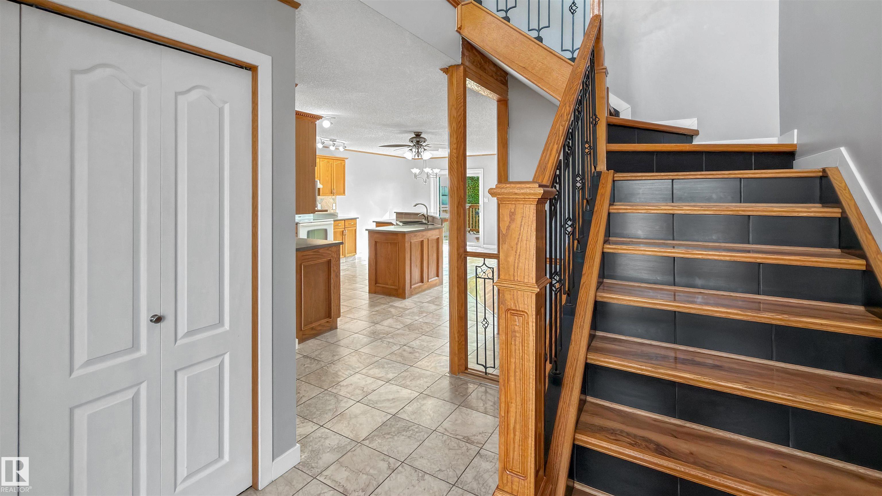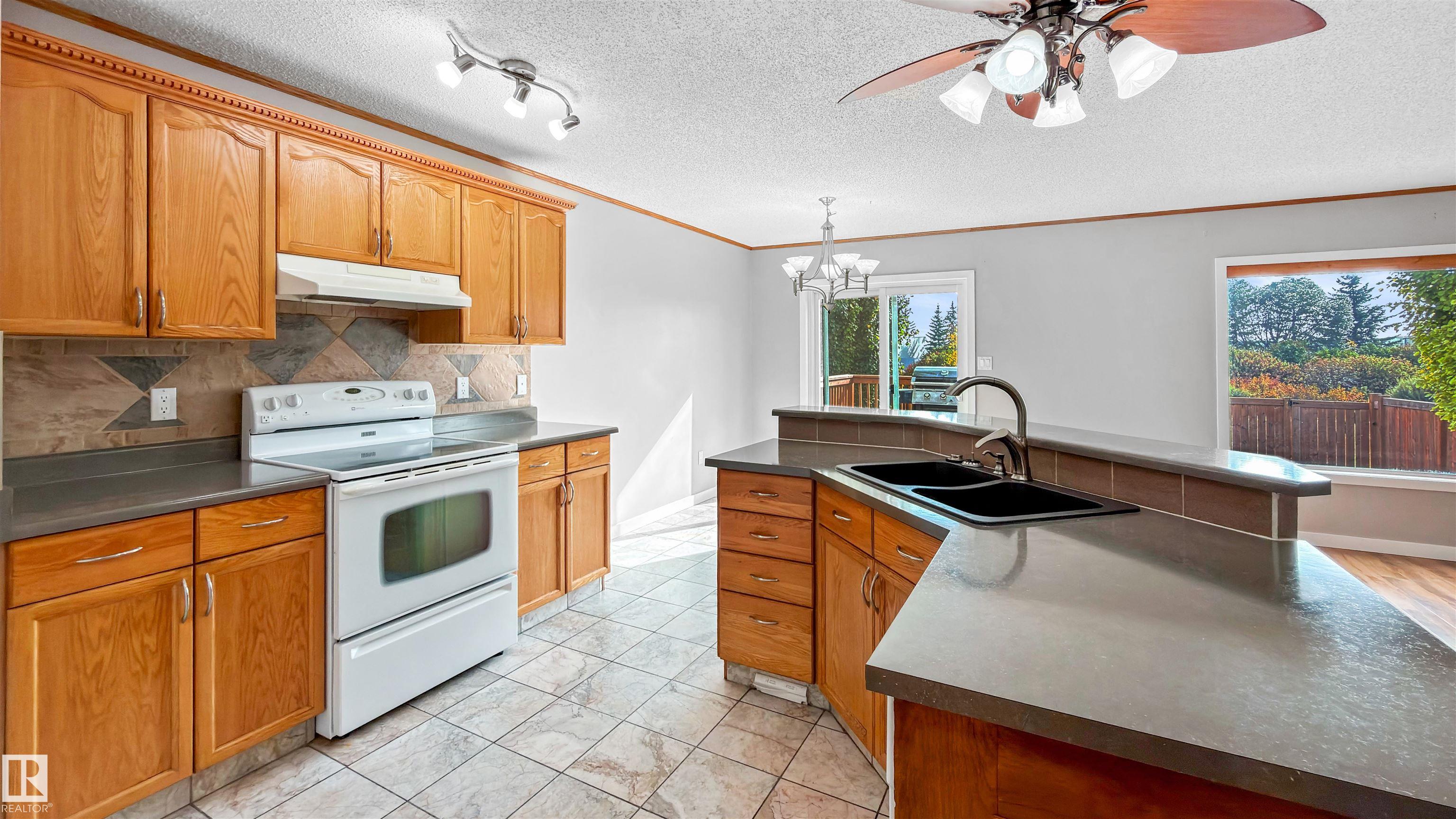 Welcome to this well-maintained 2-storey home with an attached double garage, ideally backing onto a greenbelt with walking paths and nearby playground. Built in 2002 and still owned by the original owners, this home offers 3 bedrooms and 4 bathrooms with a functional layout. The main floor features marble flooring, a bright open-concept living, dining, and kitchen area with a large island and eat-up bar, granite stone sink, and plenty of cabinets. The dining area leads to a two-tier composite deck overlooking the landscaped yard with direct access to the green belt. A cozy living space, 2-piece bath, and main floor laundry complete this level. Upstairs you?ll find engineered laminate flooring, 3 bedrooms including a primary suite with walk-in closet and 3-piece ensuite. The fully finished basement adds a family room, bathroom, additional living space and a half bath. Central vacuum runs throughout. A solid property with thoughtful updates, green space views, and space for the whole family.