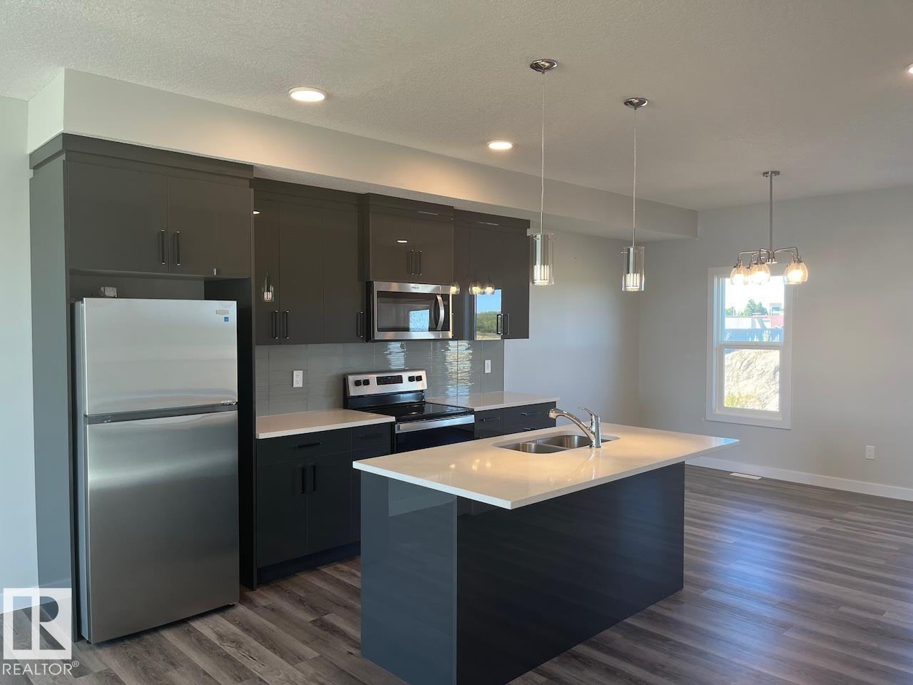 Welcome Home to the Willows in Peaceful Redwater! Perfect 1423 sq ft 3 Bedroom Townhome. Move to the Industrial Heartland with easy access to northern routes of Alberta and quick drive to Edmonton and Fort Saskatchewan. Wonderful great room concept main floor. Open entrance way leads to family room. Extra large kitchen with tons of counter space and pantry. Large dining area. Half bathroom and patio door leads to rear deck. Great rear lane access overlooks pond. Top floor has large laundry room, full master bedroom with second floor balcony, ensuite and walk in closet, 2 additional bedrooms and full bathroom. Home comes with appliances and completed landscaping. Do not let this one pass you by! Lease Terms and pets permitted subject to final owner approval. Tenant pays all utilities.