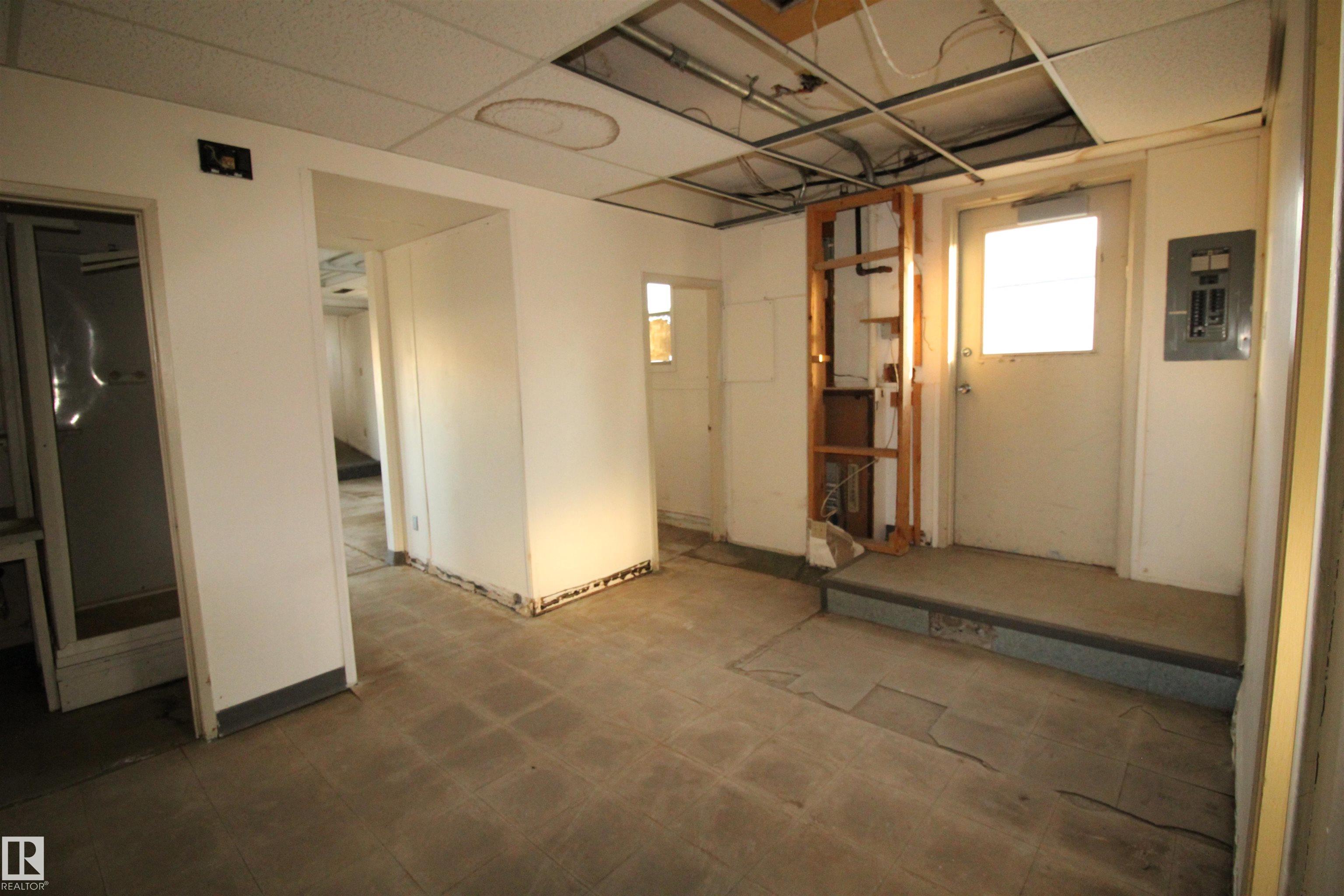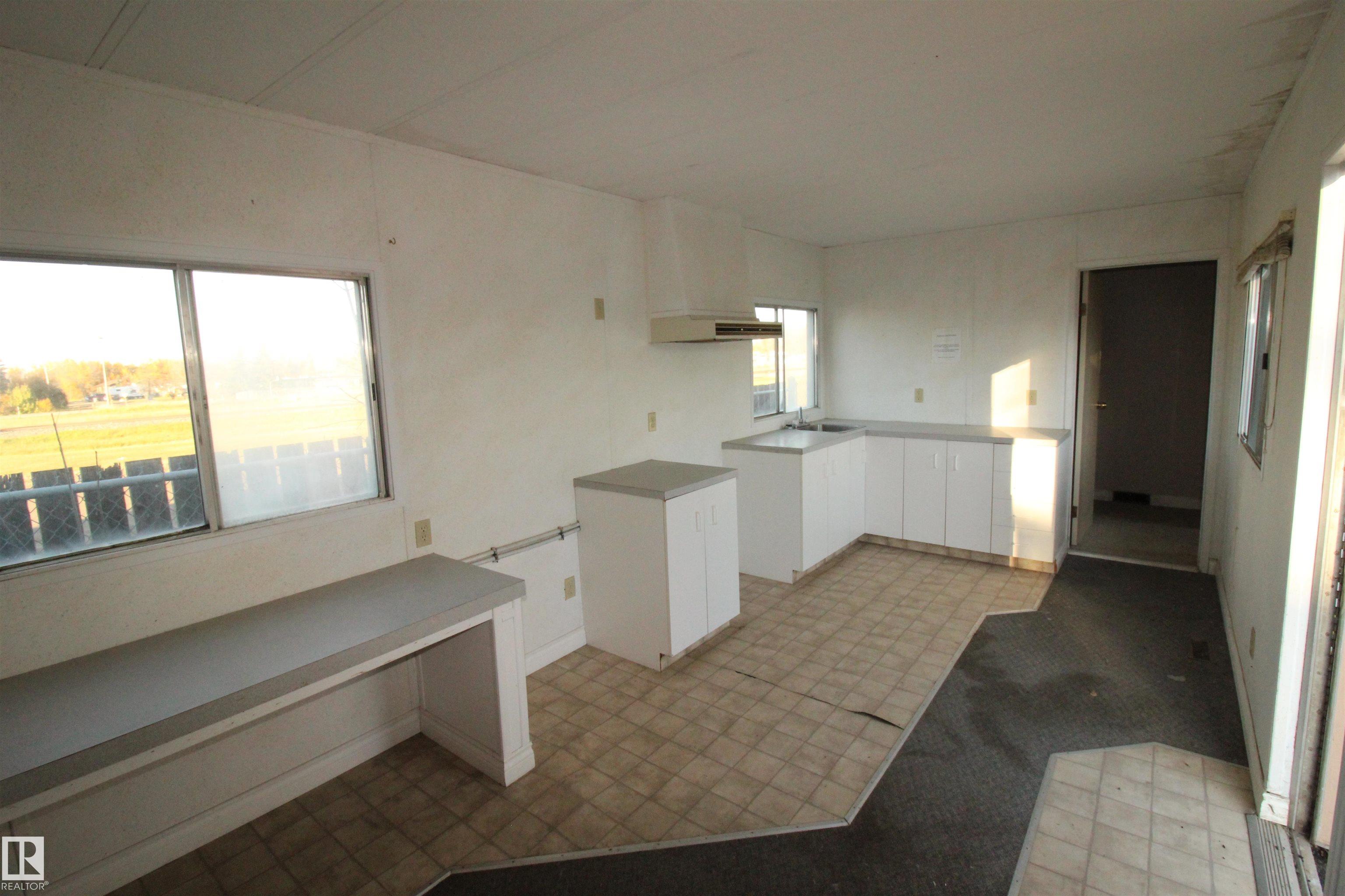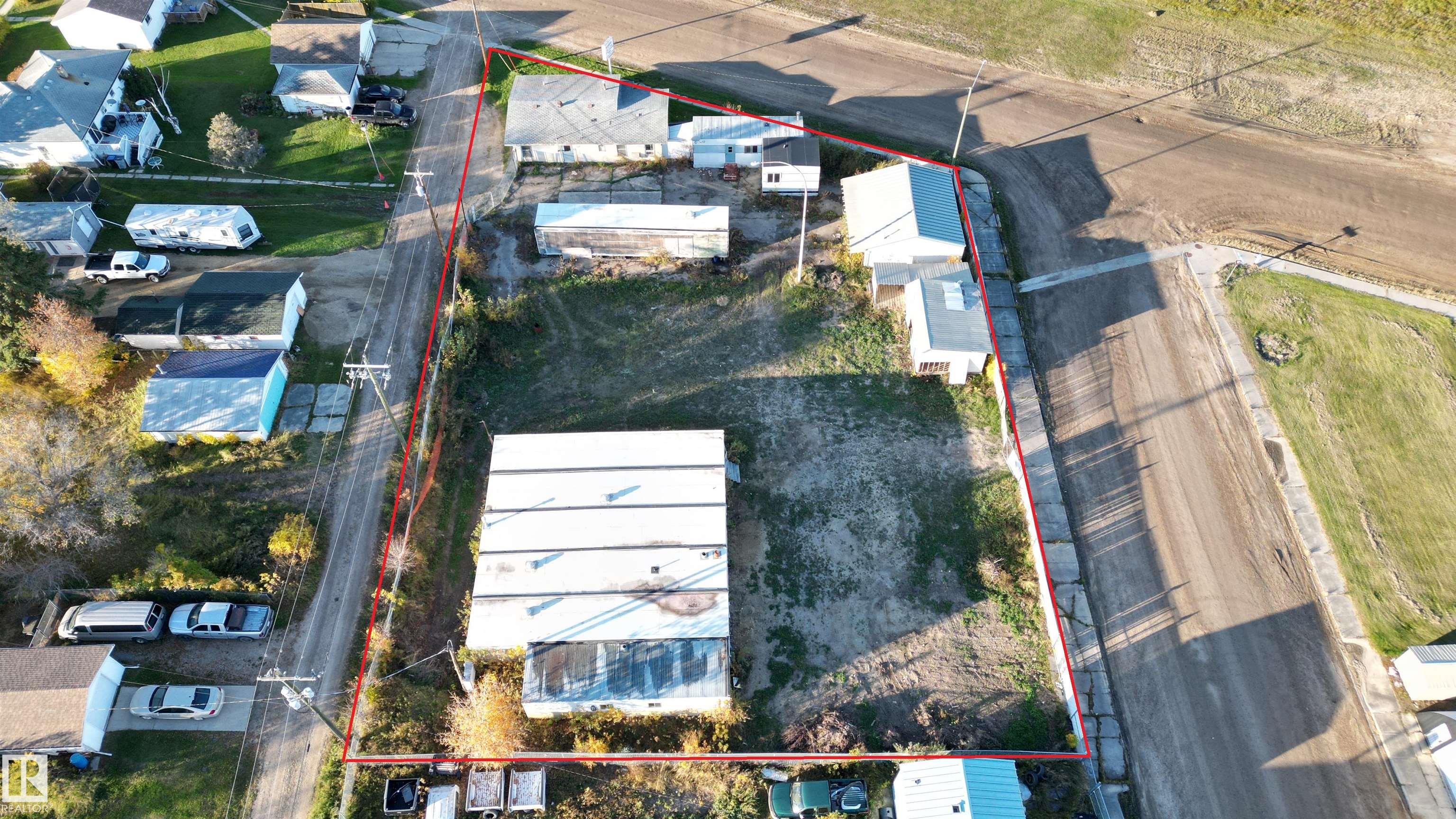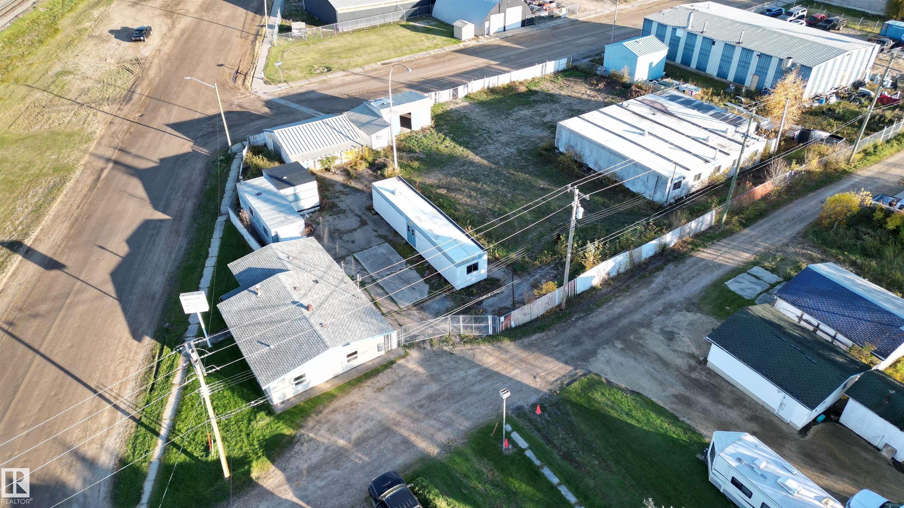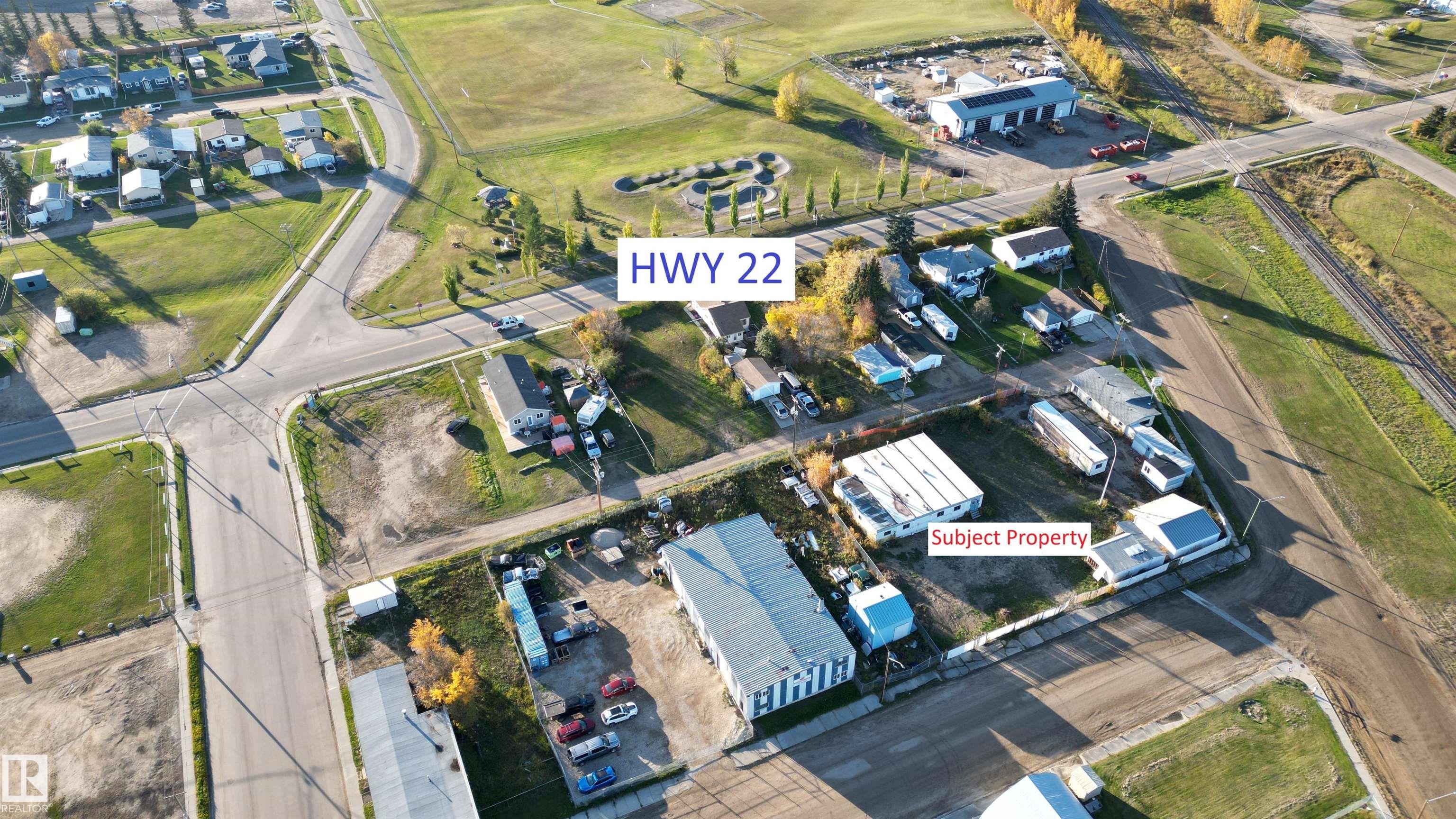 28,000 sq ft fenced commercial lot with storage buildings located in the town of Mayerthorpe just off Hwy 22. Prime location with gate access on east and west side of property. Affordable opportunity for secure storage yard with highway tractor accessibility. Large overhead street yard light for 24/7 visibility. Main buildings require renovations. Fencing and gates functional but need repair. Additional 26x26 storage building on concrete slab + ATCO trailers. To be sold as is, GST applicable on purchase price.