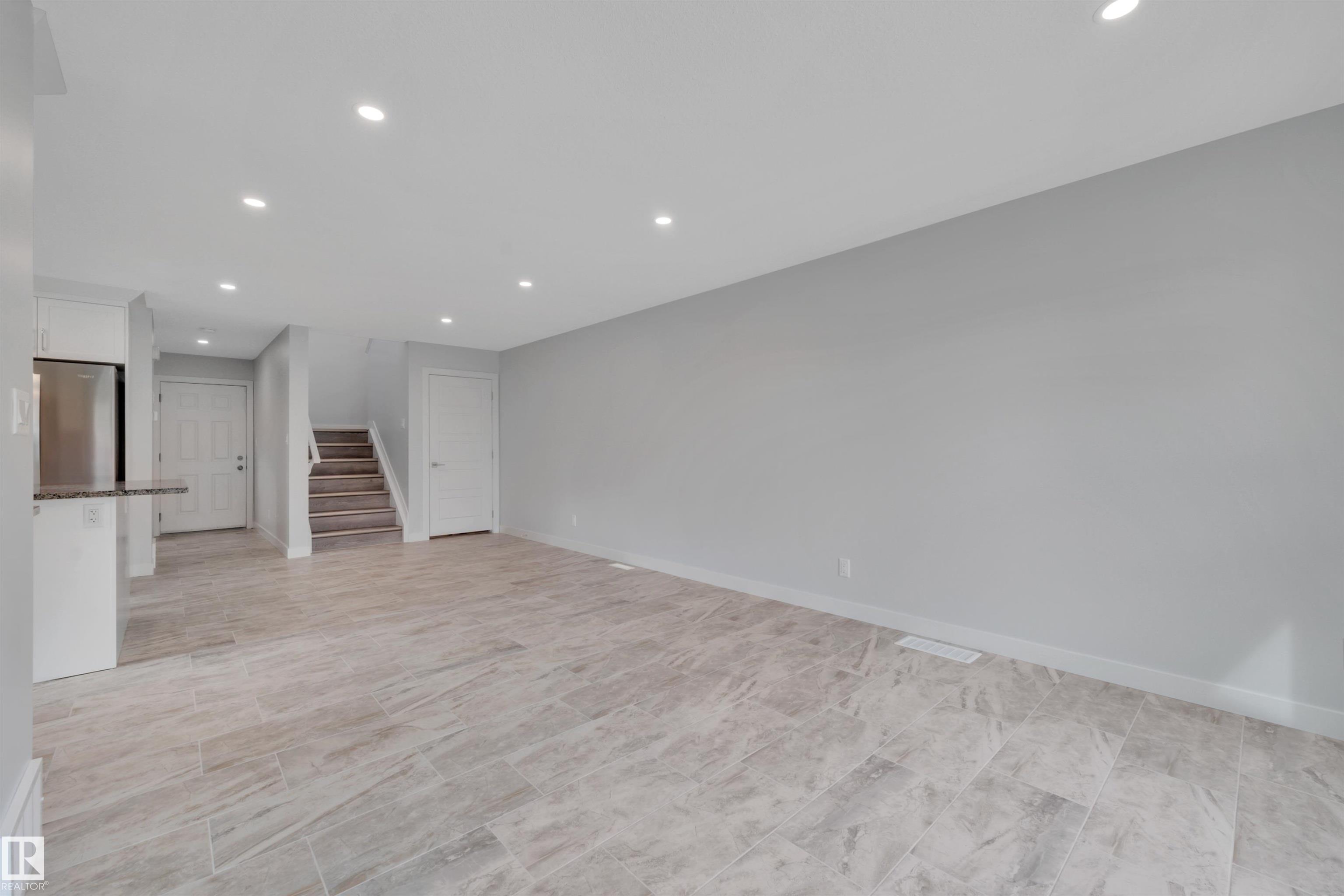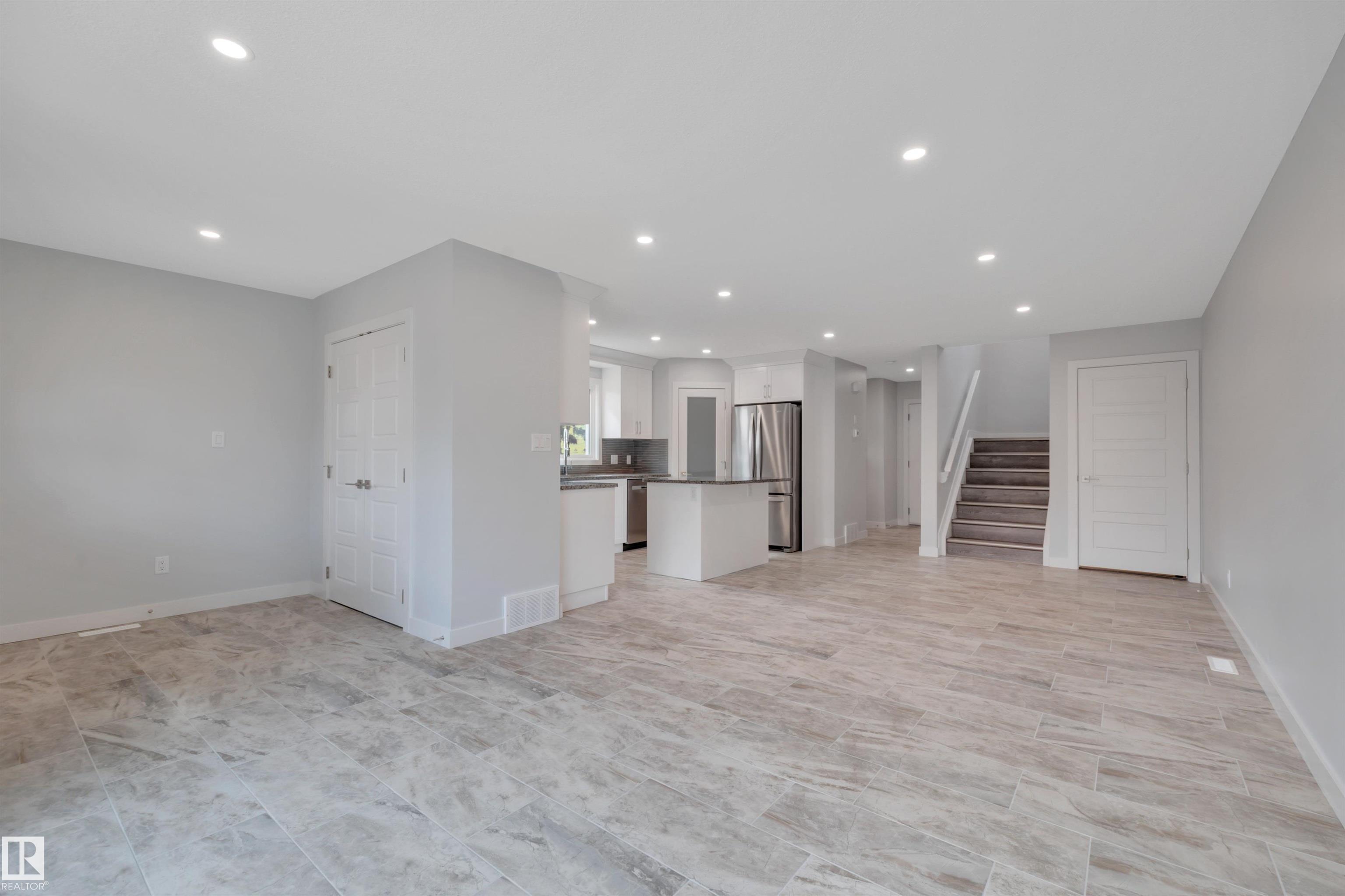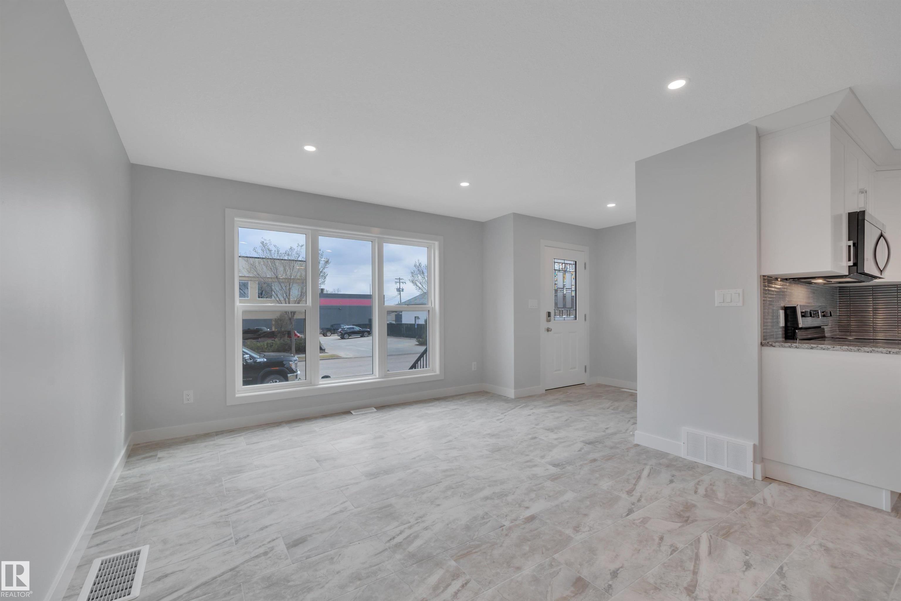 Updated half duplex (2025) in a highly desirable neighborhood of Leduc. This meticulously updated property features a modern, spacious kitchen with new cabinets, granite countertops, brand new appliances, and elegant porcelain tile floors. Large windows on the main floor flood the living space with natural light, creating a bright and inviting atmosphere. Enjoy energy efficiency with zone heating throughout and premium triple-pane windows on both floors for superior insulation and noise reduction. Each unit boasts three generous bedrooms upstairs, including a luxurious 3-pce ensuite in the primary bedroom and a 4-pce main bath. Convenient upper-floor laundry adds to the appeal. The open-concept main floor offers a bright living room, a cozy 2-pce bath, and a stylish kitchen perfect for family living or entertaining. The finished basement includes an additional bedroom with a 3-pce bath and a large recreation room, ideal for guests or a home office.