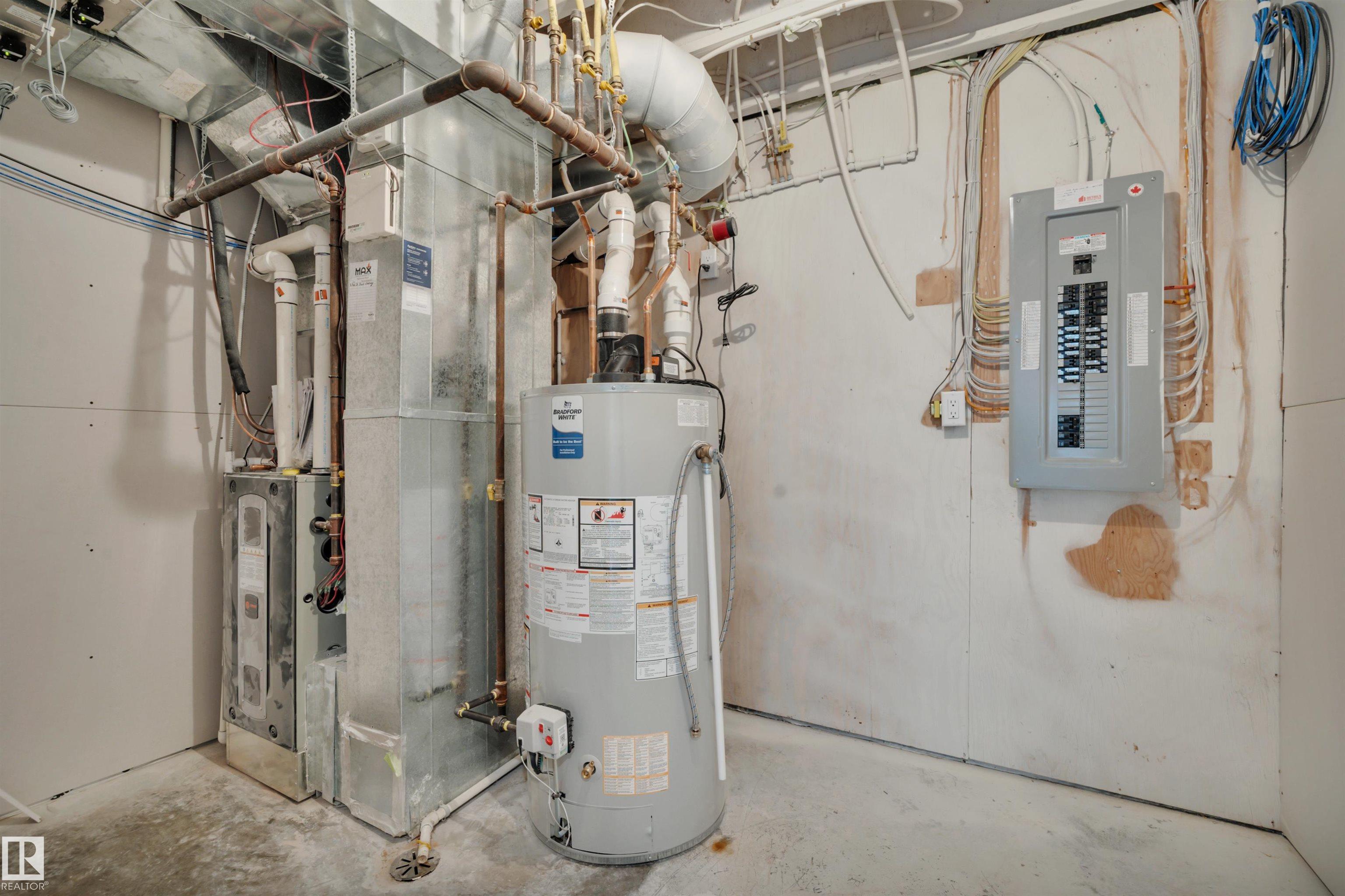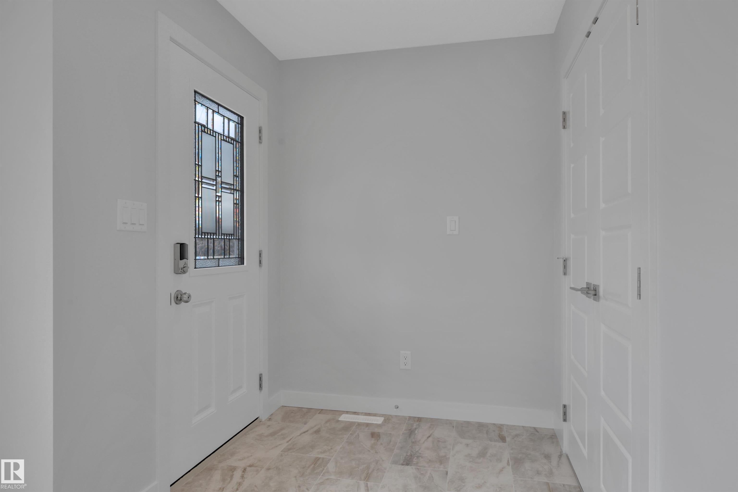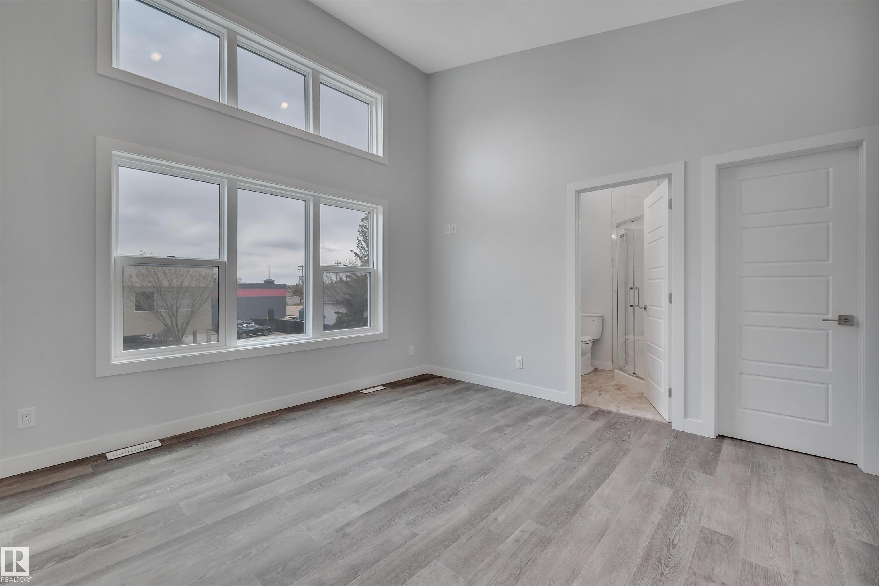 Updated half duplex (2025) in a highly desirable neighborhood of Leduc. This meticulously updated property features a modern, spacious kitchen with new cabinets, granite countertops, brand new appliances, and elegant porcelain tile floors. Large windows on the main floor flood the living space with natural light, creating a bright and inviting atmosphere. Enjoy energy efficiency with zone heating throughout and premium triple-pane windows on both floors for superior insulation and noise reduction. Each unit boasts three generous bedrooms upstairs, including a luxurious 3-pce ensuite in the primary bedroom and a 4-pce main bath. Convenient upper-floor laundry adds to the appeal. The open-concept main floor offers a bright living room, a cozy 2-pce bath, and a stylish kitchen perfect for family living or entertaining. The finished basement includes an additional bedroom with a 3-pce bath and a large recreation room, ideal for guests or a home office.