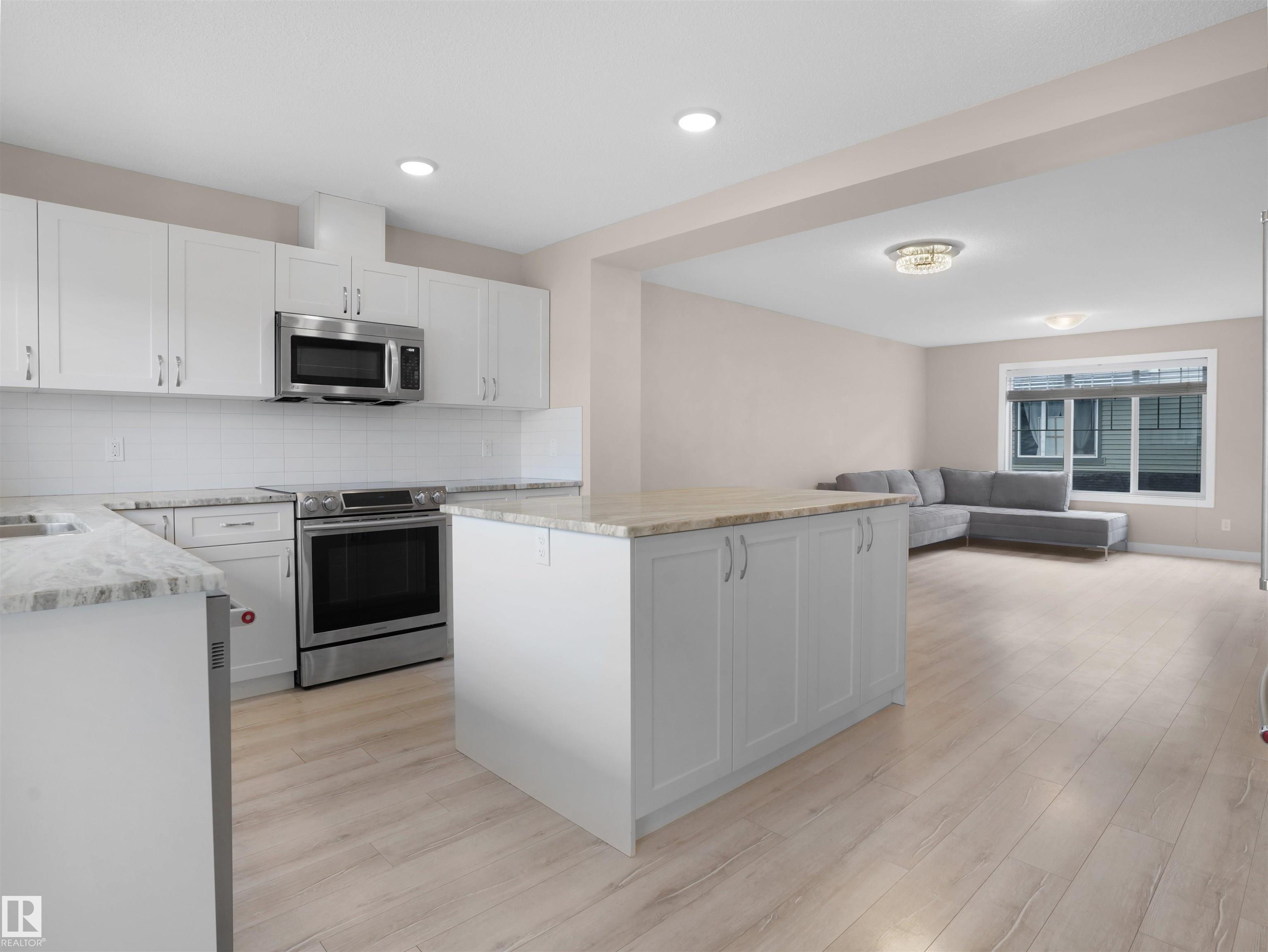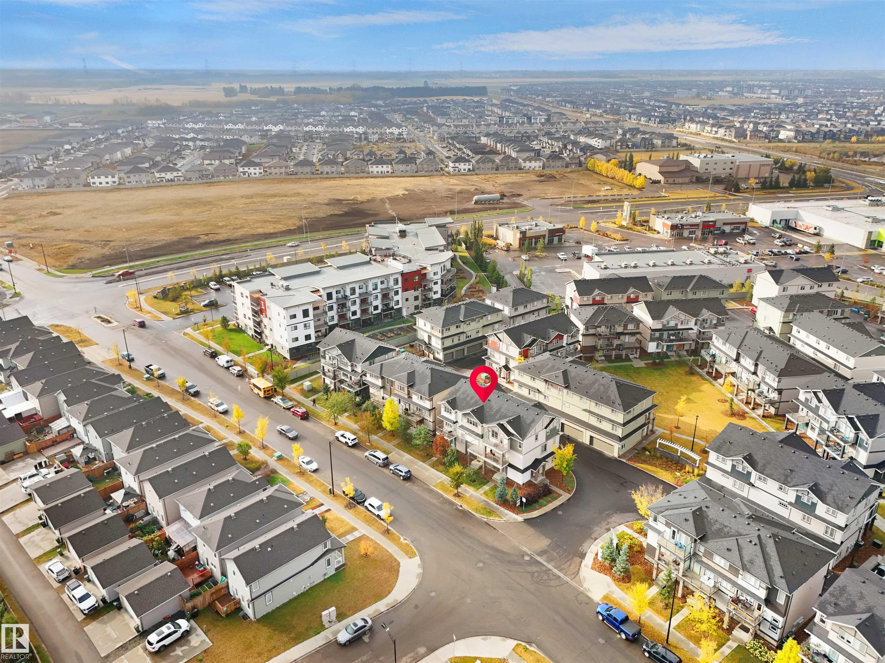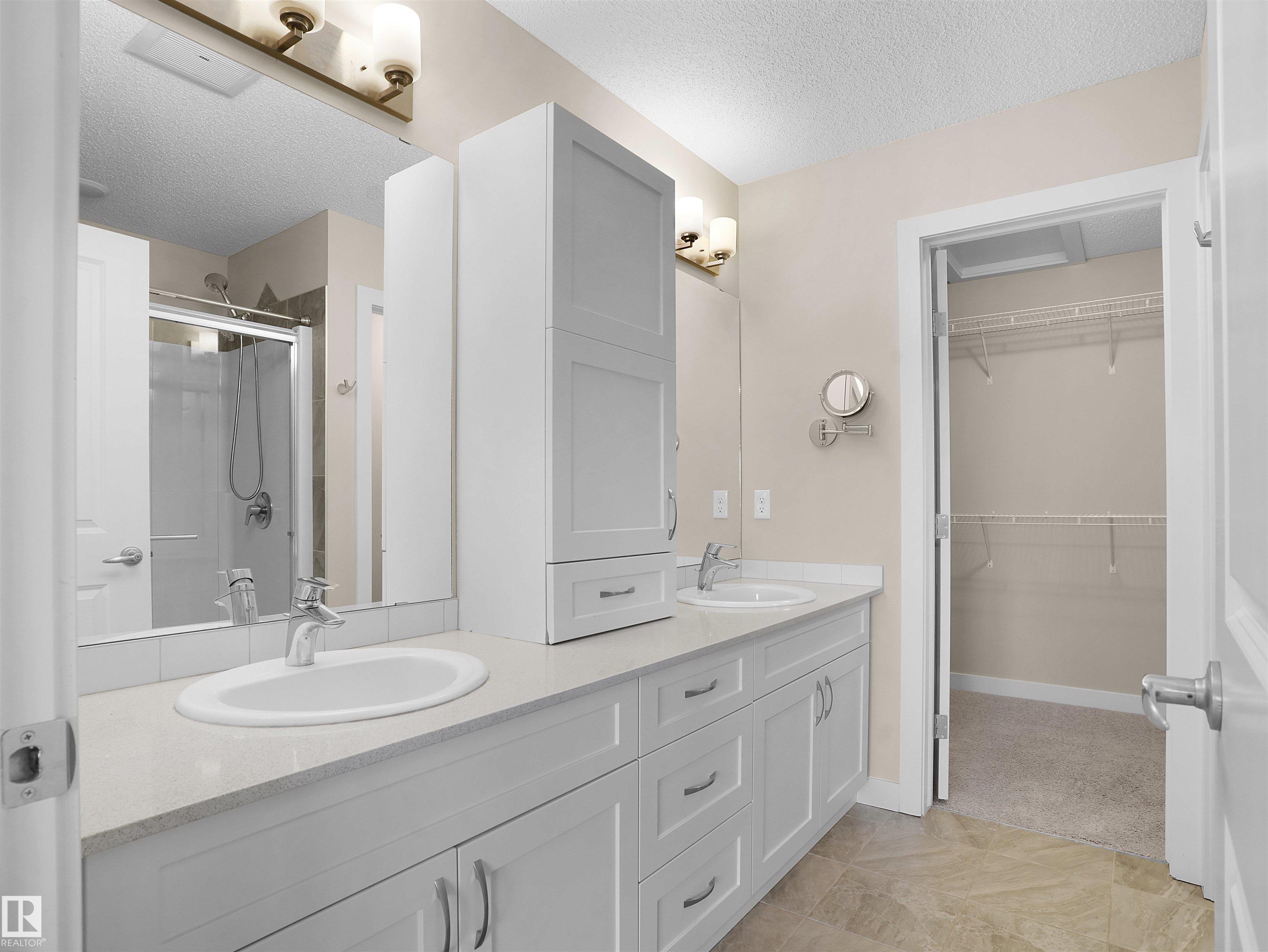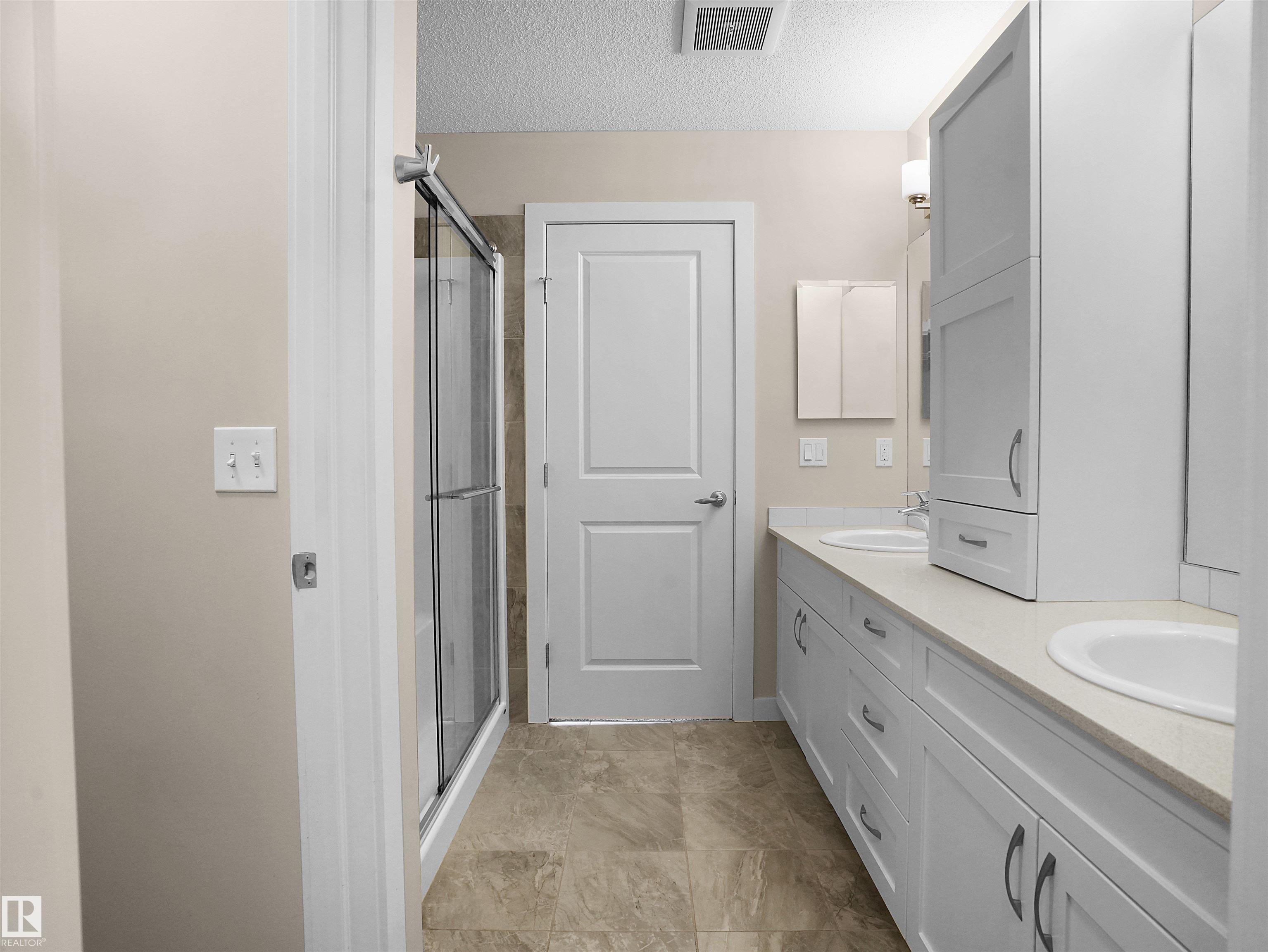 Welcome to StreetSide?s Essex?a stunning 3-storey home offering style, comfort & convenience! The main floor features a bright den, storage area & a double attached garage. The 2nd level showcases a spacious open-concept living area with custom-made cabinets ($10K upgrade), marble countertops, upgraded appliances, endless storage & a large island?perfect for entertaining! Enjoy a cozy living room that opens to a private balcony with a vinyl surface & aluminum railing. This level also includes a powder room & laundry with washer/dryer. Upstairs offers 2 bedrooms with ensuites, including a primary with double sinks, oversized shower & walk-in closet. Condo fees as low as $231 include professional landscaping & visitor parking. Prime location near Meadows Rec Centre, Chalo Fresco, Tim Hortons, and easy access to Henday?everything you need just minutes away!