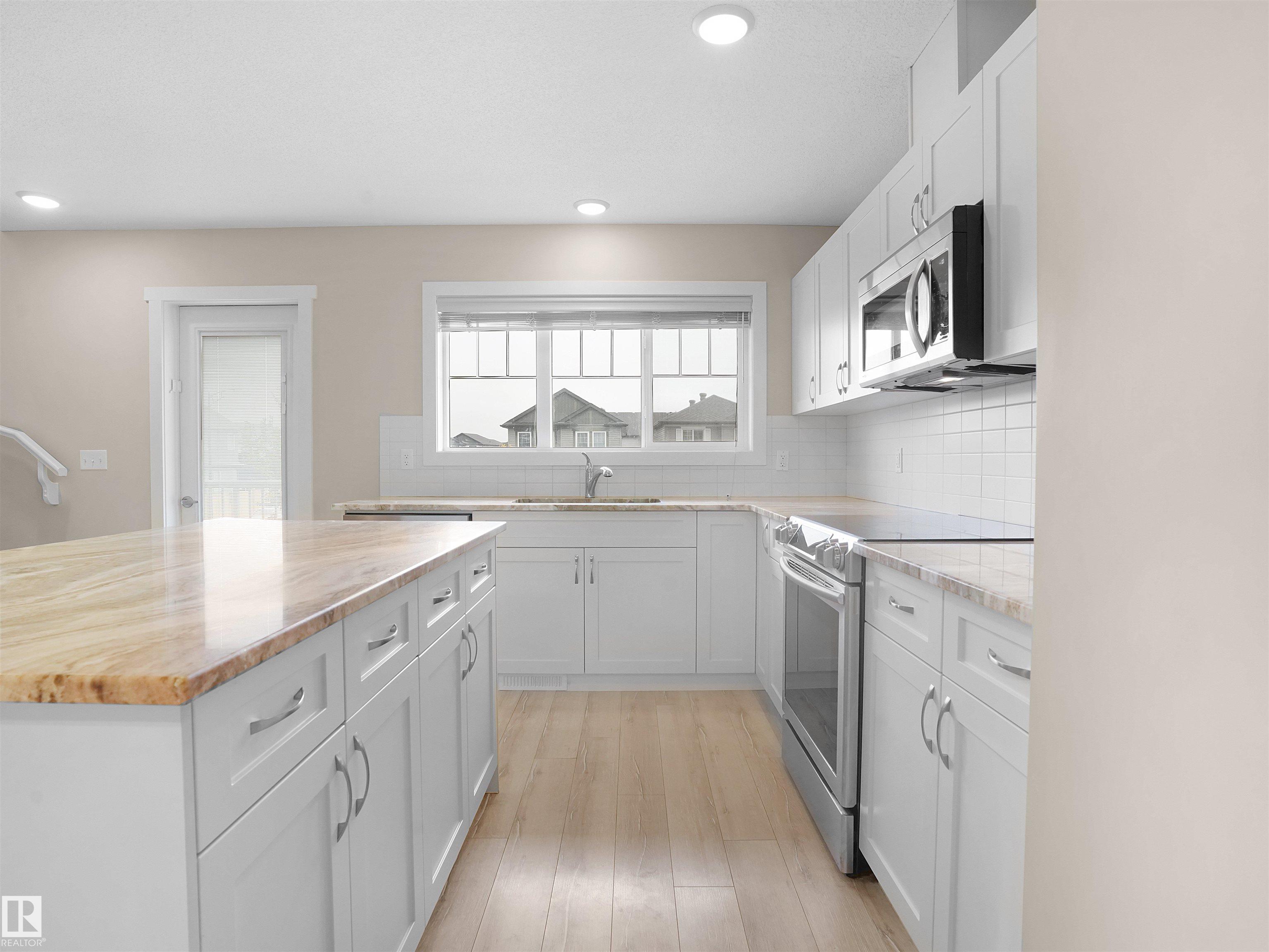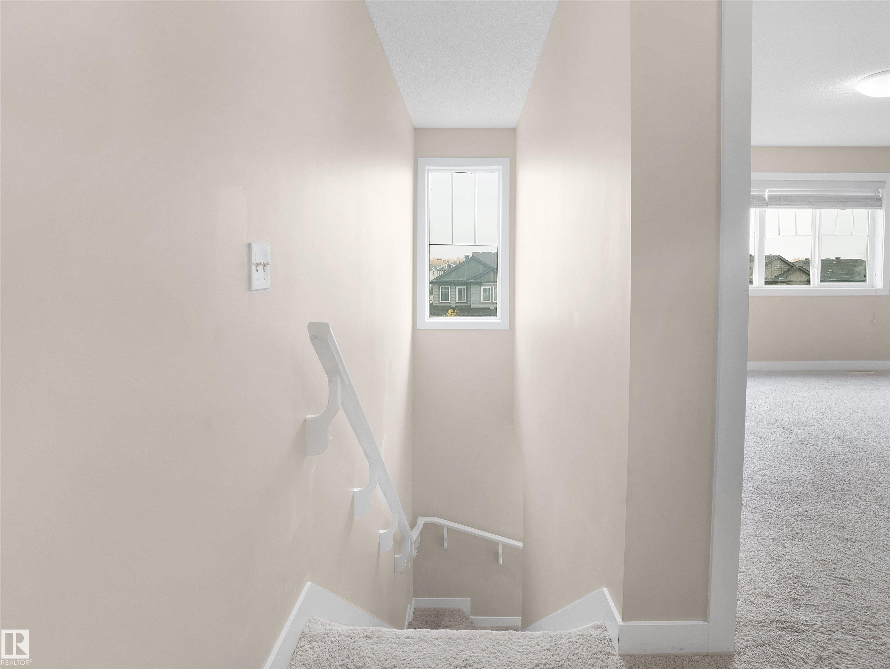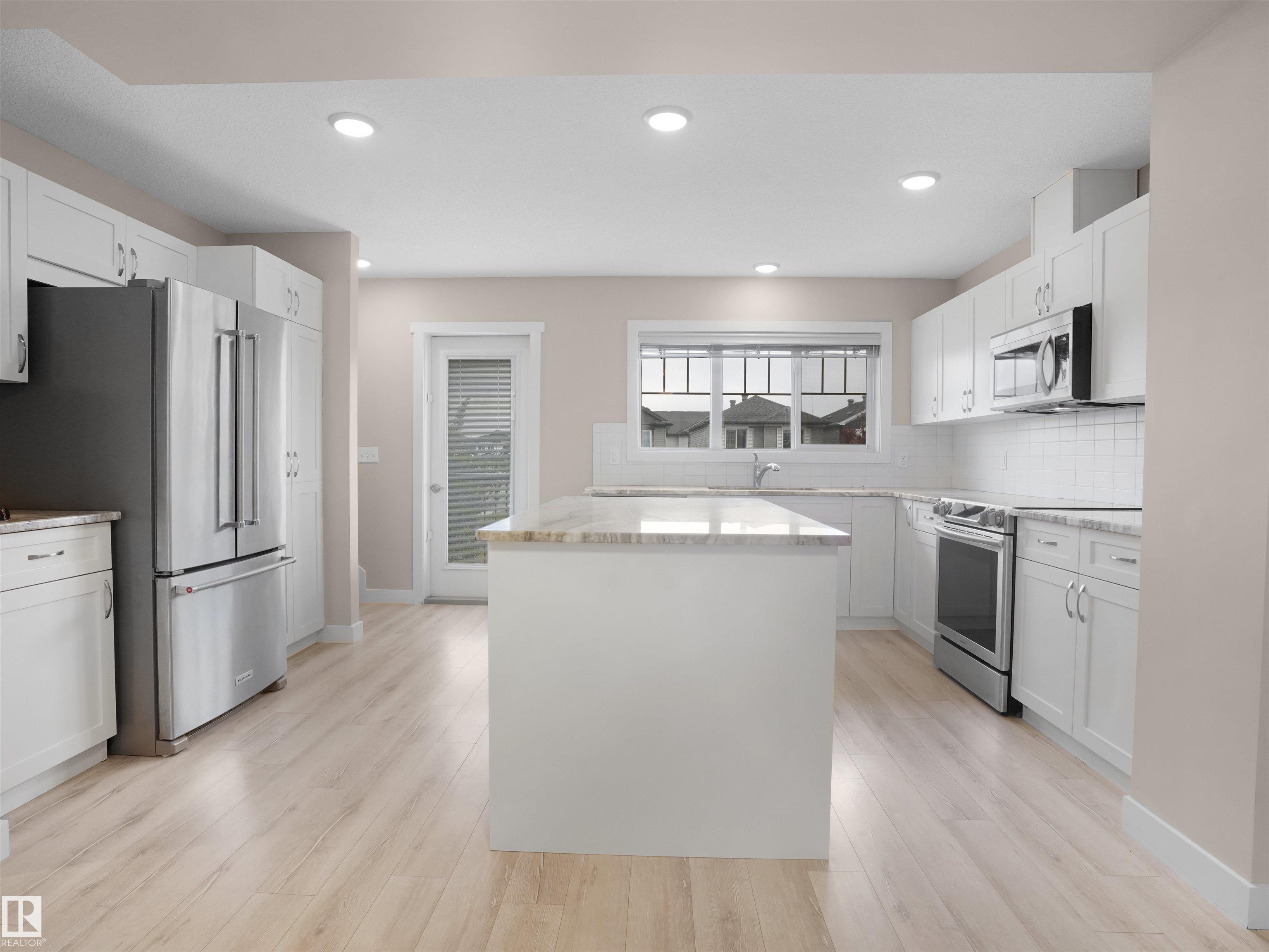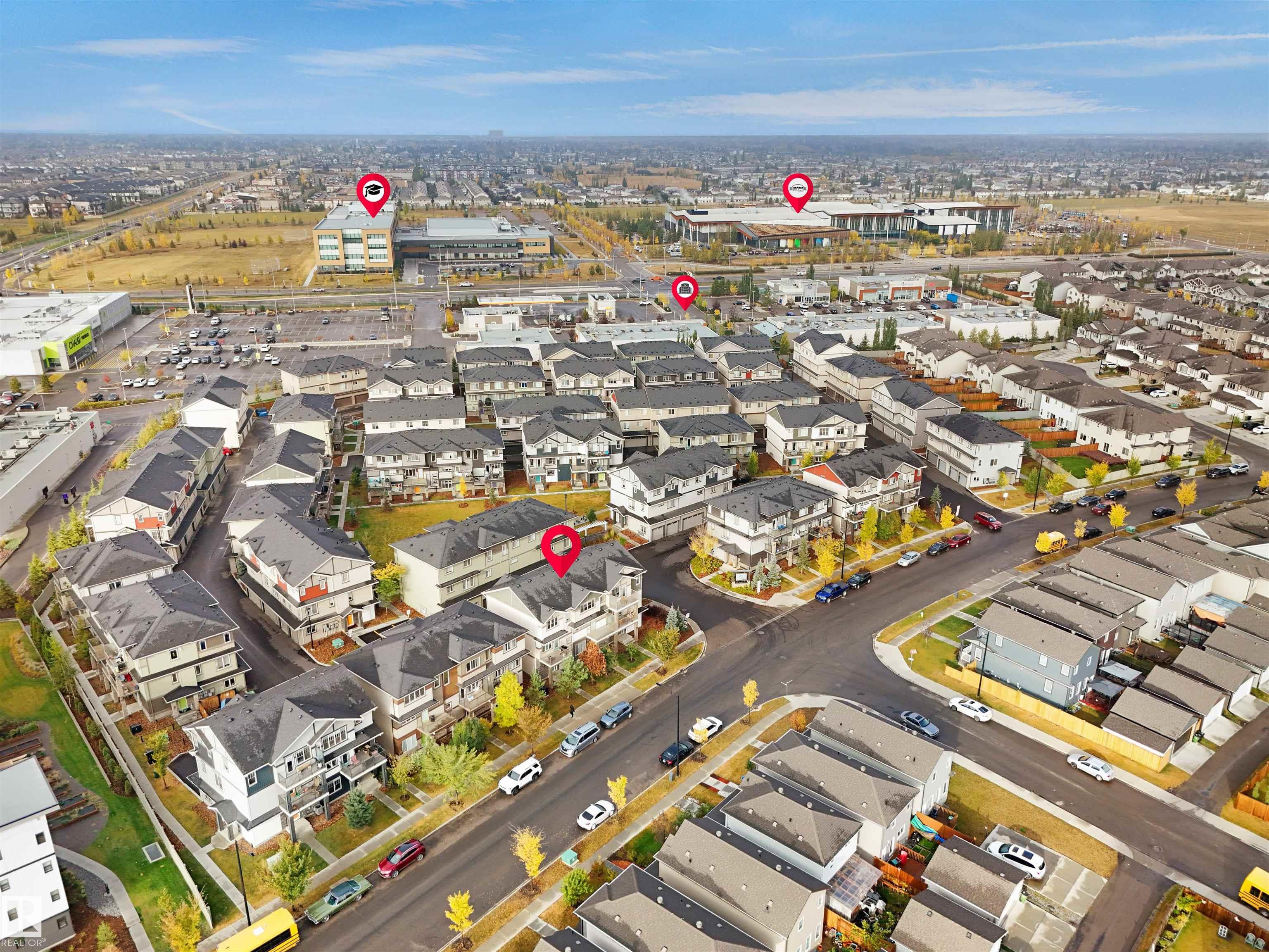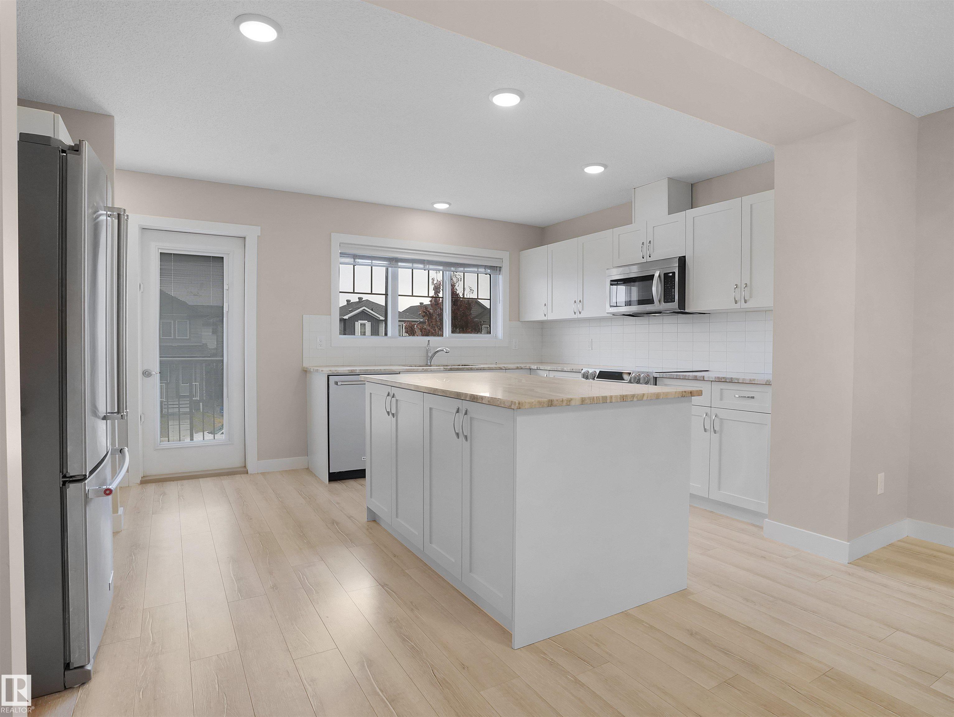 Welcome to StreetSide?s Essex?a stunning 3-storey home offering style, comfort & convenience! The main floor features a bright den, storage area & a double attached garage. The 2nd level showcases a spacious open-concept living area with custom-made cabinets ($10K upgrade), marble countertops, upgraded appliances, endless storage & a large island?perfect for entertaining! Enjoy a cozy living room that opens to a private balcony with a vinyl surface & aluminum railing. This level also includes a powder room & laundry with washer/dryer. Upstairs offers 2 bedrooms with ensuites, including a primary with double sinks, oversized shower & walk-in closet. Condo fees as low as $231 include professional landscaping & visitor parking. Prime location near Meadows Rec Centre, Chalo Fresco, Tim Hortons, and easy access to Henday?everything you need just minutes away!