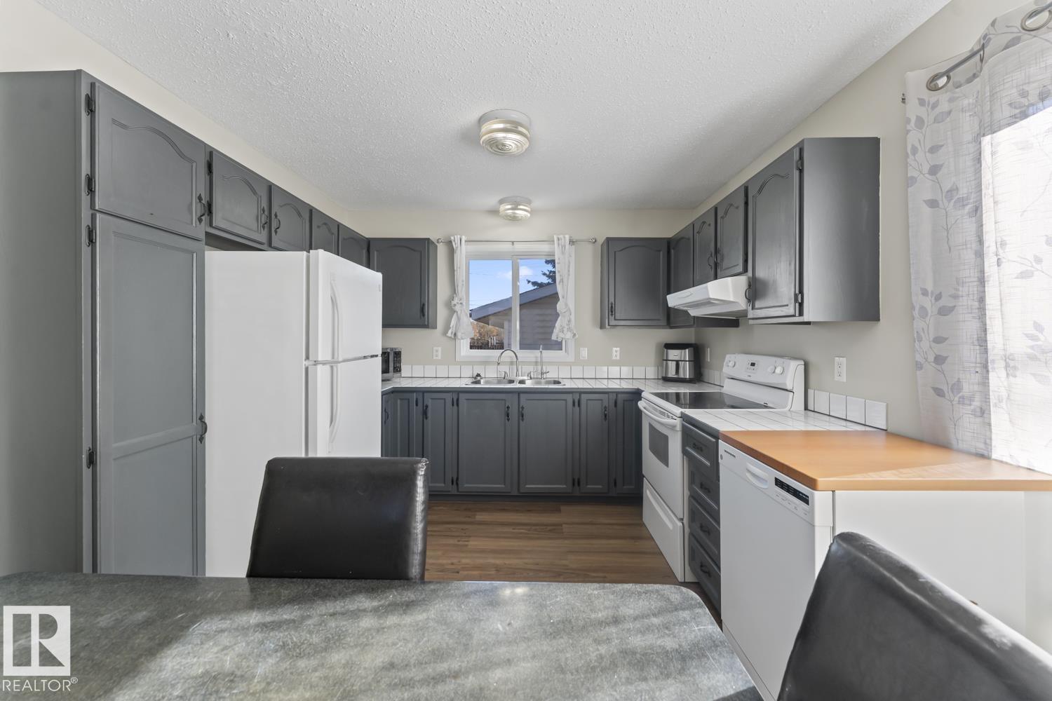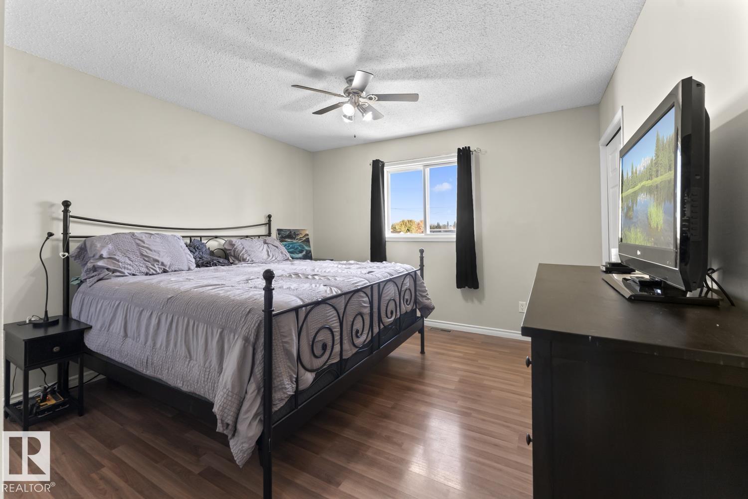 Welcome to this charming, beautifully maintained bungalow, freshly painted with new flooring throughout offering 5 bedrooms and 2 bathrooms. The kitchen features stylish dark cabinets, and plenty of windows that fill the space with natural light. The main floor includes 3 bedrooms and a bright, welcoming living area. The fully finished basement offers 2 additional bedrooms, a comfortable family room, a full bathroom, and a convenient storage room ? perfect for a growing family or guests. Outside, enjoy a fenced and landscaped yard that backs onto green space and a beautiful park with large double gate and access for RV Parking. Finishing off this property is a double detached heated garage with 220V power. This home combines charm, functionality, and is close to 4 Wing, schools, and in the heart of Cold Lake ? truly a must-see!