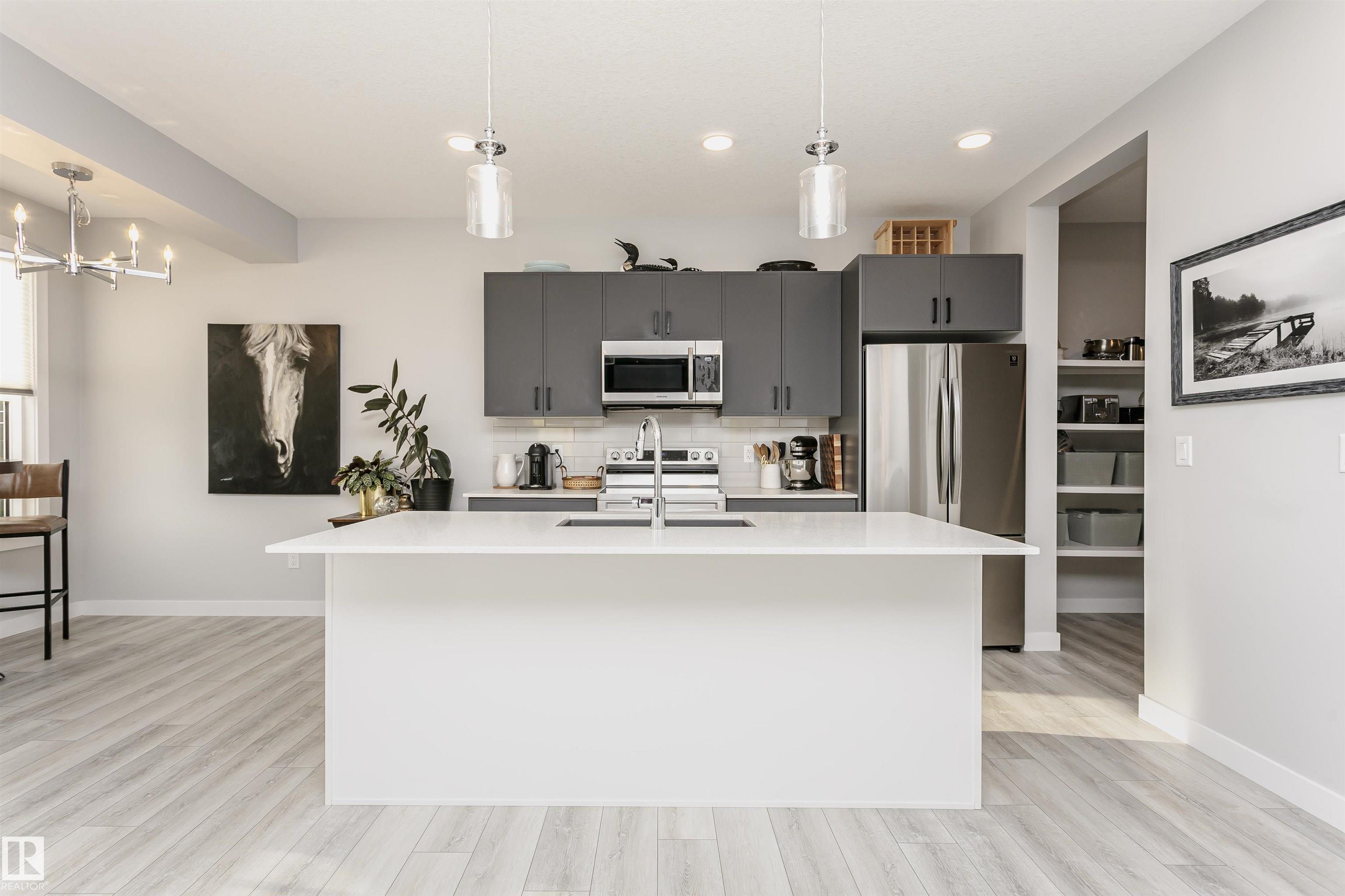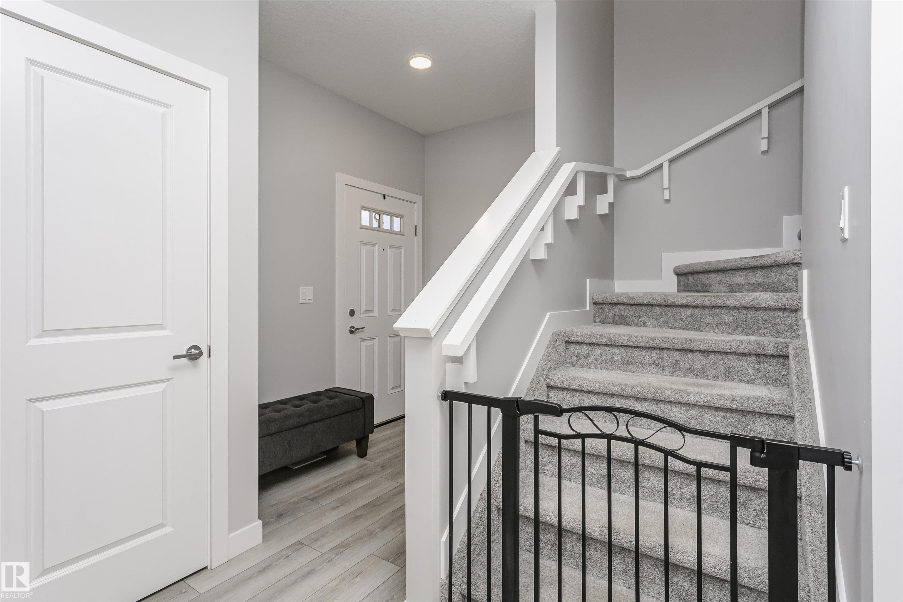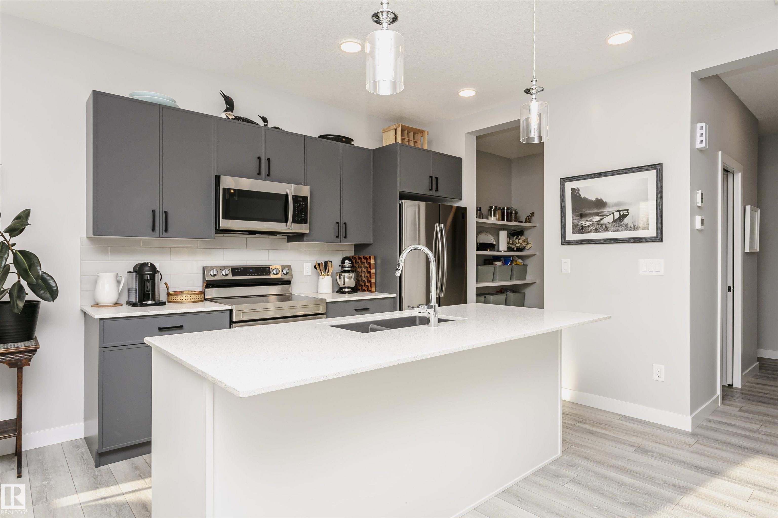 Welcome Home! This 2021 built Alquinn Home duplex is fully upgraded on a corner lot. Over 1500 sqft of modern finishes and an open floor plan. You will Notice the chic vinyl plank flooring through out the main level. The spacious kitchen offers tons of cupboard space, quartz counter tops, plenty of natural light, upgraded stainless appliances and a walk through butler pantry straight from the garage. You can also access the tastefully landscaped back yard, upgraded deck and a built in walk way to the second entrance. The second level has 3 bedrooms including a large primary bedroom with a walk in closet and 4 piece ensuite with ceramic tiles. 2 other spacious bedrooms, another 4 piece bathroom and a bonus room for your family or friends. There is also a double attached garage that is insulated and drywalled. The basement is unspoiled and has a seperate entrace if you are looking to build a suite.