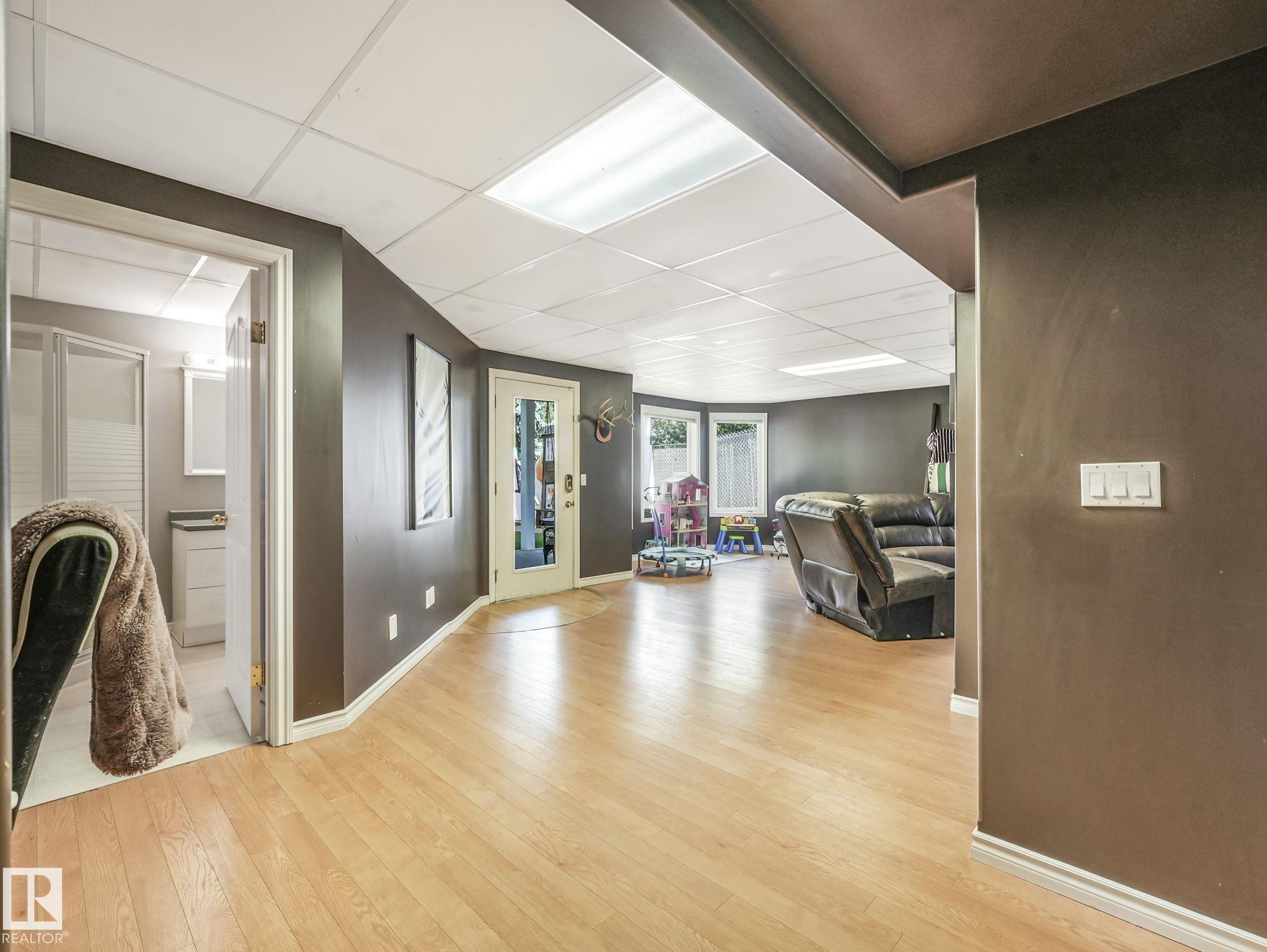 Beautifully finished walkout bungalow with over 2,600 sqft of living space in the quiet, family-friendly community of Millet! This fully developed home is completely wheelchair accessible throughout, including a no-step entry through the garage, wide hallways, and doorways. Located on a safe, low-traffic cul-de-sac where kids can play outside with peace of mind. The open-concept main floor is filled with natural light, while the fully finished walkout basement offers flexible space for family, guests, or hobbies. Complete with in floor heating. An oversized double attached garage provides ample room for parking, storage, or a workshop. The yard is fully equipped with an irrigation system, making lawn care effortless. Enjoy small-town living just 30 minutes from Edmonton, perfect for those seeking space, comfort, and community. This move-in ready home is ideal for families, retirees, or anyone looking for a thoughtfully designed, accessible layout in a welcoming neighbourhood. A rare find anywhere.