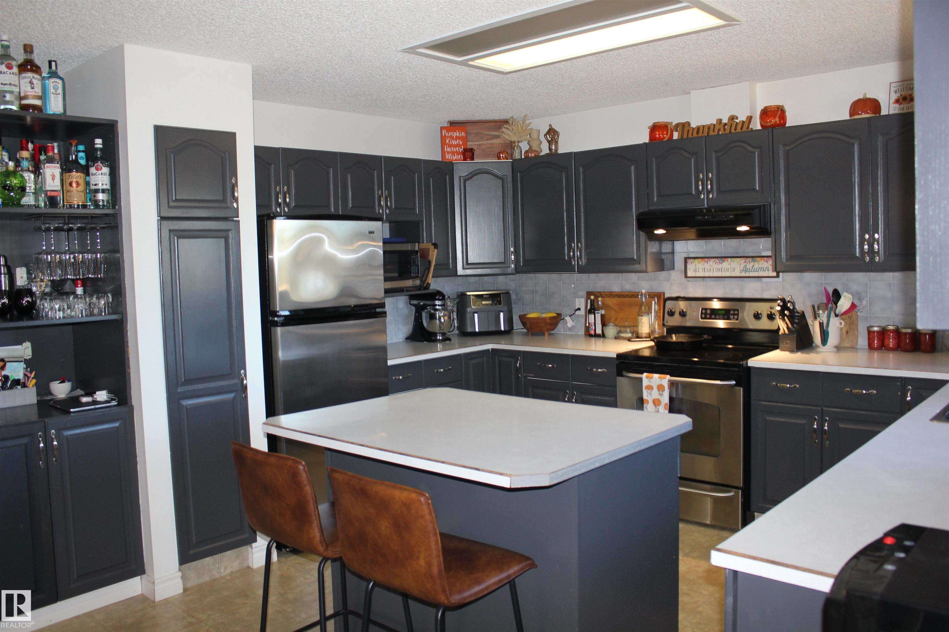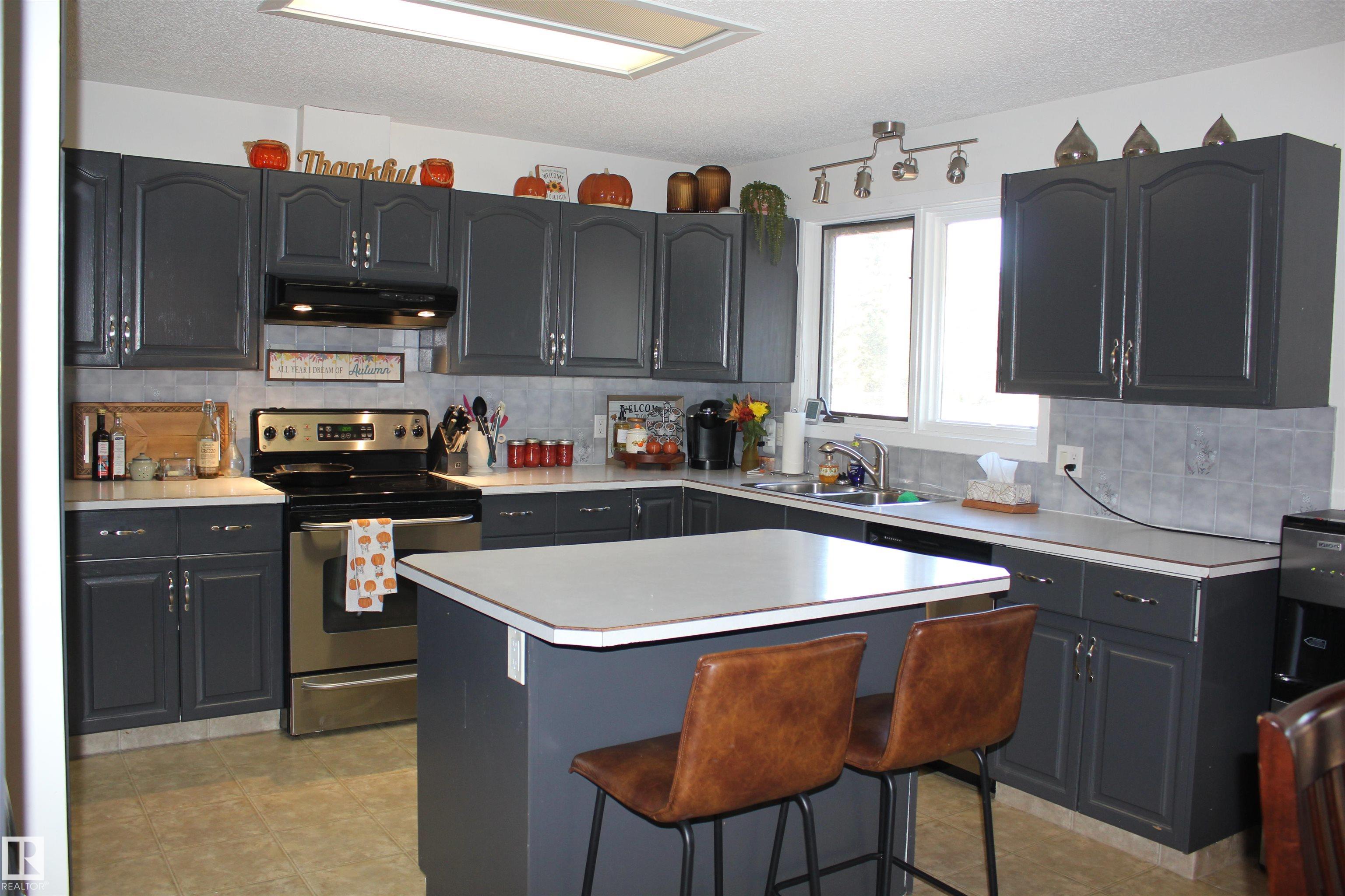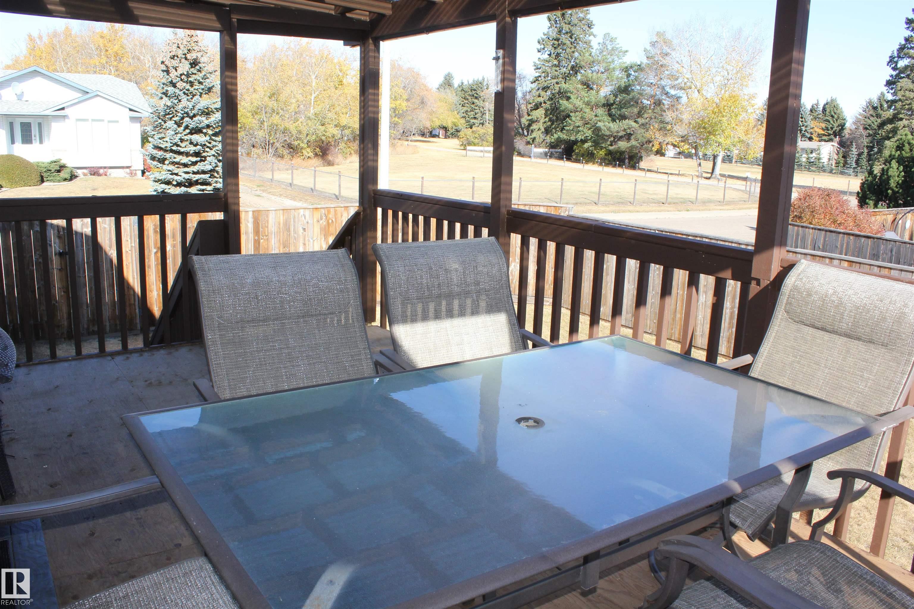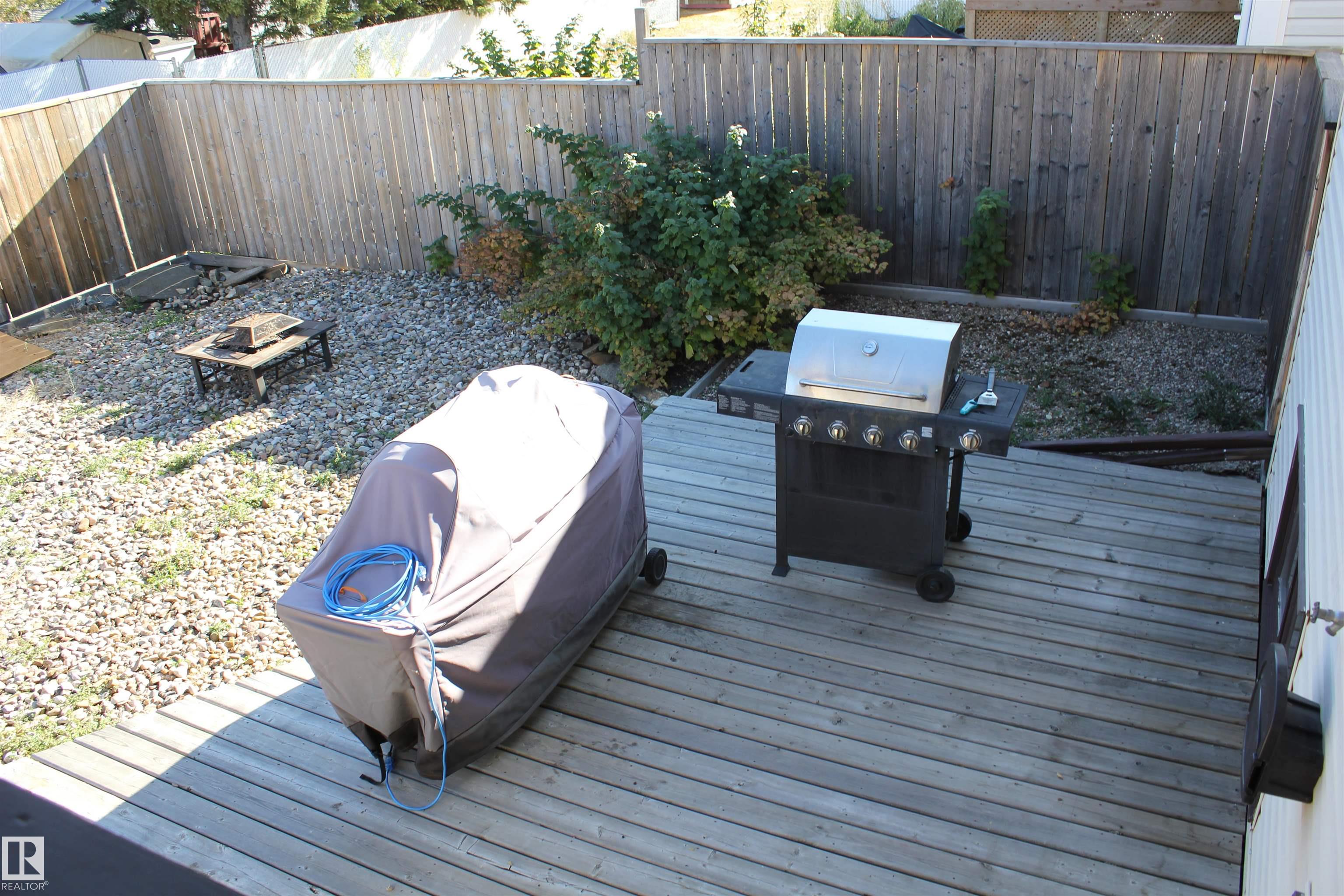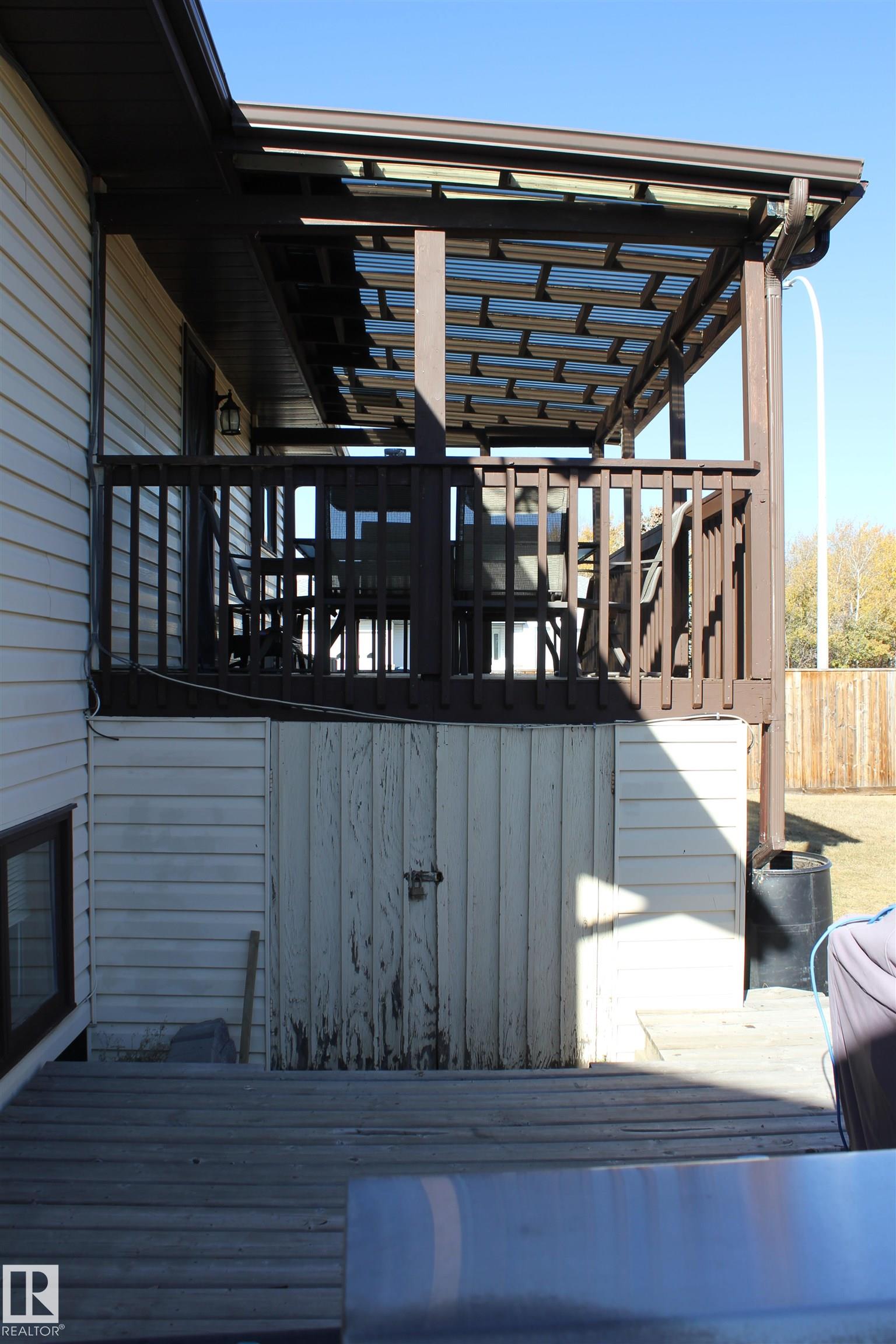 Welcome to the perfect family home in Elk Point. This 1987, 1269 sq ft home is located on a corner lot in a quiet crescent. With five bedrooms and three baths there is room for everyone. The large open concept kitchen, with an island and lots of cabinetry and a good size dining area can accommodate a growing family PLUS there is access to the east facing covered deck. On the main floor is 3 bedrooms and two baths, including a 3pc ensuite and a sunken living room. The fully finished basement boasts a large family room, 2 more bedrooms with large windows, a 3pc. bath, large laundry/utility room with a sink, cupboards and a hook-up for an electric stove, a cold room and tons of storage. To provide warmth and comfort on both levels is a boiler (2012) for hot water heat and under slab heat. The double attached garage has a workshop area and a large garage door. The backyard is fully fenced with 2 gates and provides a private sitting area with a fire pit area and storage under the deck.