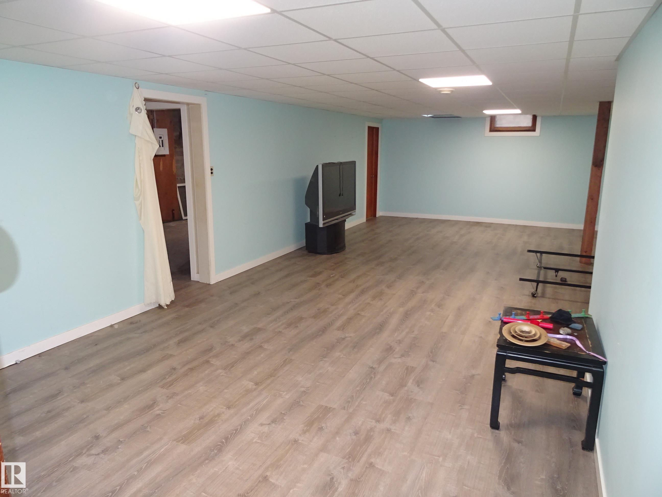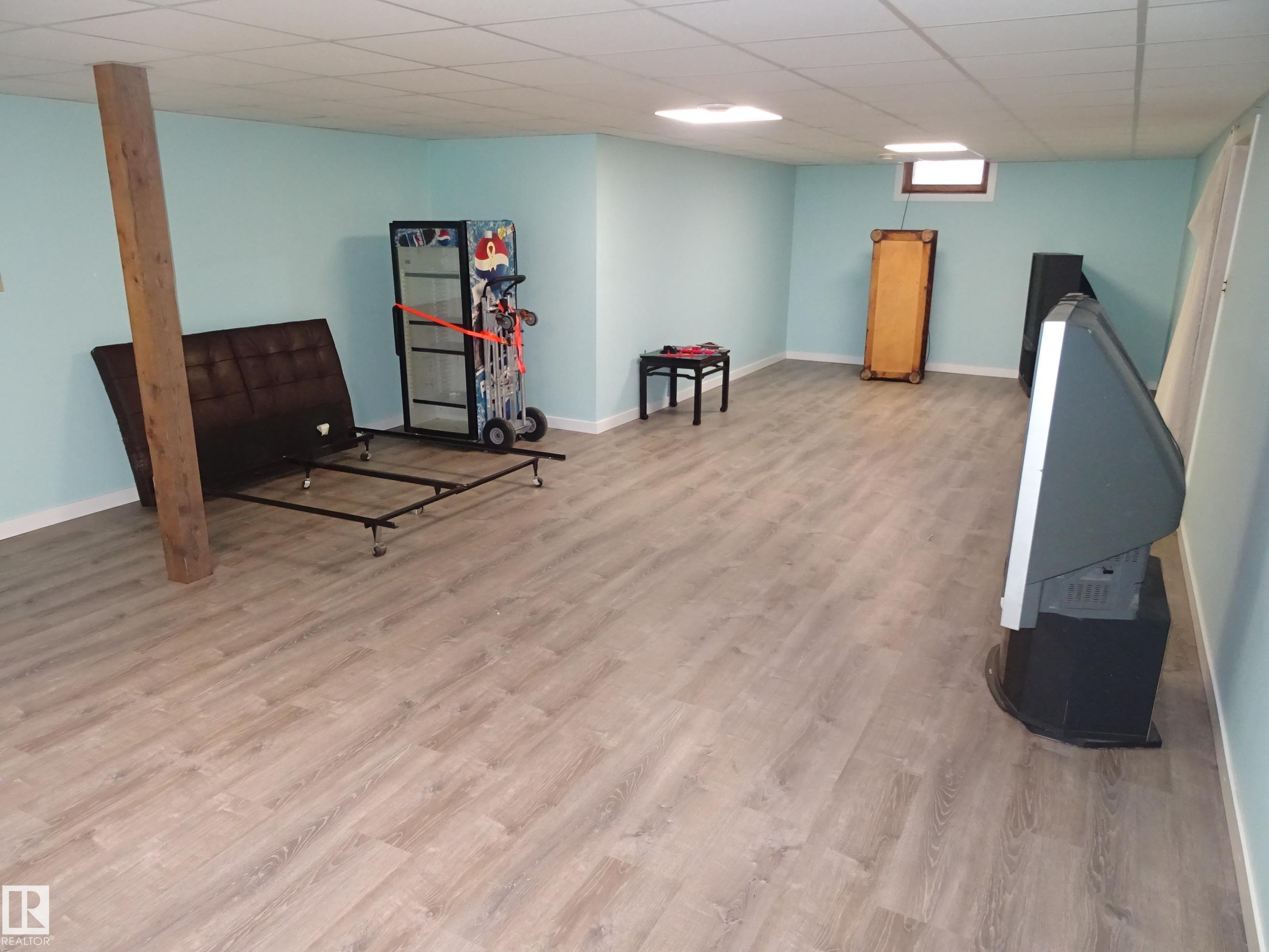 This 1244 sq ft bungalow is perfect for a growing family in a quiet town. Enter the home on the main floor into a large living room with space for your your entire home entertainment system. The kitchen has lots of counterspace and room for a sizeable dining room table. Down the hall you will find 3 bedrooms and the main 4pc bathroom. Downstairs there is a massive modern recreation room with space for the kids to play. There is also a large storage room and a spacious utility room. Upgrades to the home include shingles, some windows, electrical, and a mid efficient furnace. There is a large back yard, single detached garage and back alley access. A great home with good bones and lots of potential.