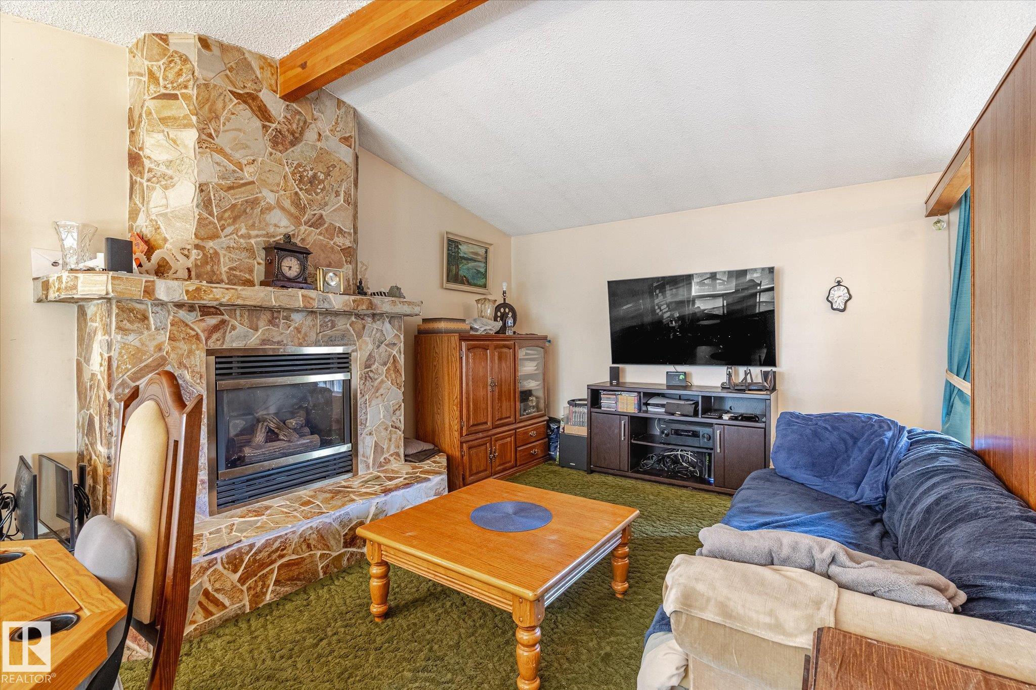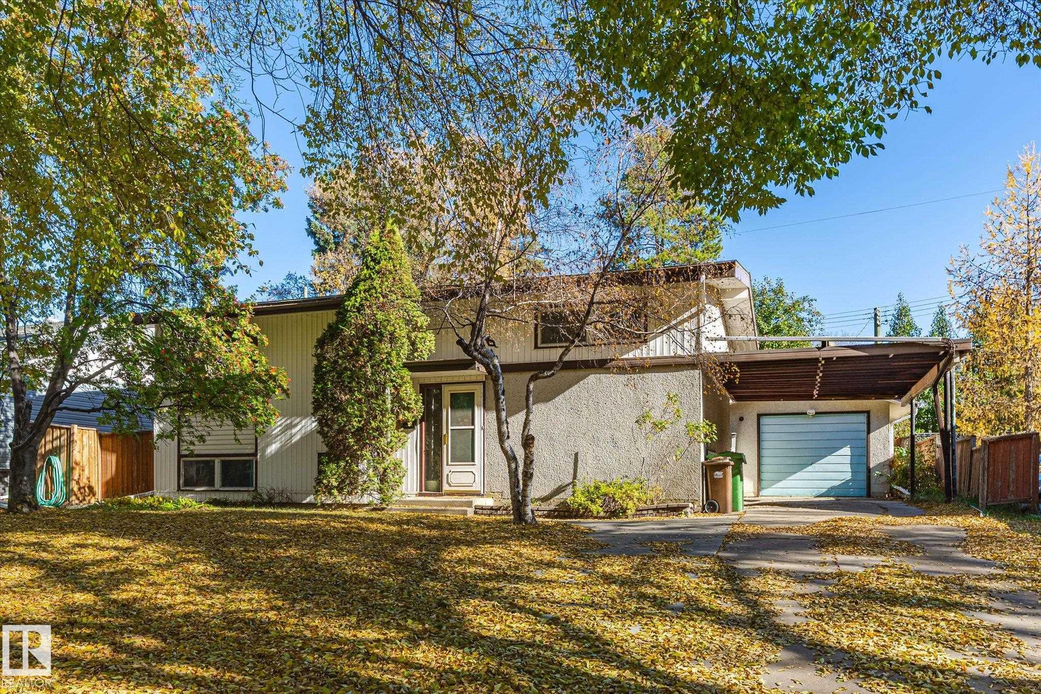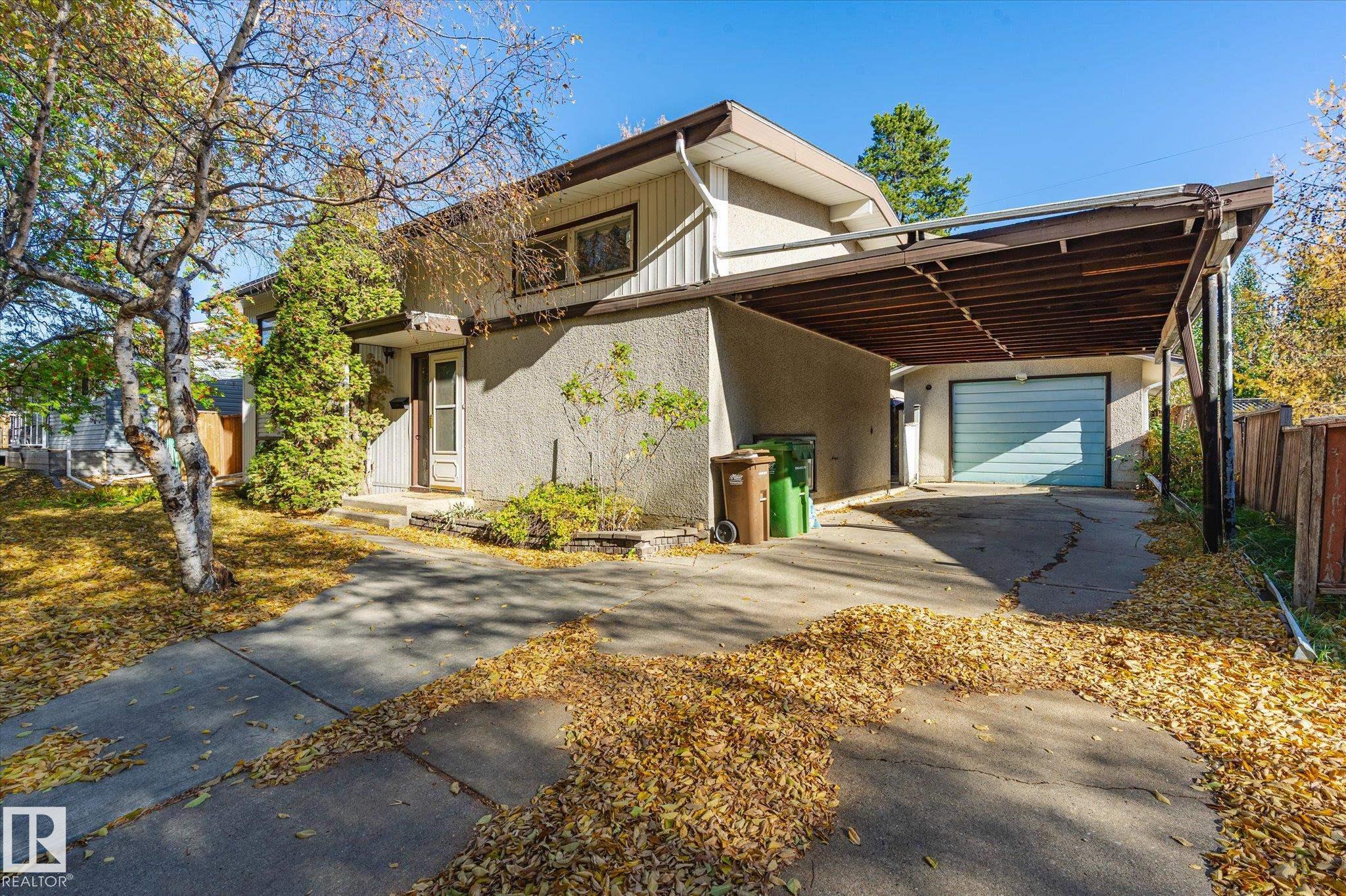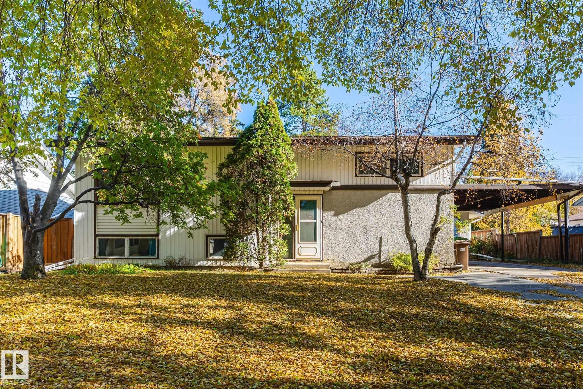 Located on a beautiful tree line this home is perfect for first time buyer. Visualize what this wonderful 836 sq ft bilevel will look like and you will immediately love the opportunity. Super 70's vibe with the vaulted ceilings throughout the main level. Living room spans the full depth of the home, streaming in natural light. Featured gas fireplace with floor to ceiling stone wall and mantle - truly a grand display. Kitchen space is functional in design and is overlooking the backyard. Dining area separates the kitchen and livingroom. .Main floor master bedroom with an ensuite four piece bathroom. Lower level has large windows that open this space up to even more natural light. With a family room (currently used as a craft room, 3 more bedrooms and a bathroom this level is complete. Separate entrance. Hot Water Tank 2023. Single garage & car port. Amazing lot with fruit trees. Close to schools. Lovely neighbourhood to call home.