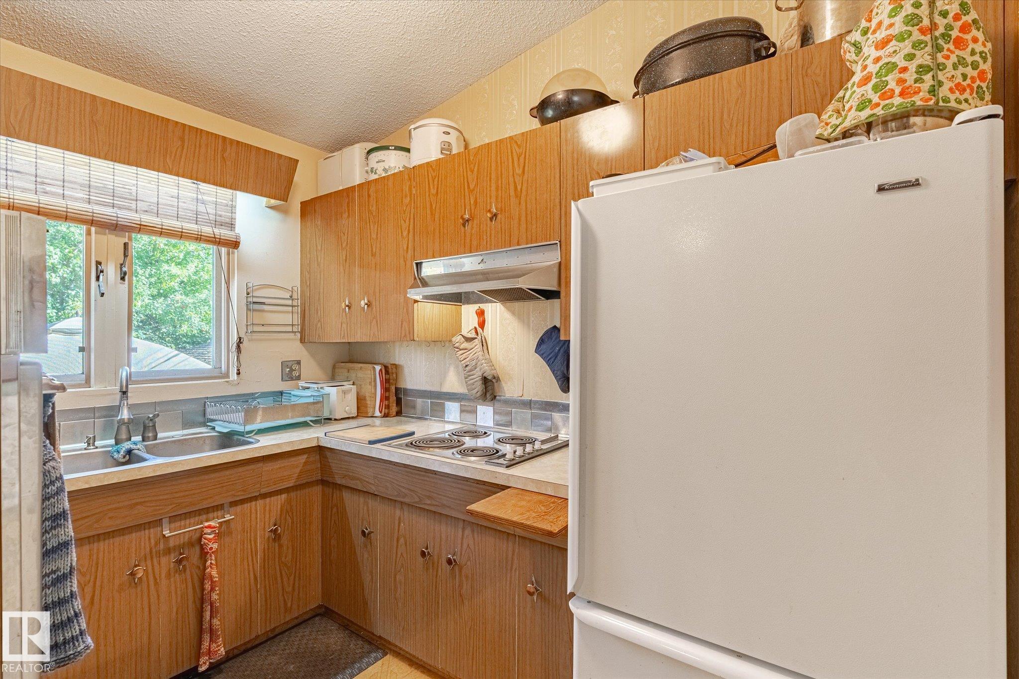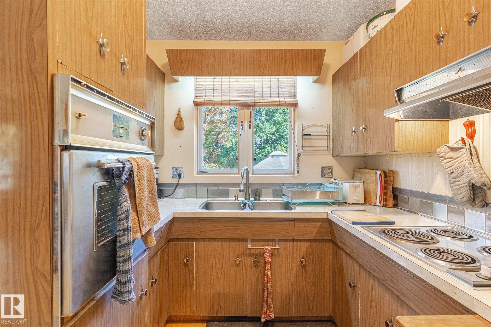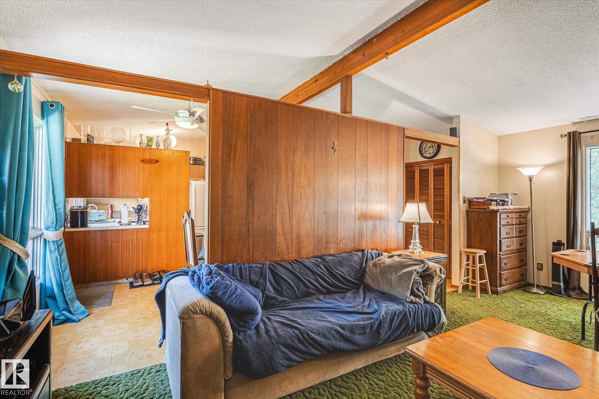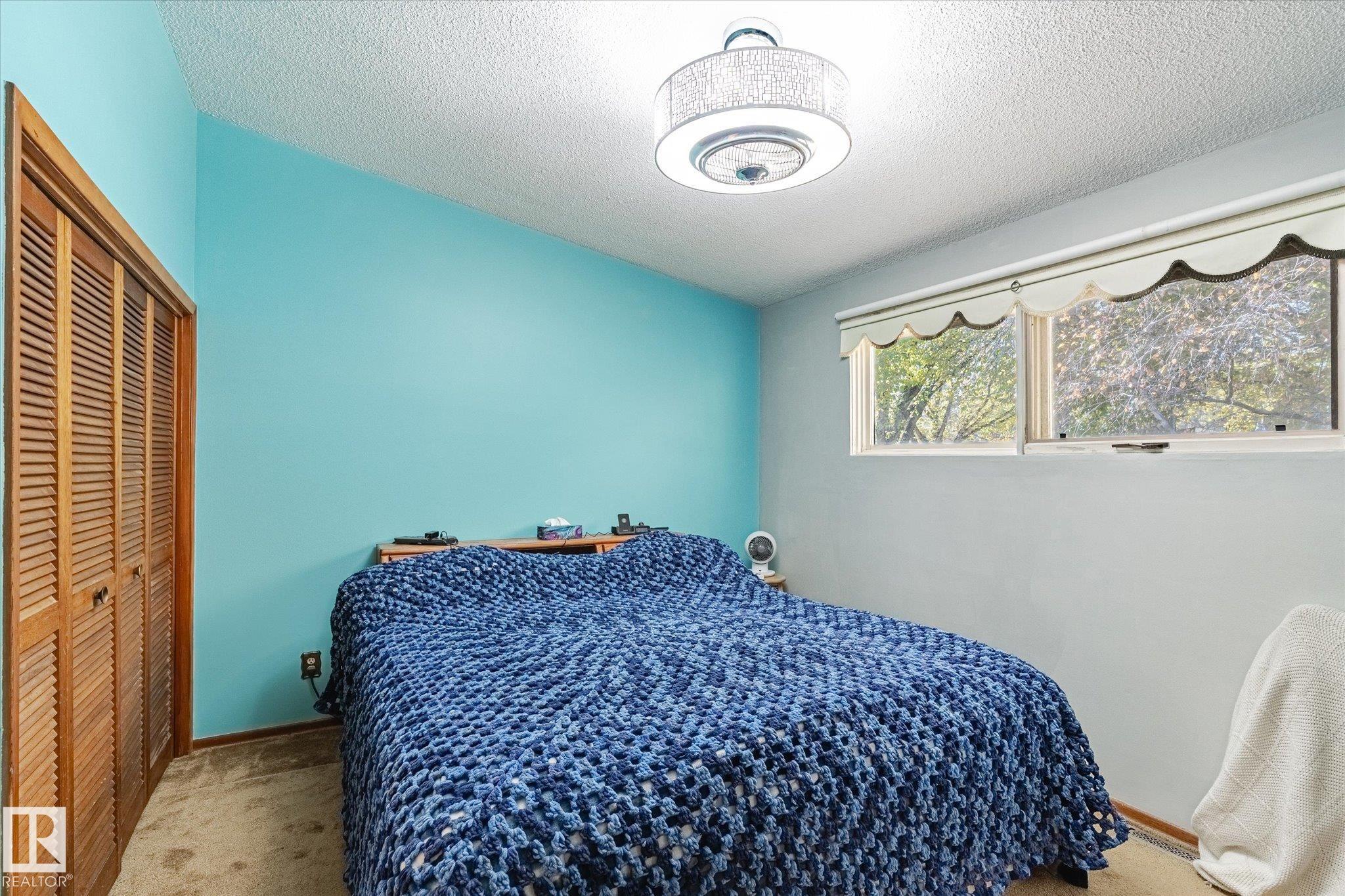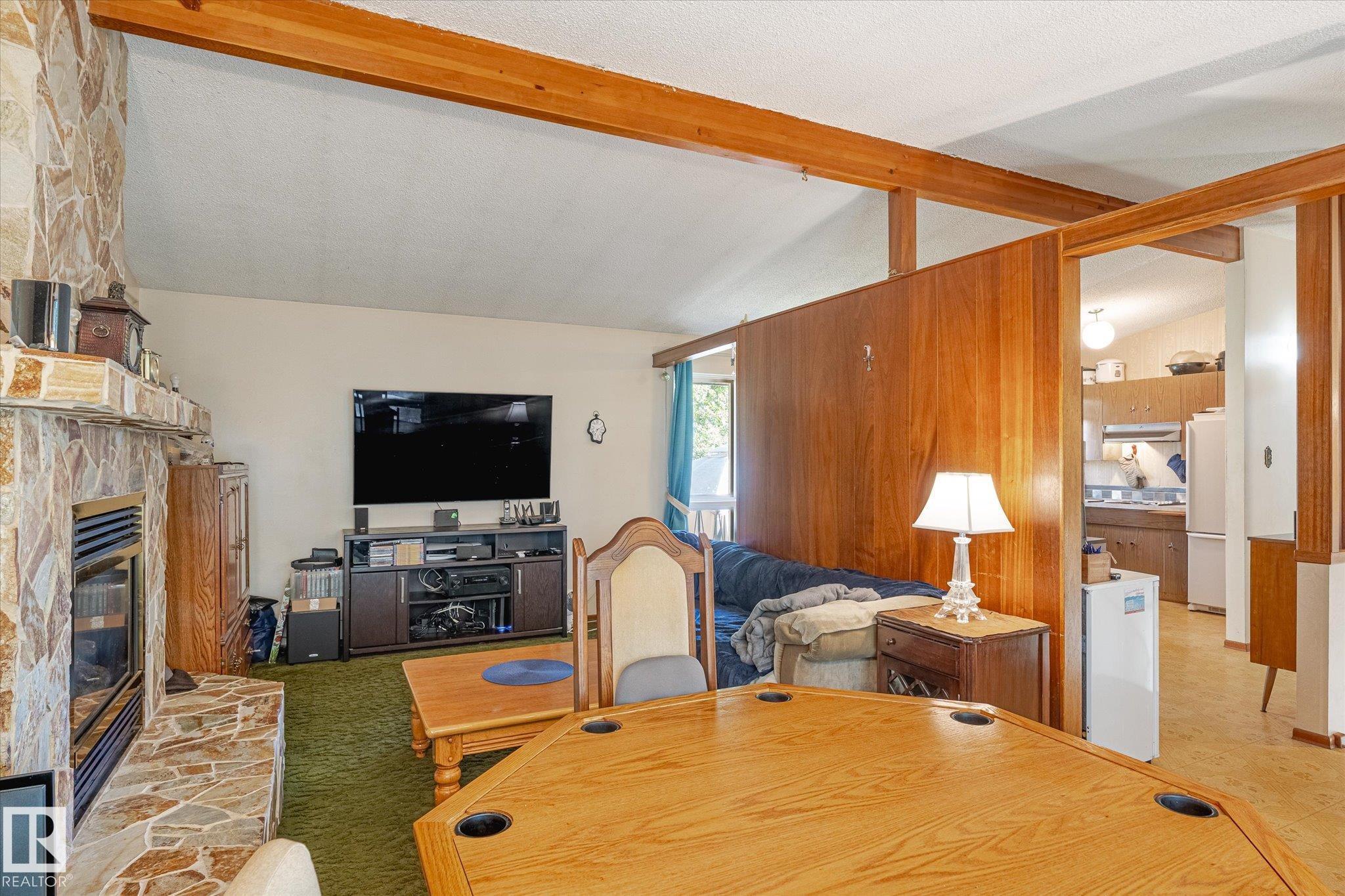 Located on a beautiful tree line this home is perfect for first time buyer. Visualize what this wonderful 836 sq ft bilevel will look like and you will immediately love the opportunity. Super 70's vibe with the vaulted ceilings throughout the main level. Living room spans the full depth of the home, streaming in natural light. Featured gas fireplace with floor to ceiling stone wall and mantle - truly a grand display. Kitchen space is functional in design and is overlooking the backyard. Dining area separates the kitchen and livingroom. .Main floor master bedroom with an ensuite four piece bathroom. Lower level has large windows that open this space up to even more natural light. With a family room (currently used as a craft room, 3 more bedrooms and a bathroom this level is complete. Separate entrance. Hot Water Tank 2023. Single garage & car port. Amazing lot with fruit trees. Close to schools. Lovely neighbourhood to call home.