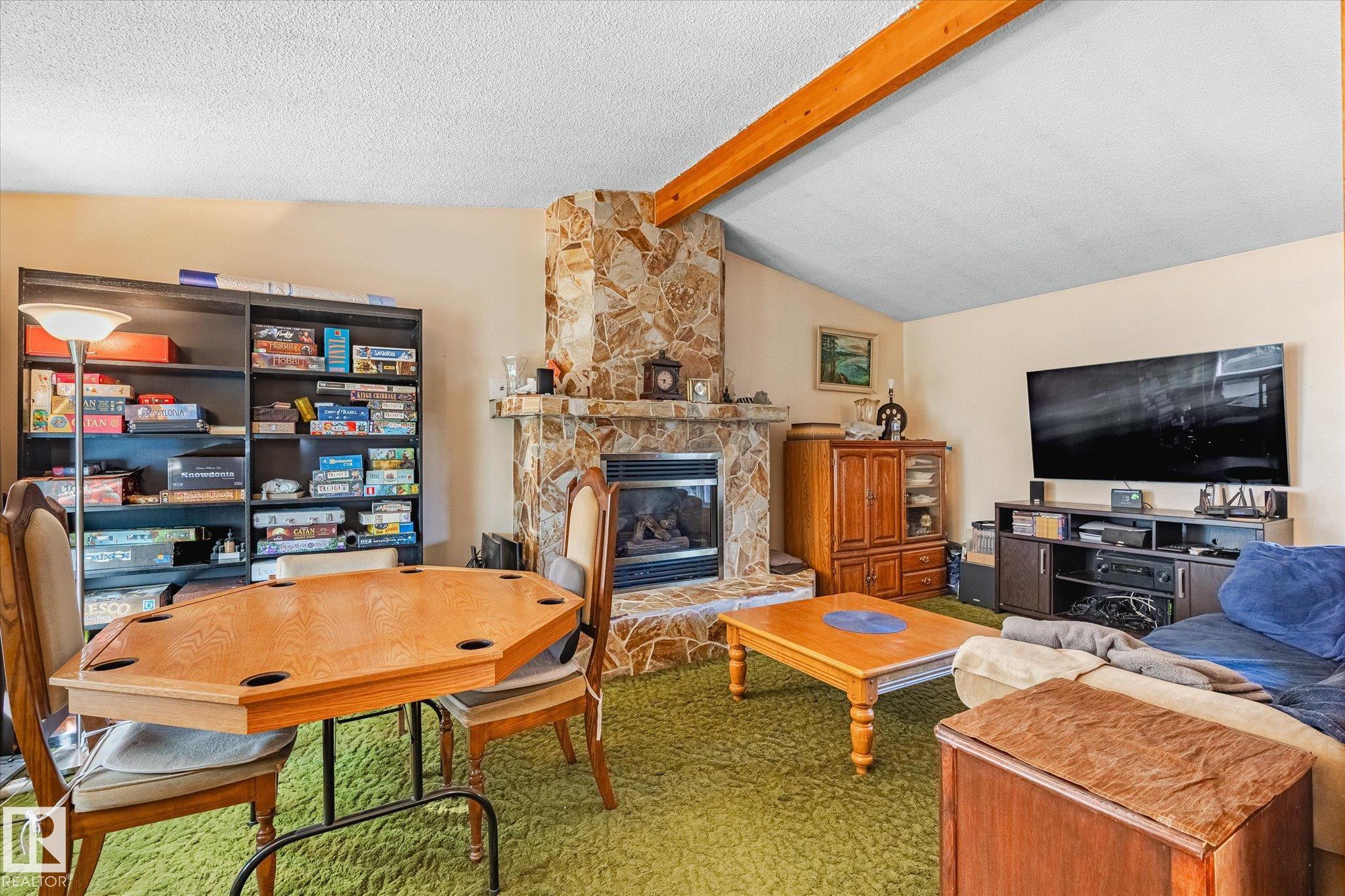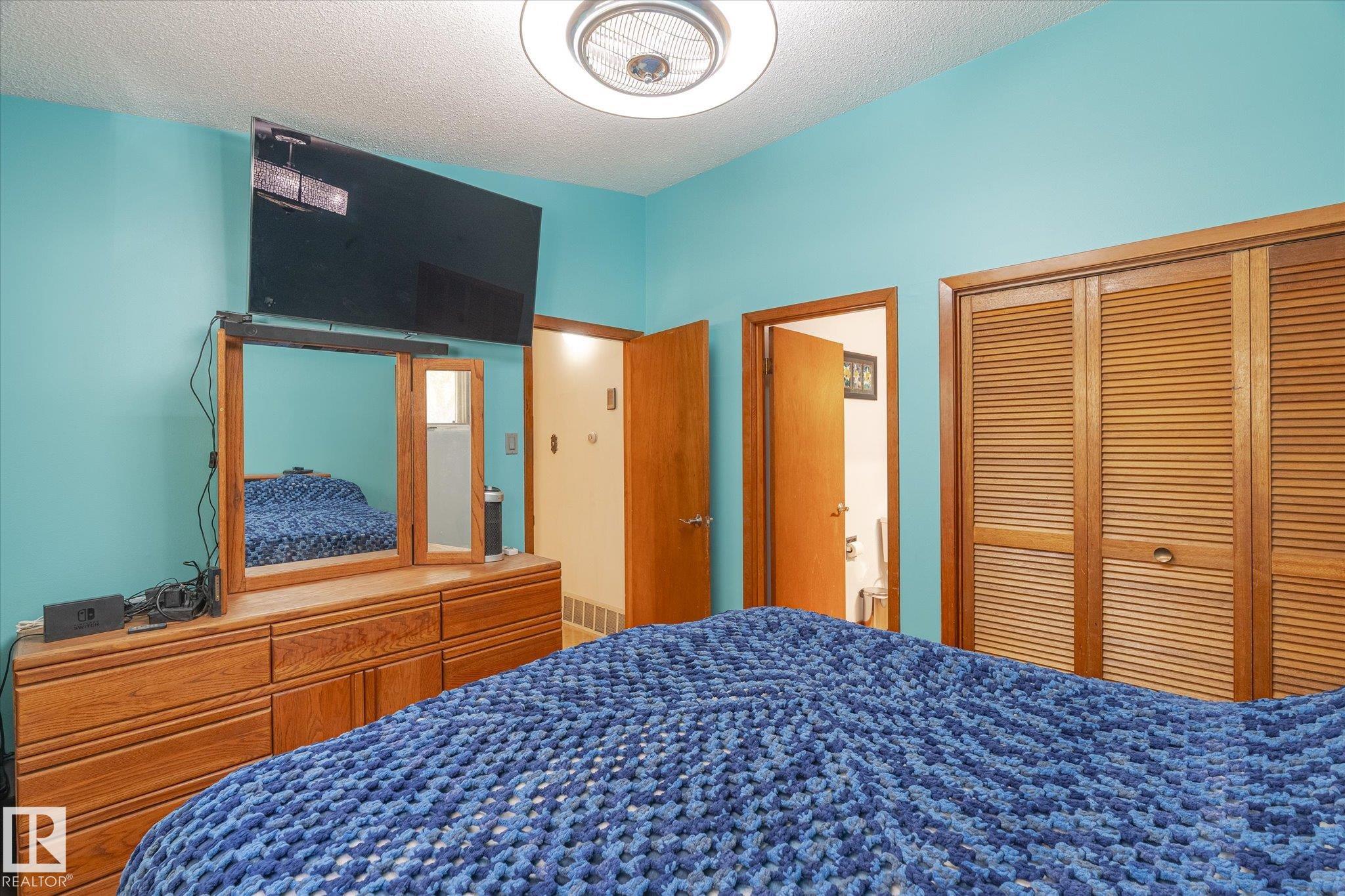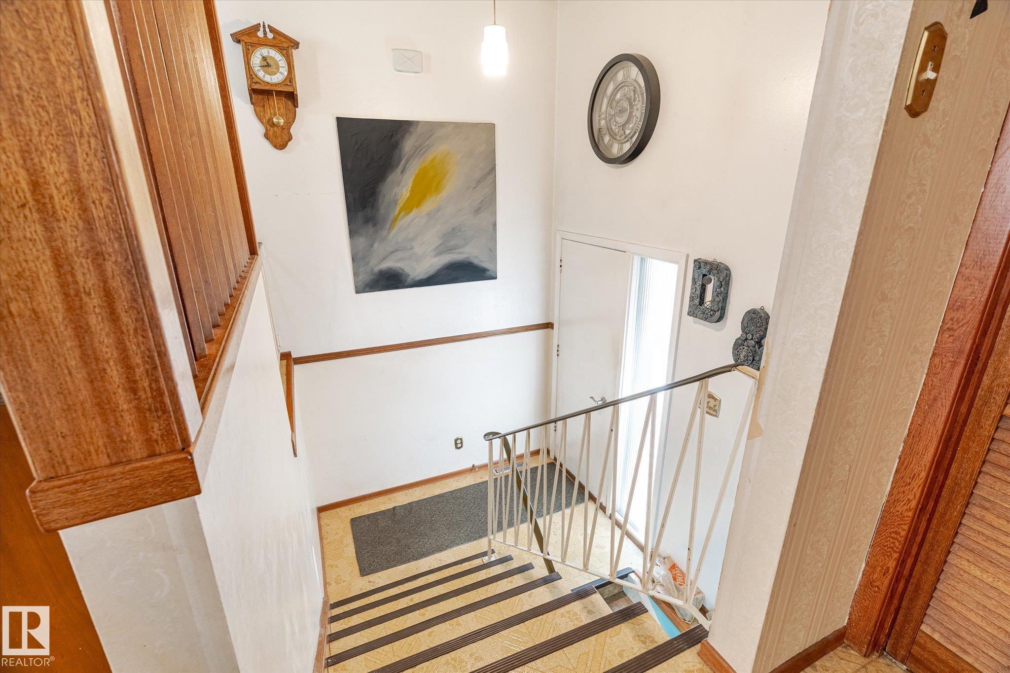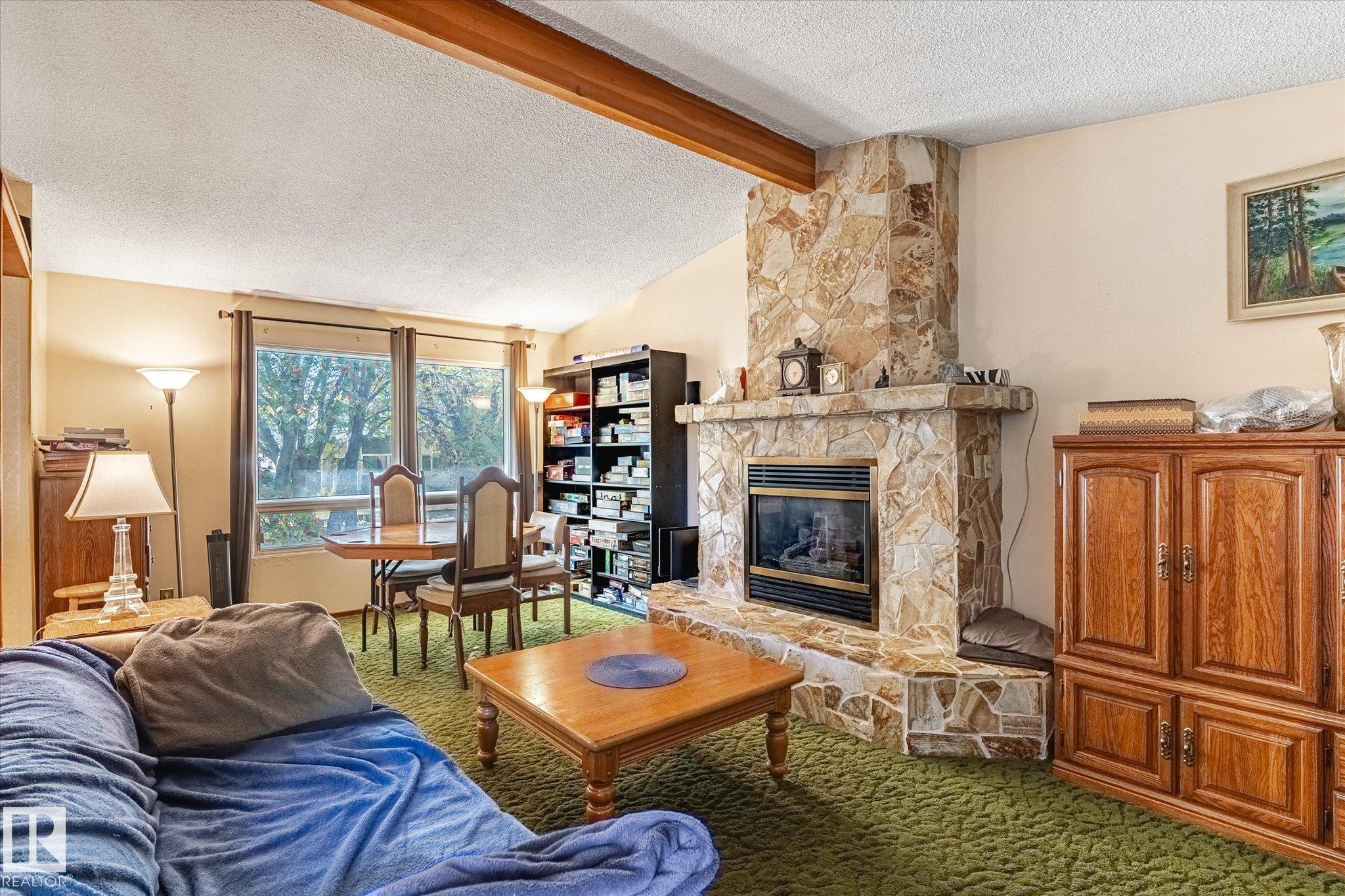 Located on a beautiful tree line this home is perfect for first time buyer. Visualize what this wonderful 836 sq ft bilevel will look like and you will immediately love the opportunity. Super 70's vibe with the vaulted ceilings throughout the main level. Living room spans the full depth of the home, streaming in natural light. Featured gas fireplace with floor to ceiling stone wall and mantle - truly a grand display. Kitchen space is functional in design and is overlooking the backyard. Dining area separates the kitchen and livingroom. .Main floor master bedroom with an ensuite four piece bathroom. Lower level has large windows that open this space up to even more natural light. With a family room (currently used as a craft room, 3 more bedrooms and a bathroom this level is complete. Separate entrance. Hot Water Tank 2023. Single garage & car port. Amazing lot with fruit trees. Close to schools. Lovely neighbourhood to call home.