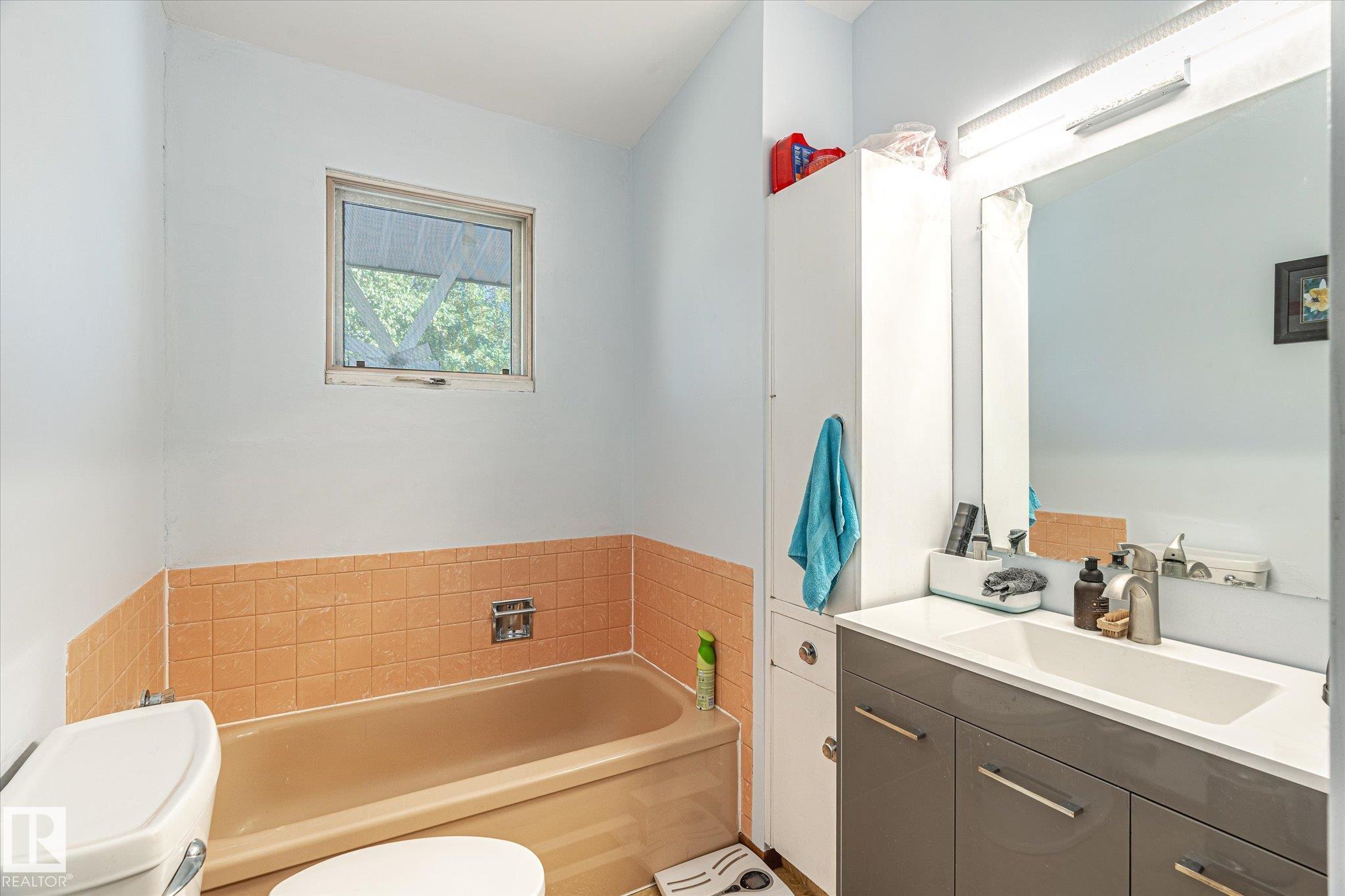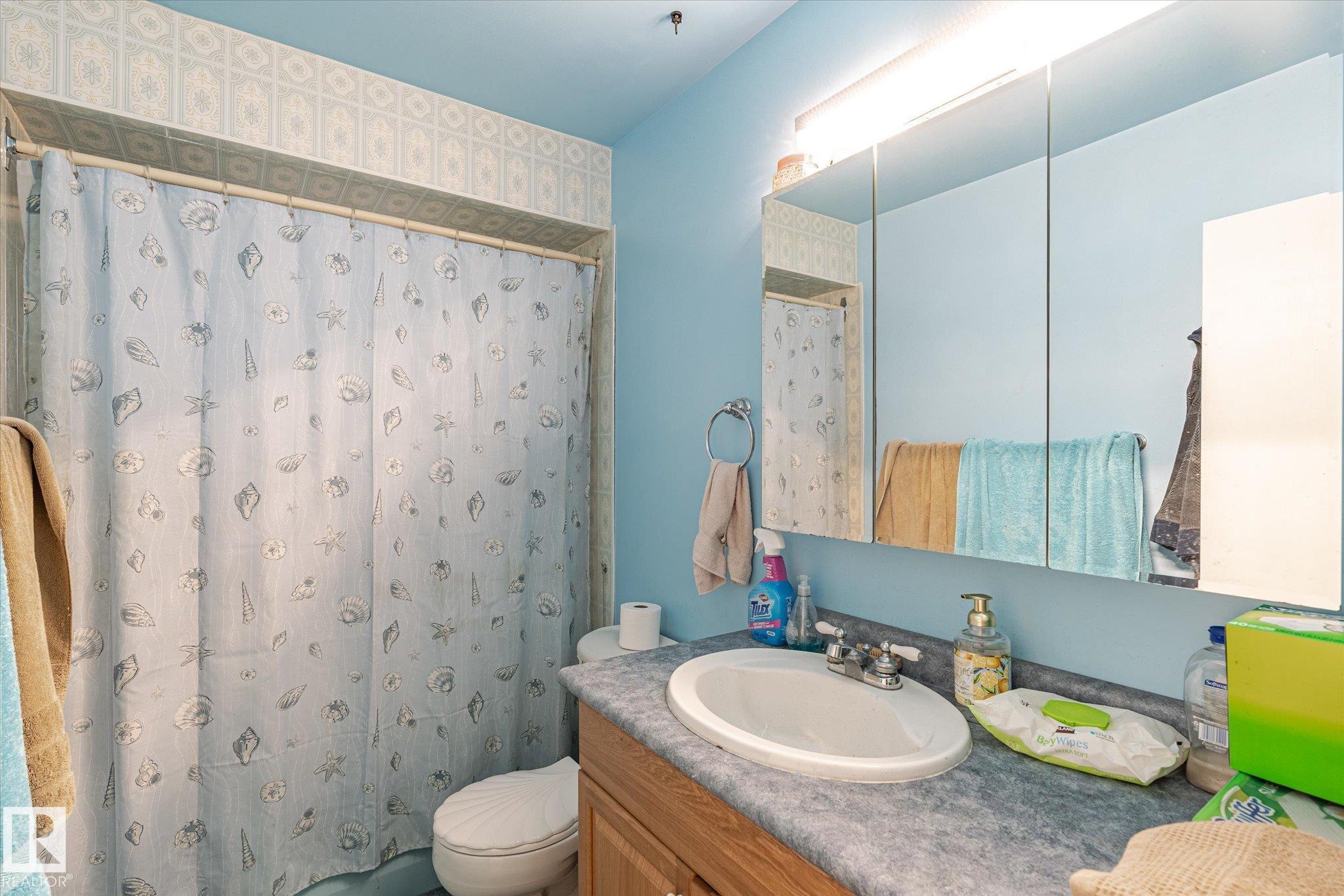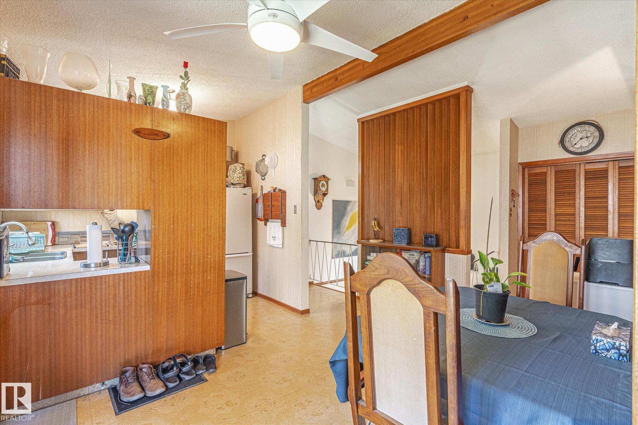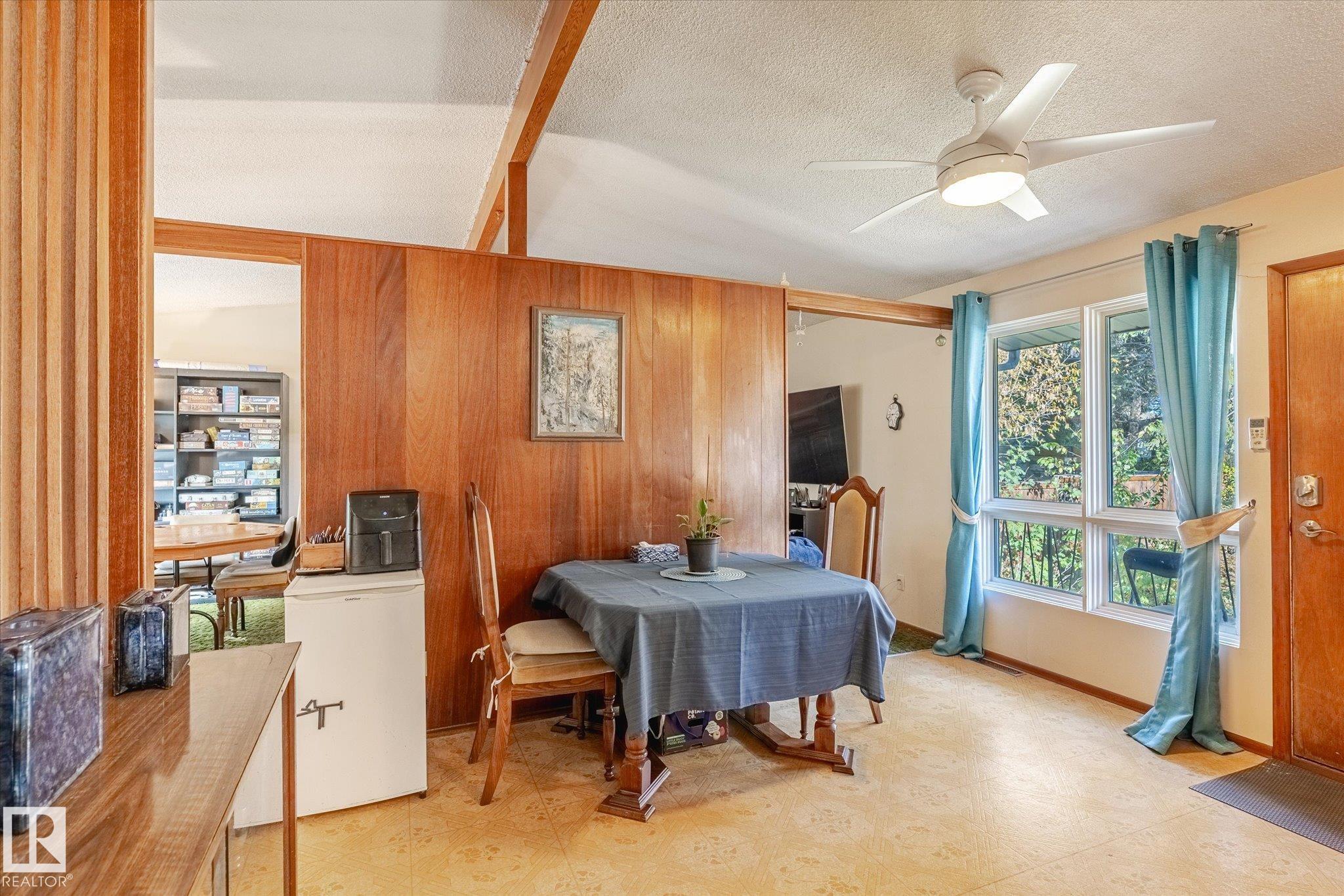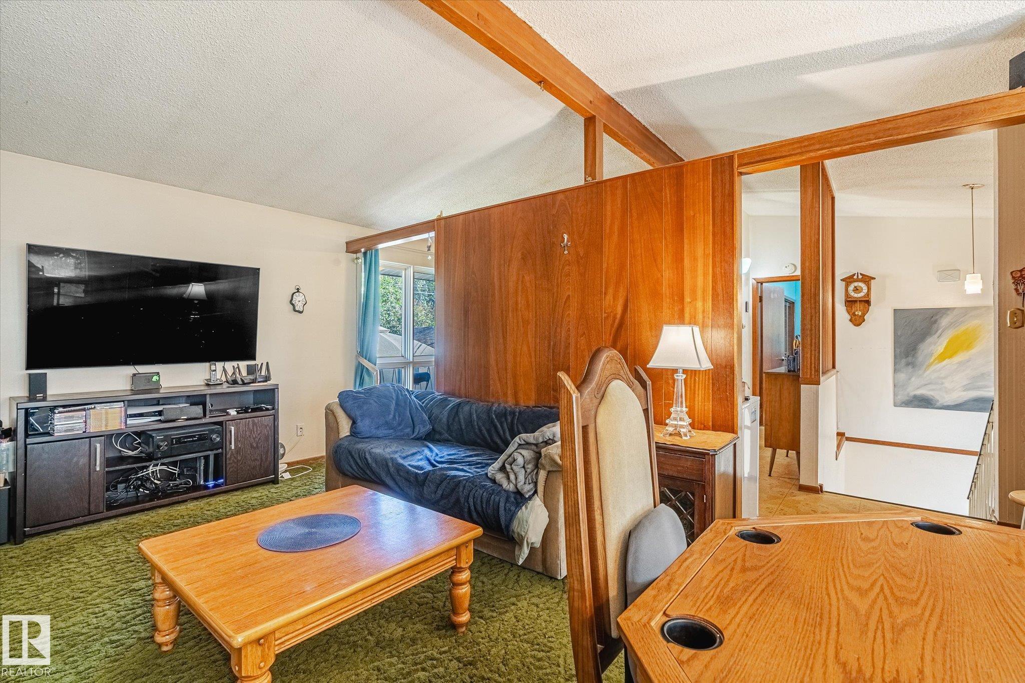 Located on a beautiful tree line this home is perfect for first time buyer. Visualize what this wonderful 836 sq ft bilevel will look like and you will immediately love the opportunity. Super 70's vibe with the vaulted ceilings throughout the main level. Living room spans the full depth of the home, streaming in natural light. Featured gas fireplace with floor to ceiling stone wall and mantle - truly a grand display. Kitchen space is functional in design and is overlooking the backyard. Dining area separates the kitchen and livingroom. .Main floor master bedroom with an ensuite four piece bathroom. Lower level has large windows that open this space up to even more natural light. With a family room (currently used as a craft room, 3 more bedrooms and a bathroom this level is complete. Separate entrance. Hot Water Tank 2023. Single garage & car port. Amazing lot with fruit trees. Close to schools. Lovely neighbourhood to call home.