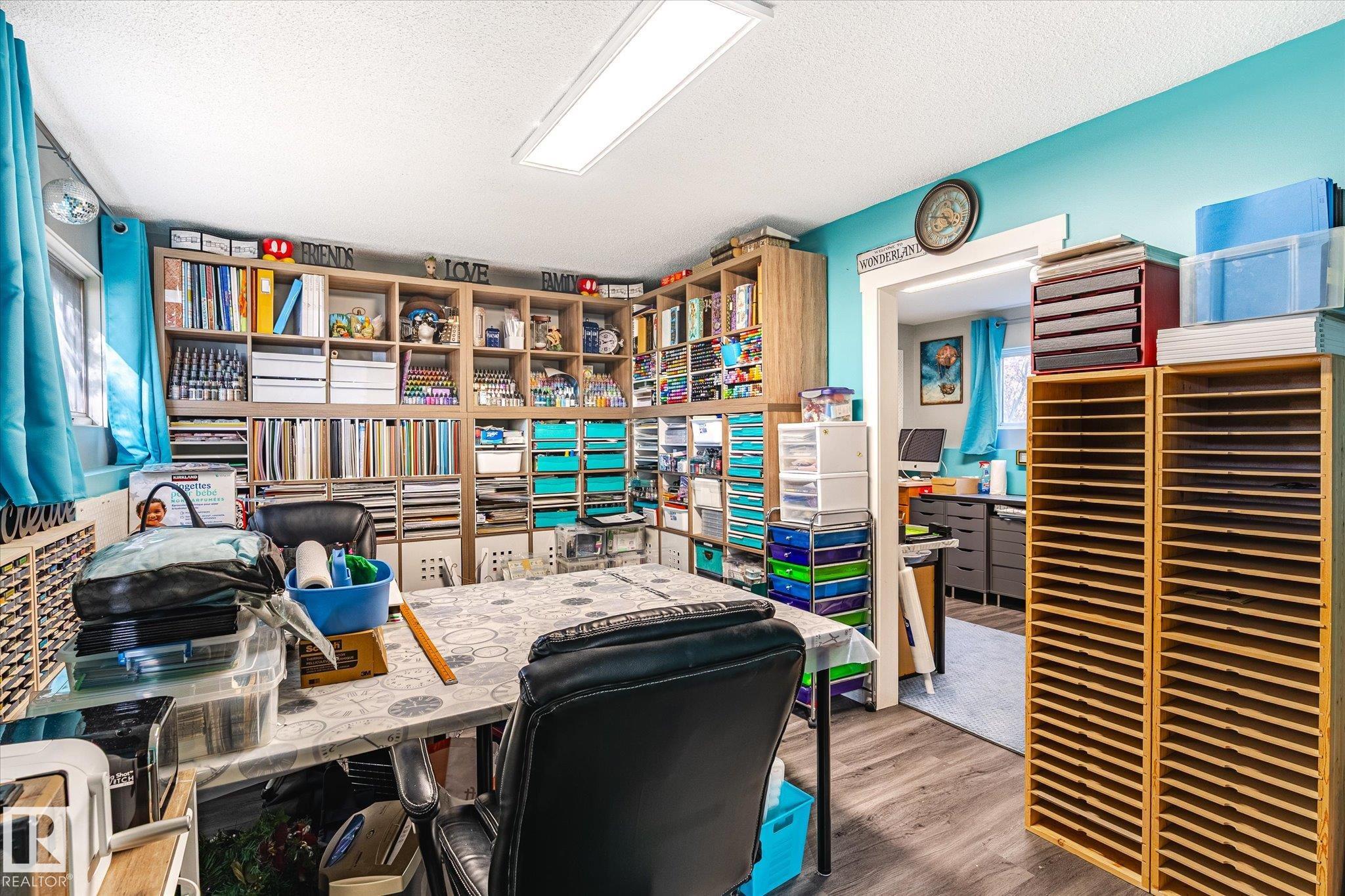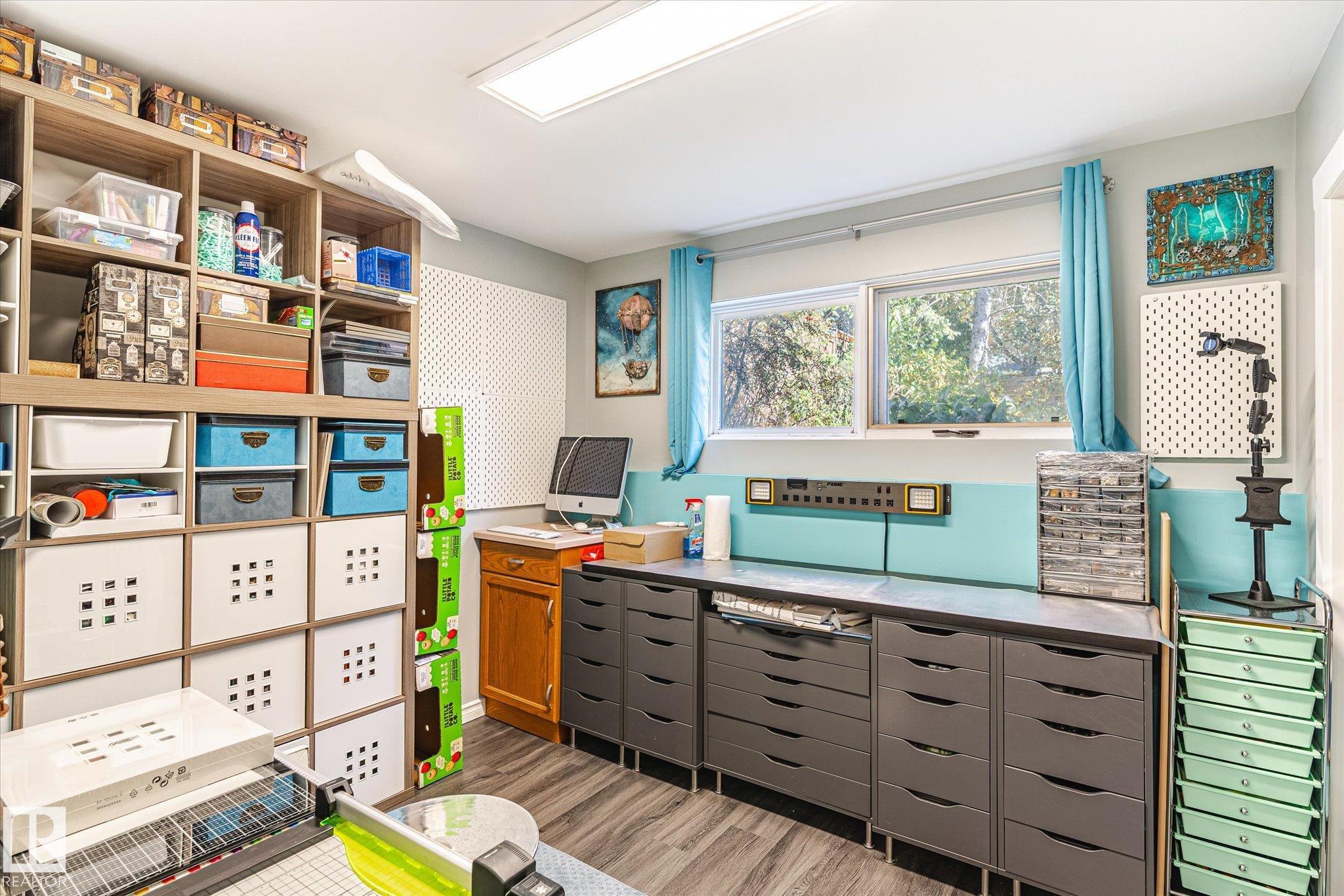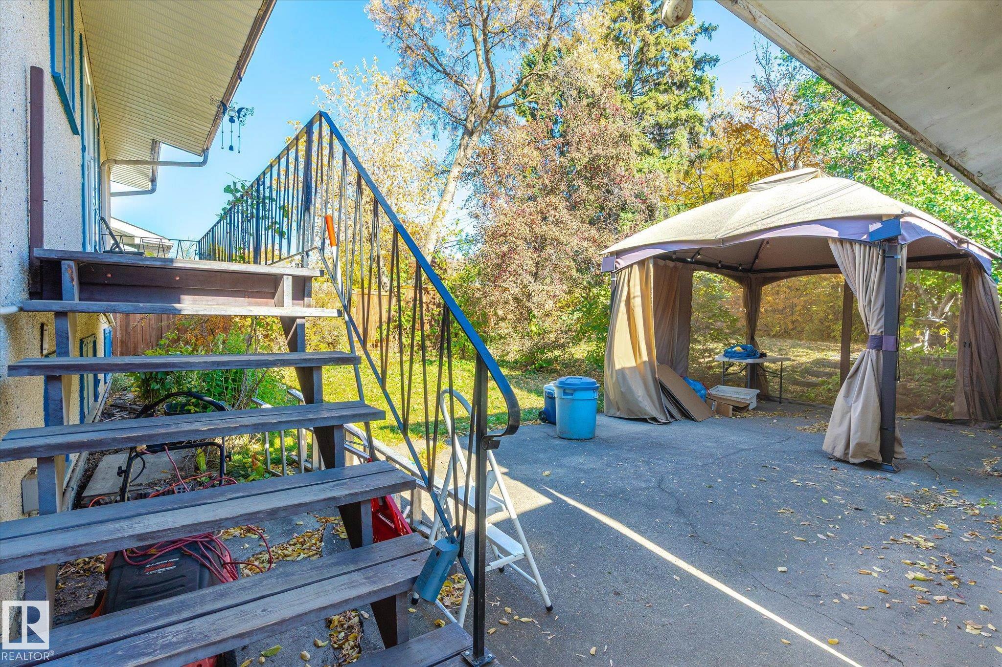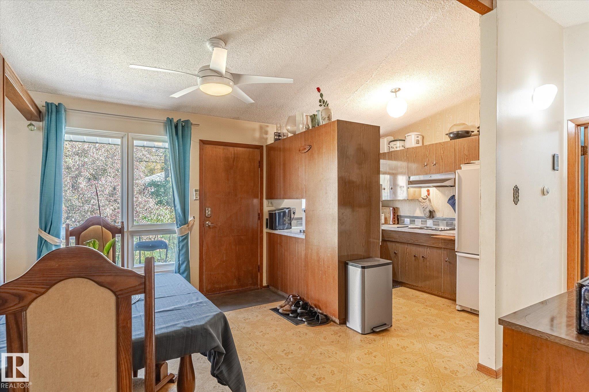 Located on a beautiful tree line this home is perfect for first time buyer. Visualize what this wonderful 836 sq ft bilevel will look like and you will immediately love the opportunity. Super 70's vibe with the vaulted ceilings throughout the main level. Living room spans the full depth of the home, streaming in natural light. Featured gas fireplace with floor to ceiling stone wall and mantle - truly a grand display. Kitchen space is functional in design and is overlooking the backyard. Dining area separates the kitchen and livingroom. .Main floor master bedroom with an ensuite four piece bathroom. Lower level has large windows that open this space up to even more natural light. With a family room (currently used as a craft room, 3 more bedrooms and a bathroom this level is complete. Separate entrance. Hot Water Tank 2023. Single garage & car port. Amazing lot with fruit trees. Close to schools. Lovely neighbourhood to call home.