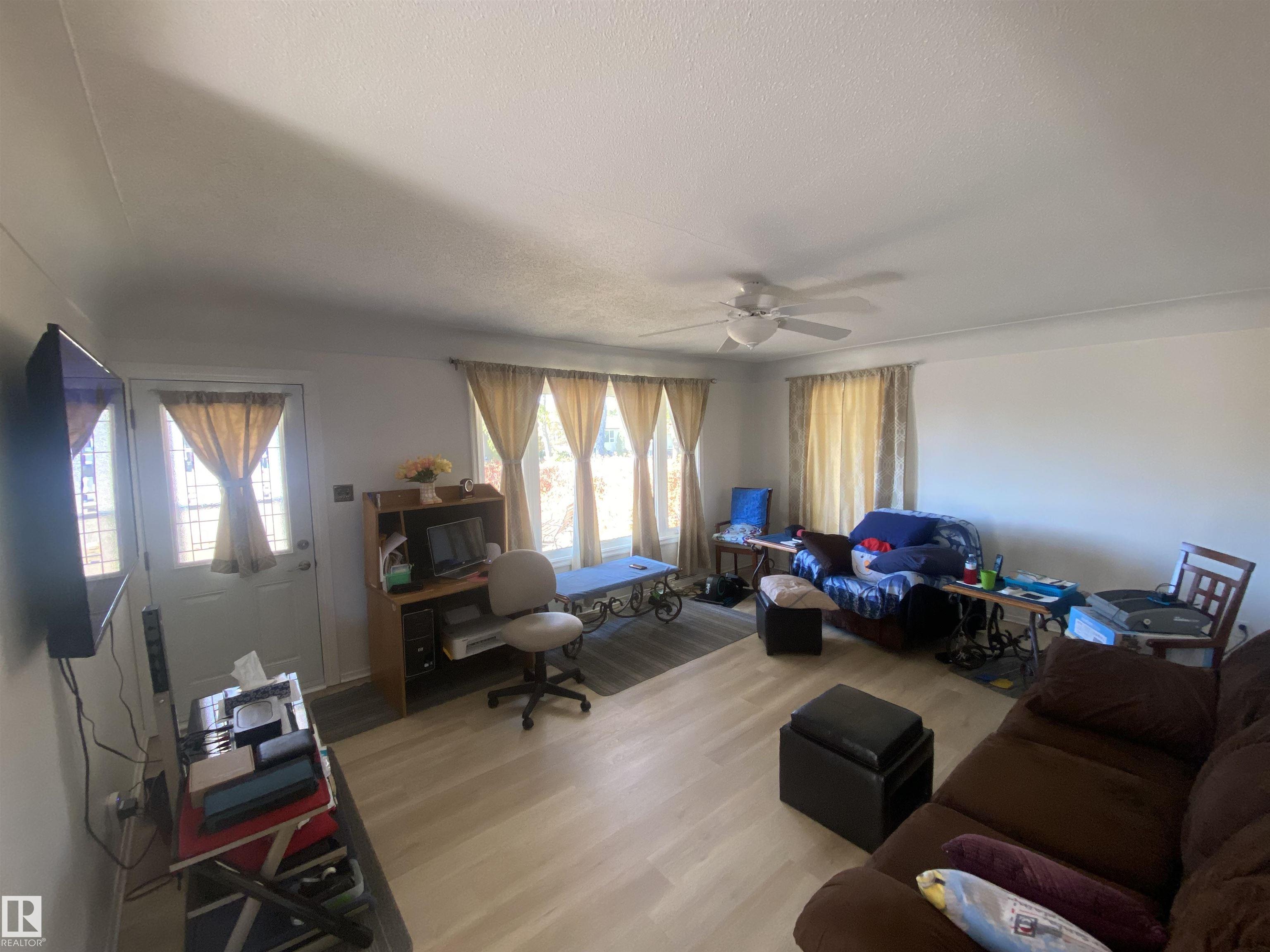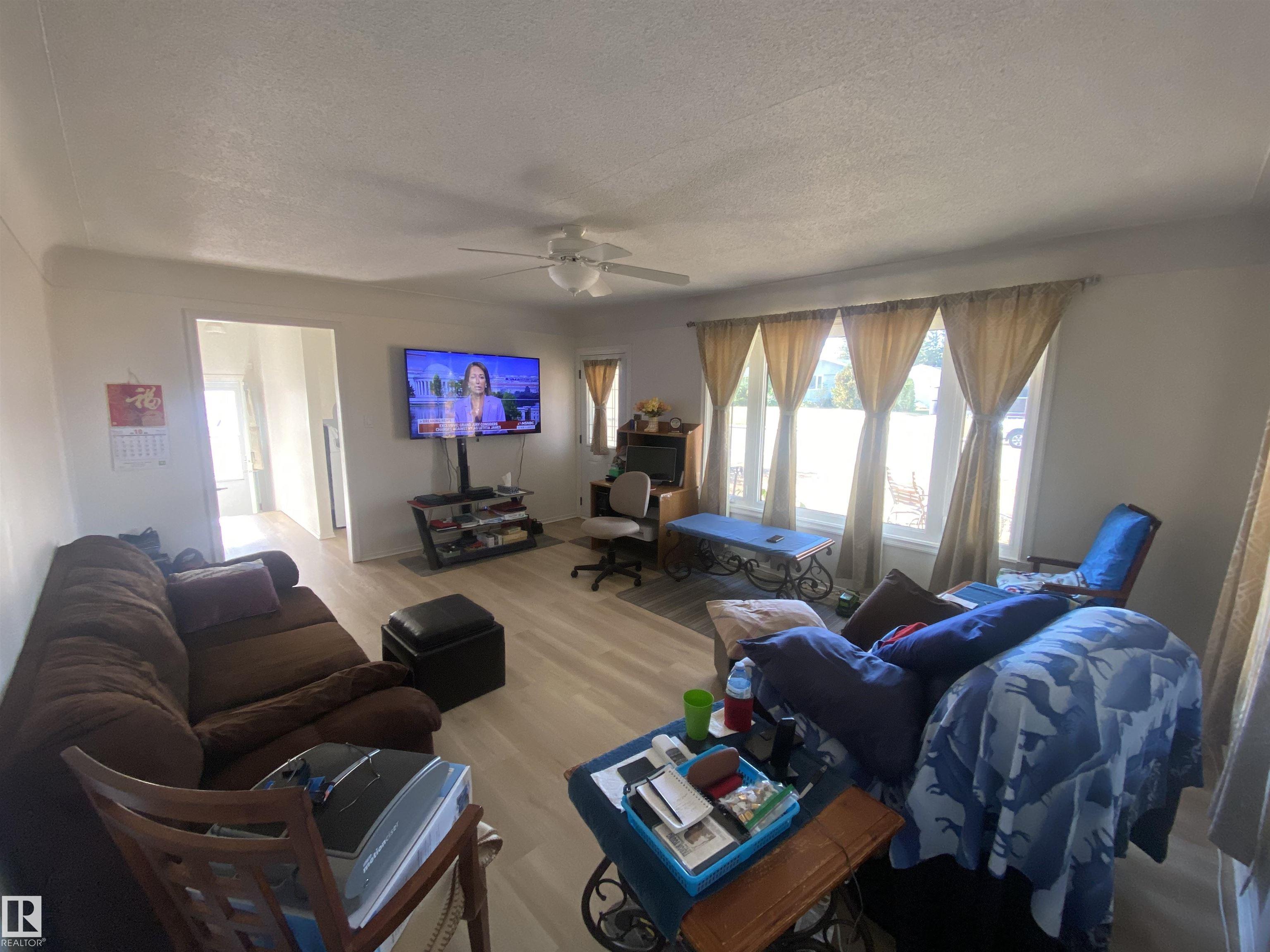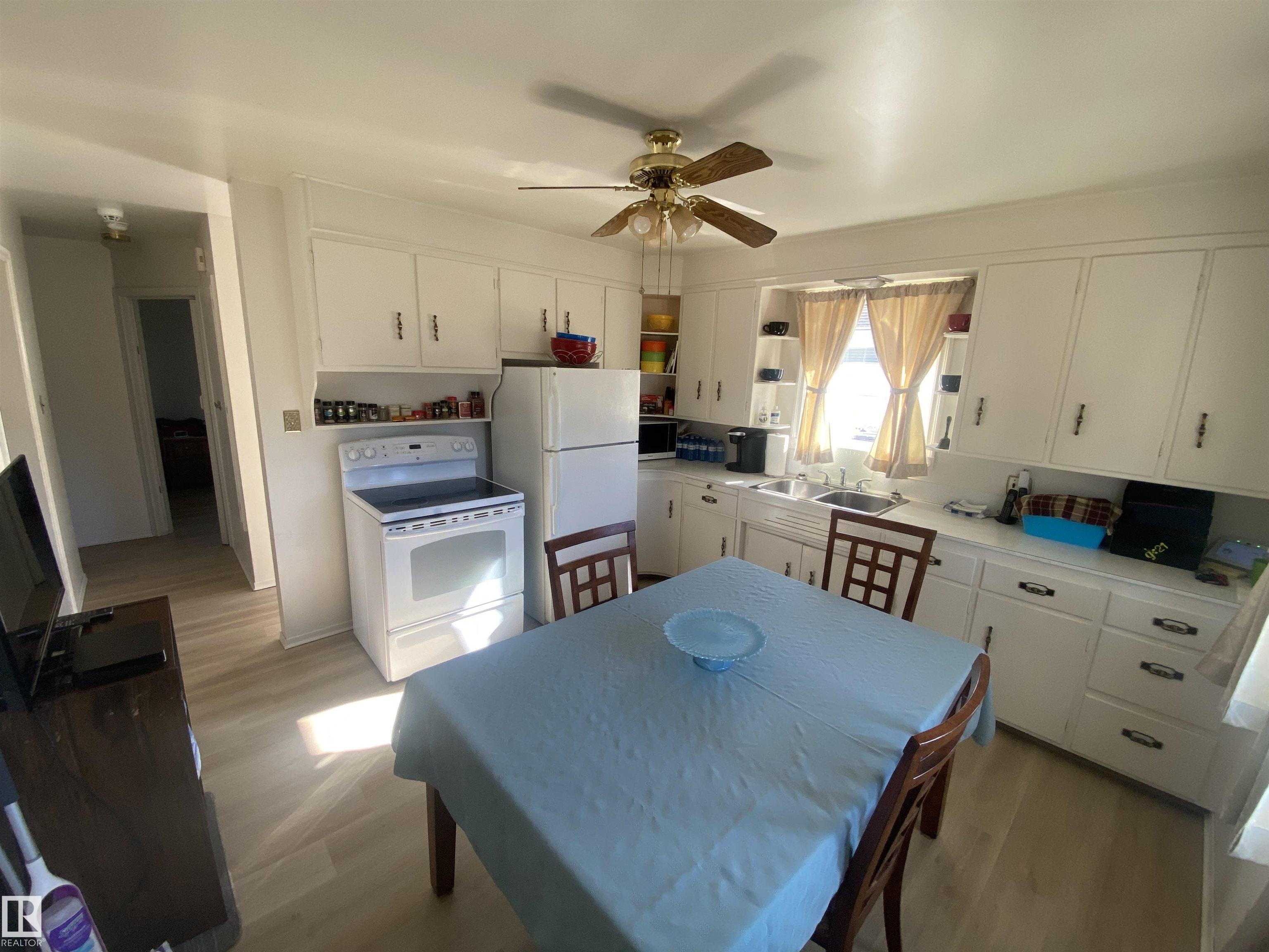 Check out this Great starter or retirement home! Very clean well cared for home located on the South Side of Vegreville! This comfy home has seen lots of updates including vinyl flooring, bathroom, outside screen doors, hot water heater, high efficient furnace, washer, dryer, the list goes on. House is situated on a large mature yard, 50 x 140 Lot with a long single garage , new asphalt driveway and plenty of room for RV parking.