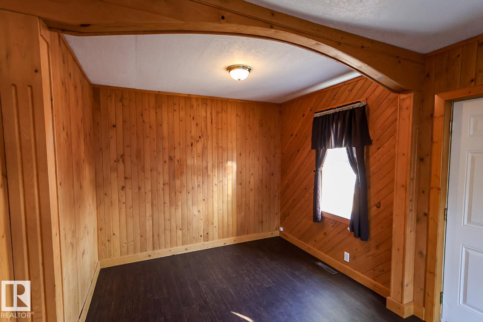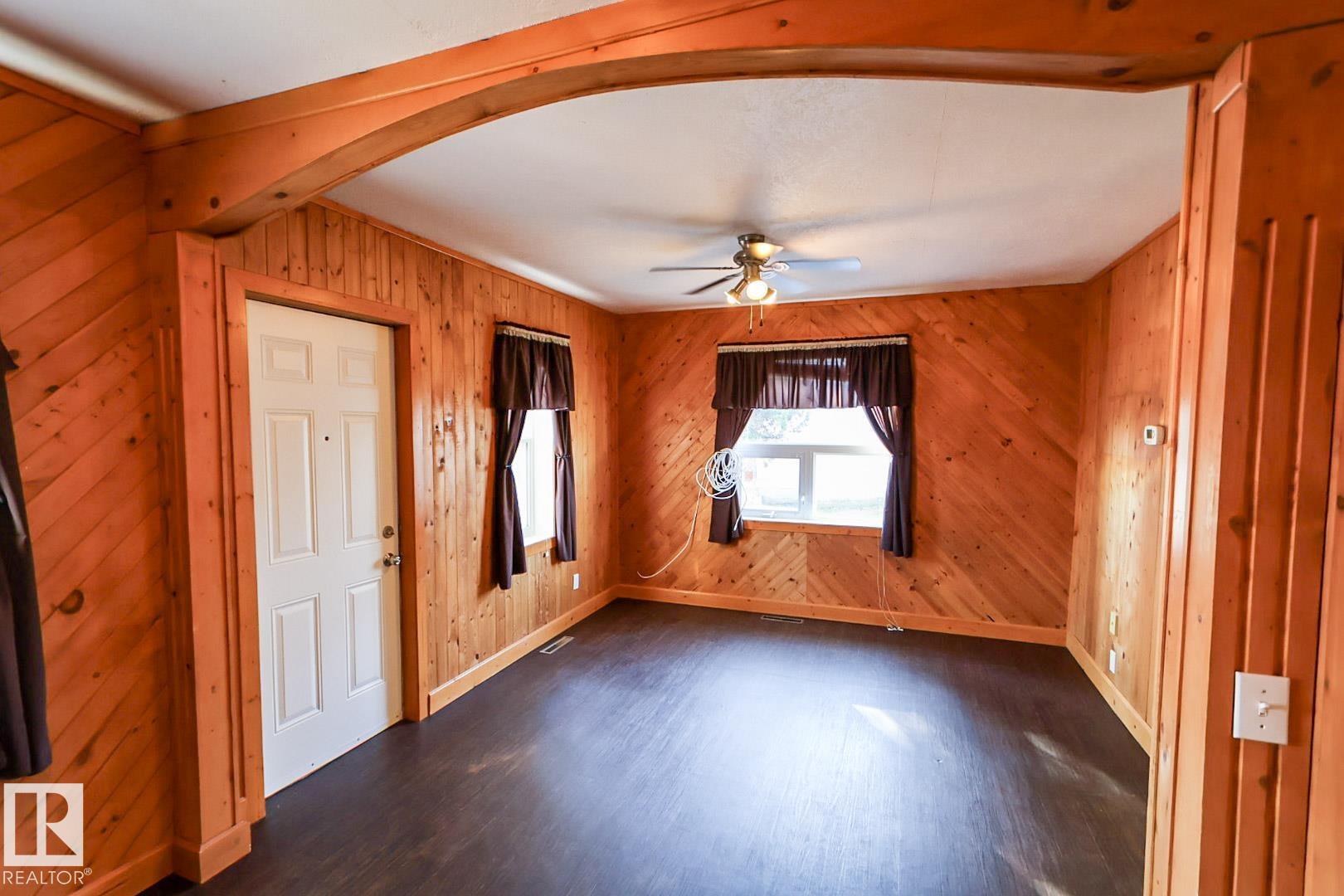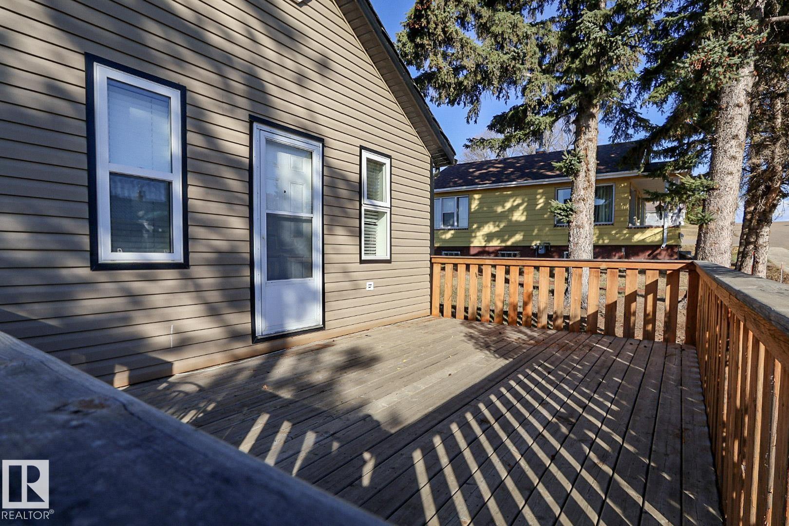 Welcome to this charming home in the heart of Myrnam. This cozy 1 bedroom, 1 bathroom property offers a well sized kitchen, living, and dining area with plenty of natural light. Step outside to enjoy the large front deck, perfect for morning coffee or evening relaxation. The home has seen many updates including new siding, fresh paint, modern flooring, and vinyl windows. Sitting on a 6000 square foot lot, the yard is open and low maintenance with a handy storage shed. 2025 property taxes are $857.22, making it an affordable option for homeowners or investors alike. Myrnam is a friendly community featuring an award winning K to 12 school and is conveniently located just 25 minutes from St. Paul, 20 minutes from Two Hills, 1 hour 14 minutes from Lloydminster, and 1 hour 45 minutes from Edmonton.