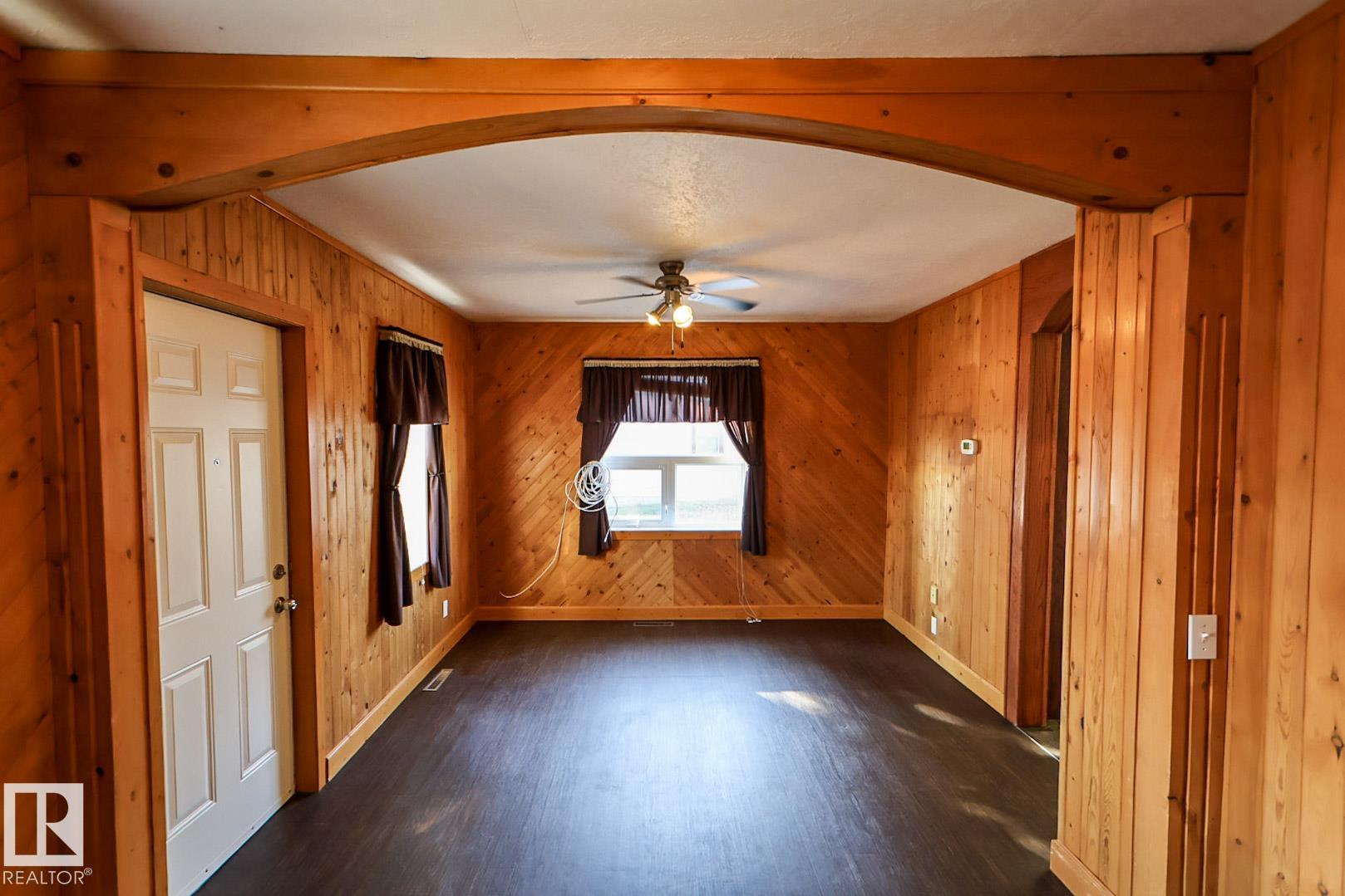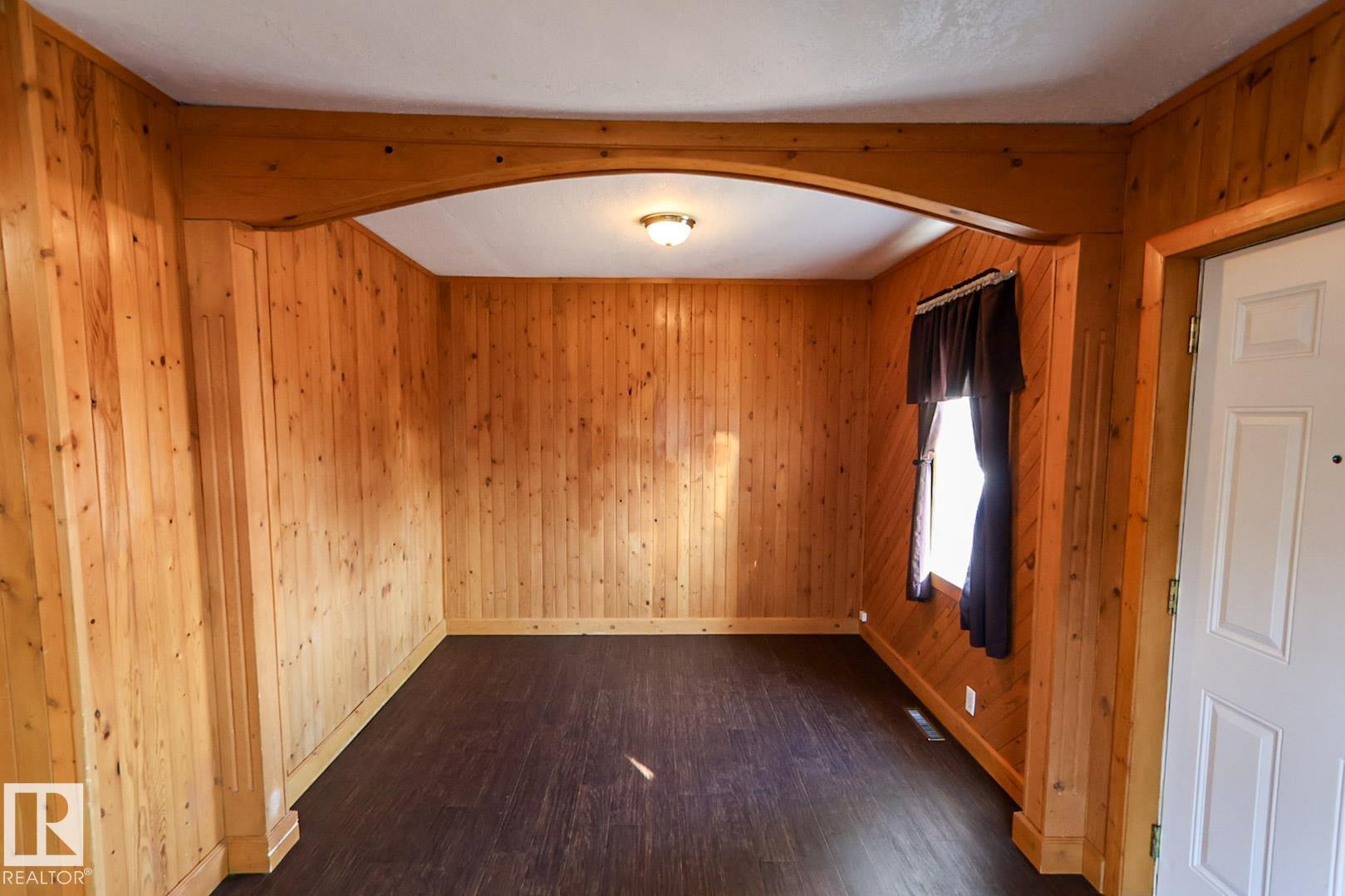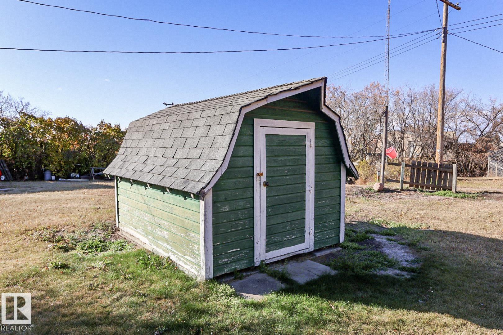 Welcome to this charming home in the heart of Myrnam. This cozy 1 bedroom, 1 bathroom property offers a well sized kitchen, living, and dining area with plenty of natural light. Step outside to enjoy the large front deck, perfect for morning coffee or evening relaxation. The home has seen many updates including new siding, fresh paint, modern flooring, and vinyl windows. Sitting on a 6000 square foot lot, the yard is open and low maintenance with a handy storage shed. 2025 property taxes are $857.22, making it an affordable option for homeowners or investors alike. Myrnam is a friendly community featuring an award winning K to 12 school and is conveniently located just 25 minutes from St. Paul, 20 minutes from Two Hills, 1 hour 14 minutes from Lloydminster, and 1 hour 45 minutes from Edmonton.