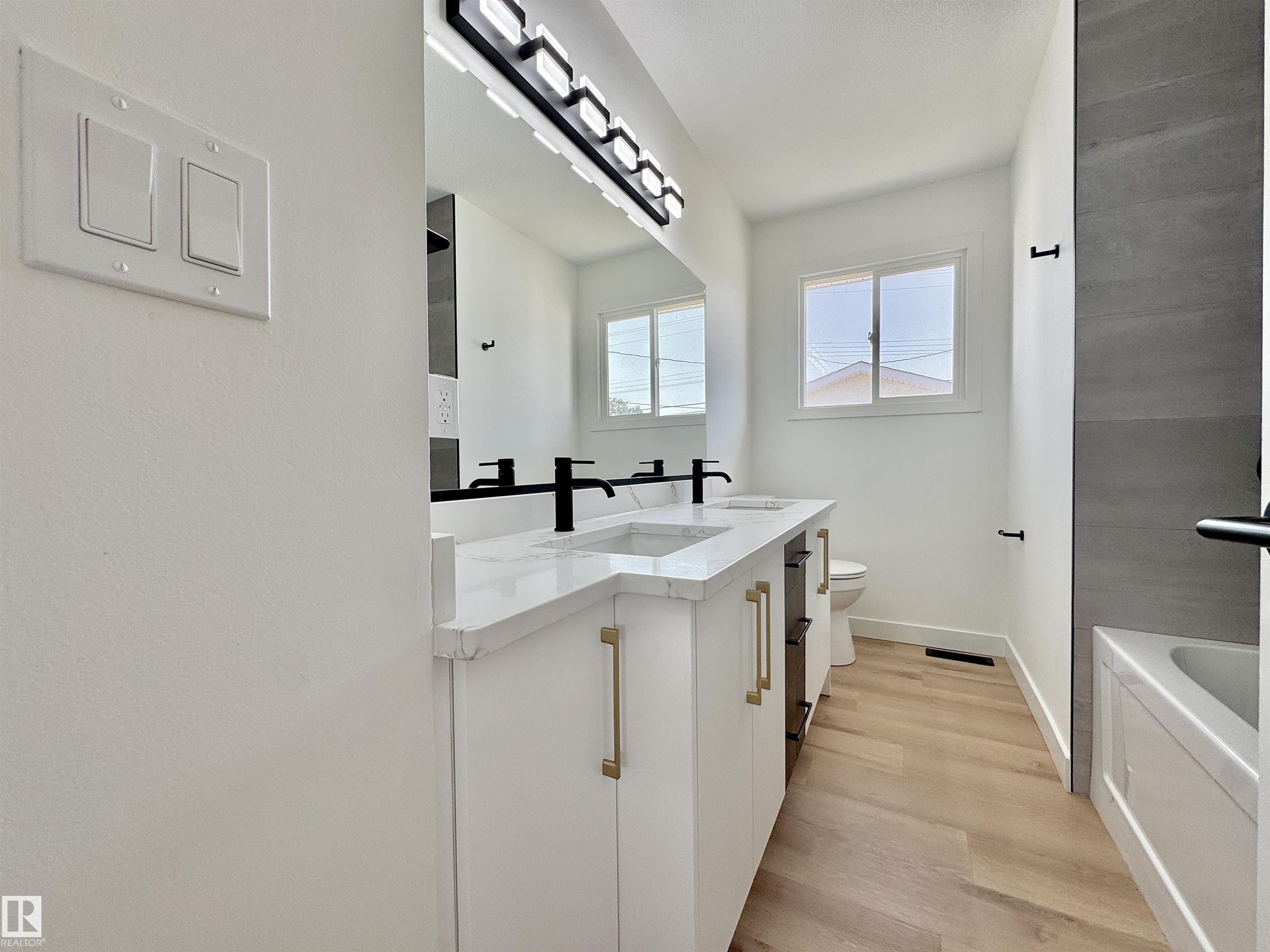 Step into this beautifully renovated 4 bedroom, 2 bathroom bungalow offering 1100 sq ft of open concept living. Every detail has been thoughtfully updated, creating a home that is both stylish and functional. Upstairs consists of 3 bedrooms, bathroom, with dual vanities, kitchen and living space.The basement offers a 4th bedroom, office and beautiful walk-in shower, with additional plumbing for potential wet bar or secondary suite. Enjoy the convenience of a large double detached garage with spacious backyard. Minutes from schools, parks, and all amenities.