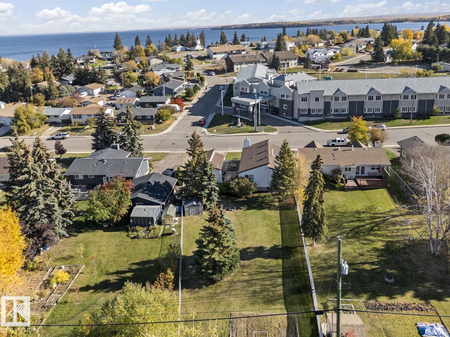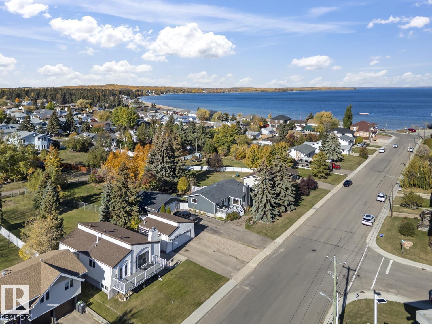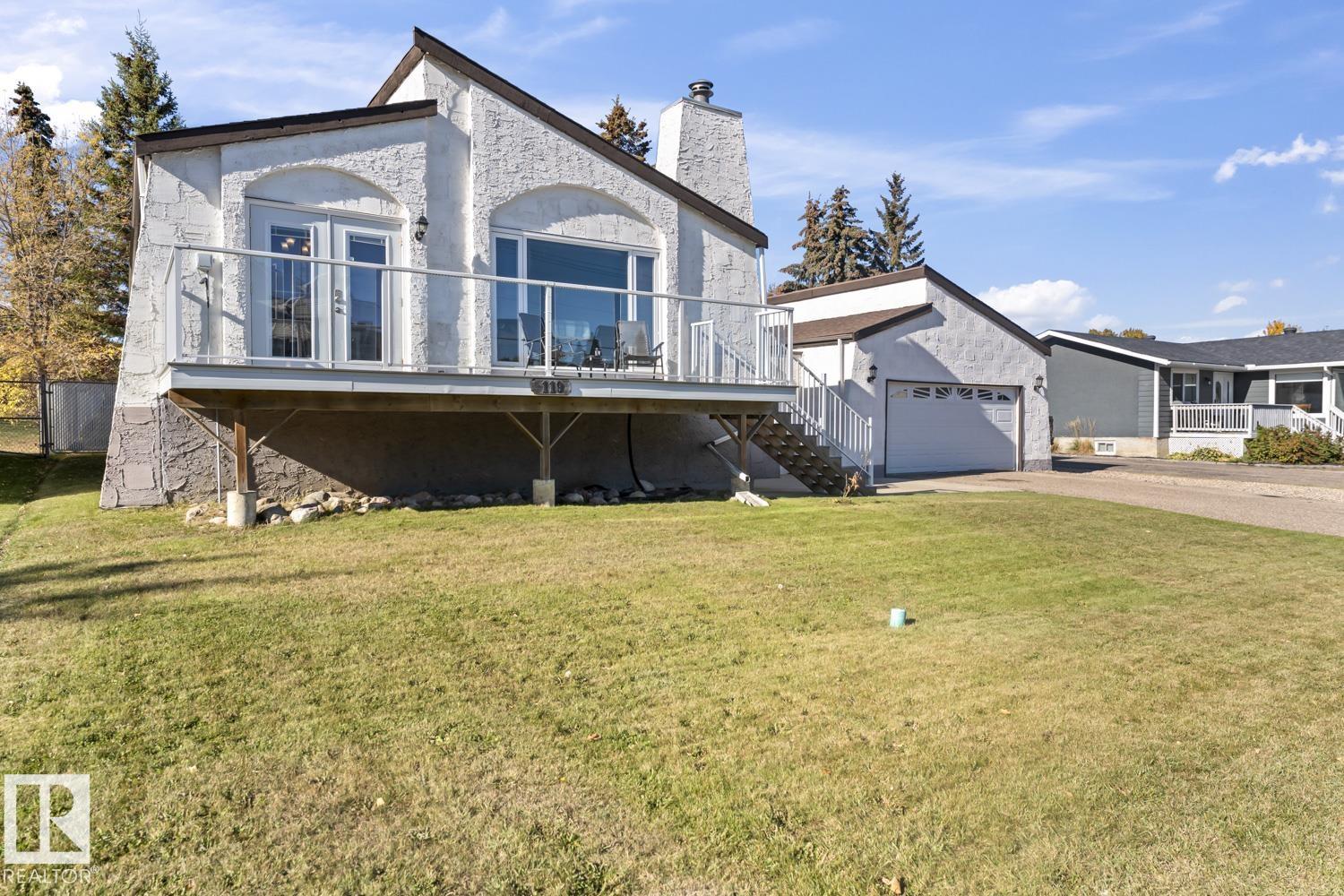 You've always wondered what this stucco spanish-style bilevel looks like and now you can know! Very well built and situated 1/2 block from the beach on a massive lot with back alley access. This home has had various upgrades over the years from a new kitchen, shingles, windows, duradeck, main bath, sprinkler system and more!A n exceptional sized living room with a real wood fireplace, separate dining room and custom kitchen with Cambria counters. 3 bedrooms up and 2 down with a secondary family room. Recently the garage has been insulated and new gas heater has been installed. Quaint courtyard area attached to the breezeway between home and garage for you to entertain at with Natural Gas BBQ hook-up. One of Cold Lake's unique and exceptional properties!