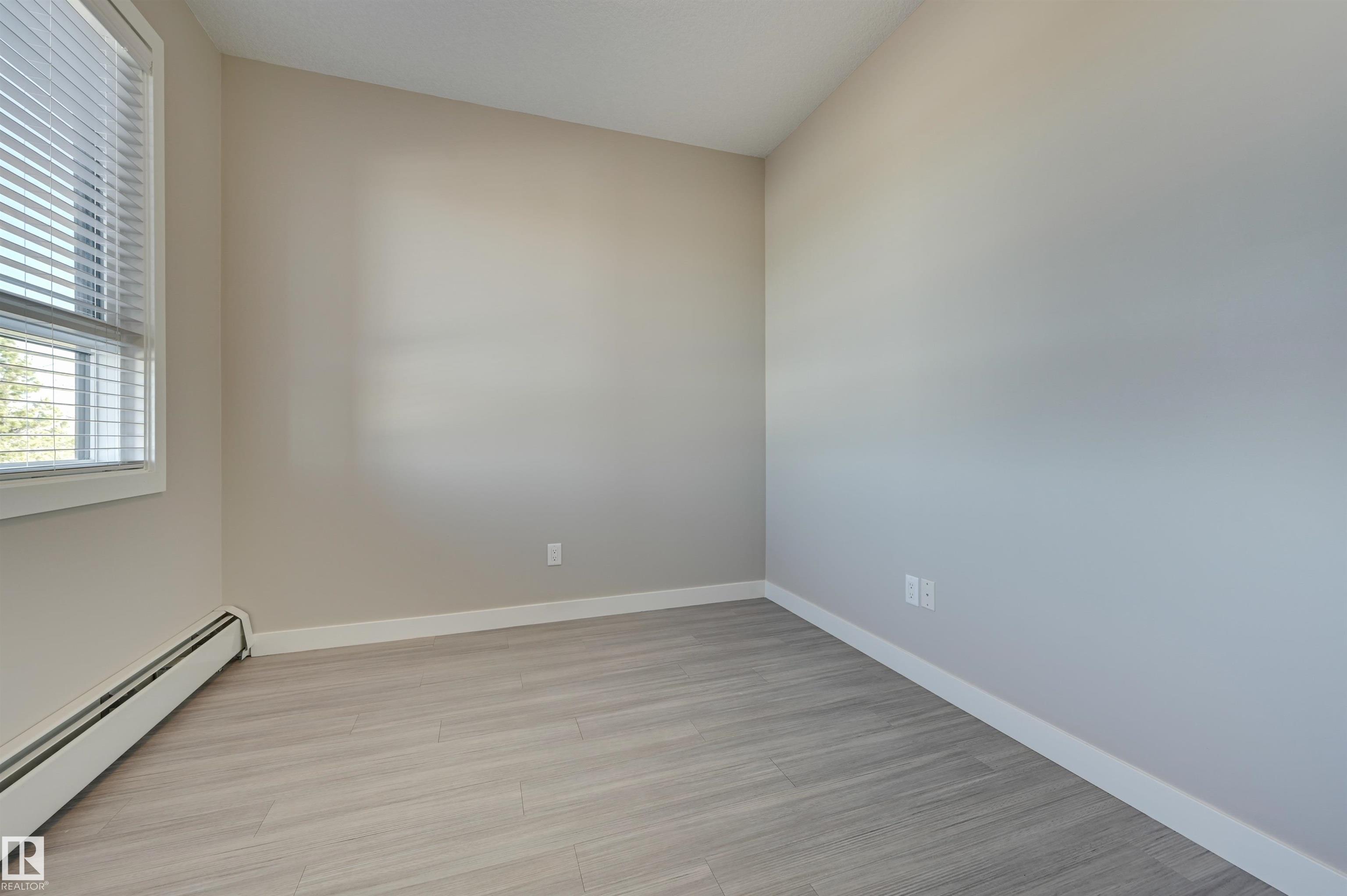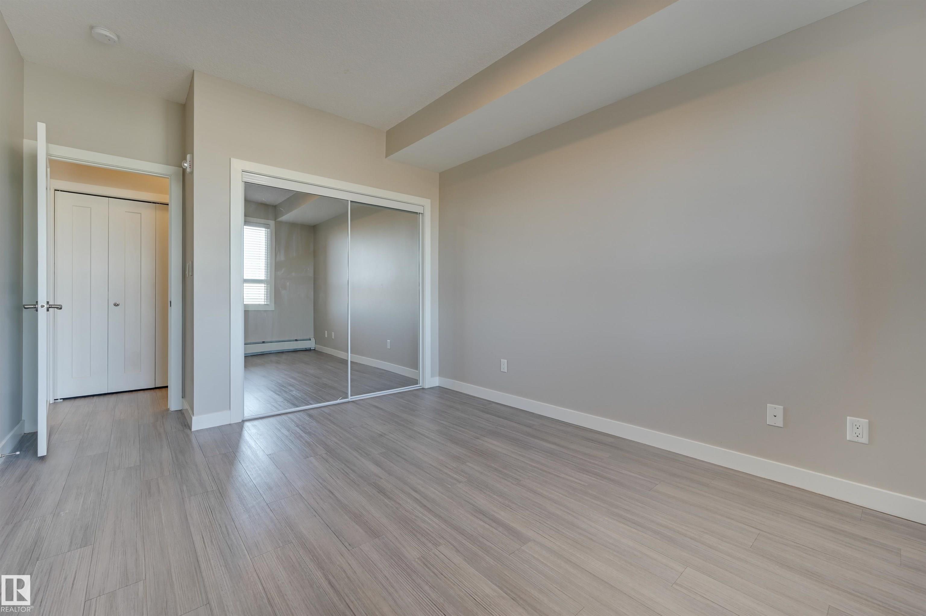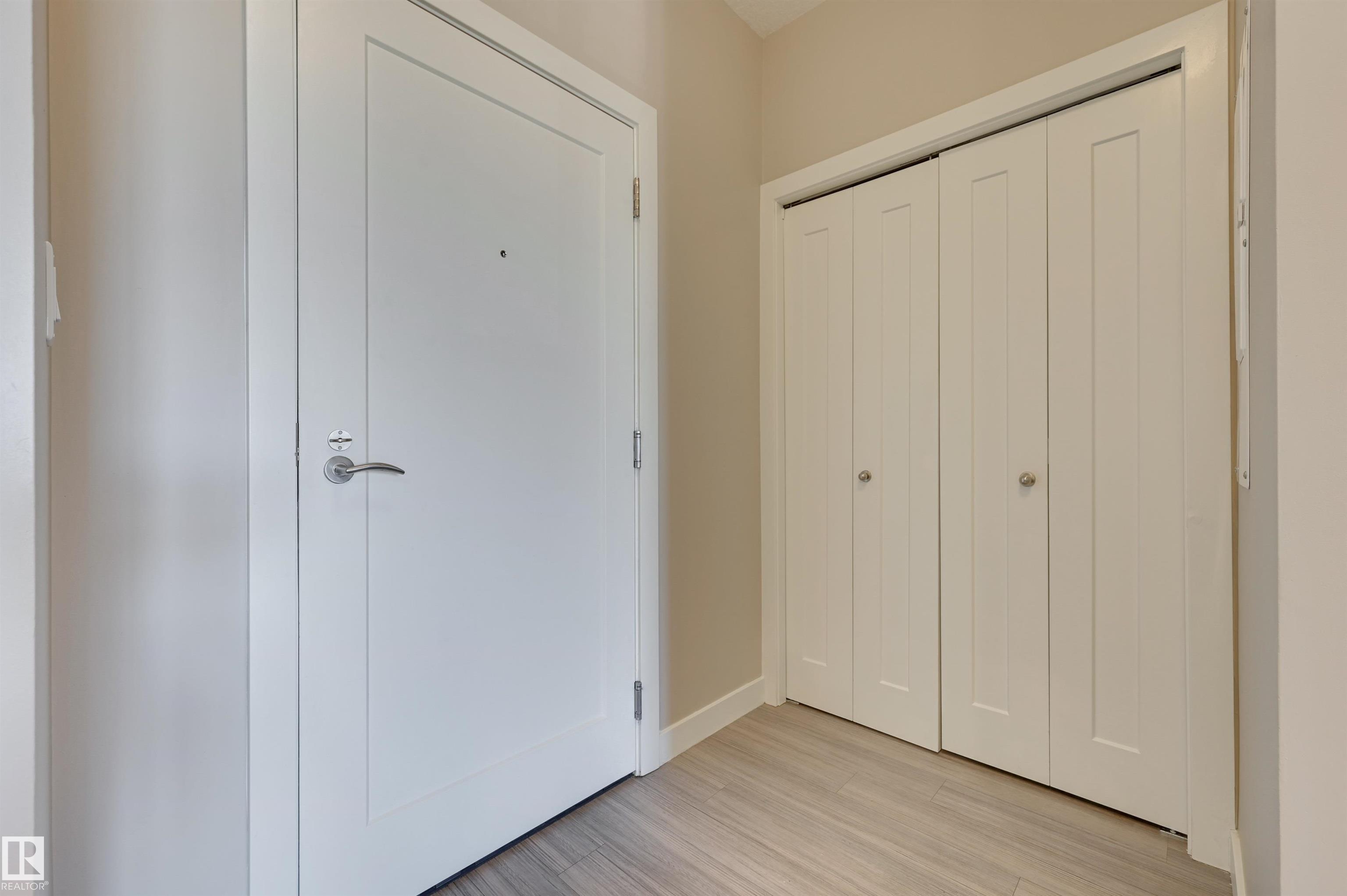 Welcome home to this spacious 708 sq.ft. modern 2 bedroom condo in THE RIDGE located in the heart of DEVON within walking distance to schools, parks, groceries, restaurants, outdoor pool, arena and river valley walking/biking trails. This unit has an open concept floor plan with 9' ceilings offering premium finishings throughout. The kitchen has an eating island, quartz countertops, espresso color cabinetry, with soft close and stainless steel appliances. The bedrooms are at opposite ends of the living area. The spacious north facing deck has a gas BBQ outlet. Vinyl plank flooring throughout except for tile in the bathroom. Roughed in for A/C. Included is the fridge, glass top stove, microwave hood fan, dishwasher, INSUITE WASHER AND DRYER and TITLED UNDERGROUND PARKING Unit 44 (Actual #12) with a storage cage. Shows very well! A great place to call home!
