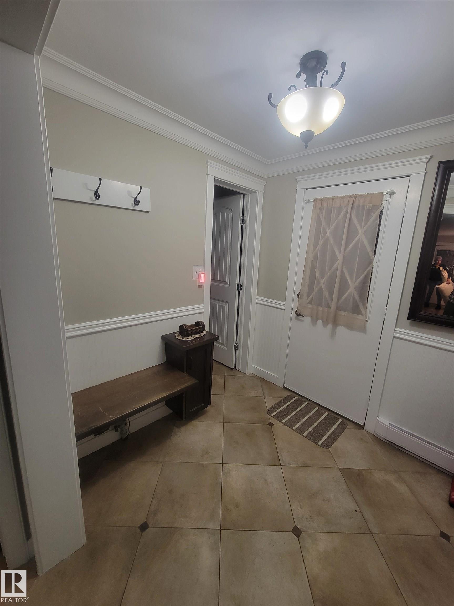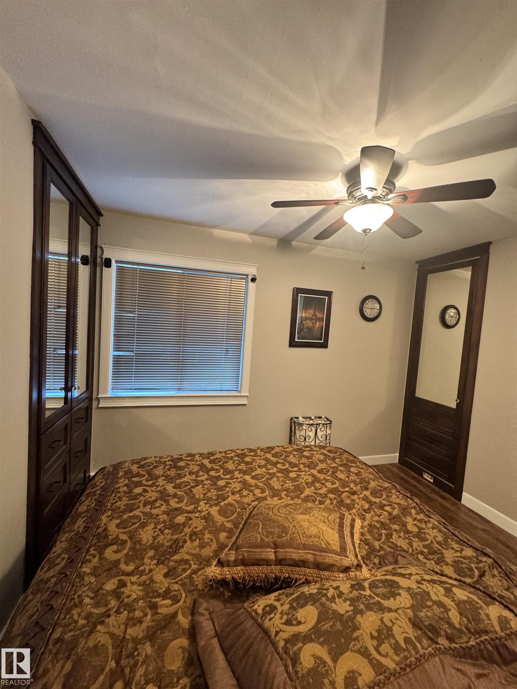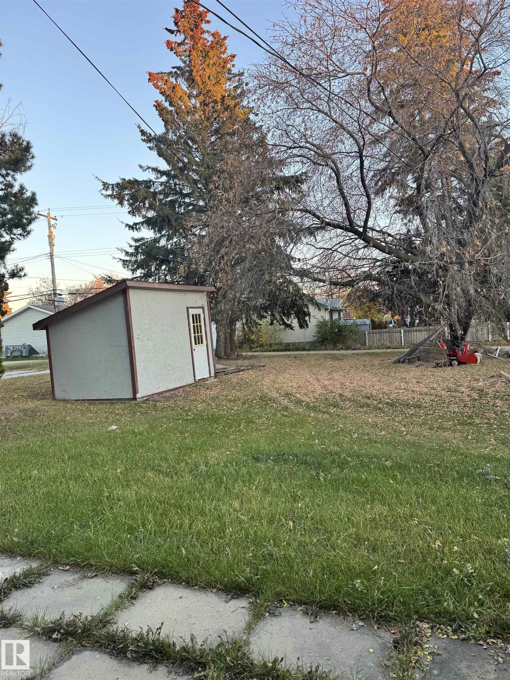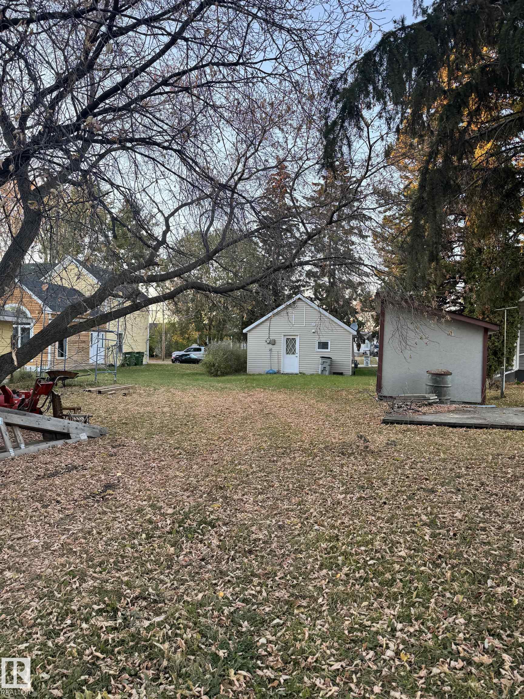 Cozy bungalow in Westlock surrounded by mature evergreens and a welcoming front flower bed. Step inside to your vision of a custom tiny home with a warm living and dining area featuring a tile-surround fireplace. The kitchen boasts custom cabinetry, stainless steel appliances, and ceramic tile, creating a thoughtful, efficient layout. Built-in cabinetry flows throughout the home, from the fireplace to the kitchen, laundry, bedroom, and bath, blending function with design. The primary bedroom includes built-in wardrobes, end tables, pot lights, and a ceiling fan for comfort. The laundry room offers a bench and more cabinets for back entry storage. The four-piece bath features a tiled shower and a heat lamp. Outside, enjoy a large backyard with trees, a storage shed, and a walking path wrapping the home, ideal for relaxing, gardening, or future expansion of your small-town sanctuary.
