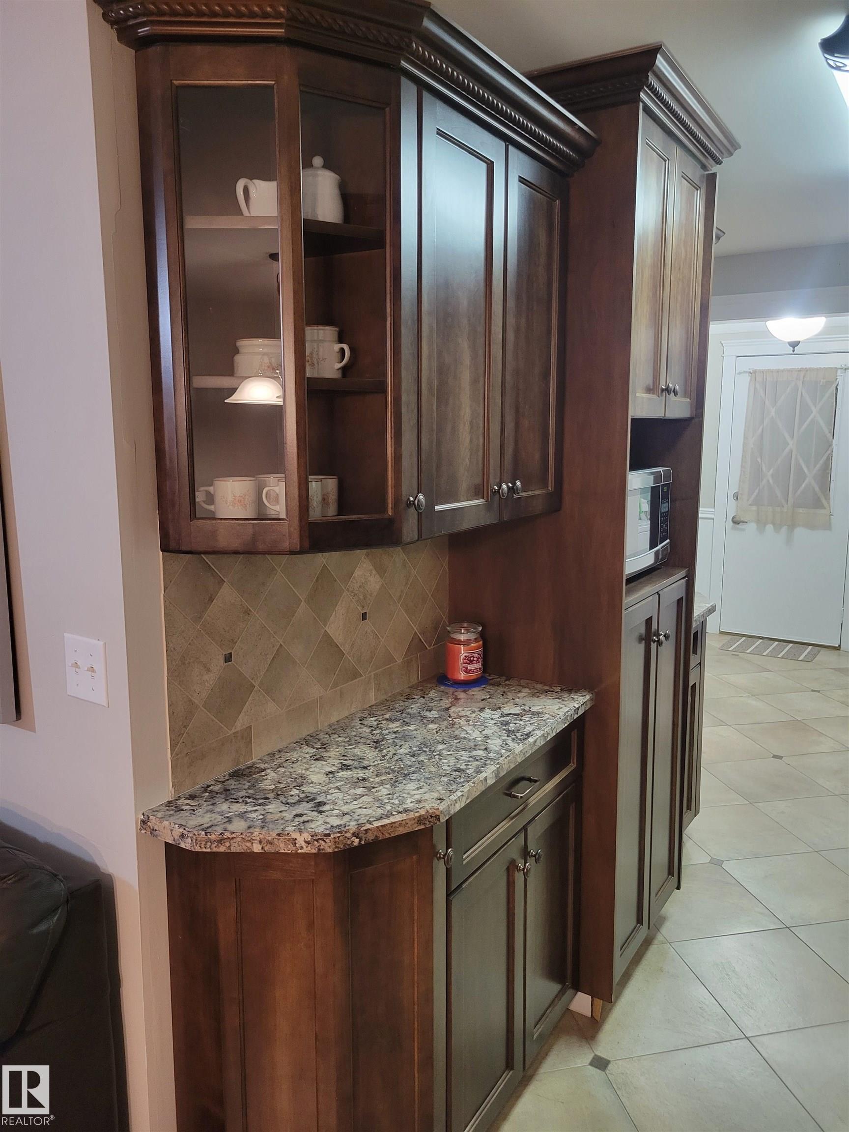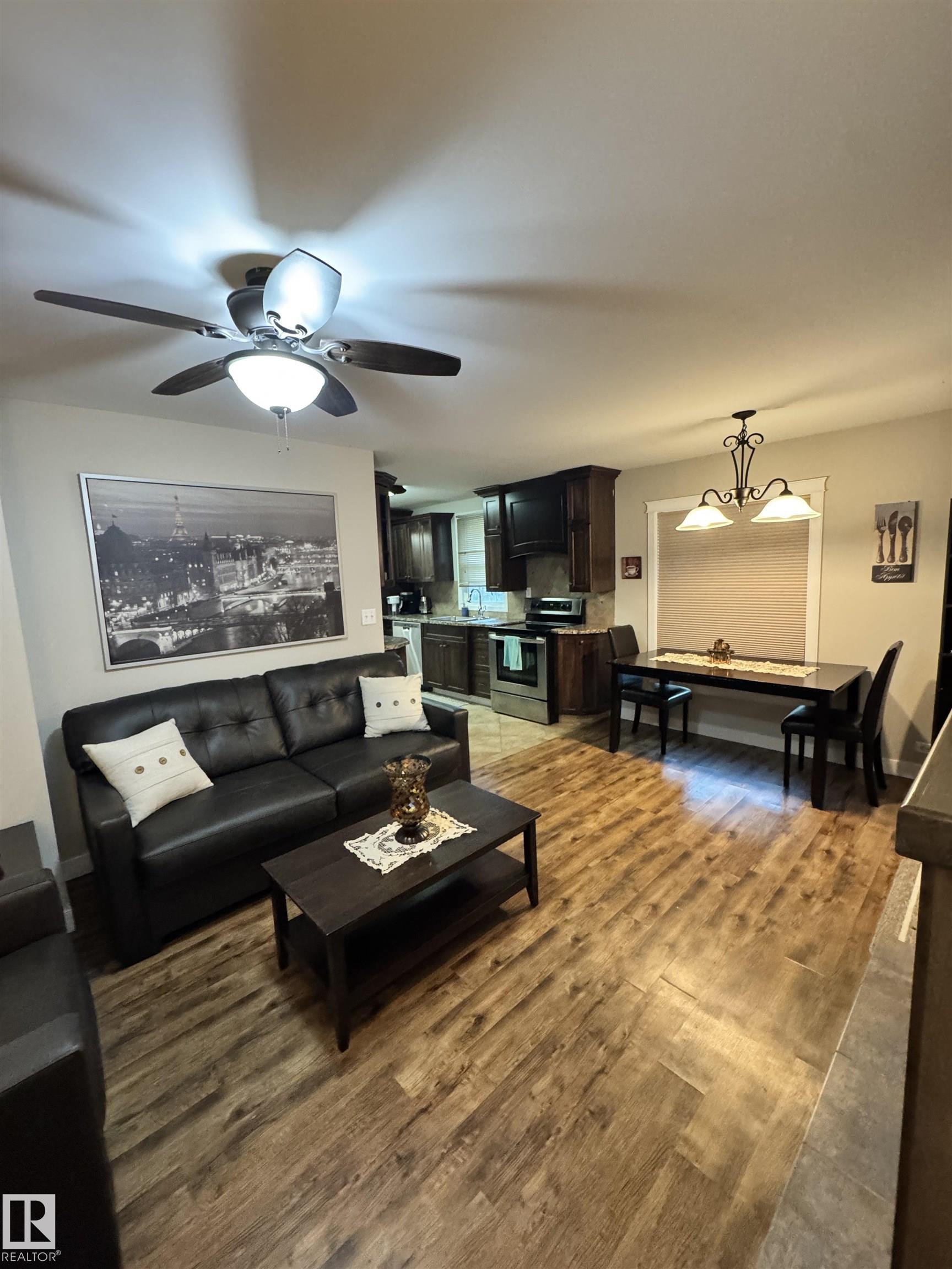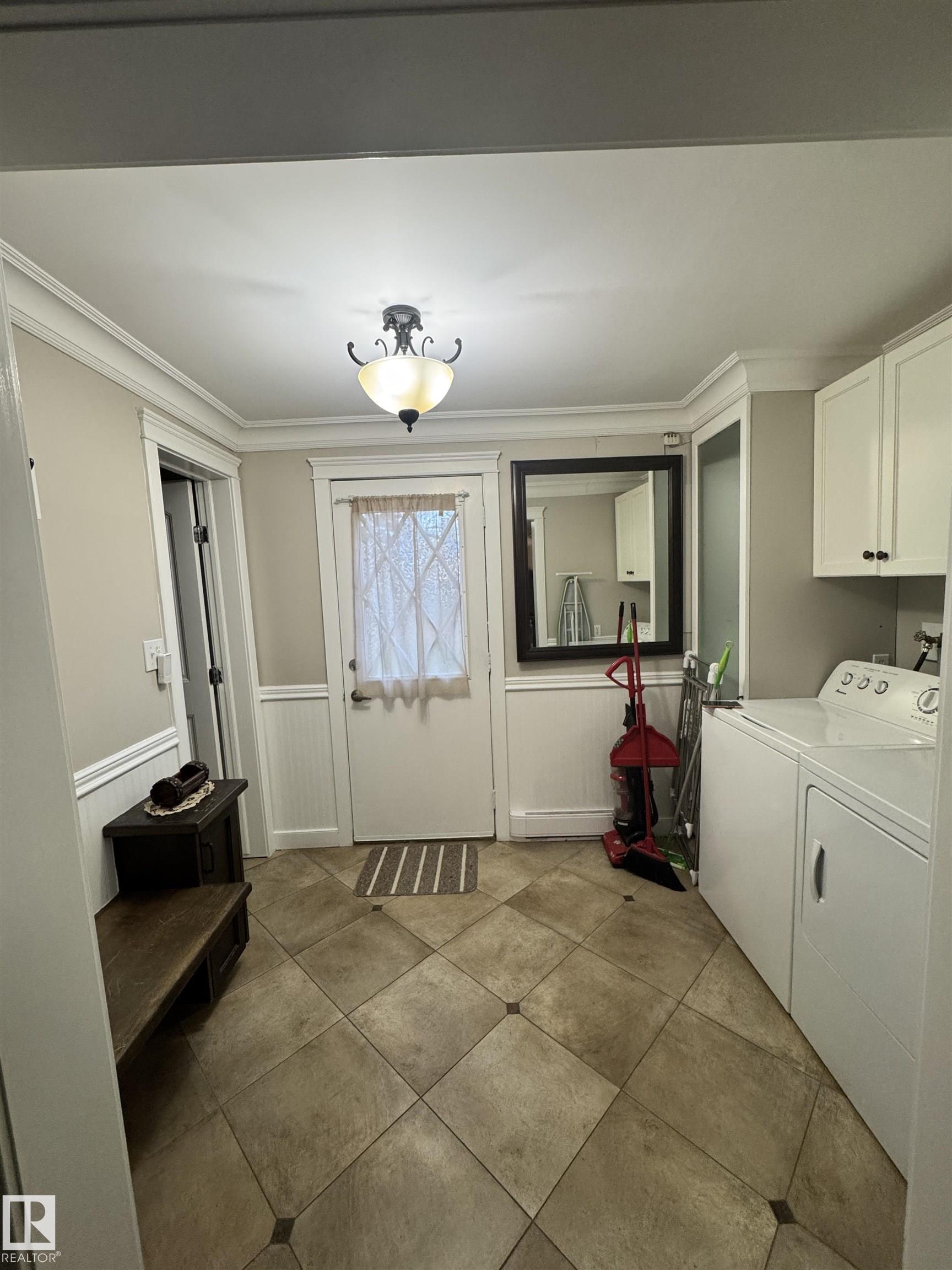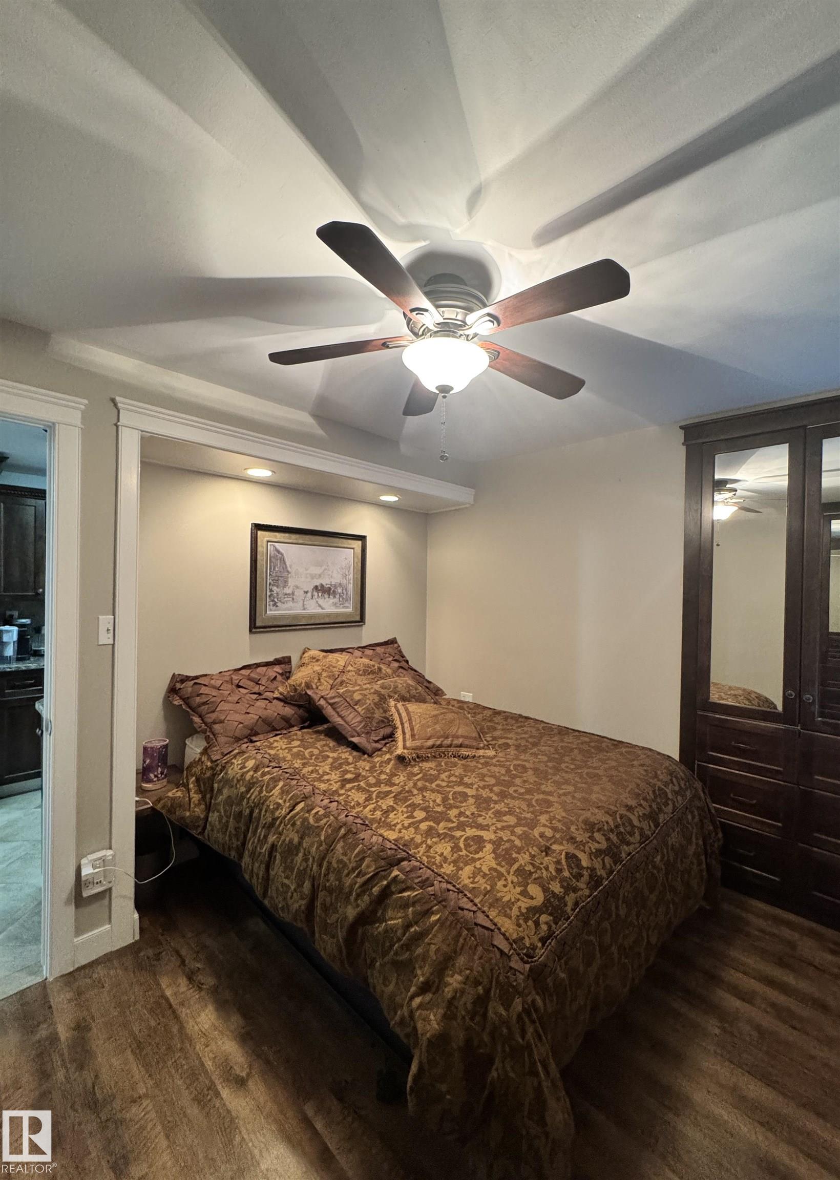 Cozy bungalow in Westlock surrounded by mature evergreens and a welcoming front flower bed. Step inside to your vision of a custom tiny home with a warm living and dining area featuring a tile-surround fireplace. The kitchen boasts custom cabinetry, stainless steel appliances, and ceramic tile, creating a thoughtful, efficient layout. Built-in cabinetry flows throughout the home, from the fireplace to the kitchen, laundry, bedroom, and bath, blending function with design. The primary bedroom includes built-in wardrobes, end tables, pot lights, and a ceiling fan for comfort. The laundry room offers a bench and more cabinets for back entry storage. The four-piece bath features a tiled shower and a heat lamp. Outside, enjoy a large backyard with trees, a storage shed, and a walking path wrapping the home, ideal for relaxing, gardening, or future expansion of your small-town sanctuary.