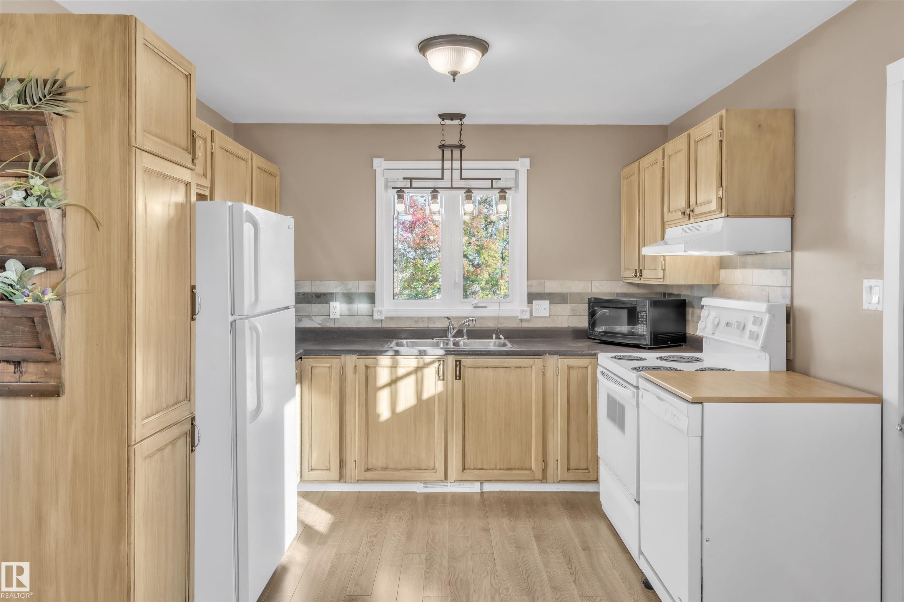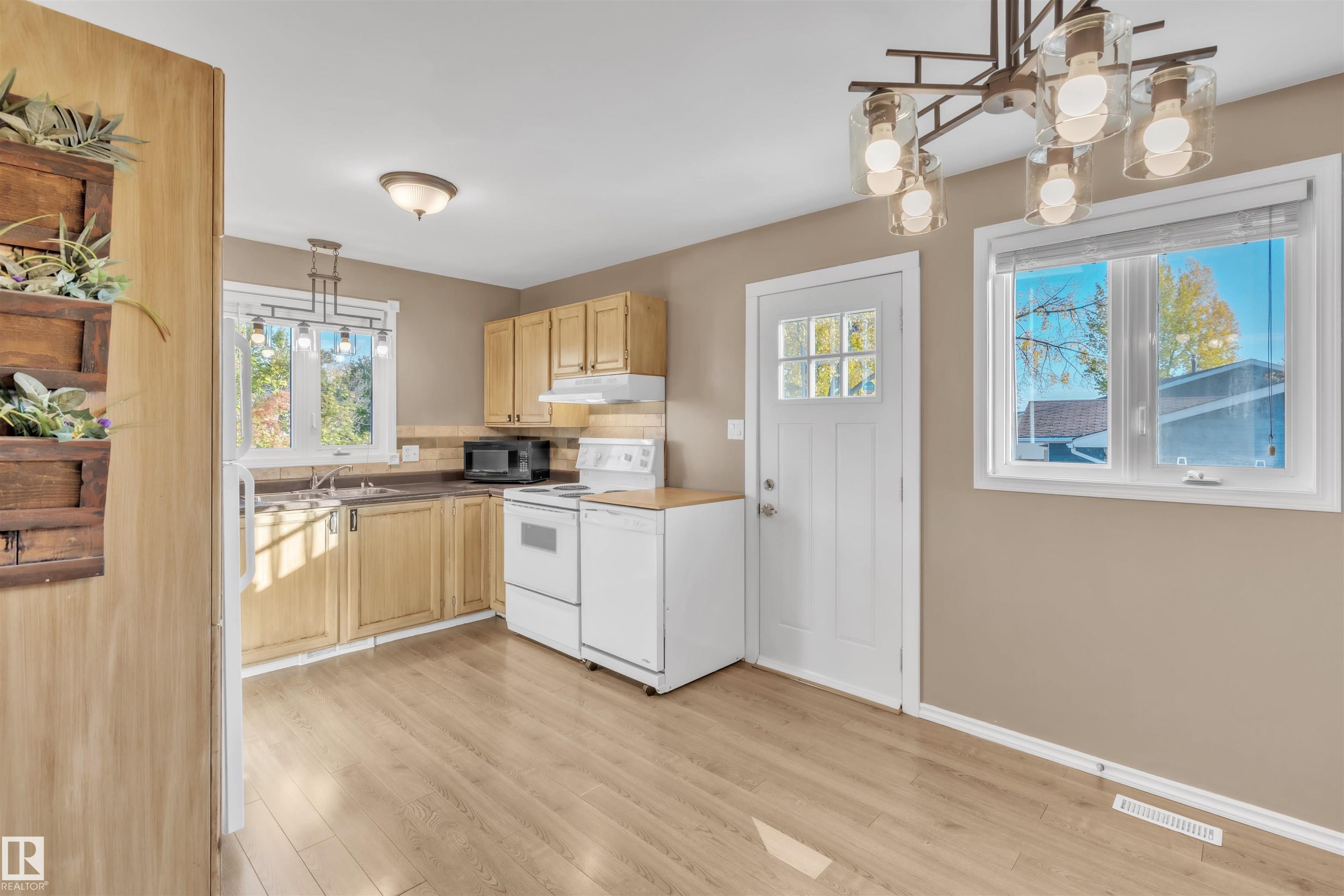 Welcome to this charming family home in Forest Heights, offering comfort, updates, and a beautiful setting backing onto trees. The main floor features three bedrooms, a bright living area, and a refreshed kitchen with refurbished cabinetry and access to a spacious deck that wraps around the side and back?perfect for entertaining or relaxing. The fully developed basement includes a large family room with a cozy wood stove and a fourth bedroom. Recent upgrades include a high-efficiency furnace and hot water tank, shingles (approx. 8 years ago), siding, and windows (pre-2012). Additional highlights include updated lighting throughout, new exterior kitchen and front doors, and a fully fenced backyard offering privacy and outdoor enjoyment.