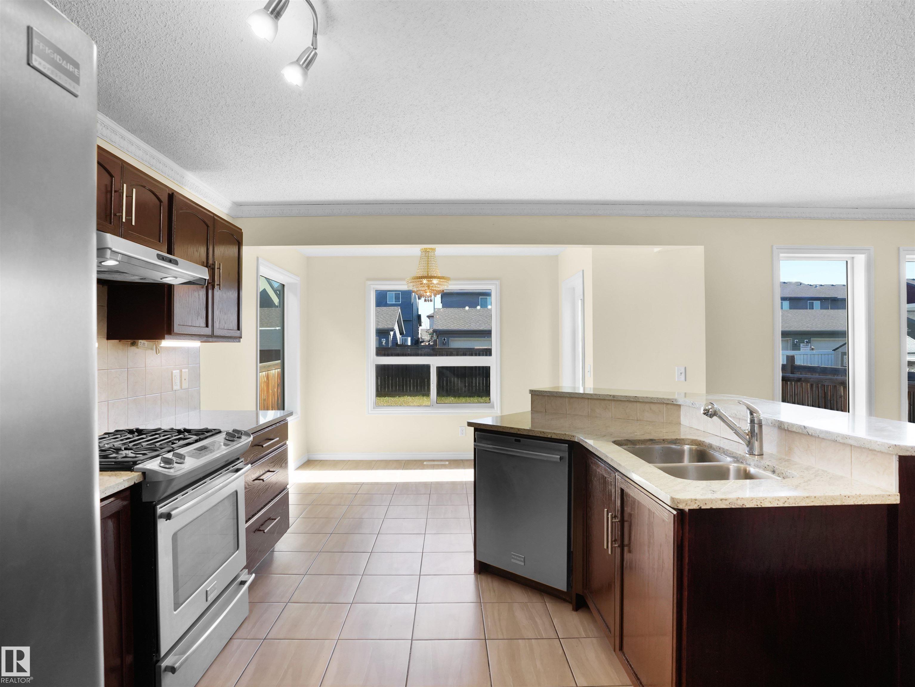 Welcome to Laurel, one of Edmonton?s most sought-after communities ? where comfort meets convenience! This beautiful 2-storey home offers a bright open layout featuring a modern kitchen with stainless steel appliances including a gas stove, island and plenty of cabinetry. The adjoining dining area opens to a deck and landscaped backyard ? ideal for gatherings or quiet evenings. The spacious living room includes a cozy fireplace and large windows overlooking the yard. The mud room includes laundry and a convenient walk-thru pantry closet. Main floor also has laundry and a 2-pc bath. Upstairs, enjoy a generous bonus room, primary suite with 4-pc ensuite that comes with standing shower and soaker tub, plus two additional bedrooms and a full bath. Fully finished basement comes complete with a bedroom, second kitchen, full bath, second laundry & recreation area ? perfect for extended family or guests. Double attached garage adds everyday convenience. Freshly painted. Close to all amenities!