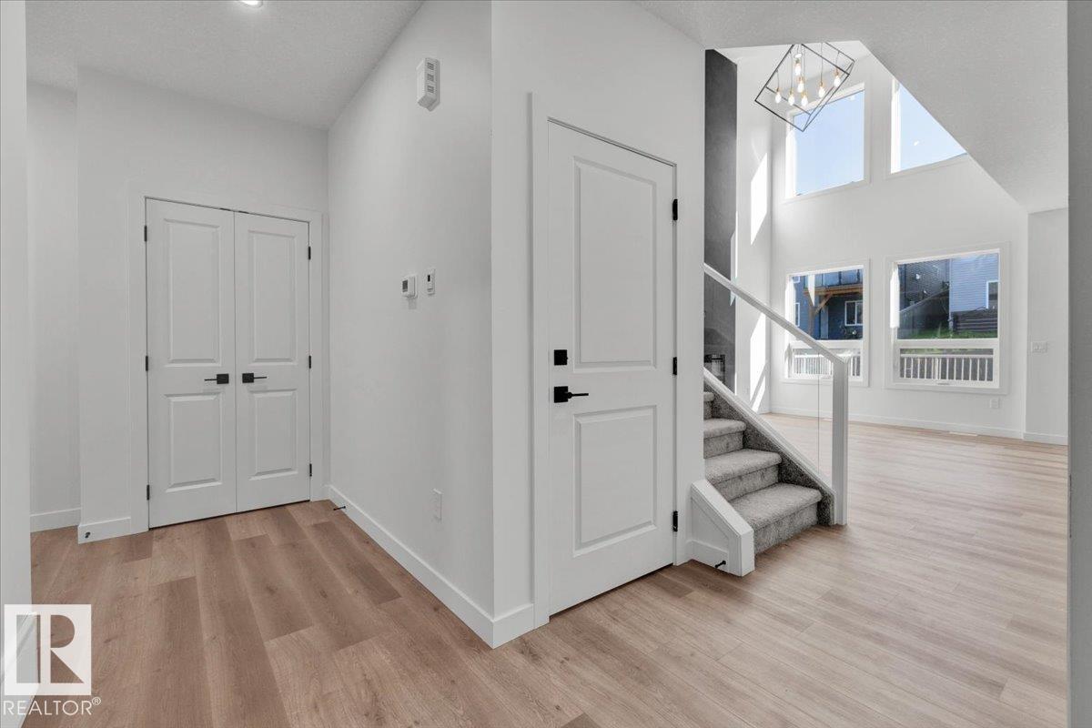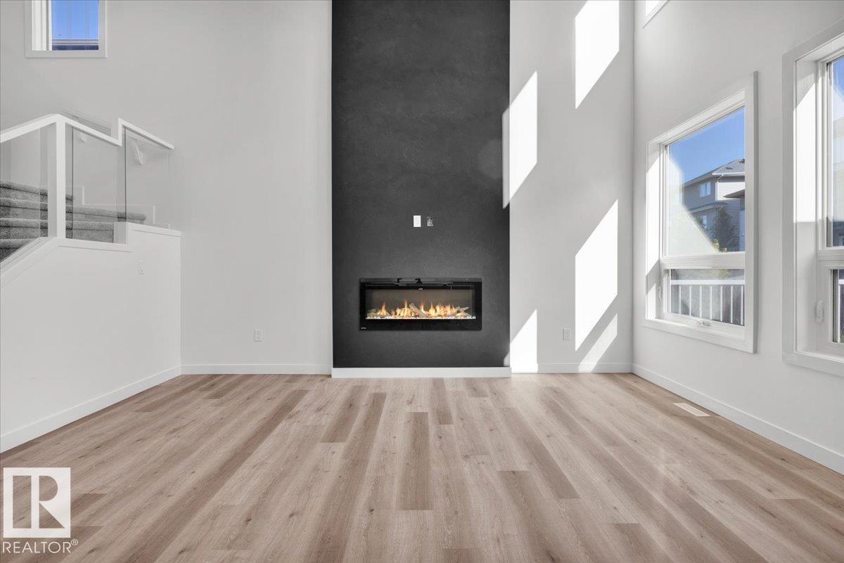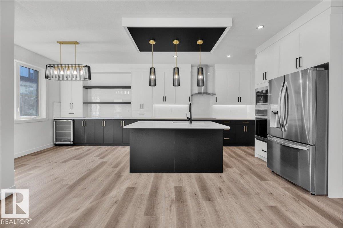 Welcome Home! Experience luxury living in this stunning 2188 sqft quality-built home, showcasing elegant design and premium upgrades throughout. Located just steps from the scenic ravines and walking trails of Big Lake in the desirable community of Hawks Ridge, NW Edmonton. Main floor features a bright open concept layout with 20-ft ceilings, feature wall with electric fireplace, and massive sun-filled windows. The chef-inspired kitchen offers custom cabinetry, under-cabinet lighting, a built-in wine fridge, and a convenient butler?s pantry. A private den and modern half bath complete the main level. Upstairs, enjoy a spacious bonus room, laundry room, and 3 generous bedrooms including a luxurious primary suite with walk-in closet and 5-piece ensuite. Additional highlights include built-in appliances, an oversized attached garage with hot/cold water taps and man door, and side entrance with suite potential. Move-in ready and beautifully finished. Furniture and décor shown are virtually staged.