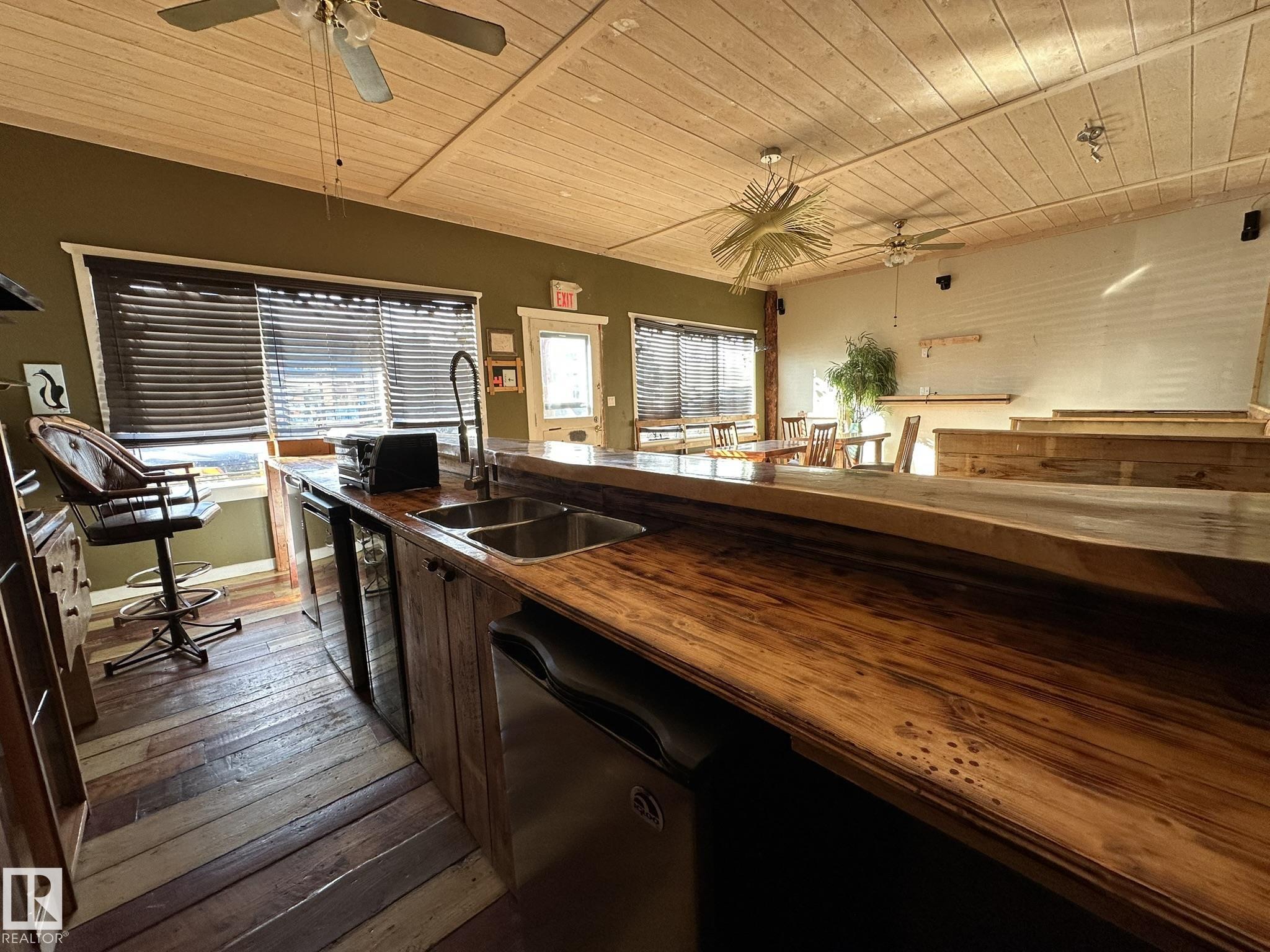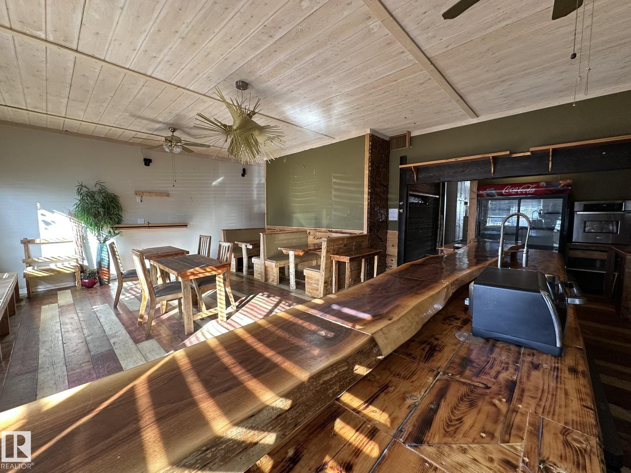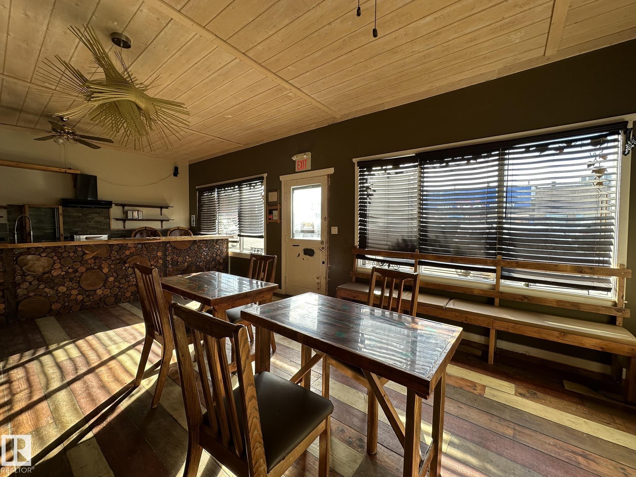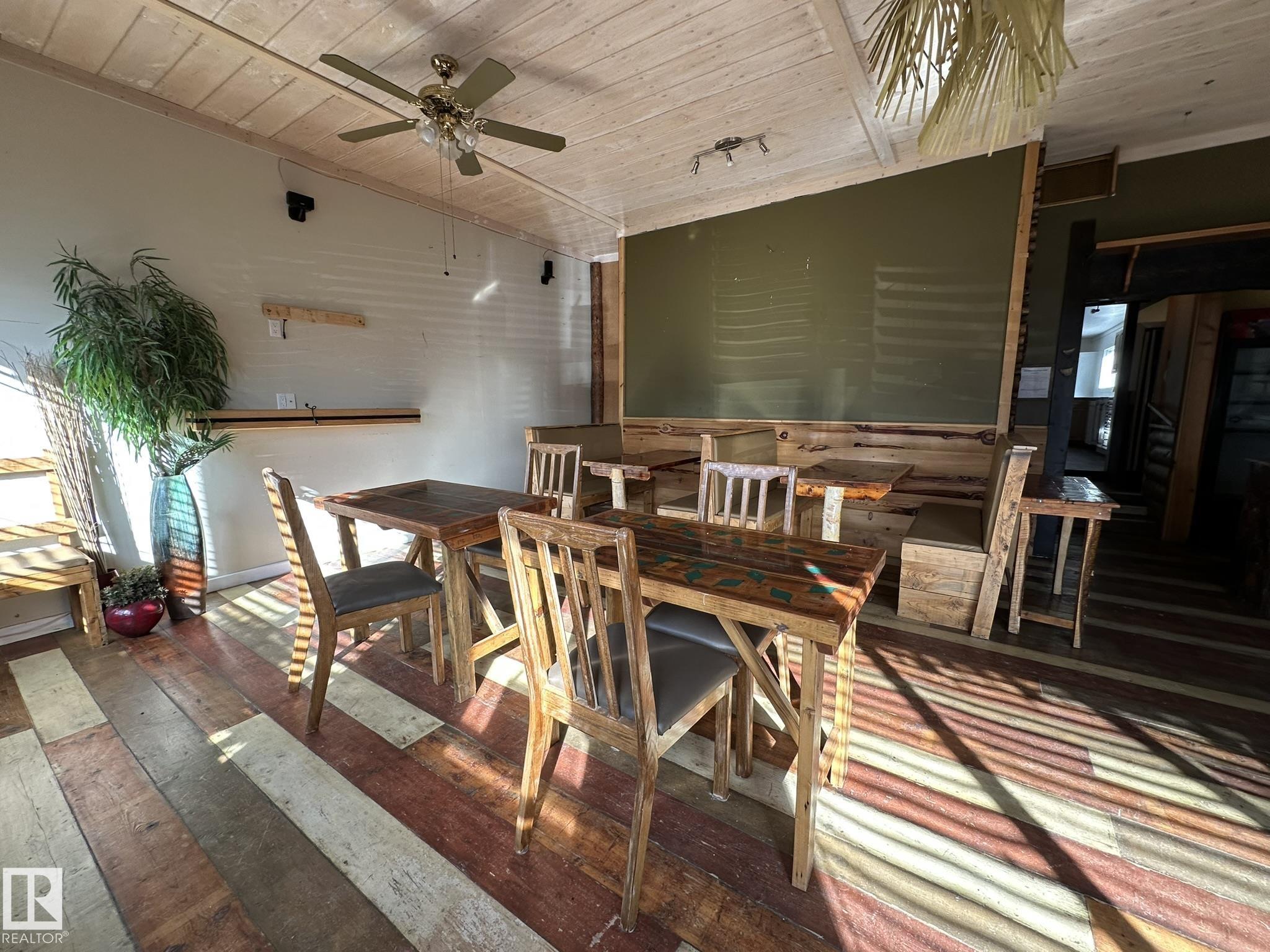 Here is your chance to live your dream.. Perfect property for a small business such as a cafe, resto, bring your ideas. And live right behind your workplace in a nicely appointed 2 + 1 bedroom smack in the middle of downtown Smoky Lake. The front of the property boats a wide-open concept with bar and lots of seating, you'll love how cozy and warm the room is, a cute bathroom is there for your potential customers. The owner's quarters offers a functional kitchen, a large living room with patio door to the rear covered porch, backyard and single garage. 2 good size bedrooms and full bath complete this floor. Downstair you'll find another bedroom, tons of storage space, laundry and utilities. Best location in town, busiest street, located between well-established businesses. You won't find a better opportunity.